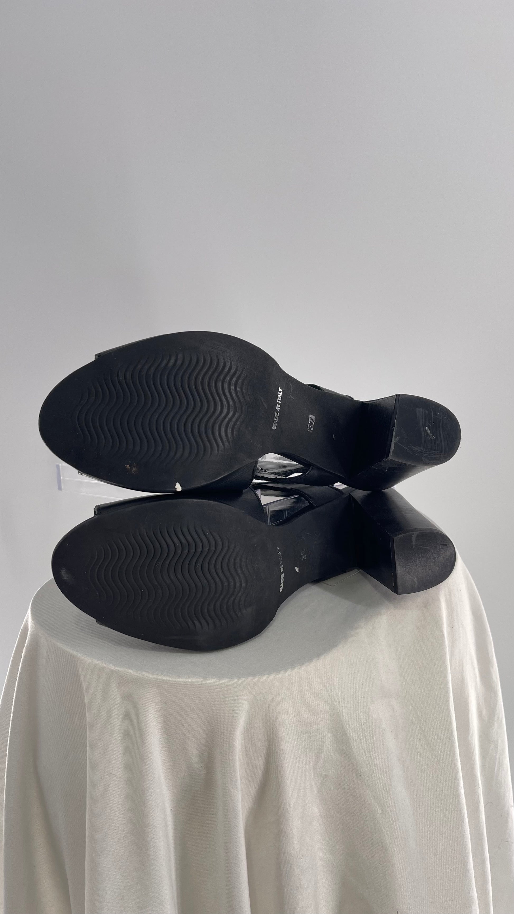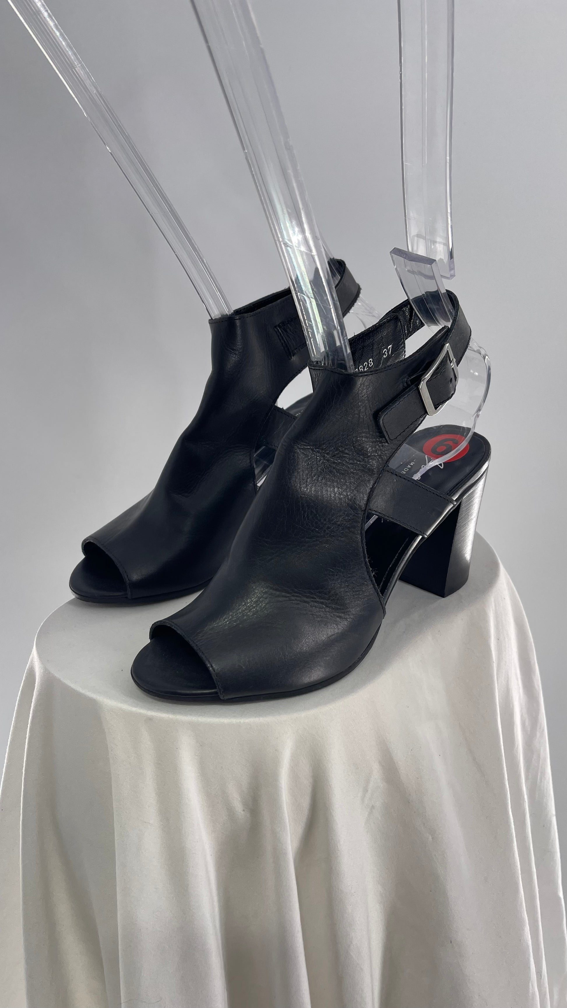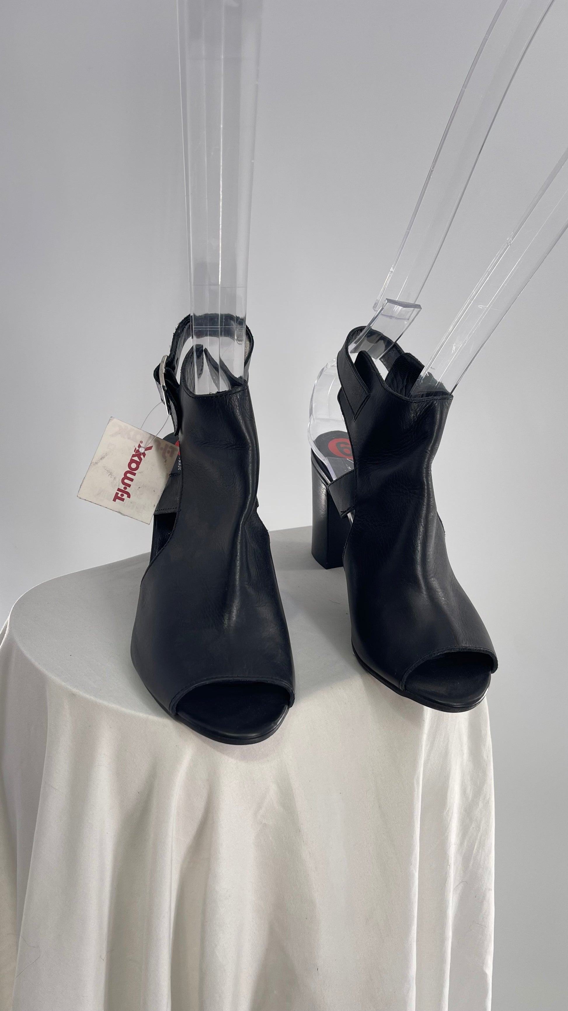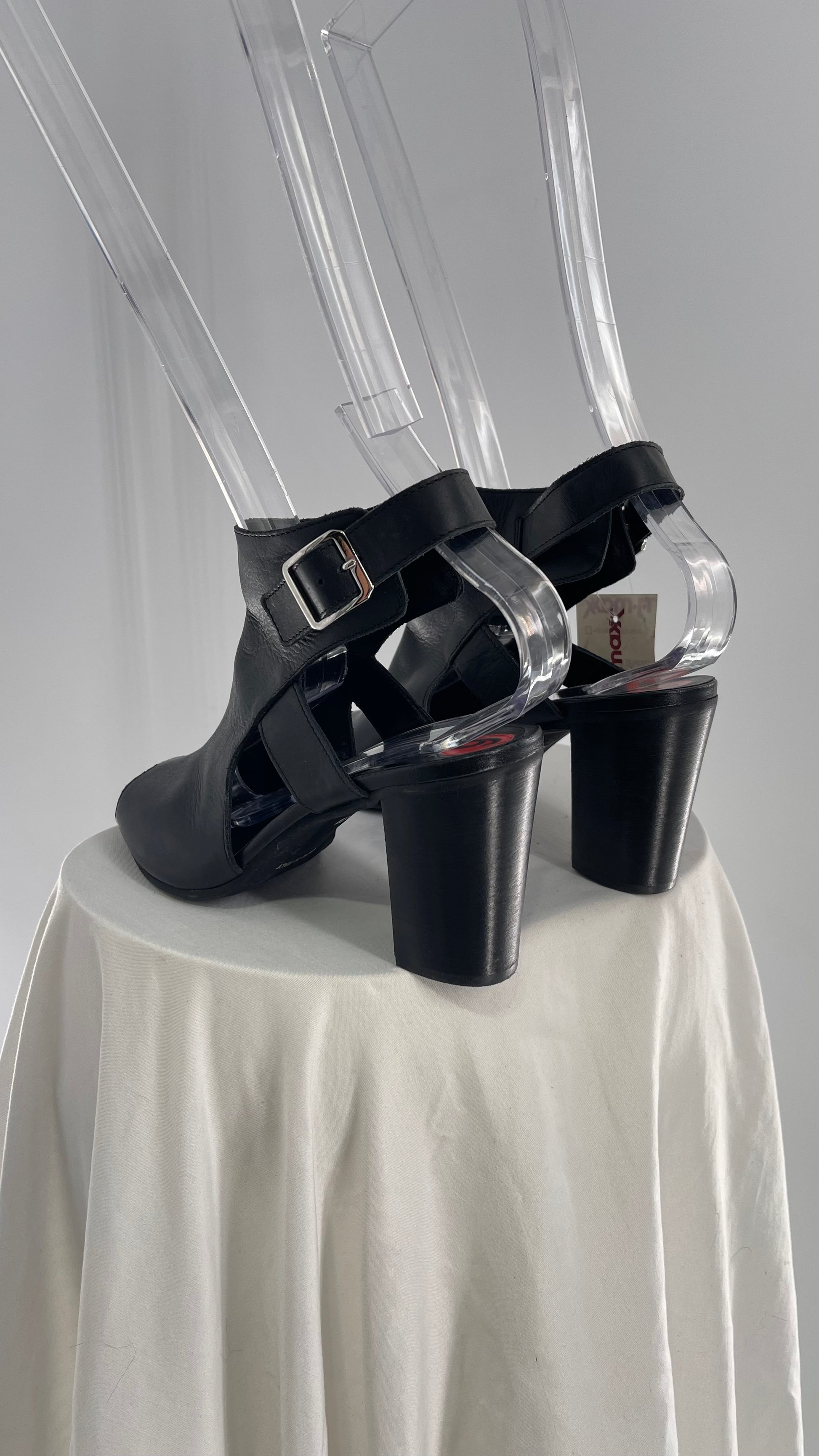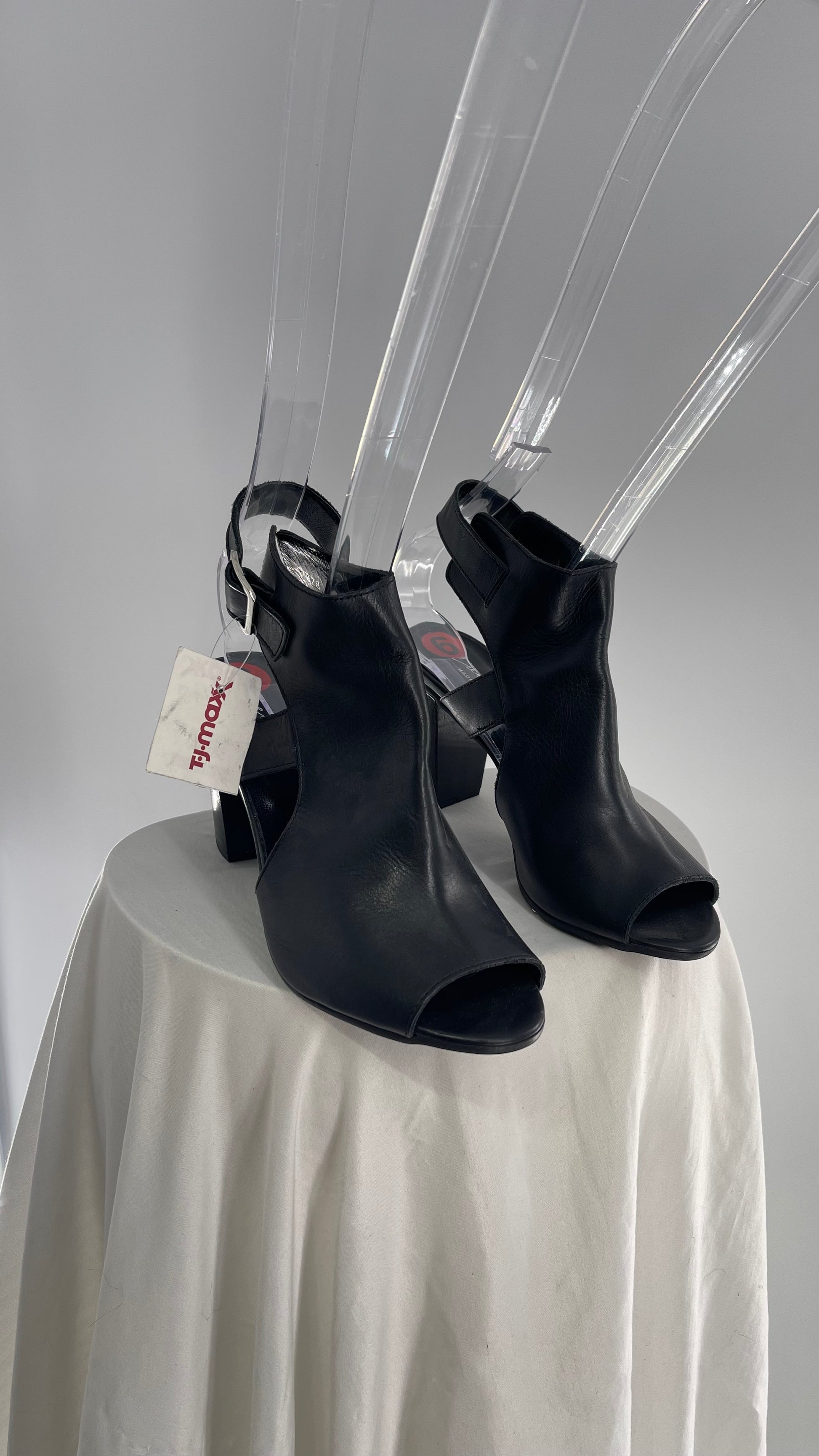 Avellini Made in Italy Black Leather Peep Toe Booties with Tags Attached (6)