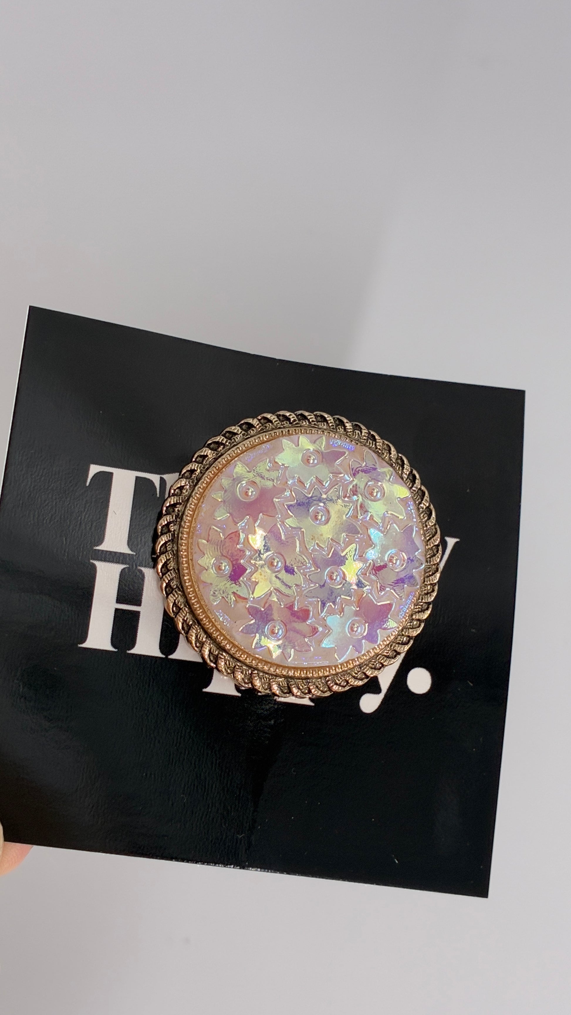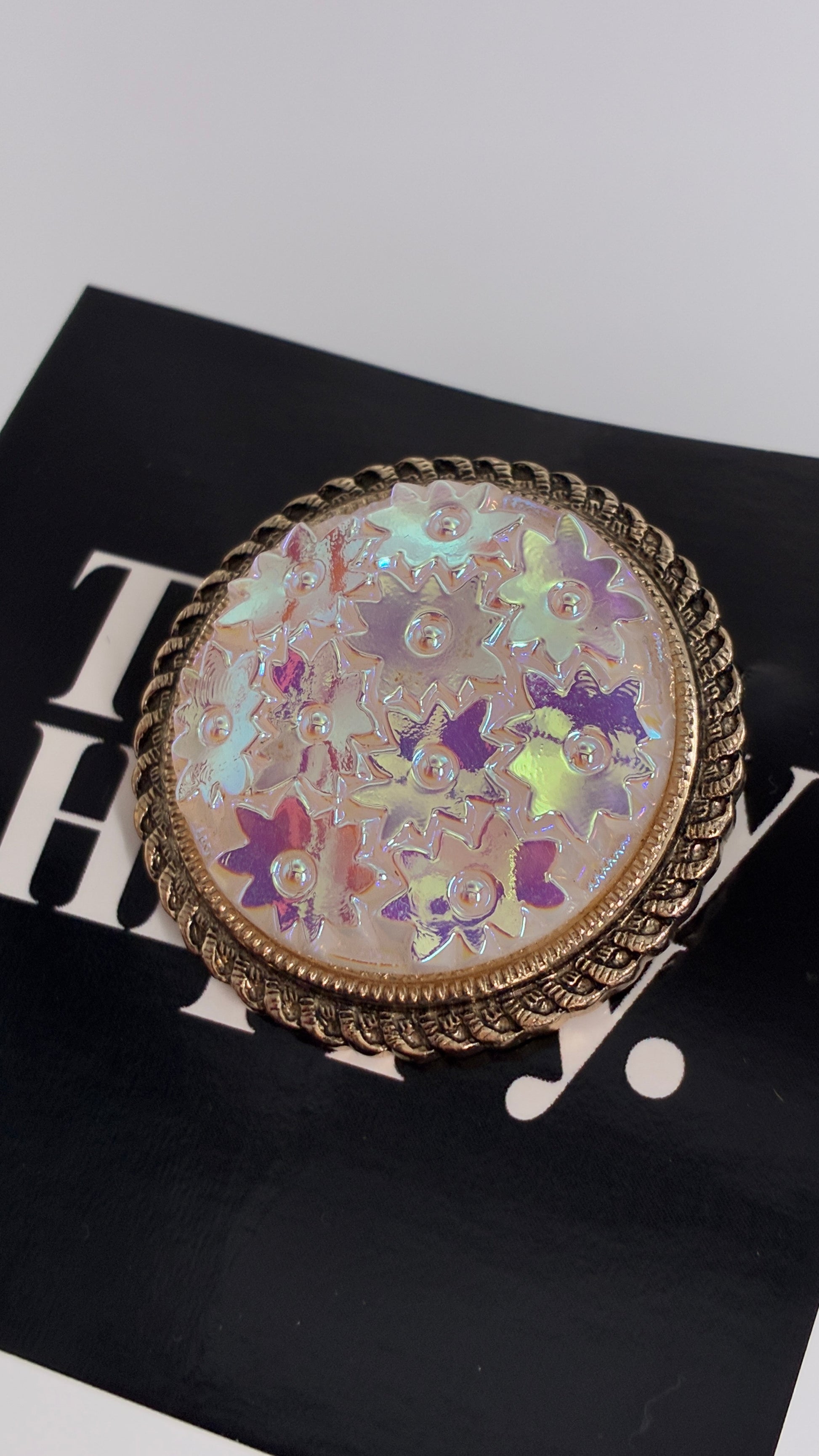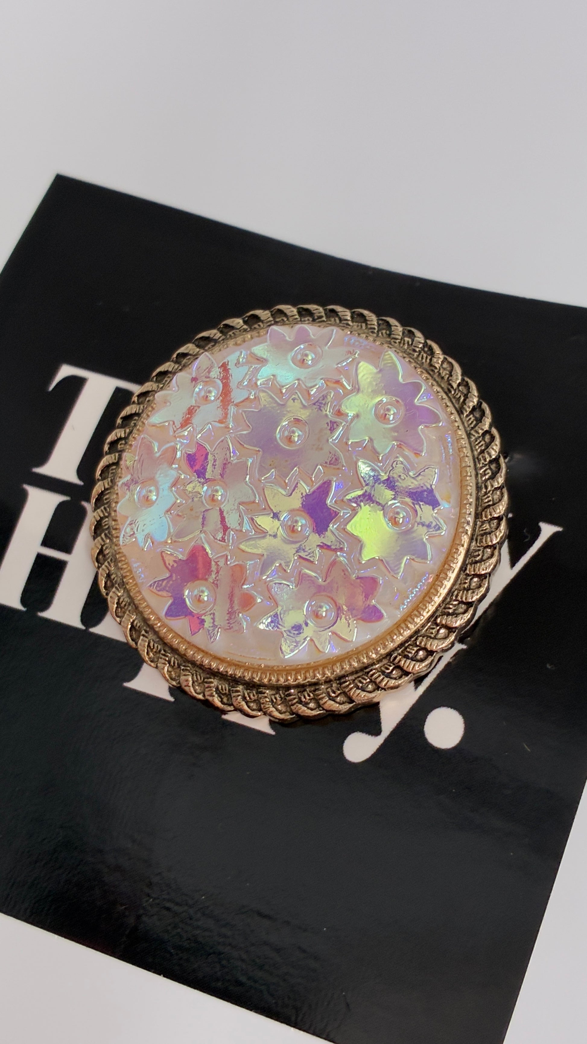 Vintage Scarf Ring Loop with Gold Metal Border and Iridescent Flowers