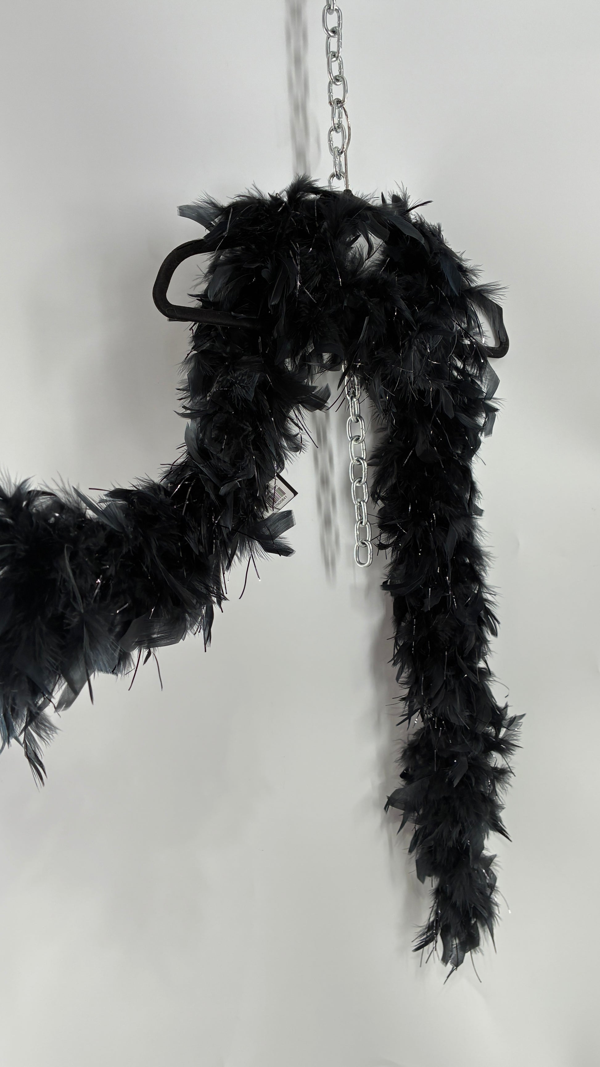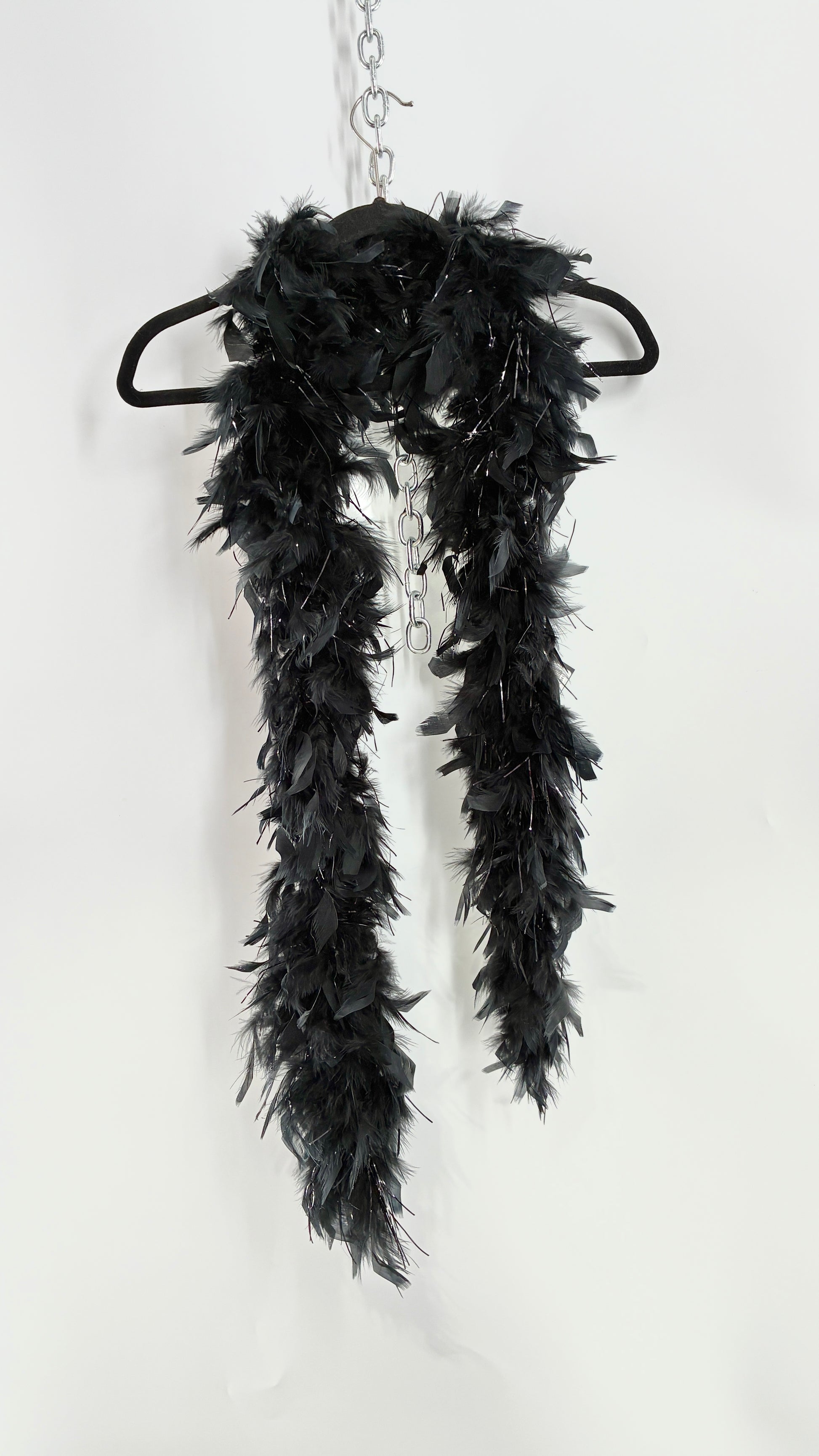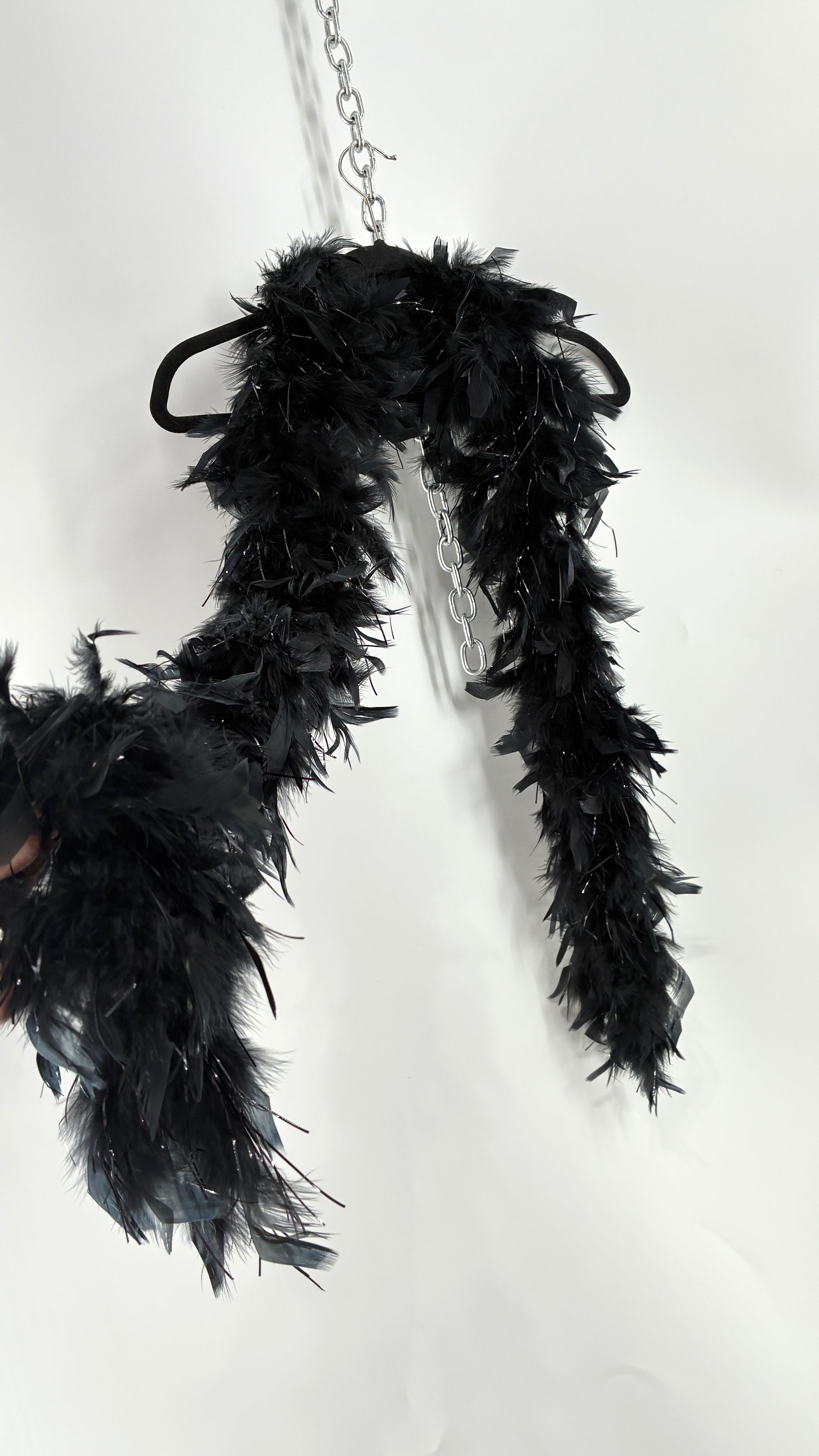 Vintage Black Ostrich Feather Scarf with Silver Tinsel