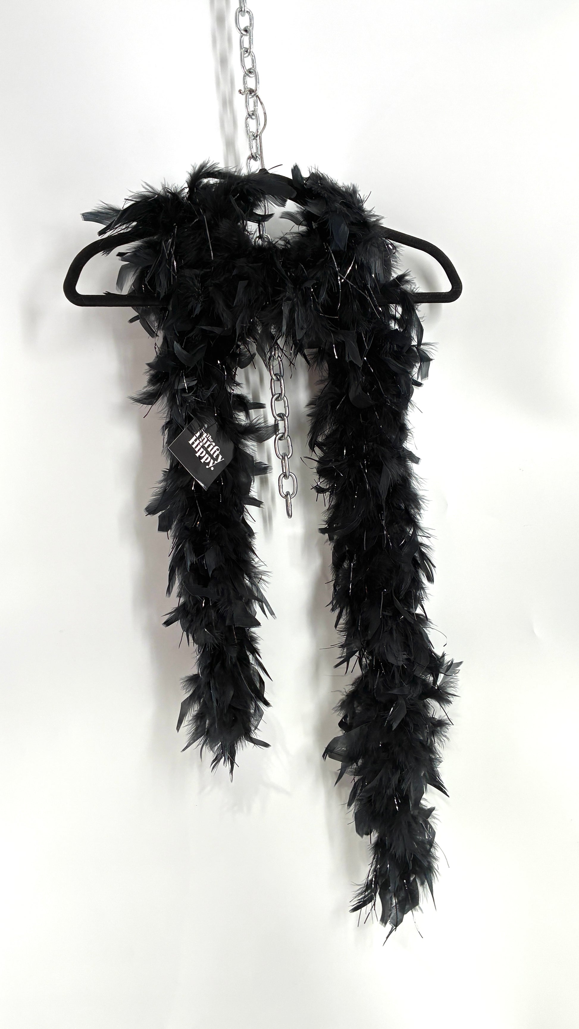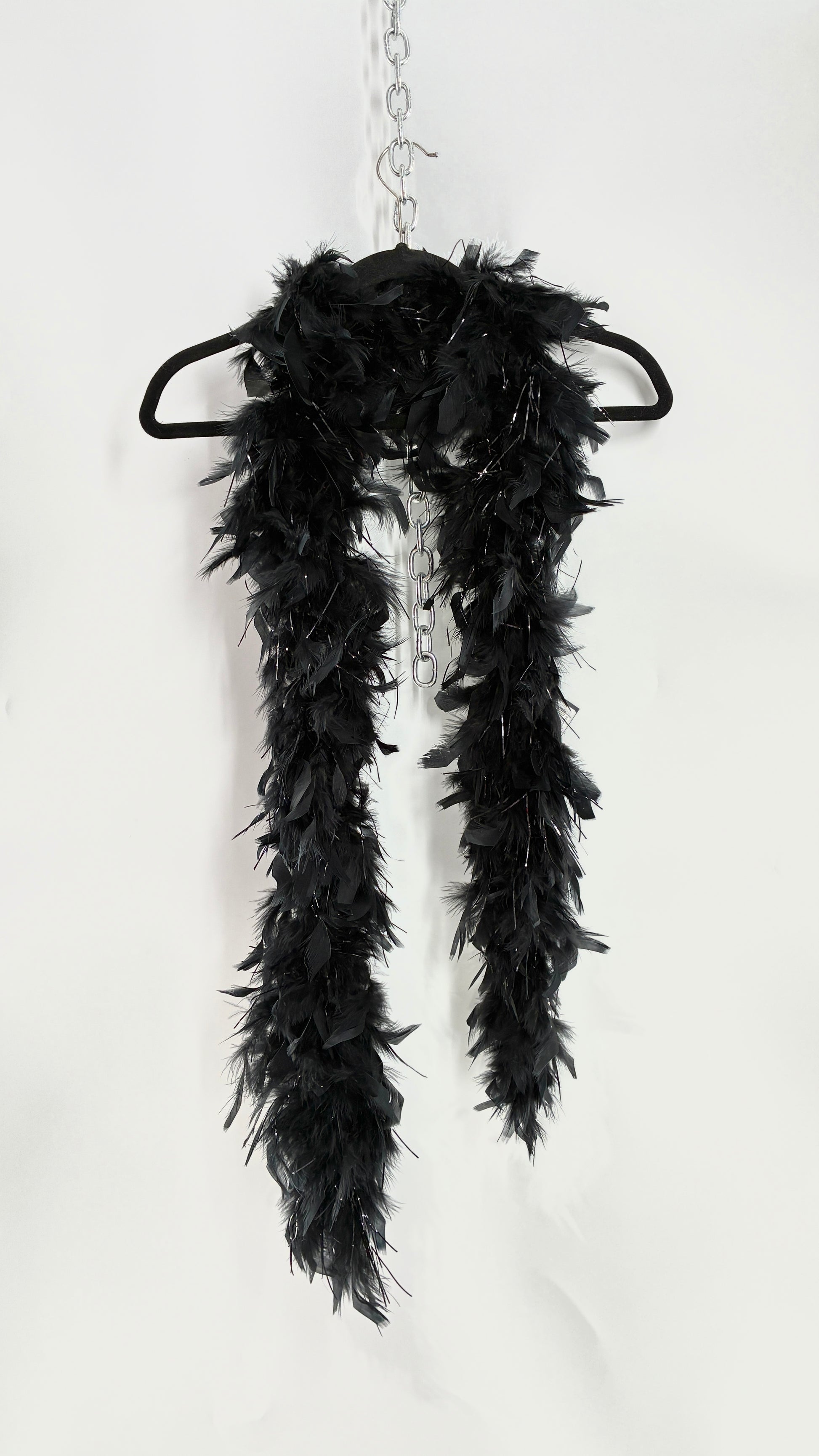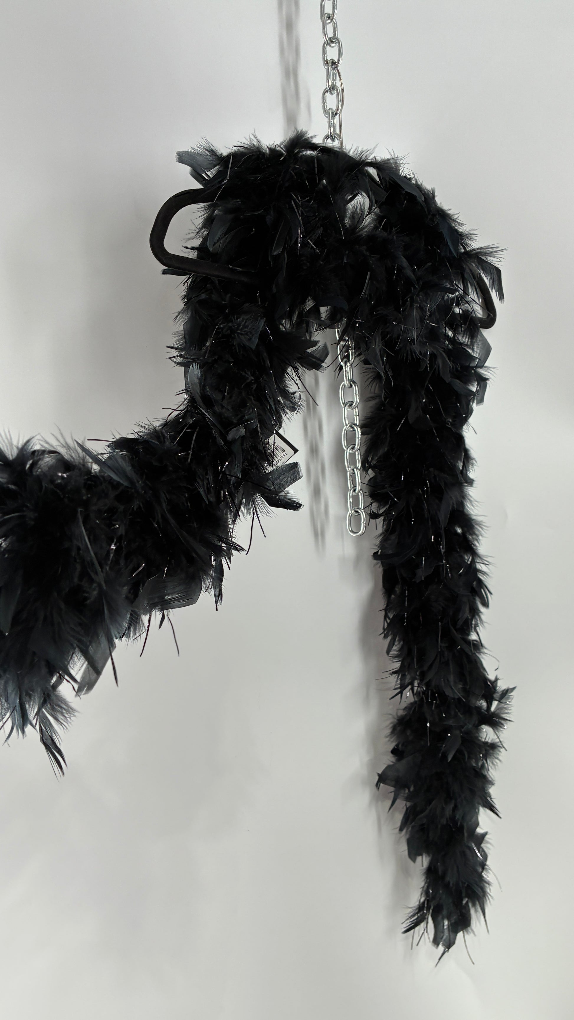Vintage Black Ostrich Feather Scarf with Silver Tinsel