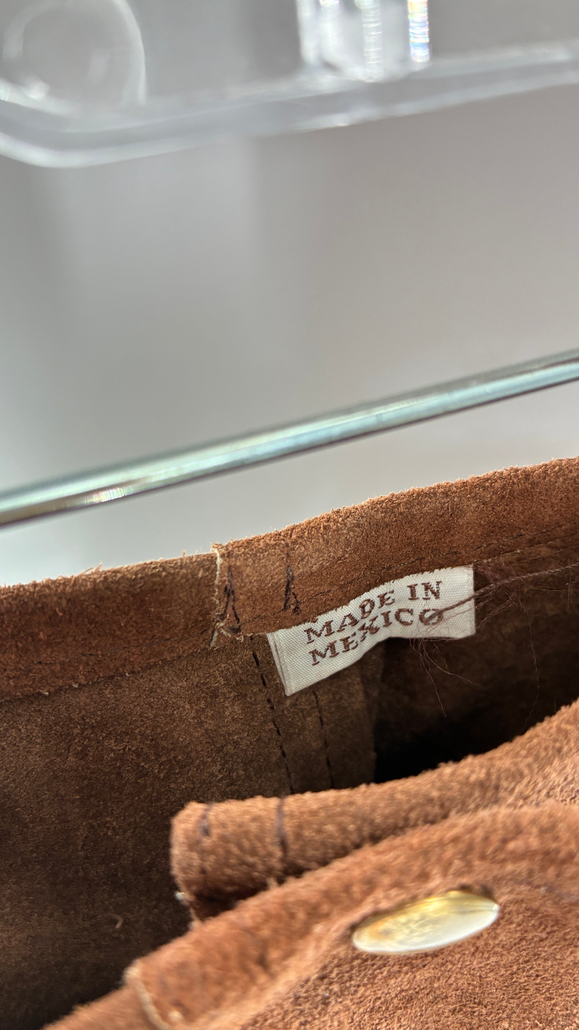 Vintage 1970s Genuine Suede Brown Leather Button Front Skirt and Vest Made in Mexico (XS/S)