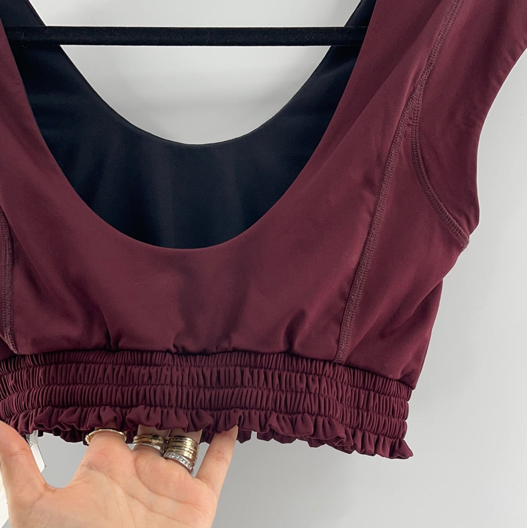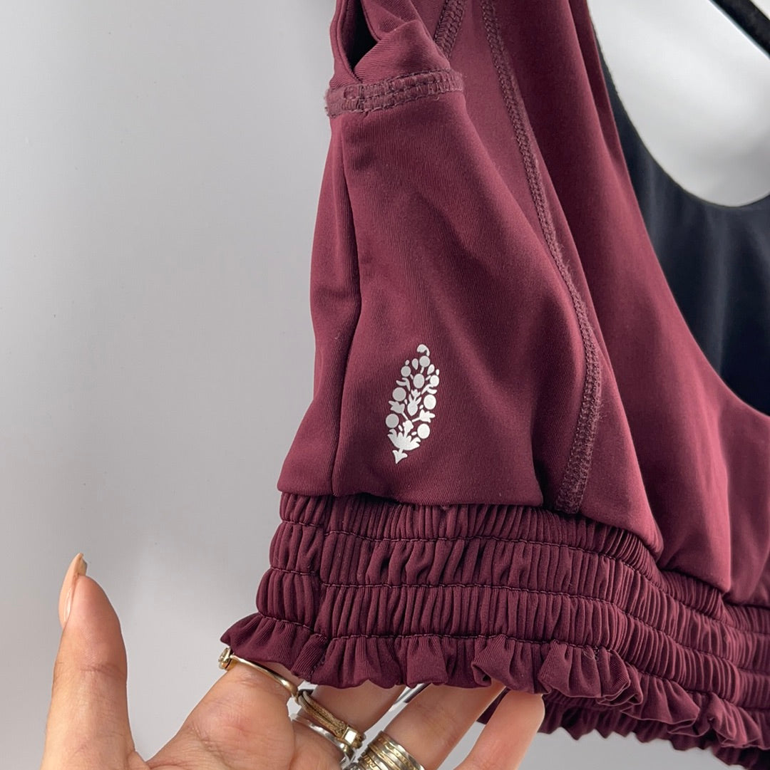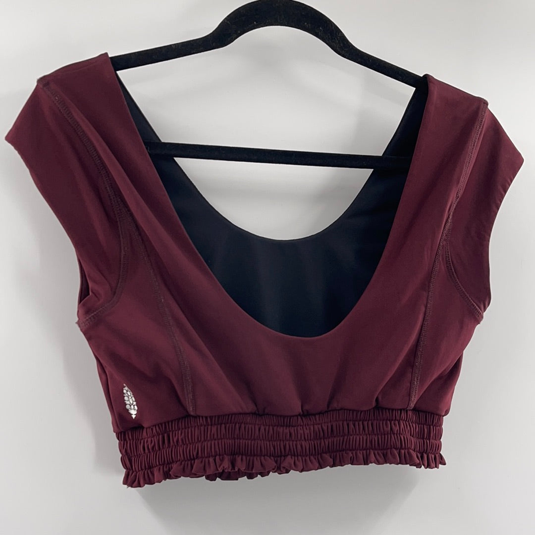 Free People Movement Cropped Short Sleeve Burgandy Top (Size M)