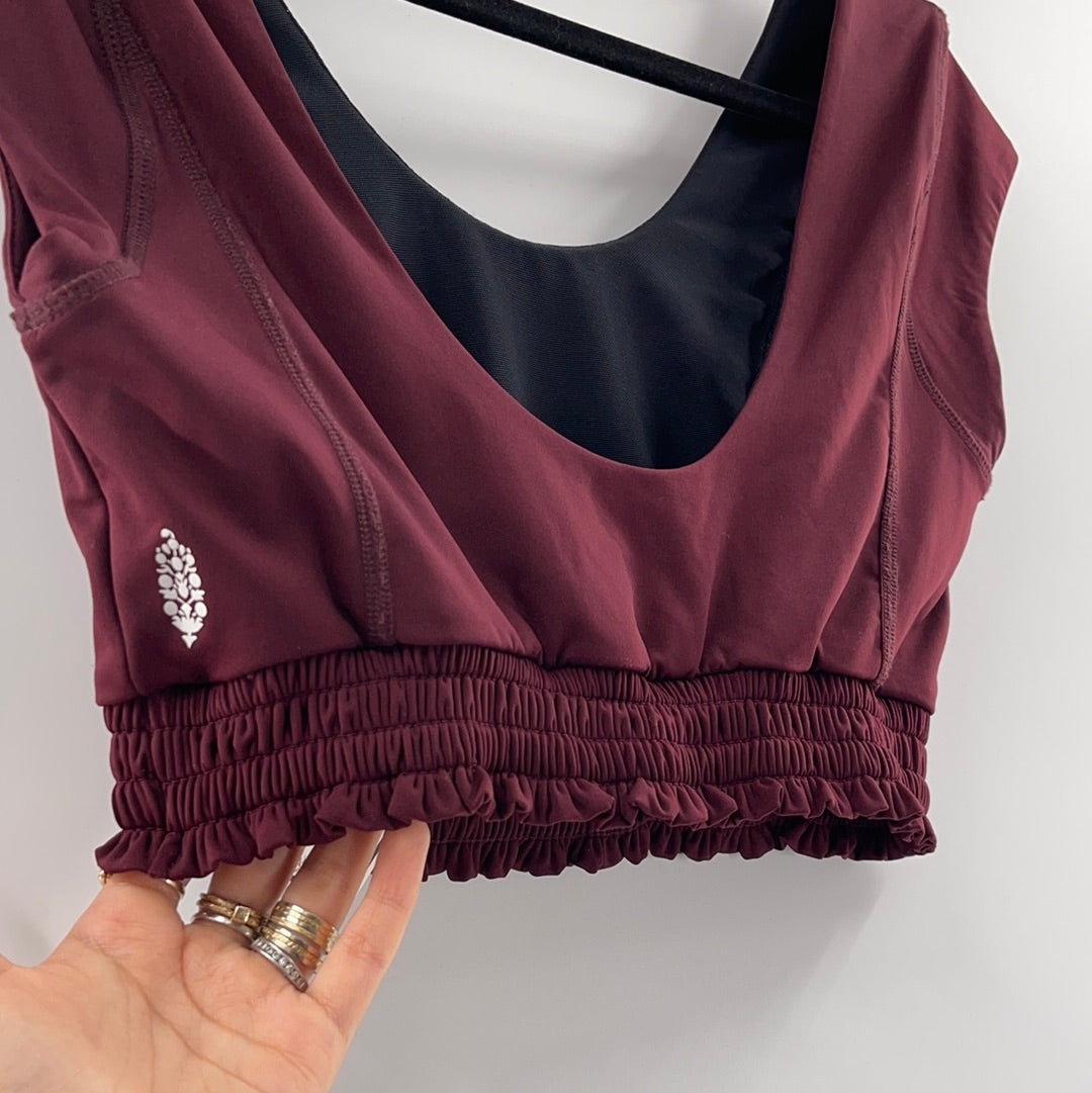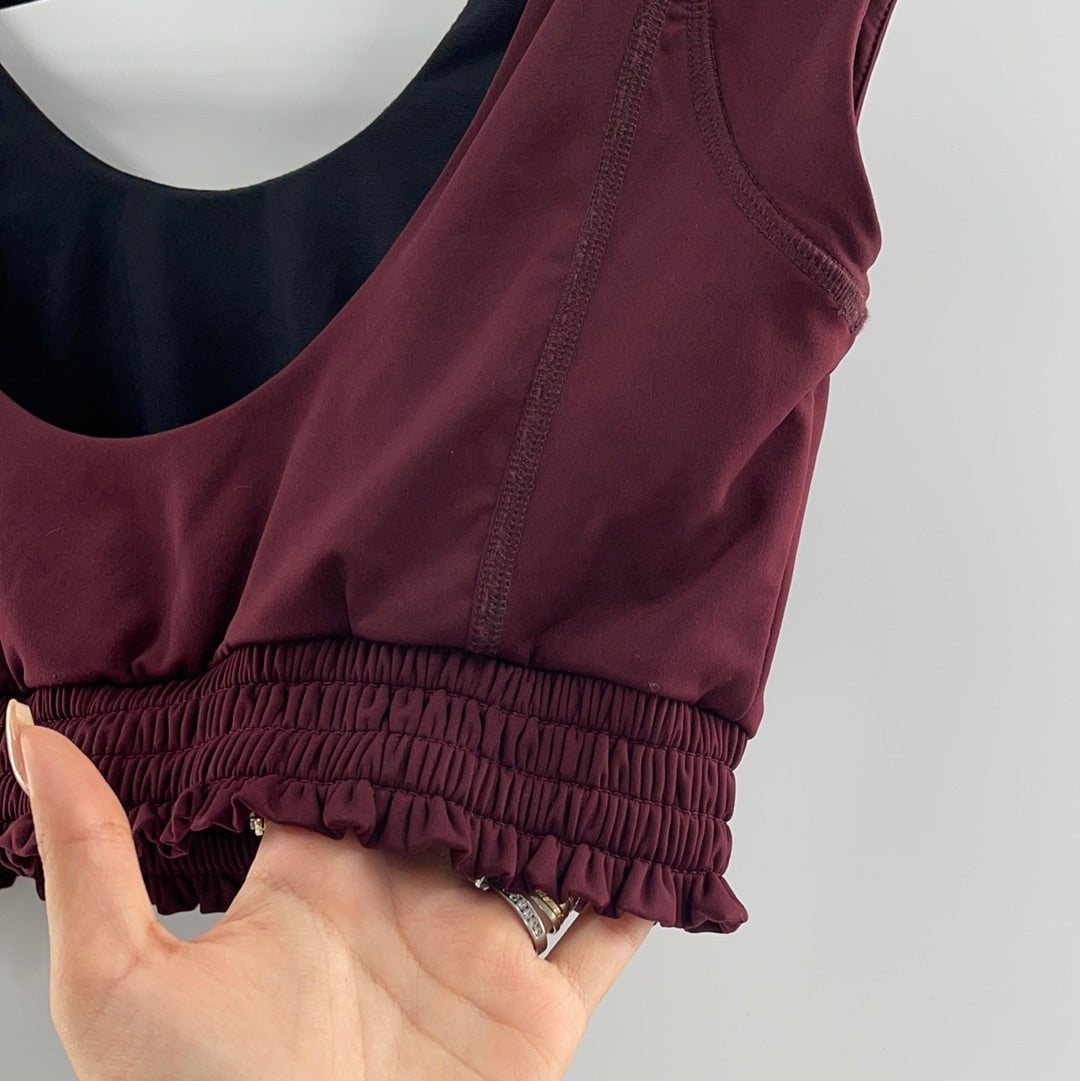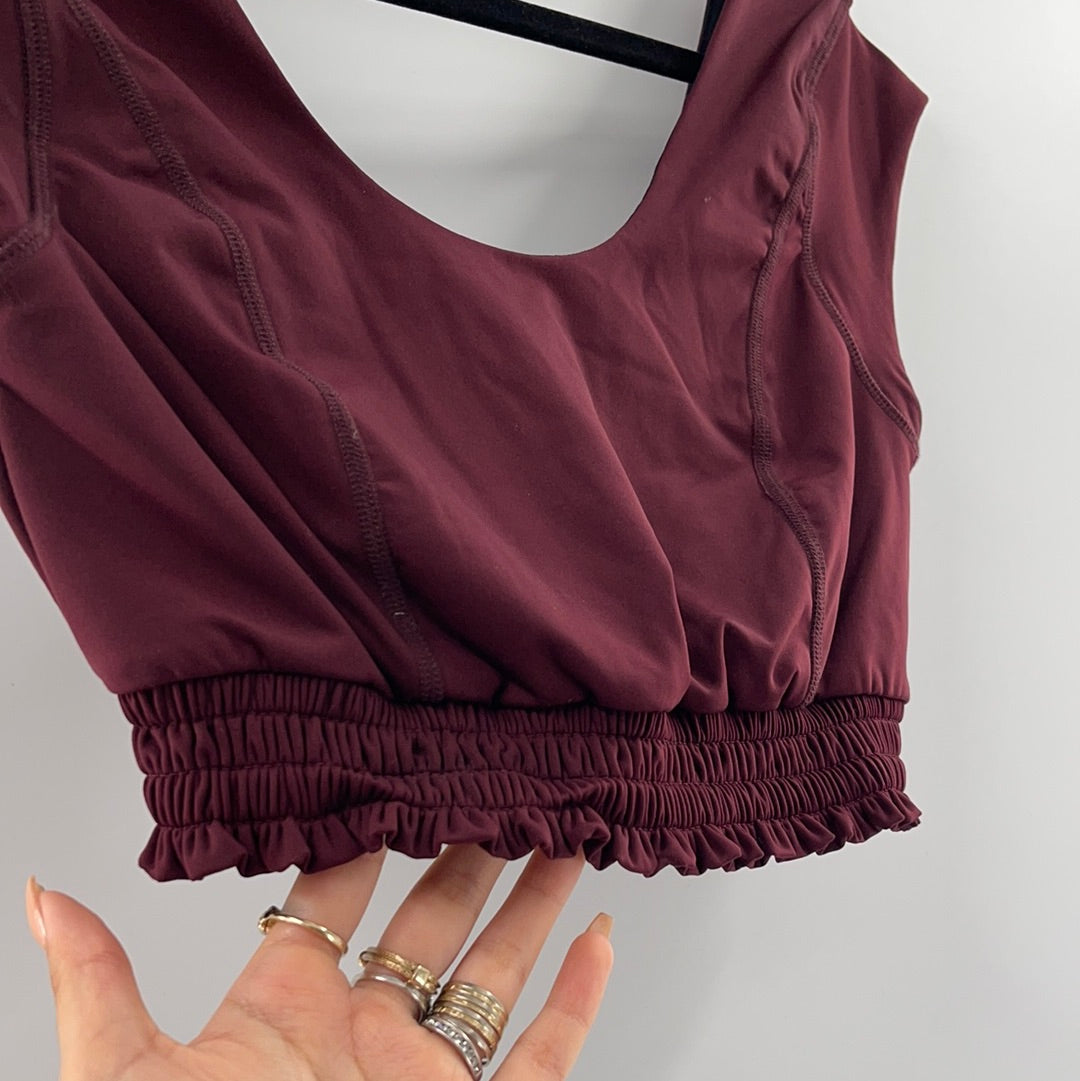 Free People Movement Cropped Short Sleeve Burgandy Top (Size M)