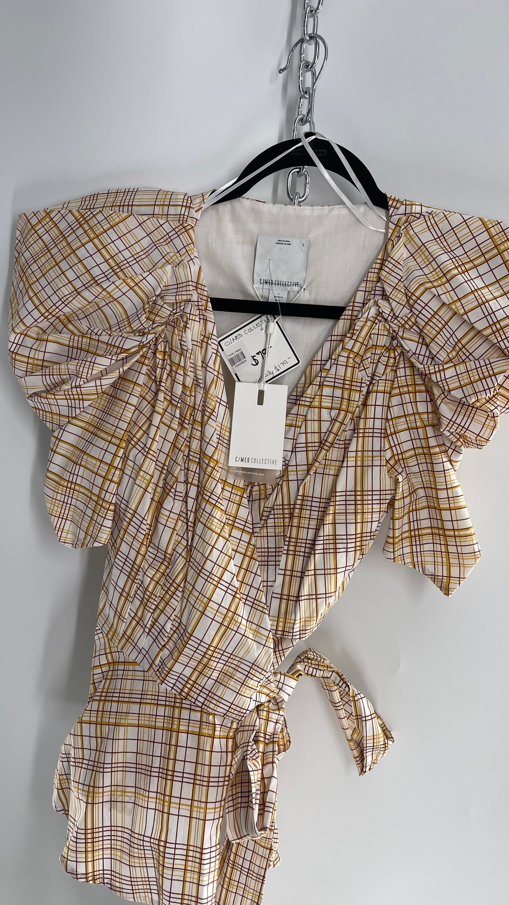 C/MEO Collective Plaid Puff Sleeve Peplum with Tags Attached (S)
