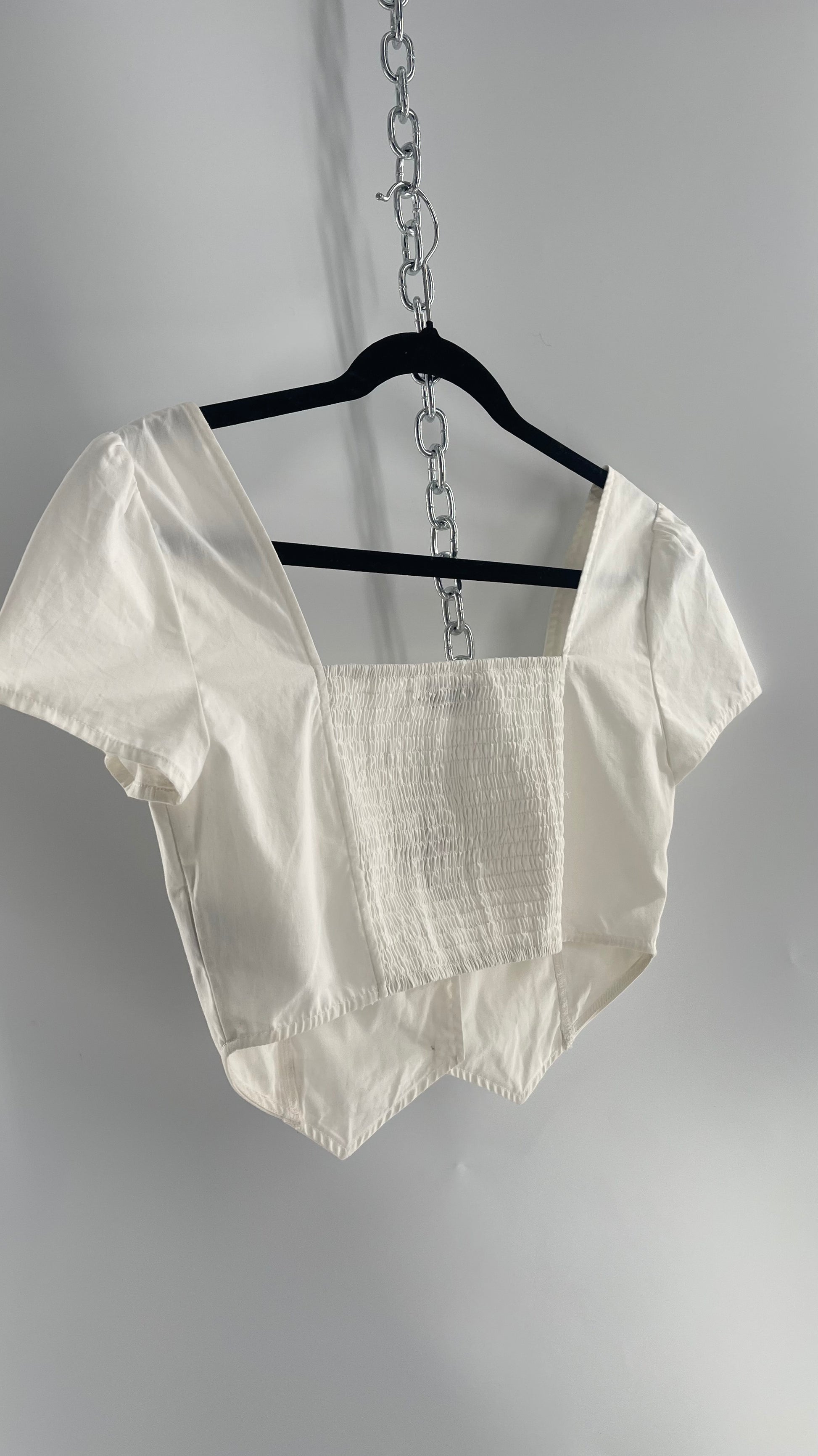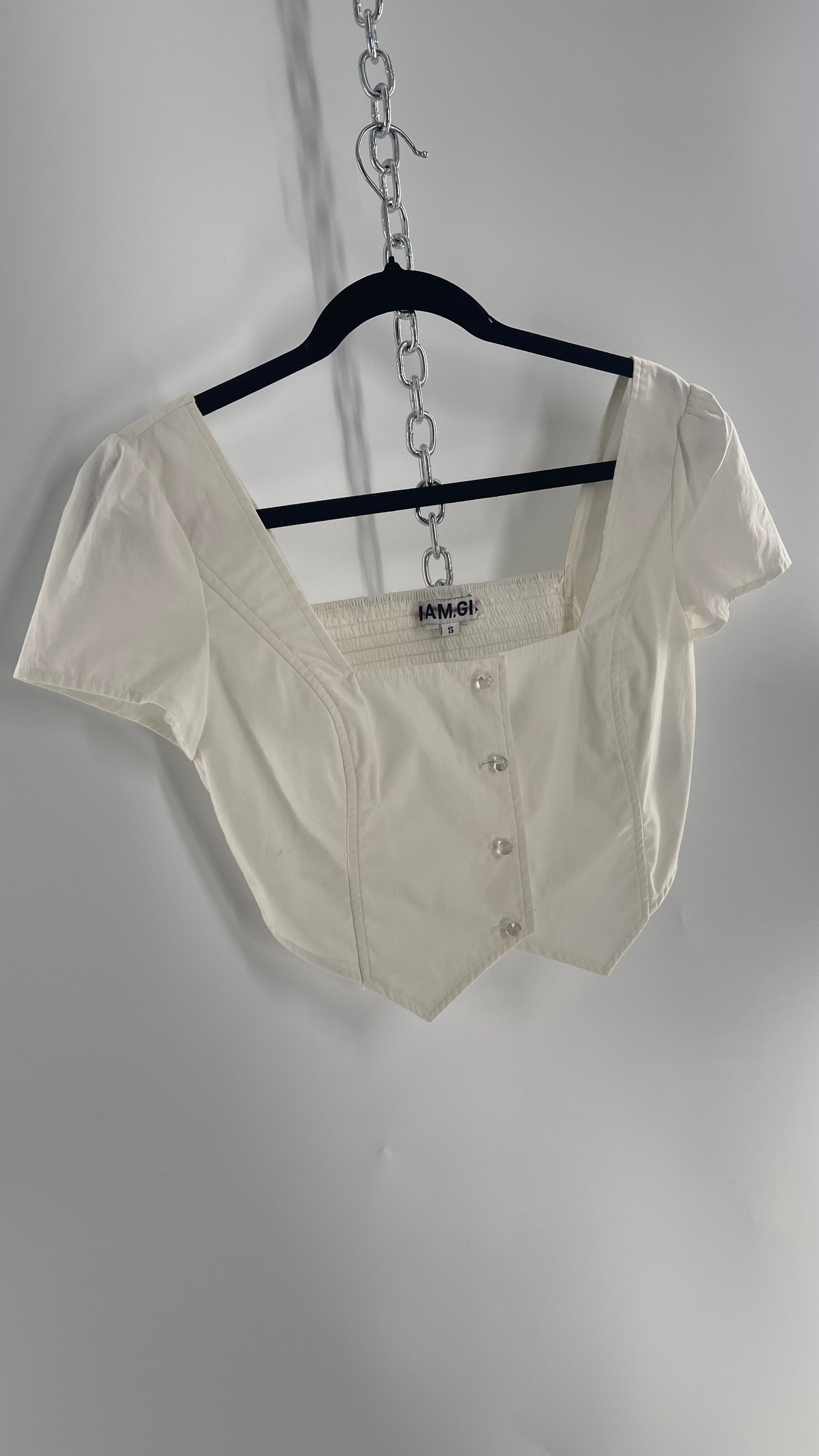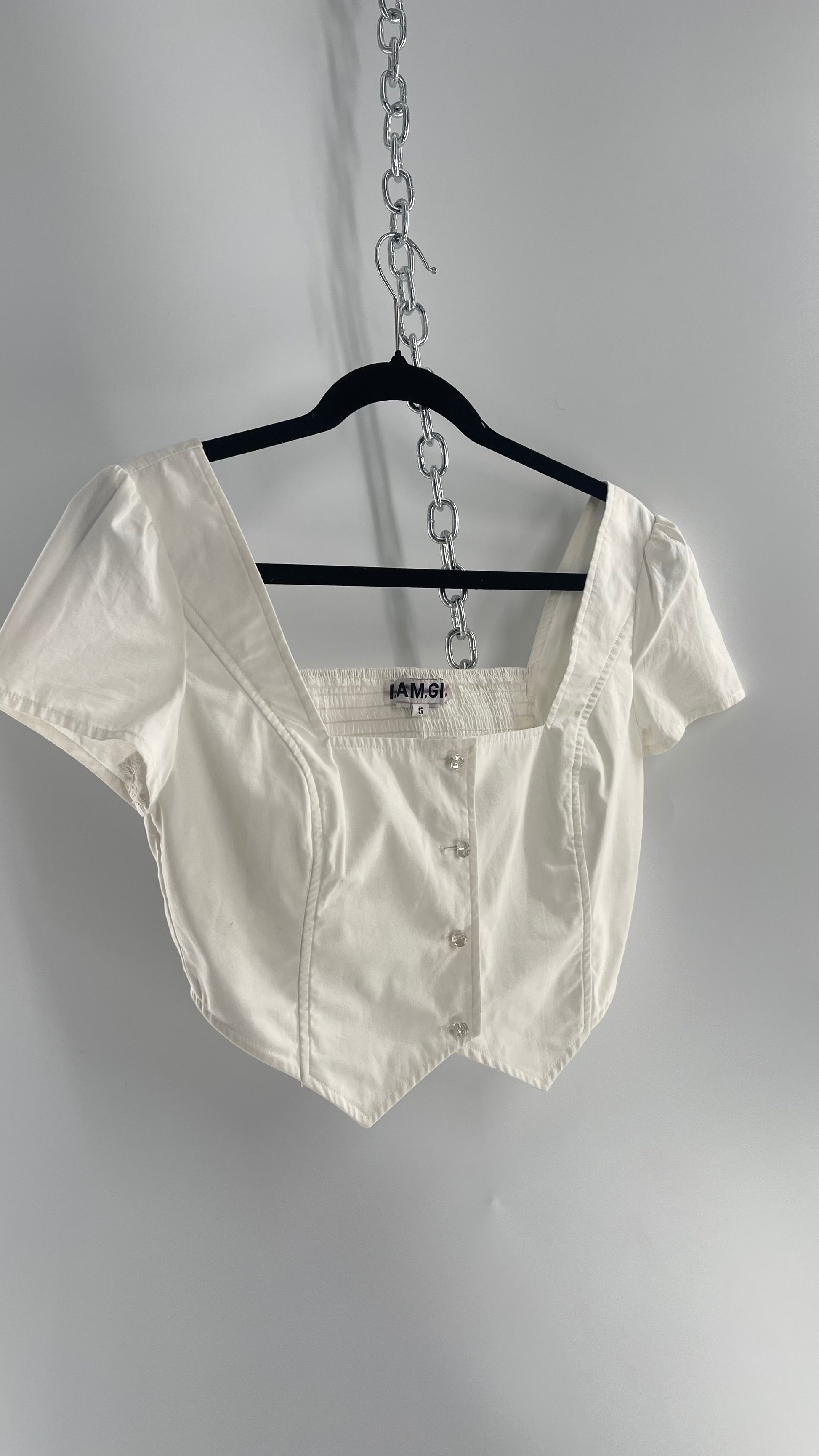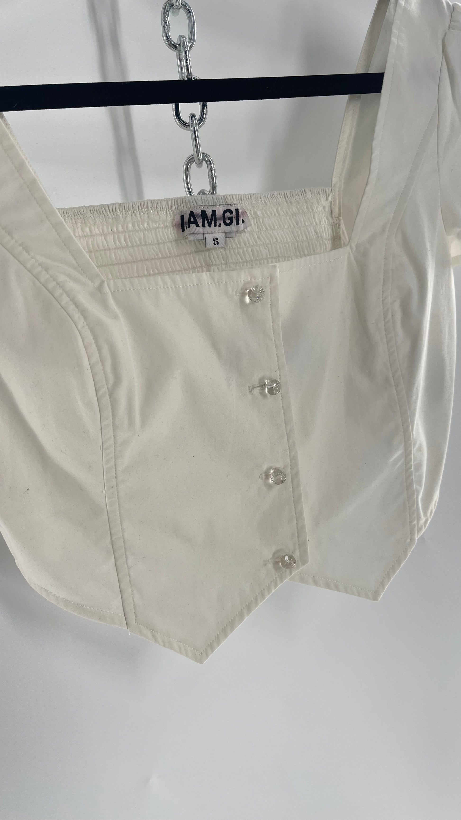 I.AM.GIA White Cropped Vest Top with Bubble Buttons (Small)