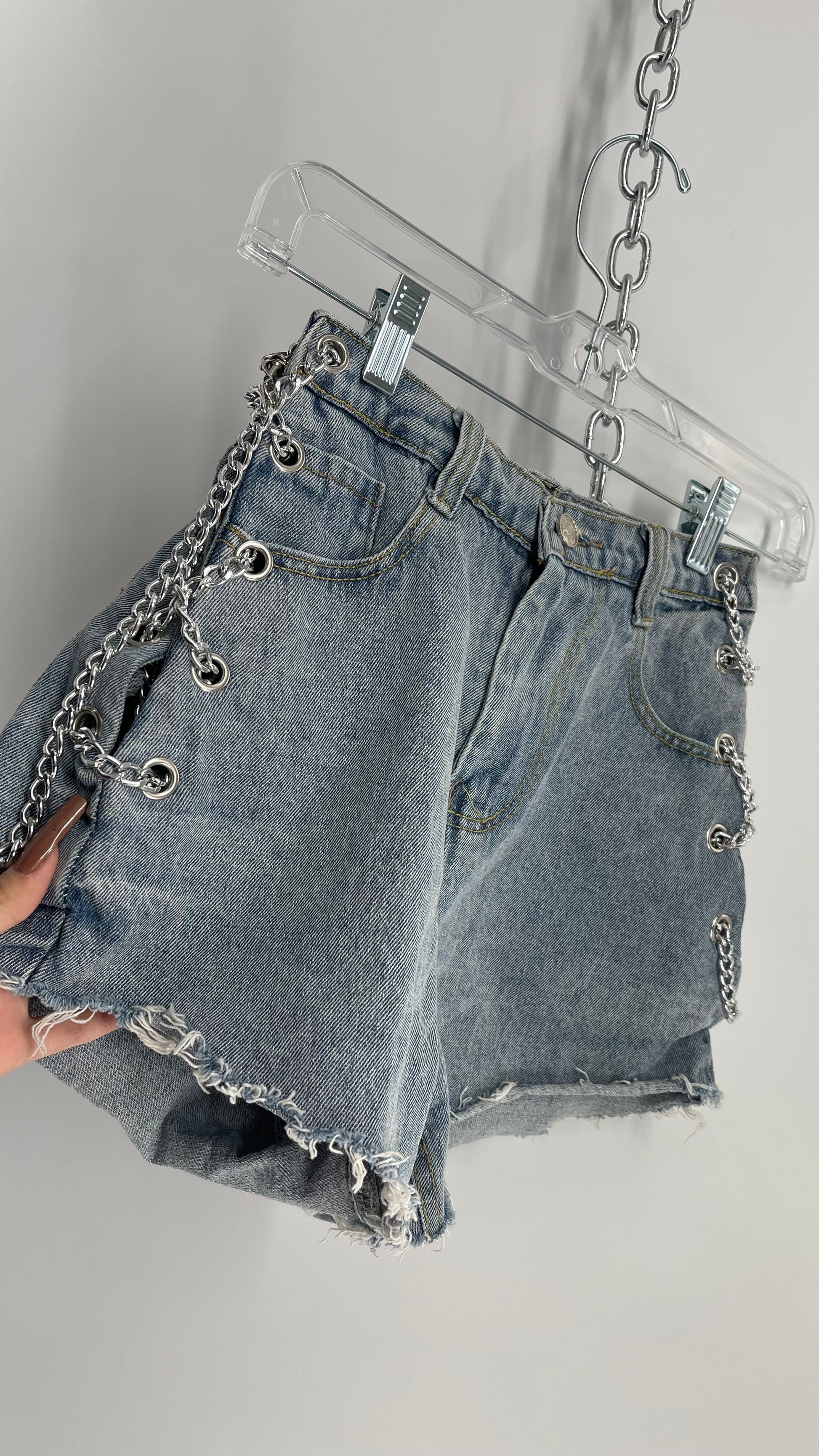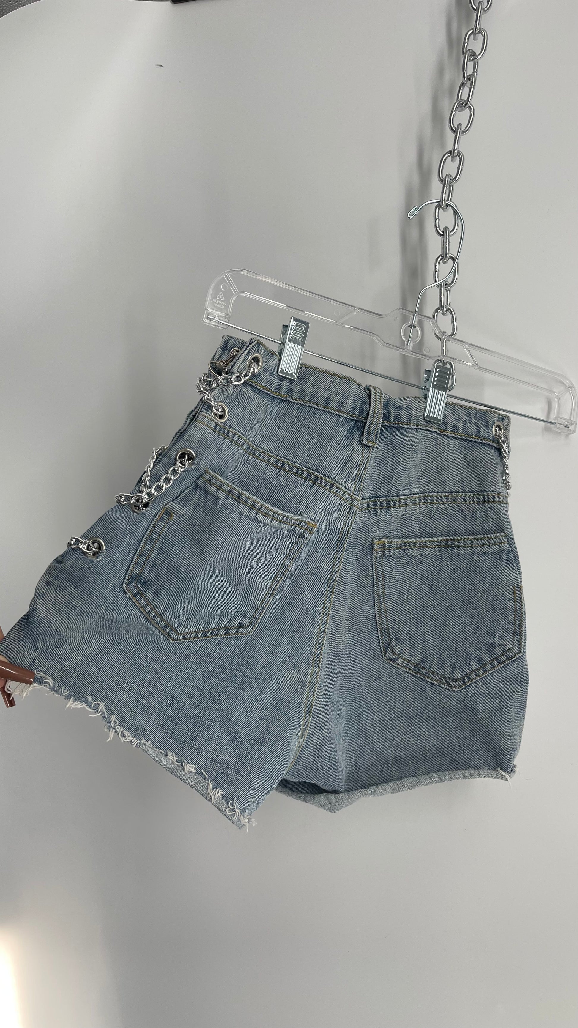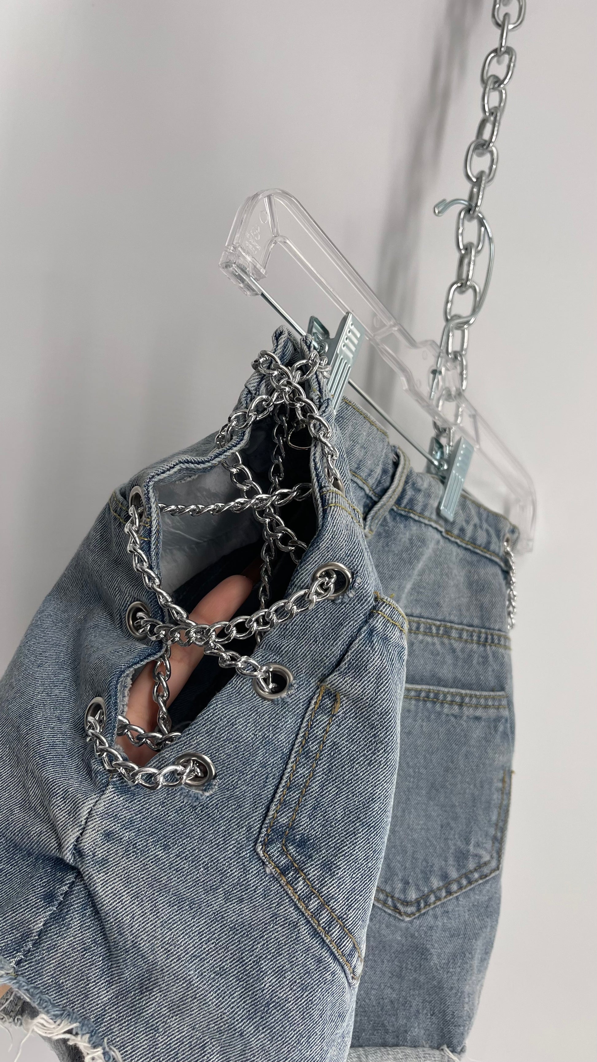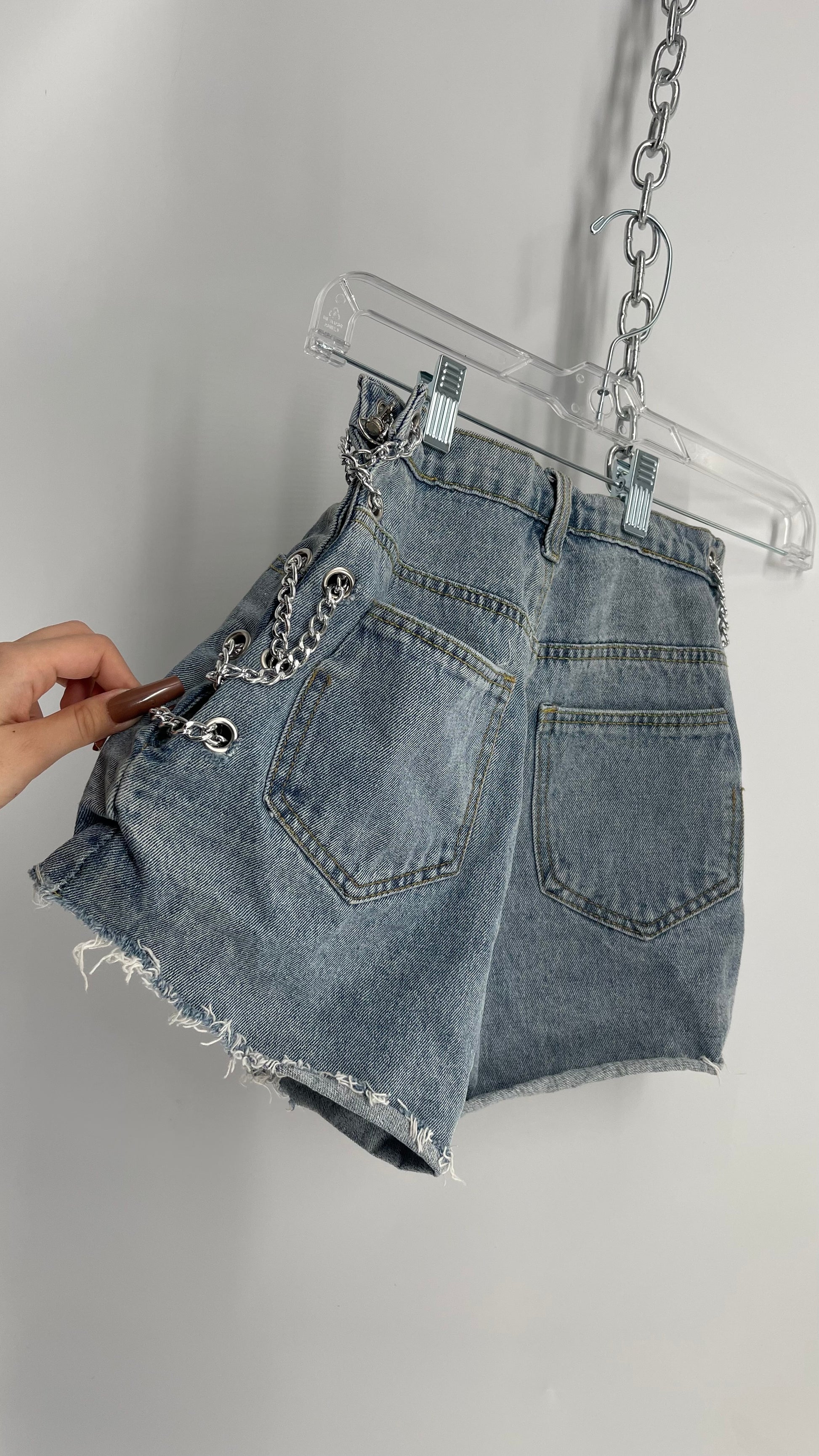 Vintage High Waisted Open, Chain Side Denim Shorts (Small)