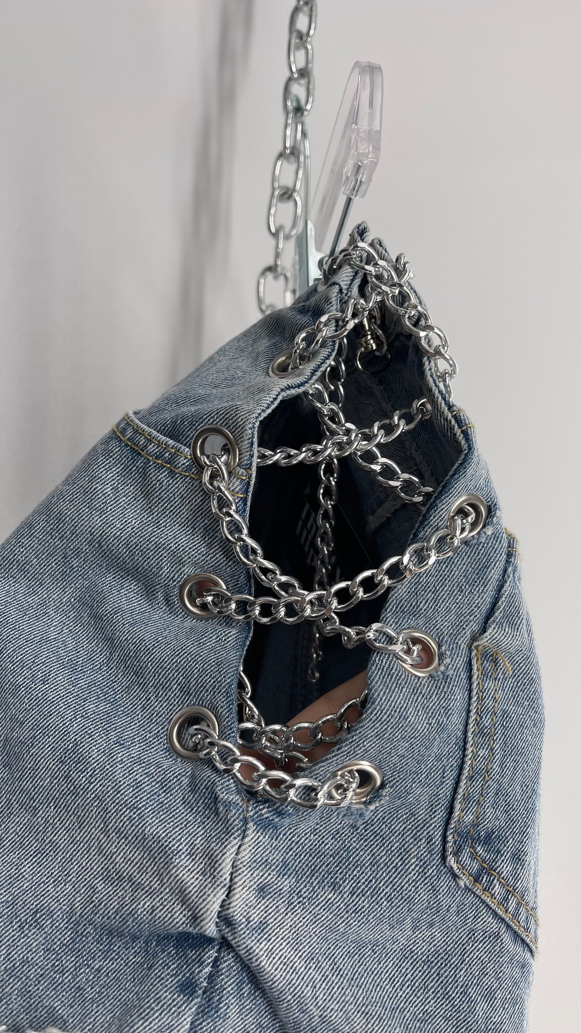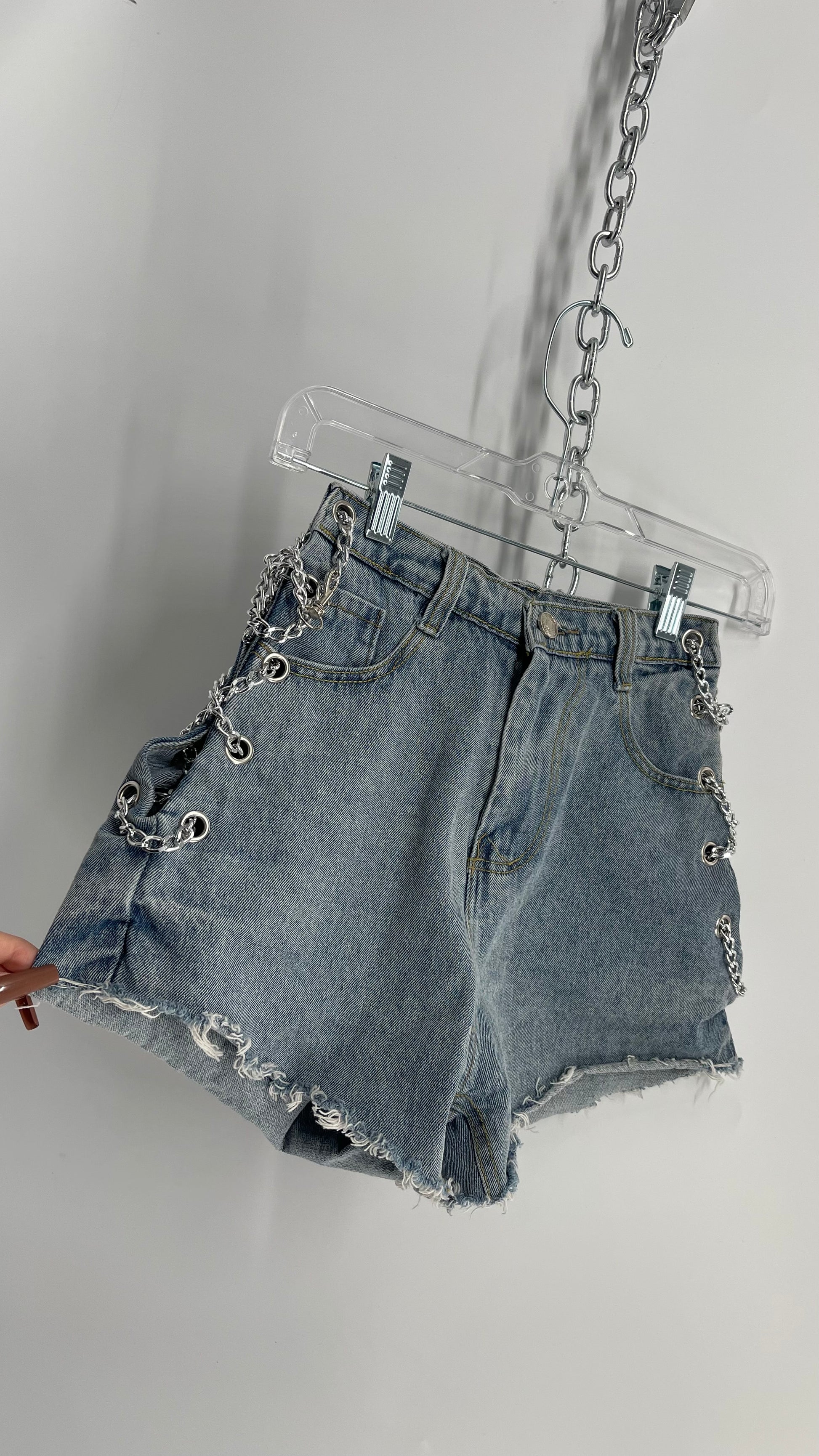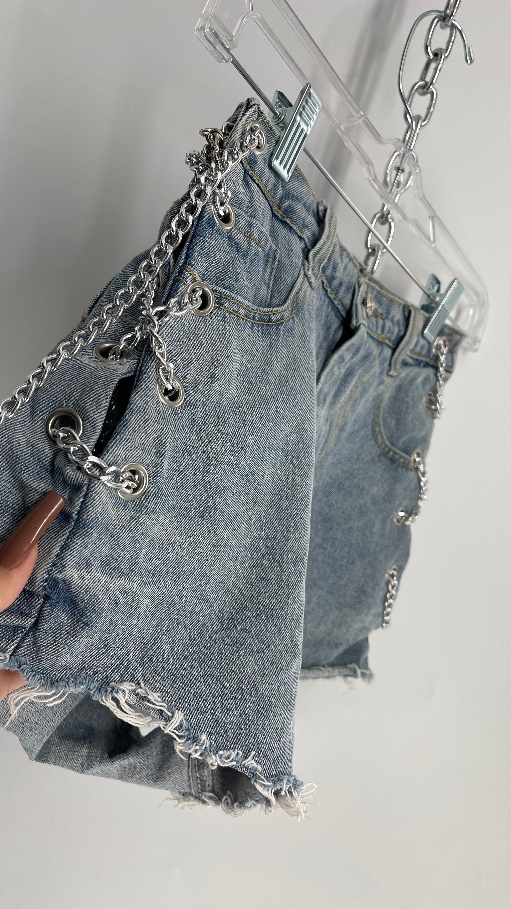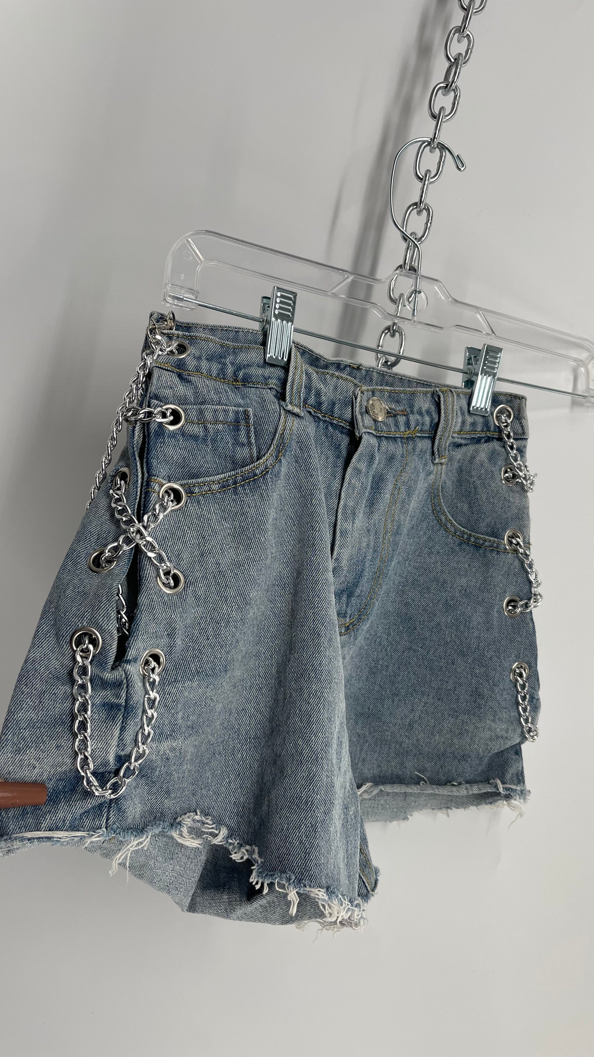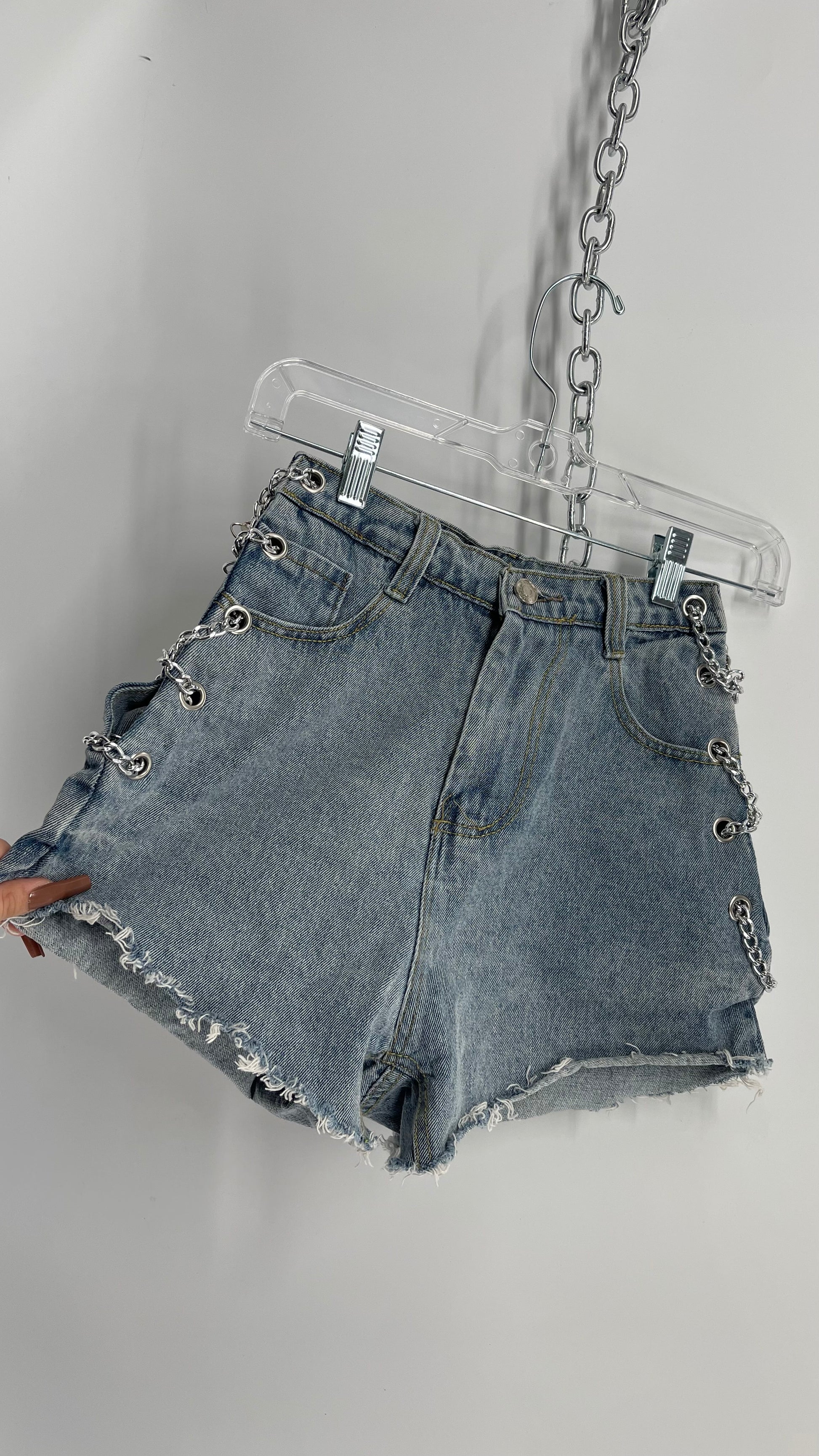 Vintage High Waisted Open, Chain Side Denim Shorts (Small)