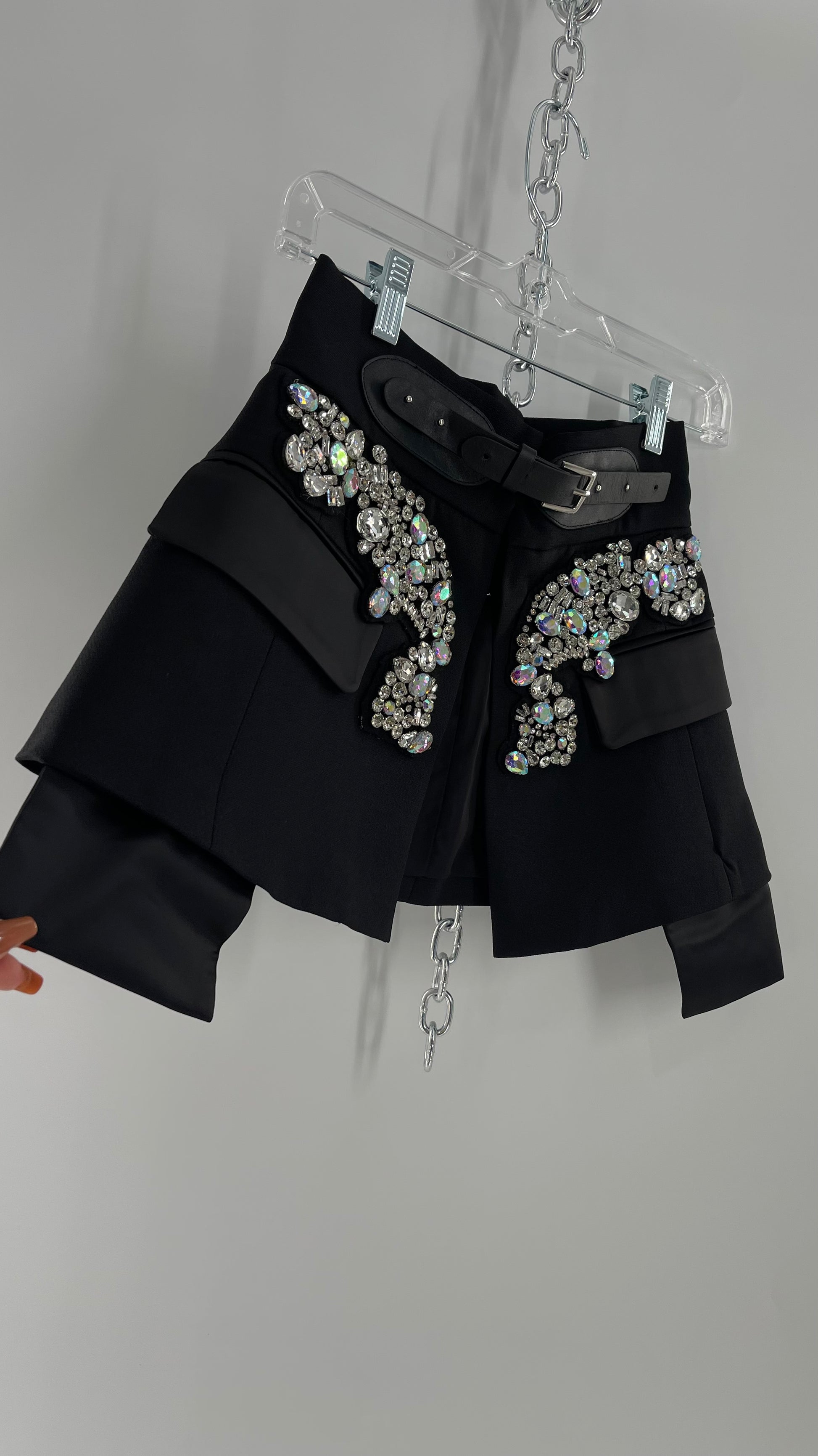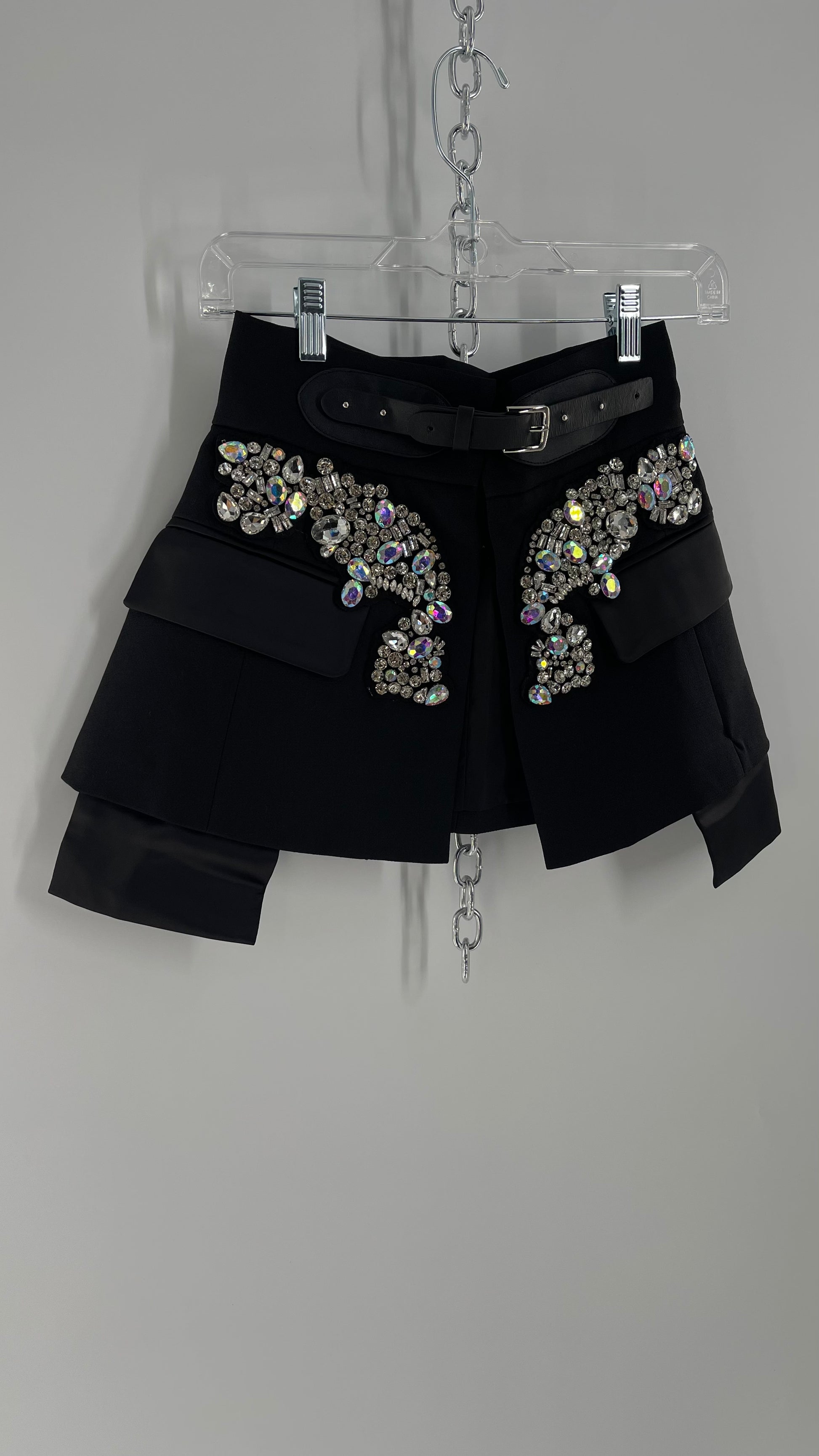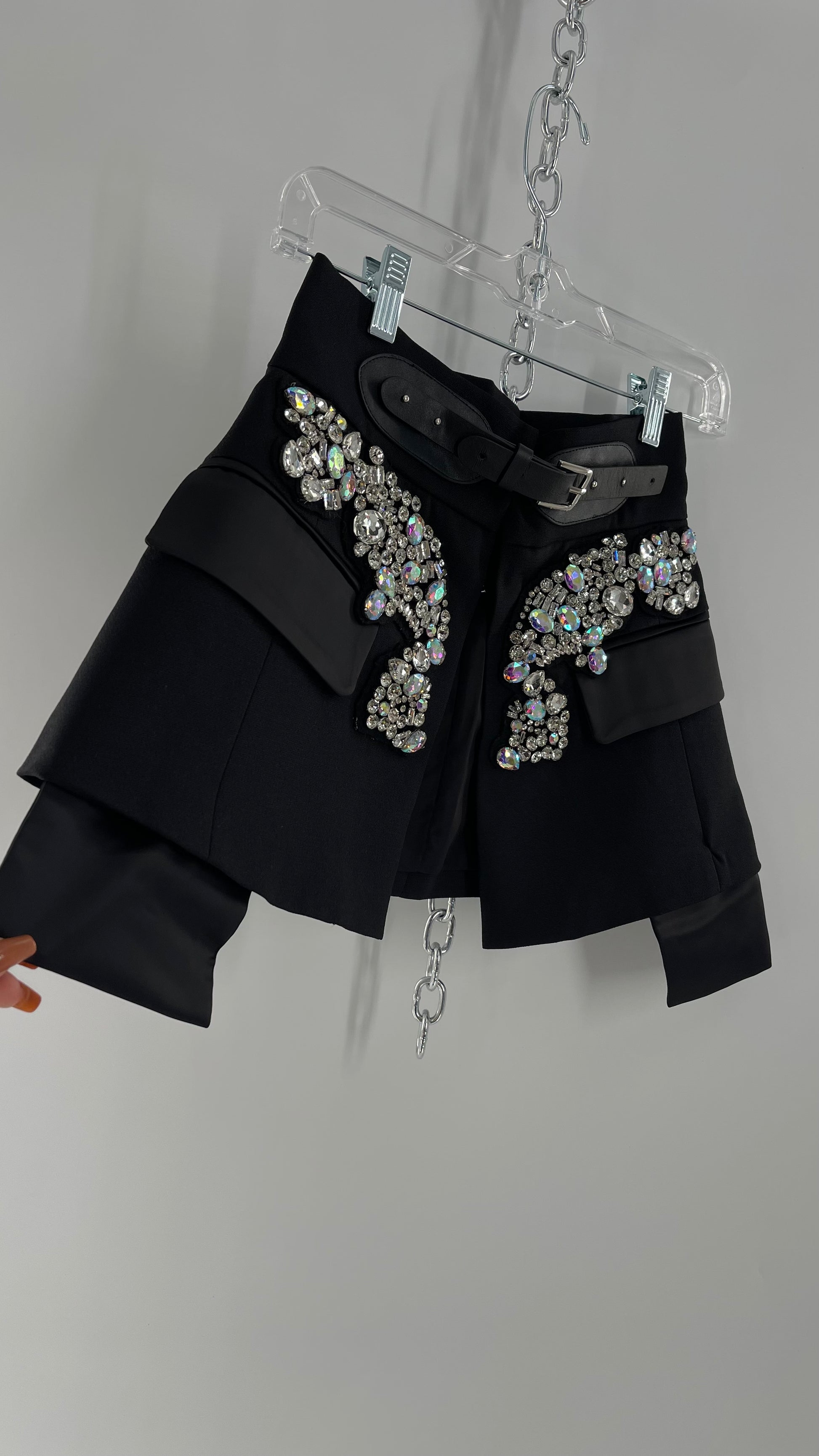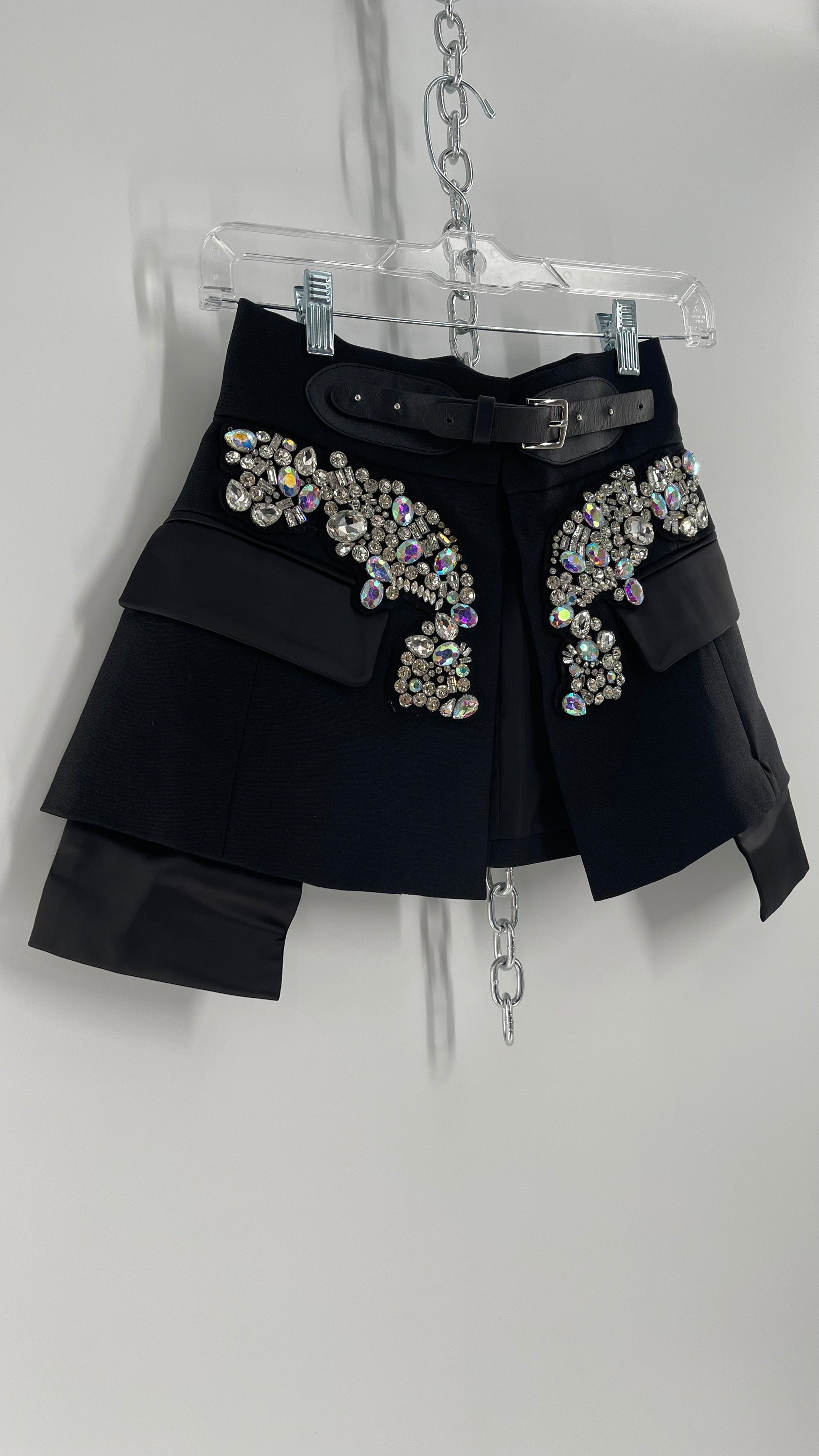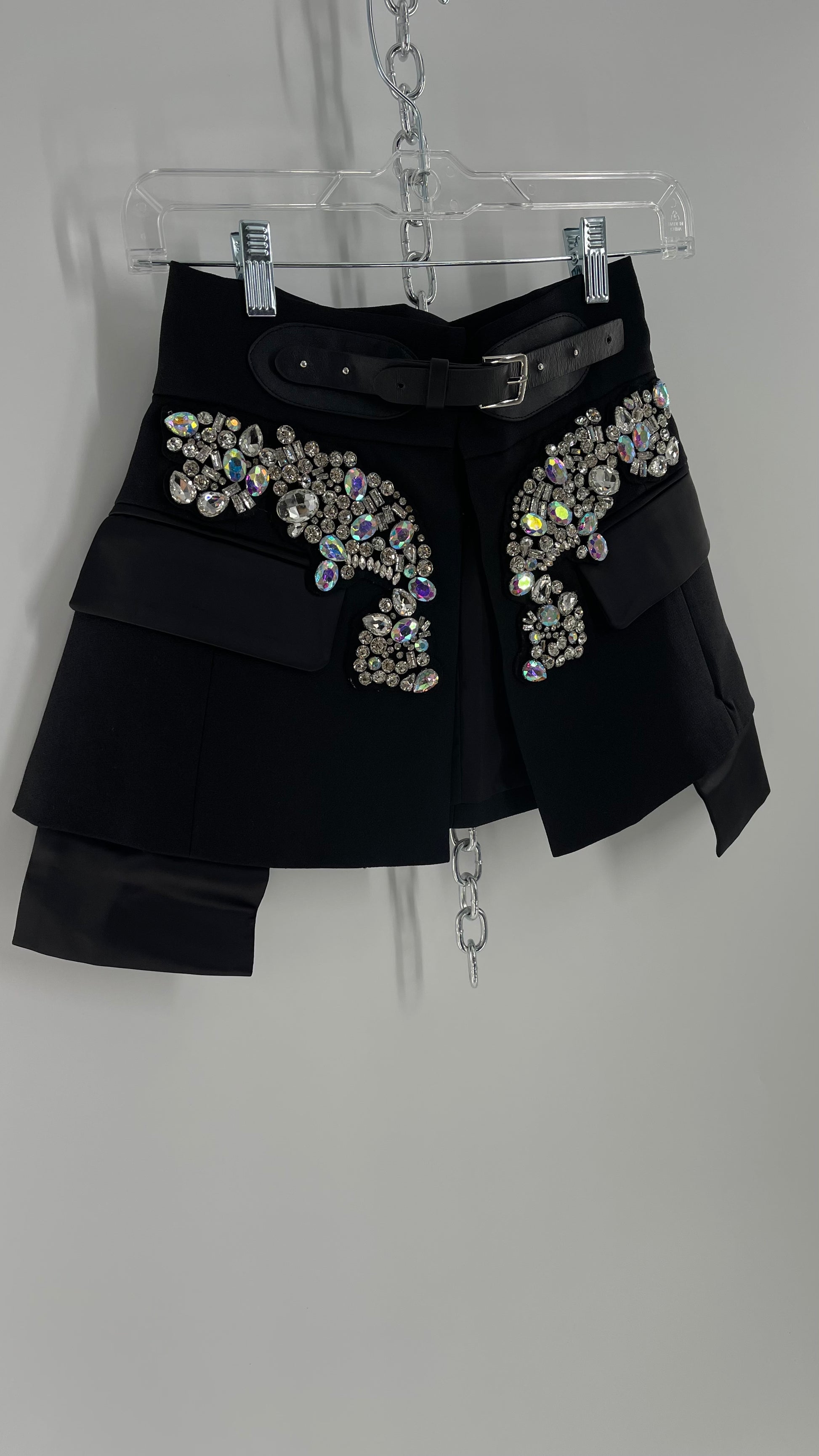 Black Skirt Belt Covered in Crystal Embellishments with Satin Flap Pockets (Medium)