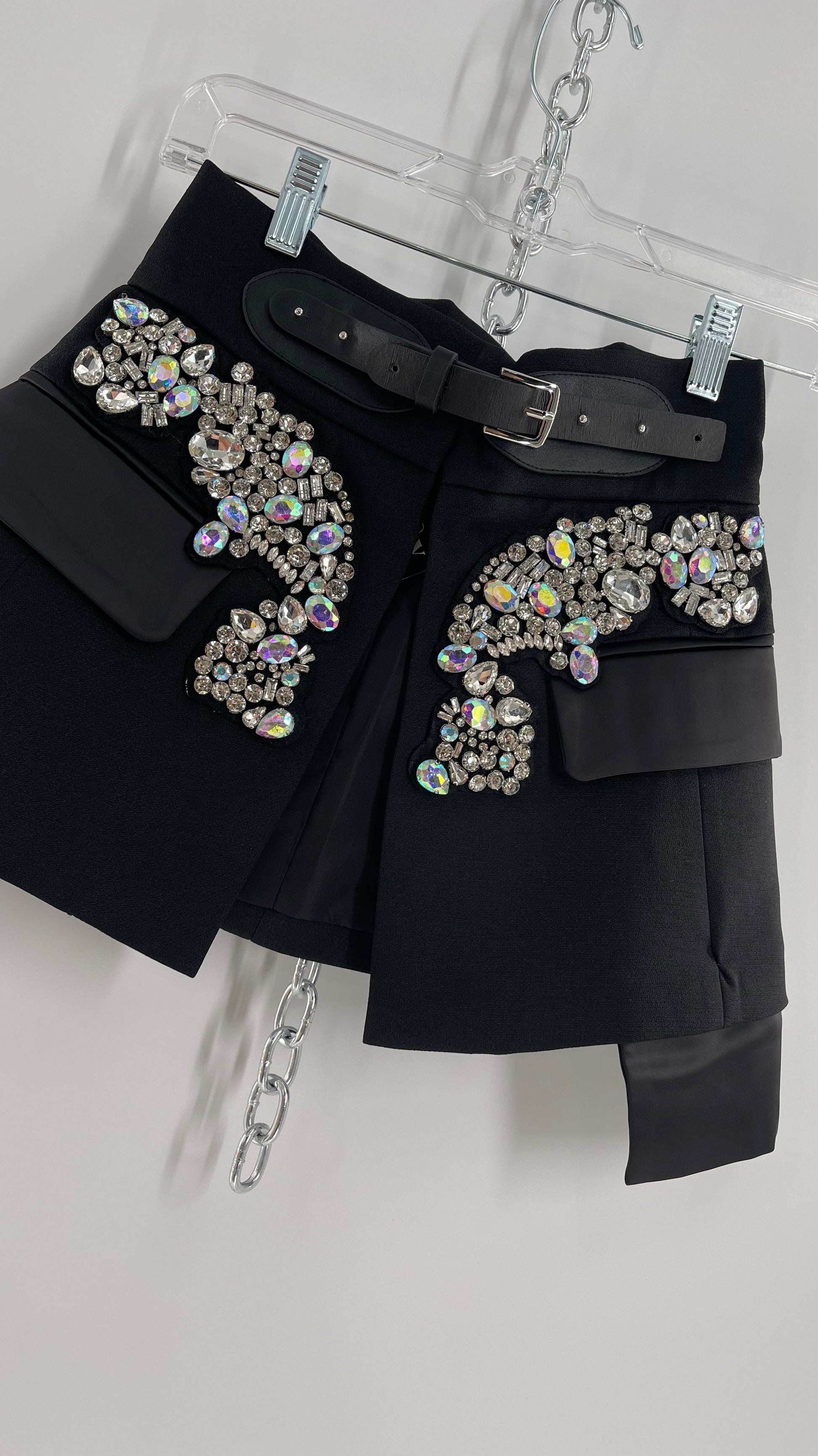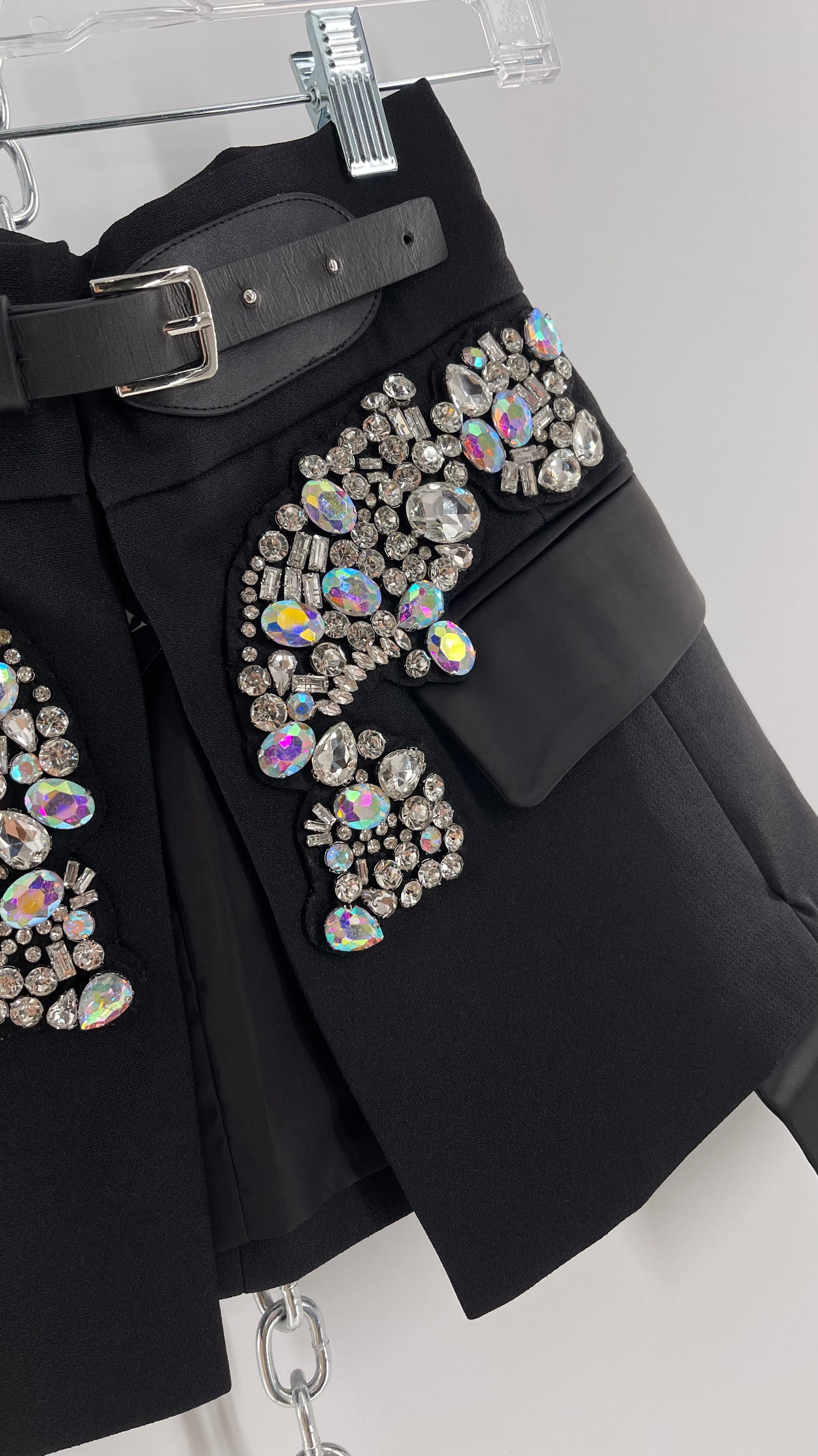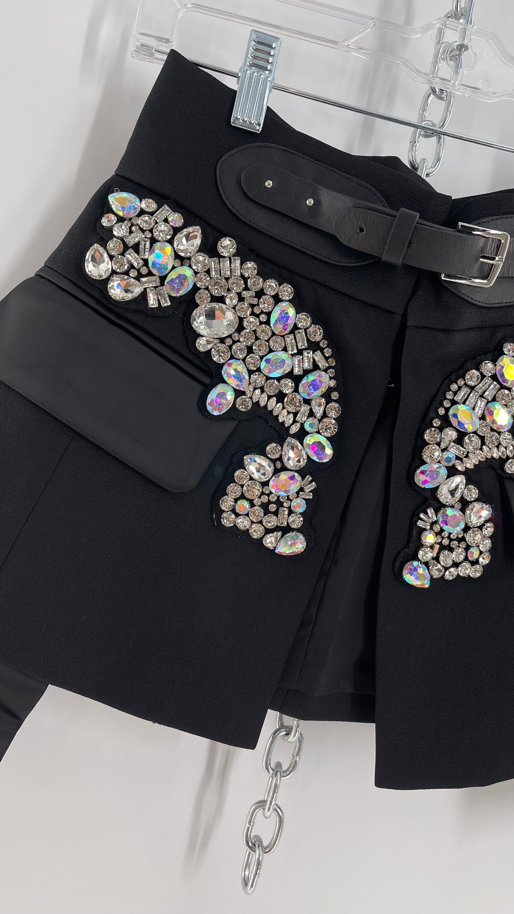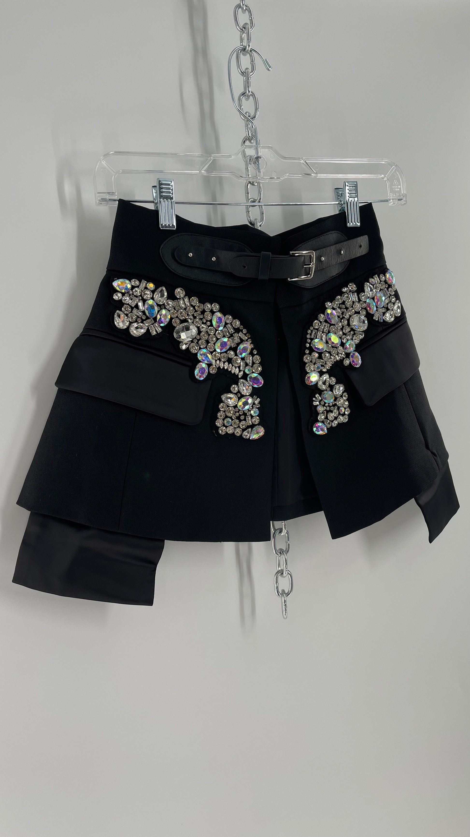 Black Skirt Belt Covered in Crystal Embellishments with Satin Flap Pockets (Medium)