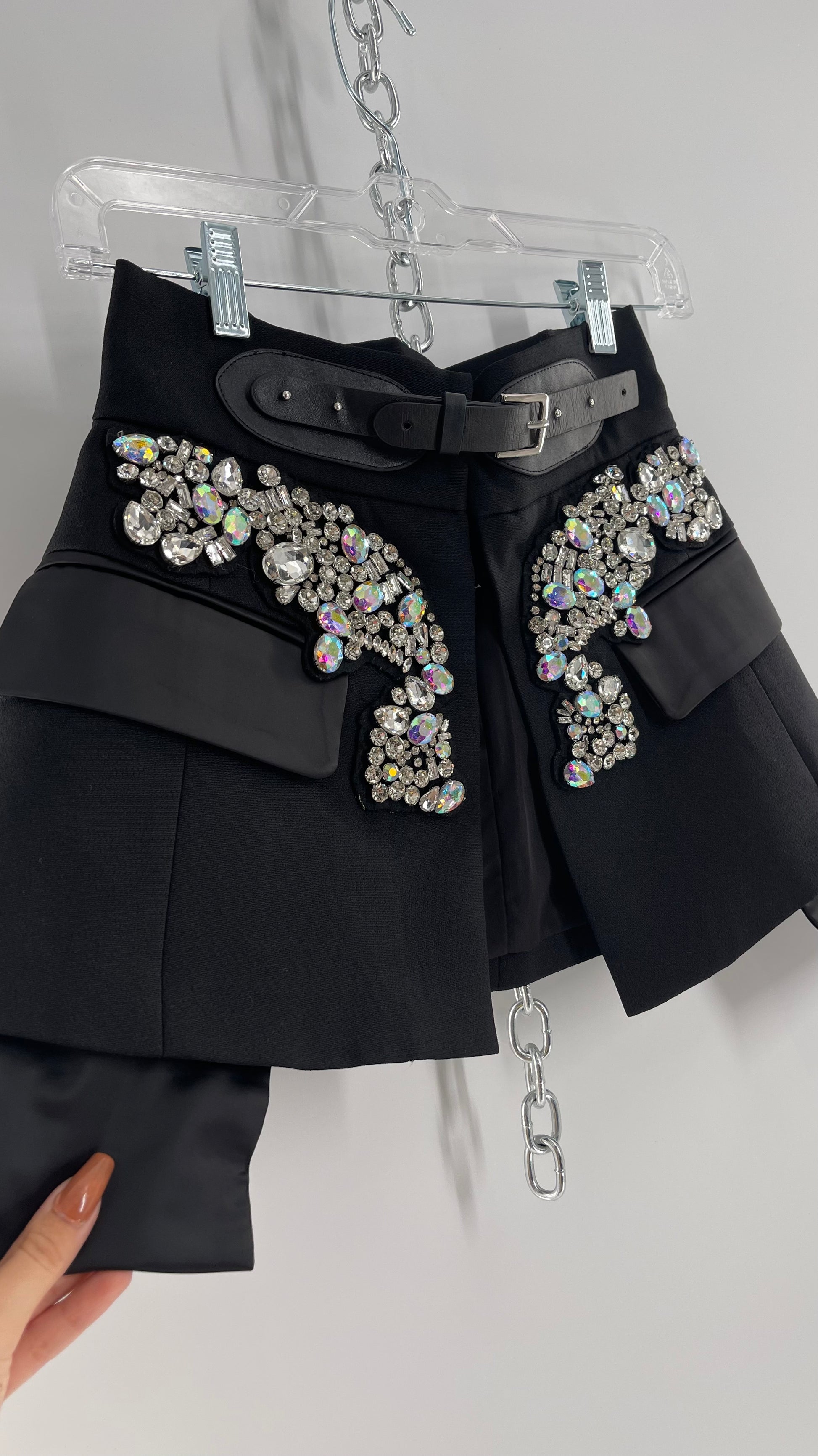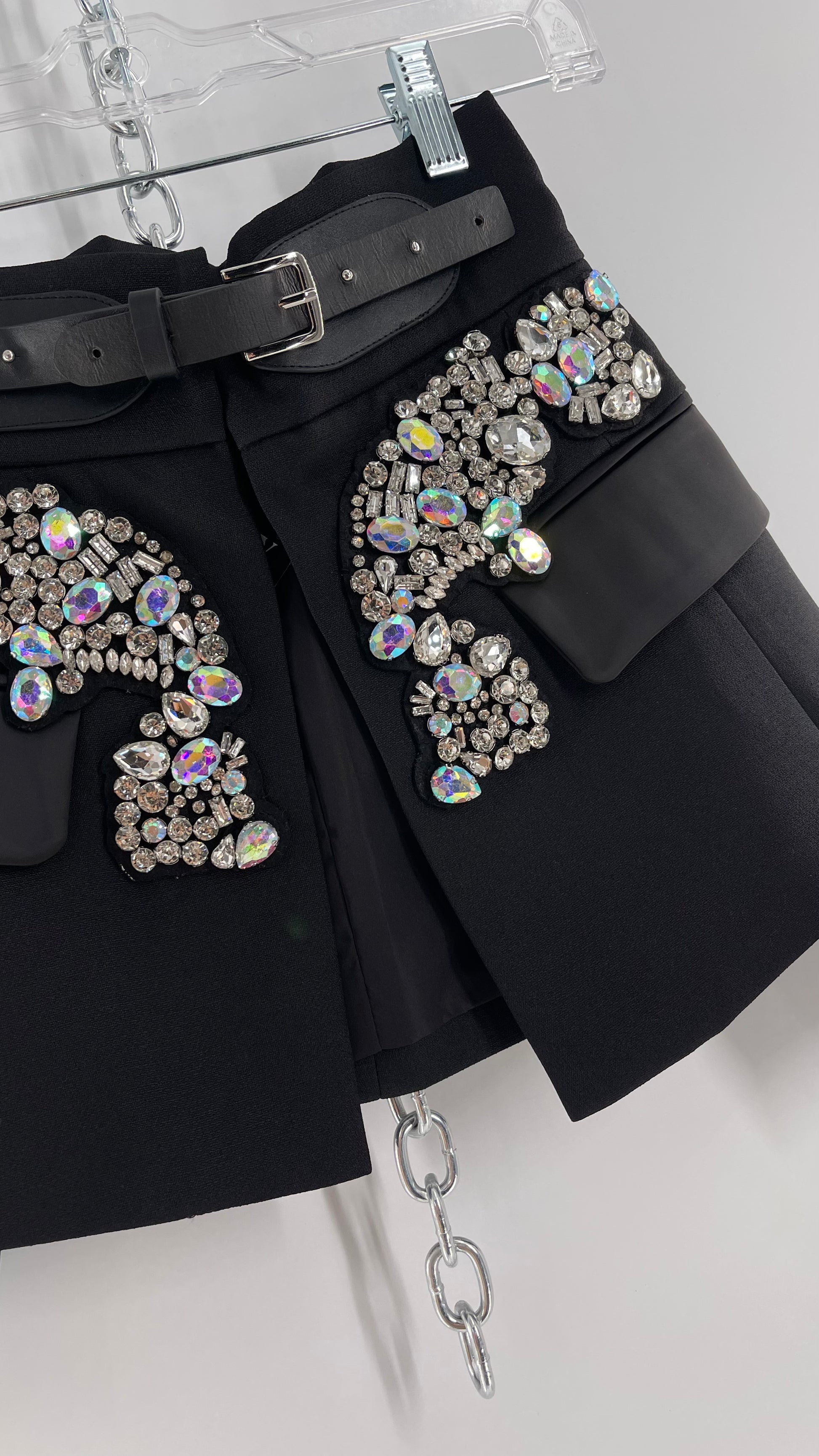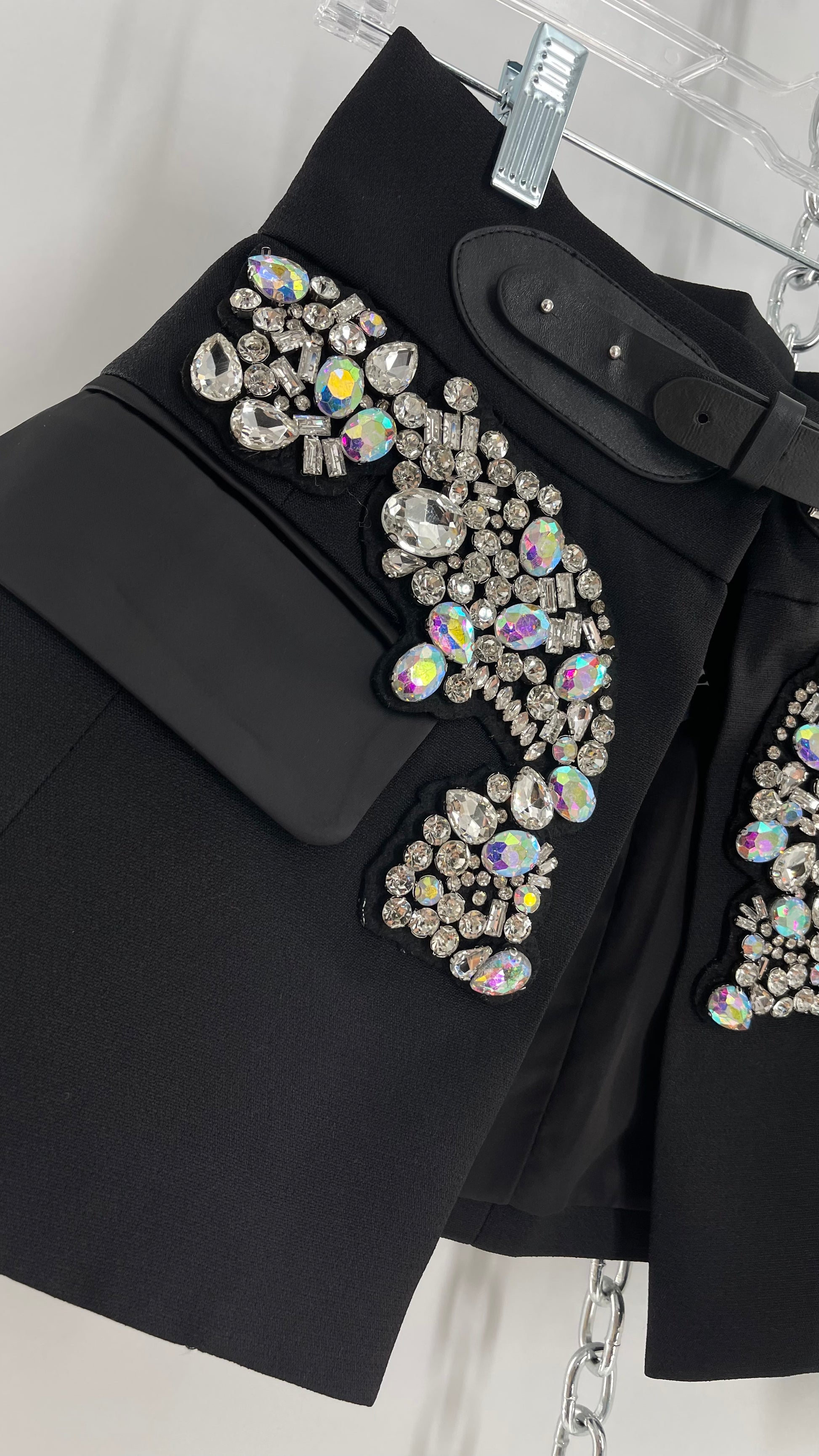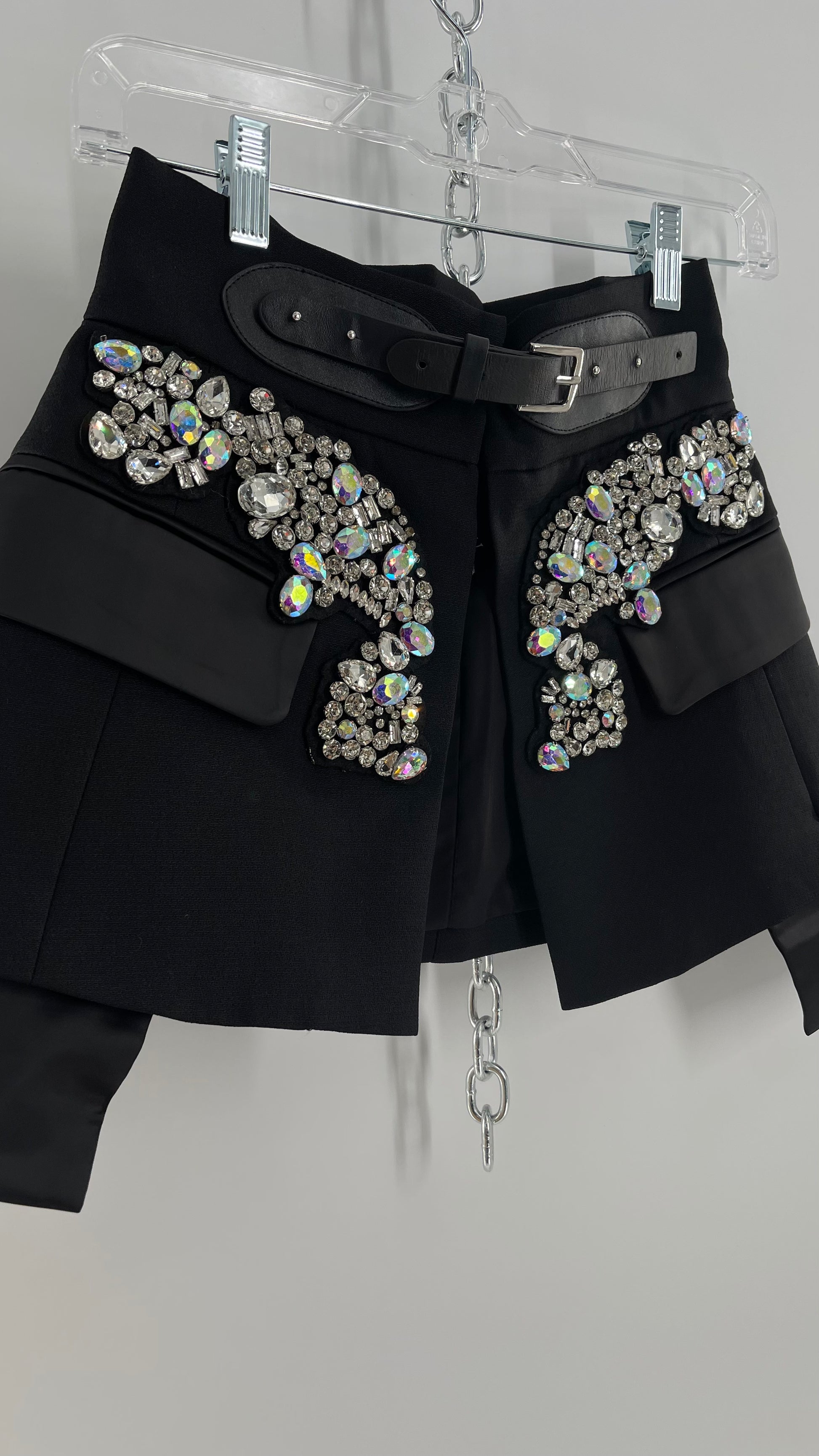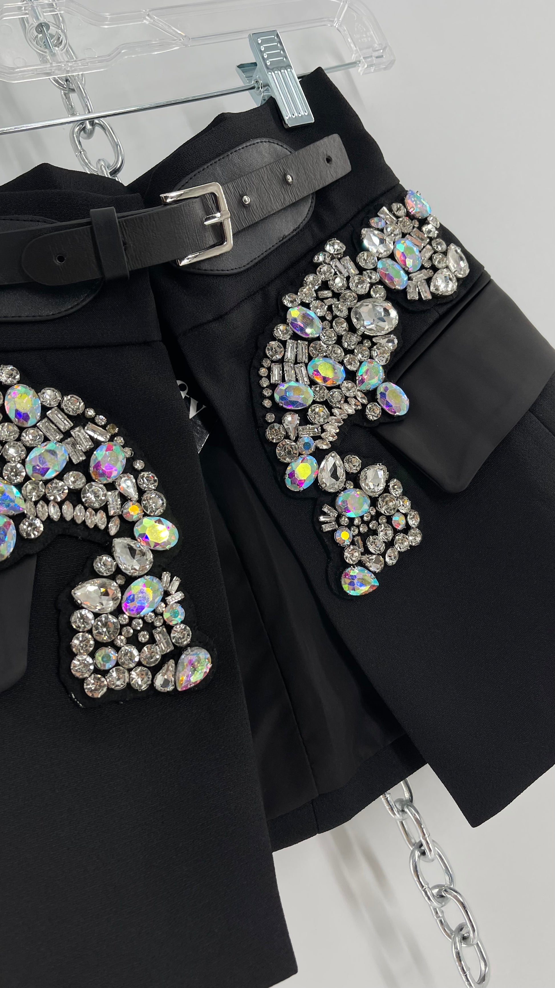 Black Skirt Belt Covered in Crystal Embellishments with Satin Flap Pockets (Medium)