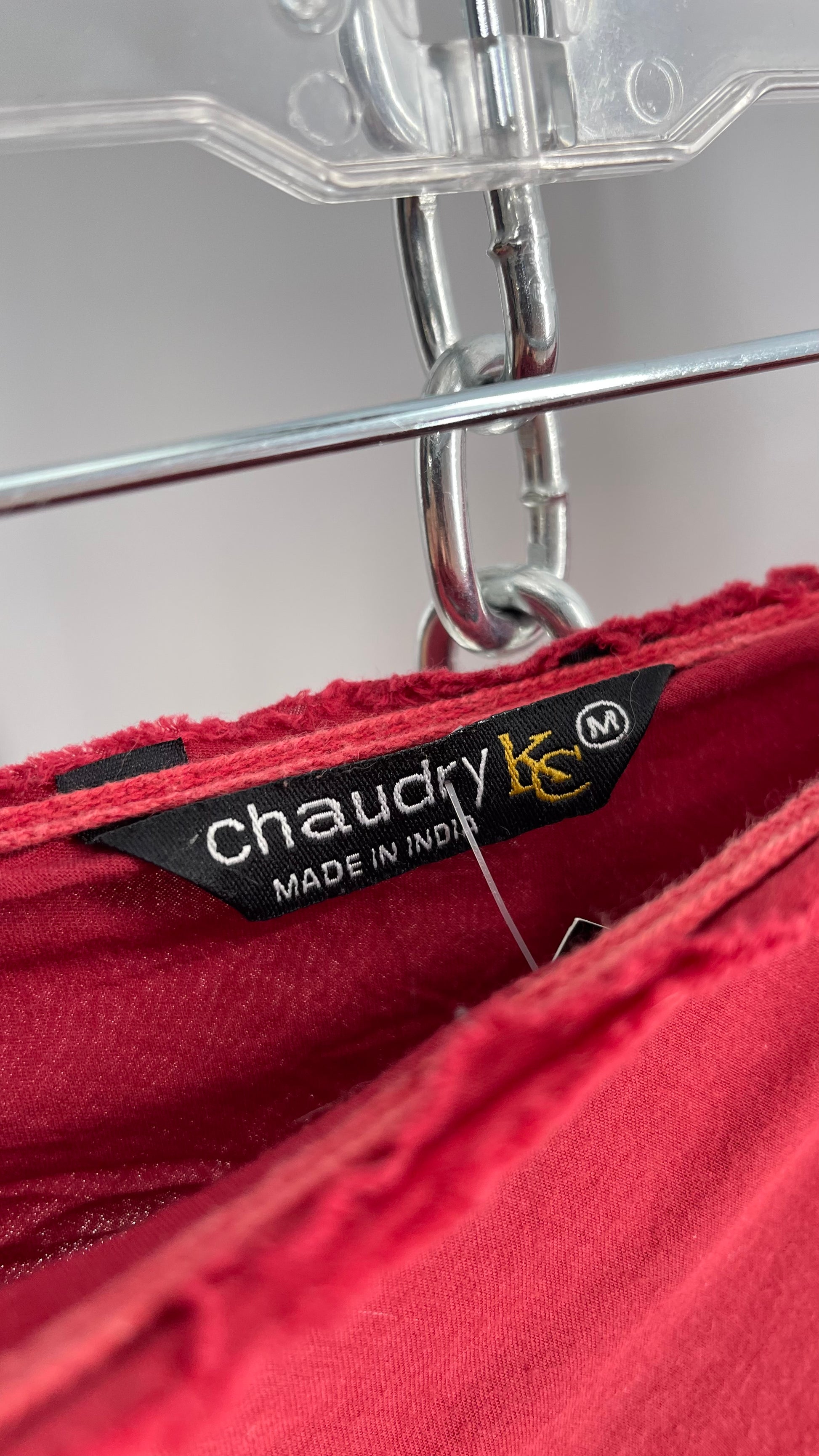 Vintage Chaudry Red/Pink Tiered Voluminous Maxi Skirt (Medium)