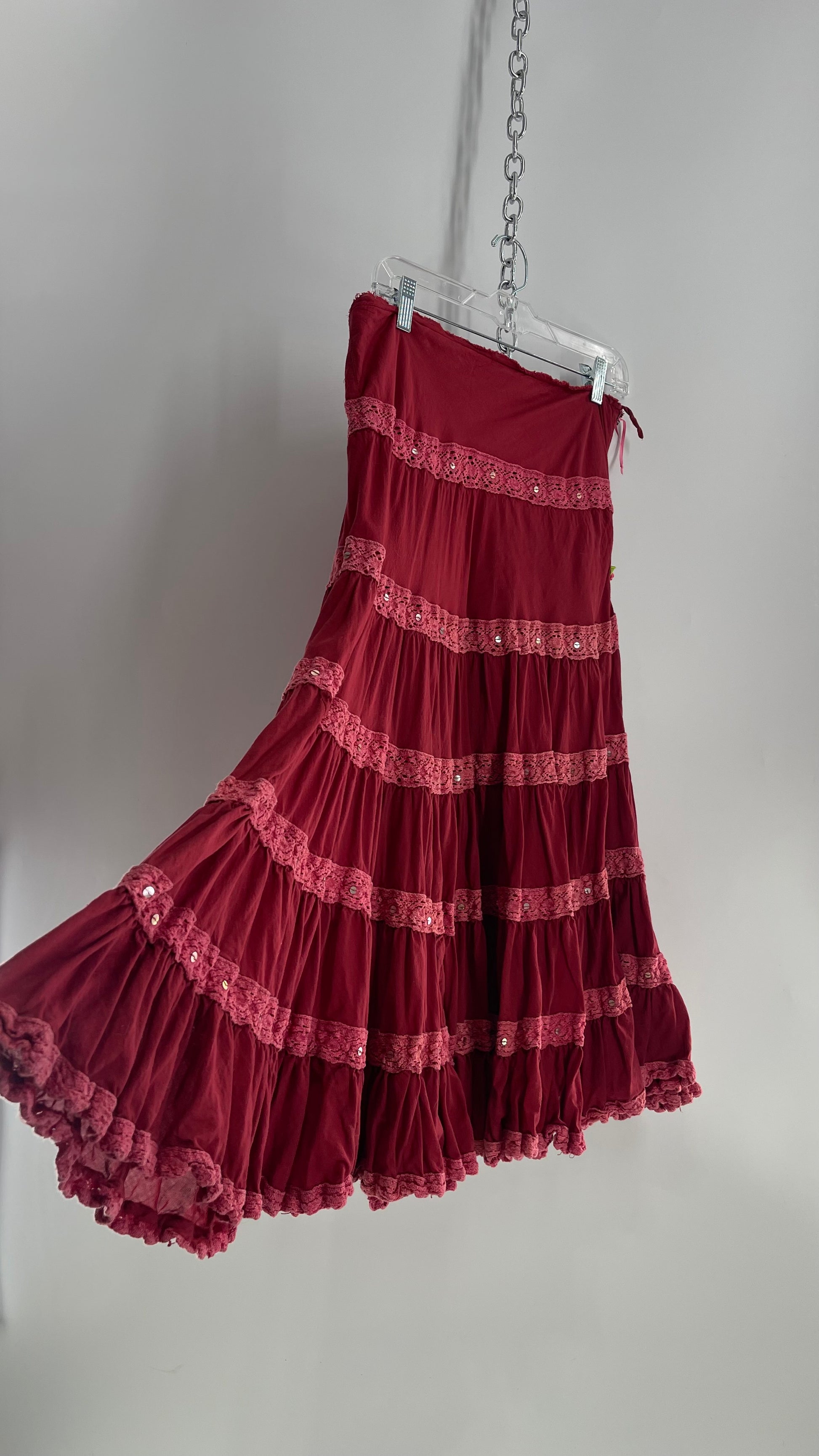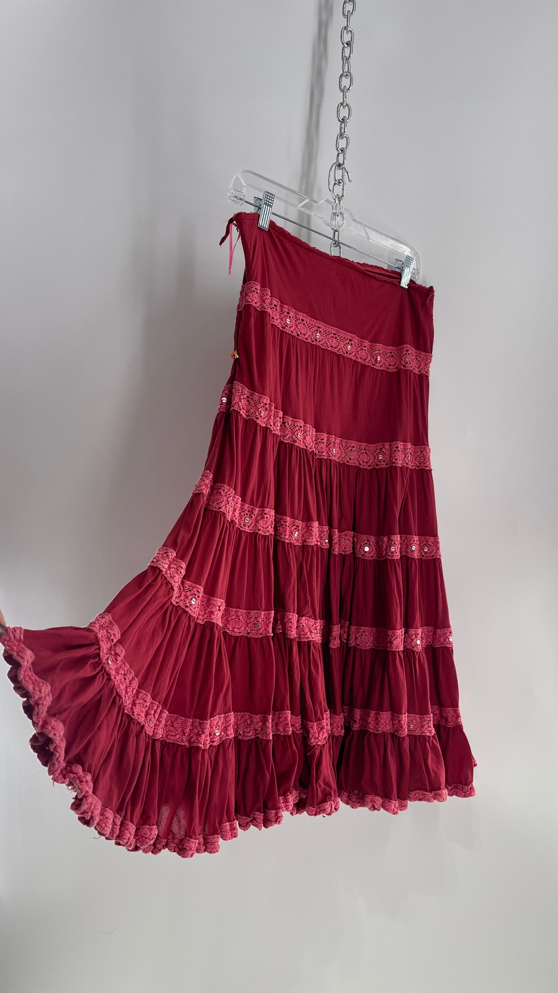 Vintage Chaudry Red/Pink Tiered Voluminous Maxi Skirt