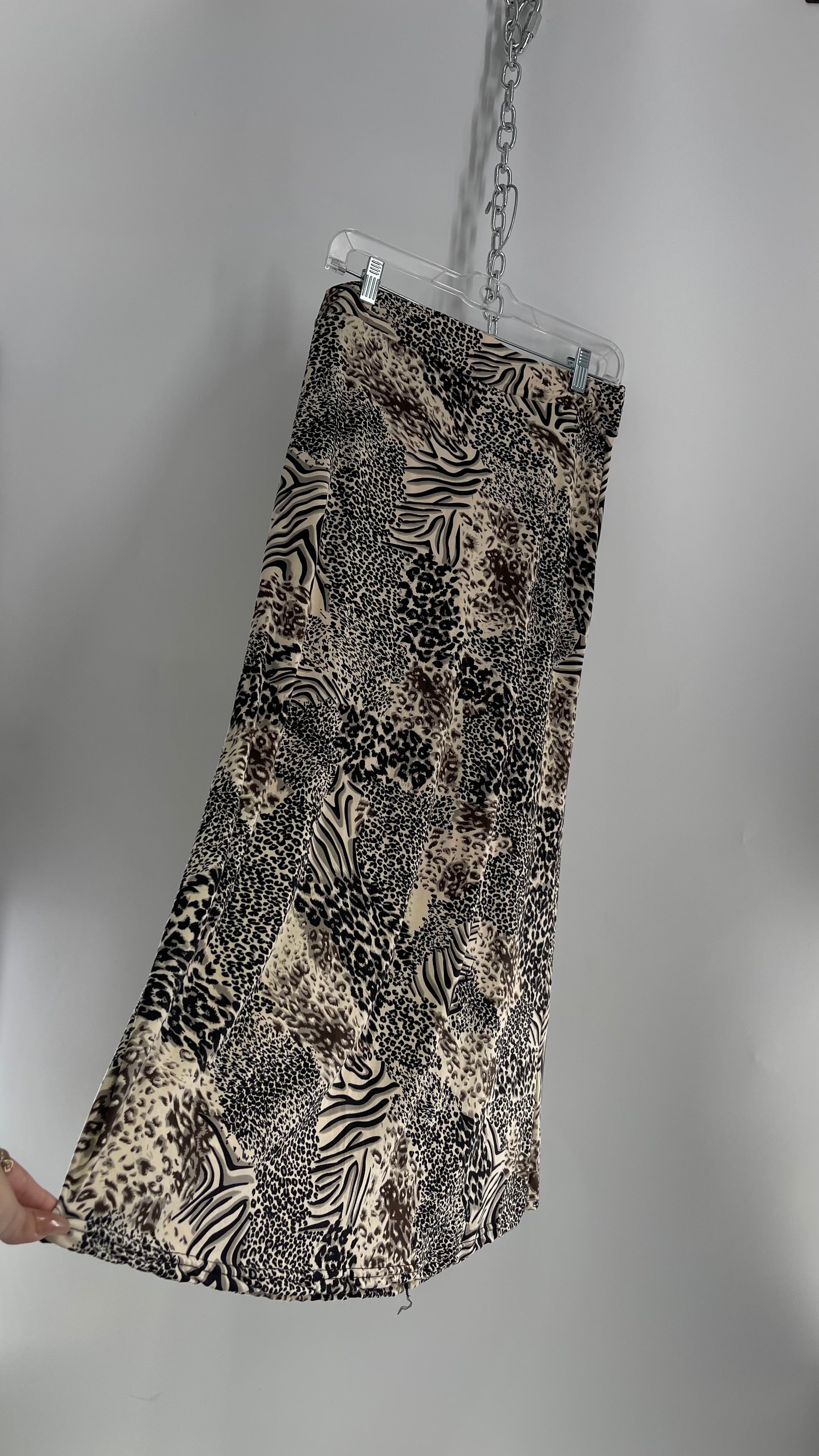 Vintage 1990s BUZZ Leopard Animal Print Full Length Skirt (Medium)