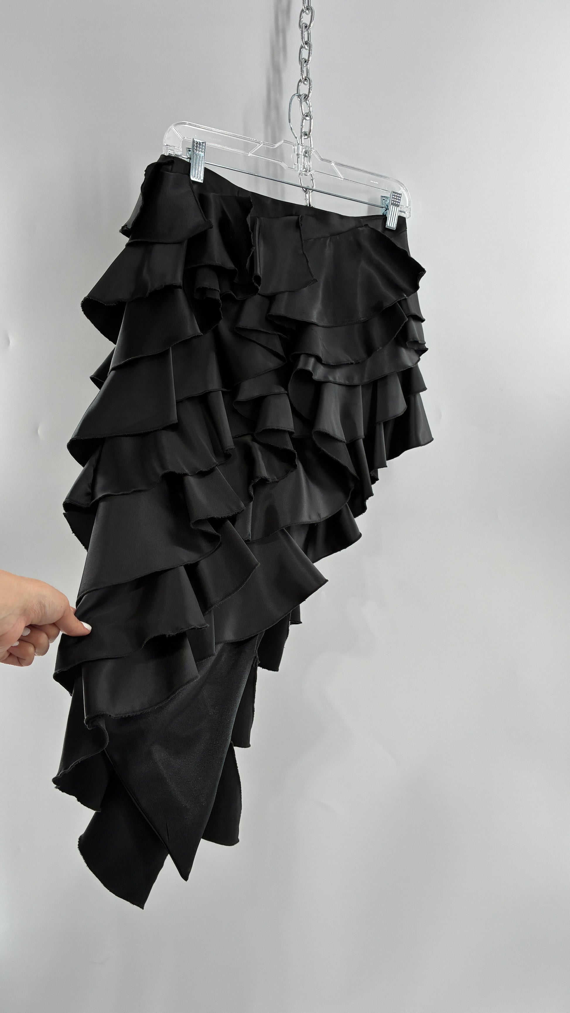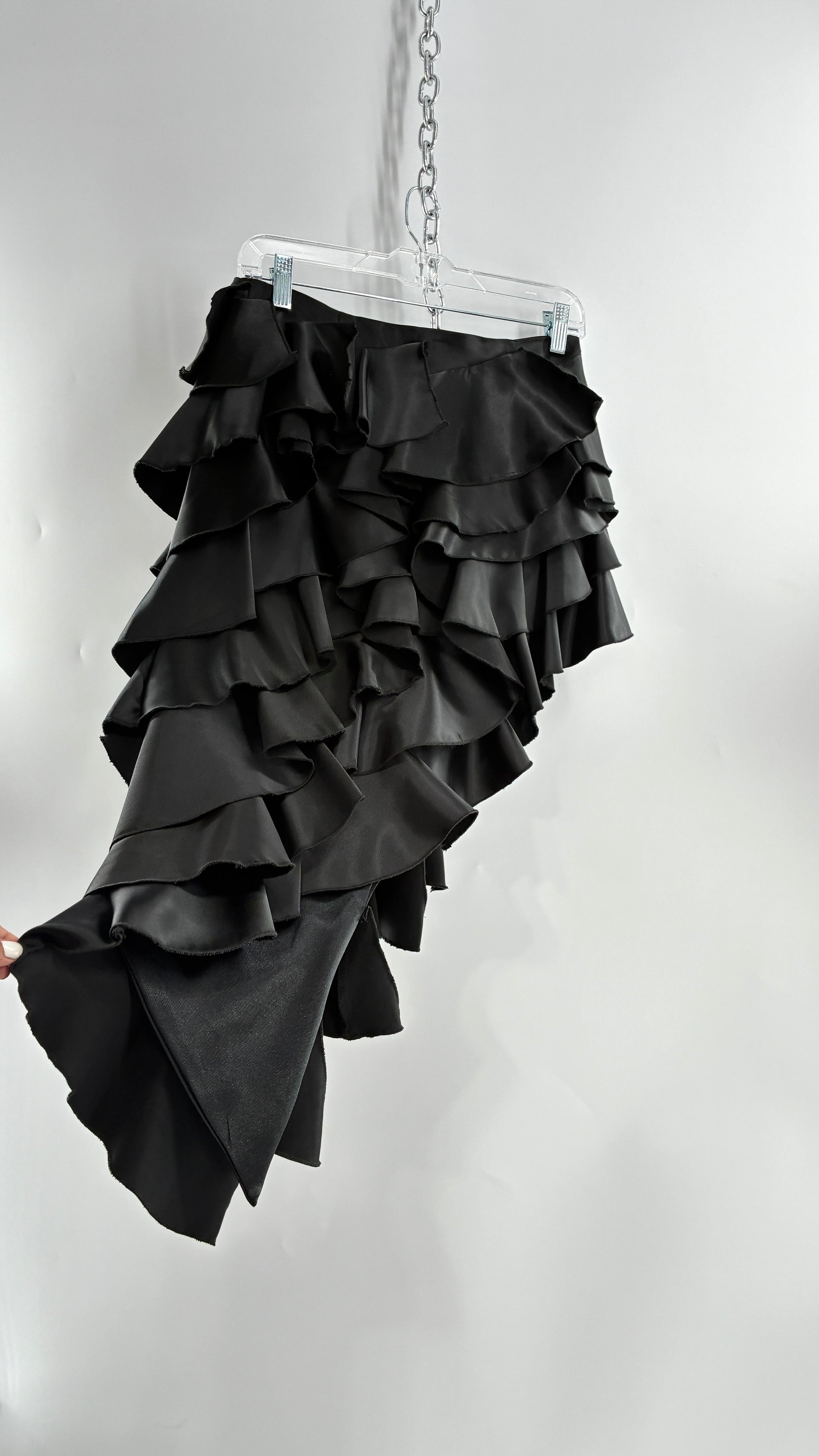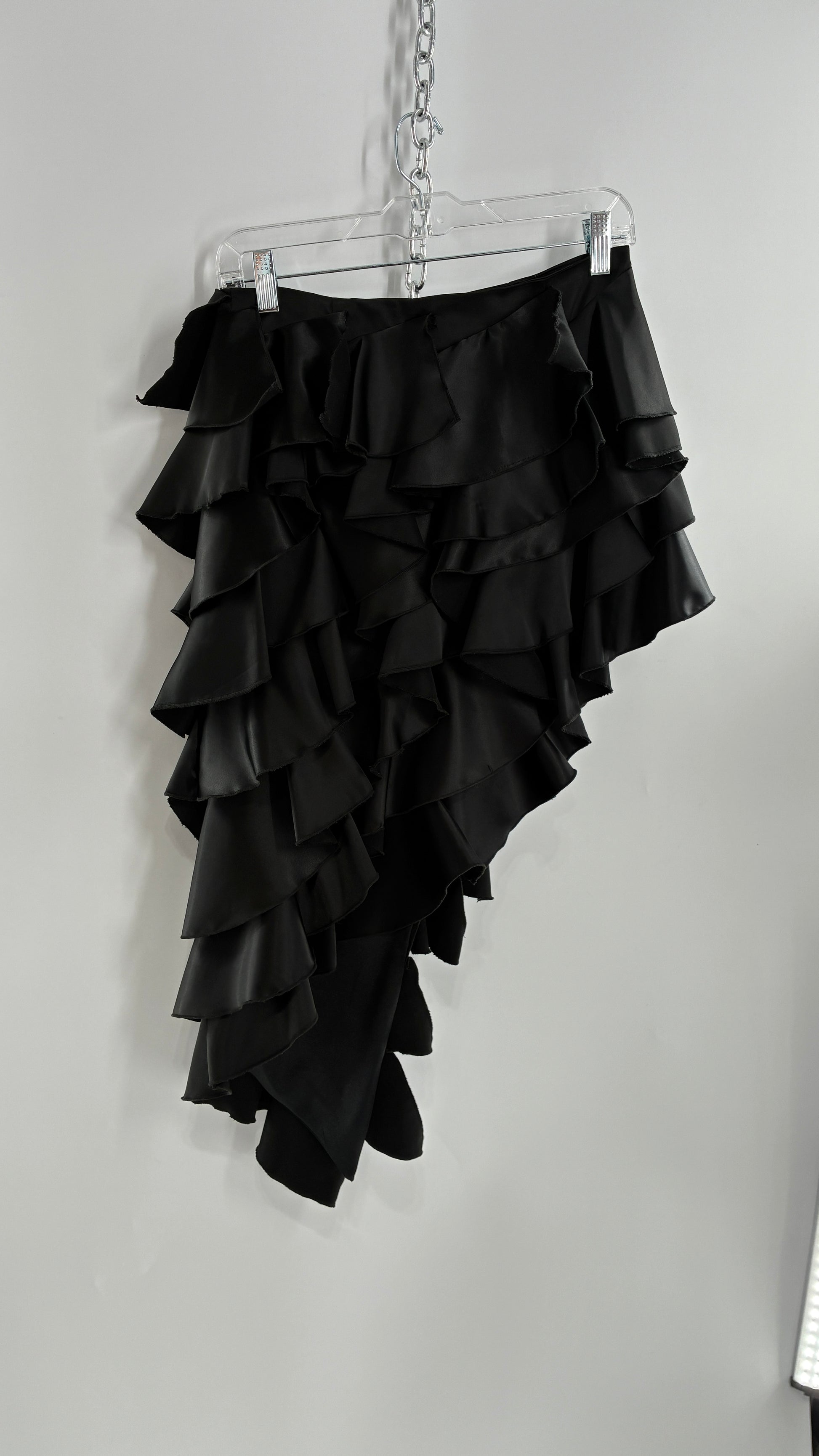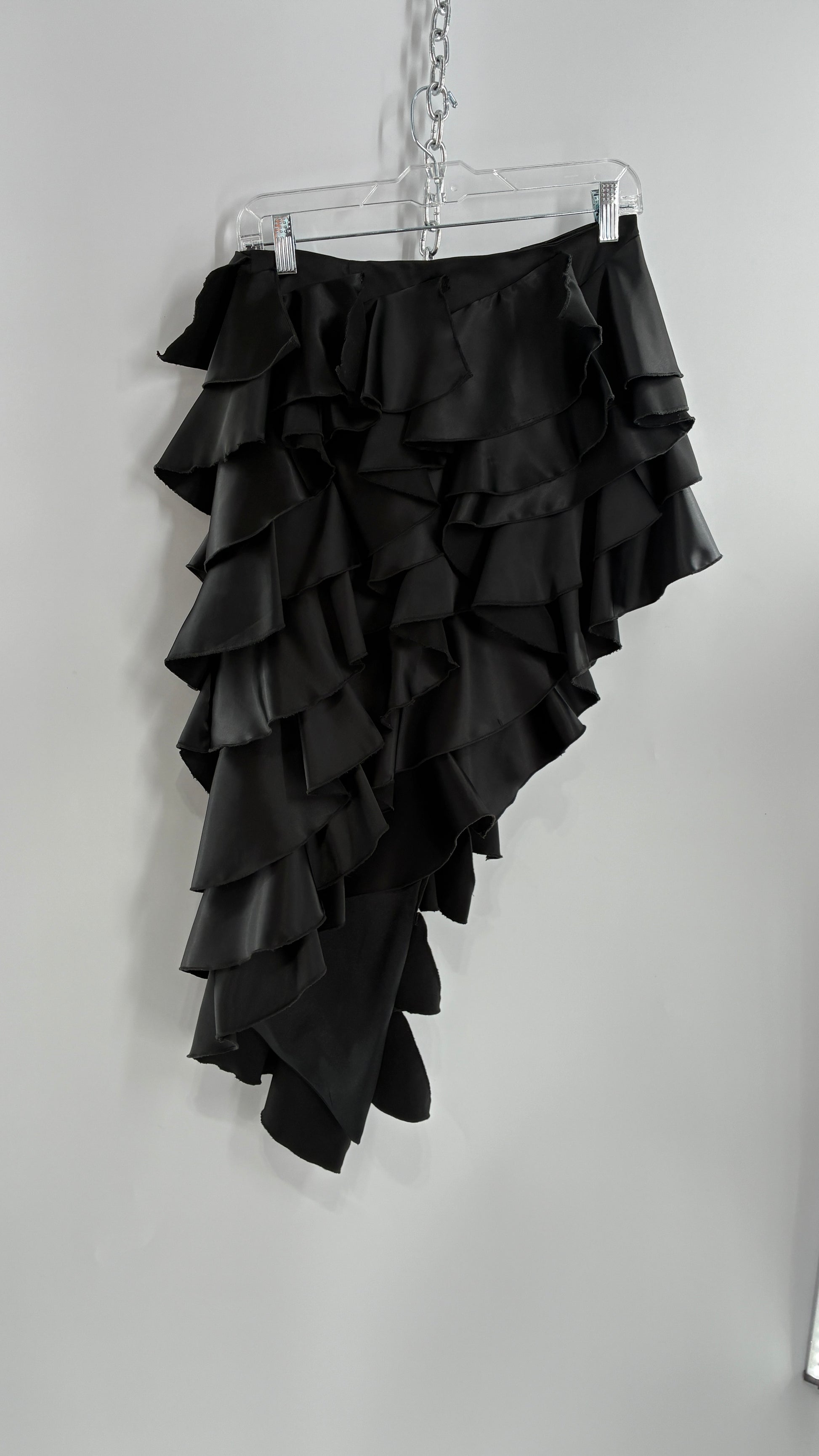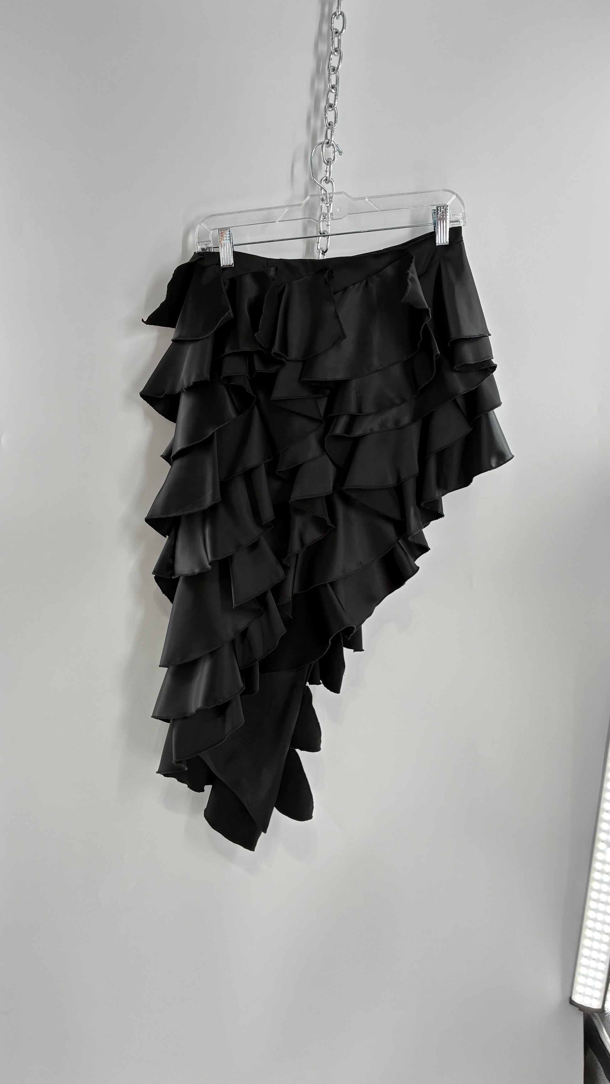 Deadstock Rare 1990s Vintage FRILLY LILLY Black Ruffled Asymmetric Skirt (8)