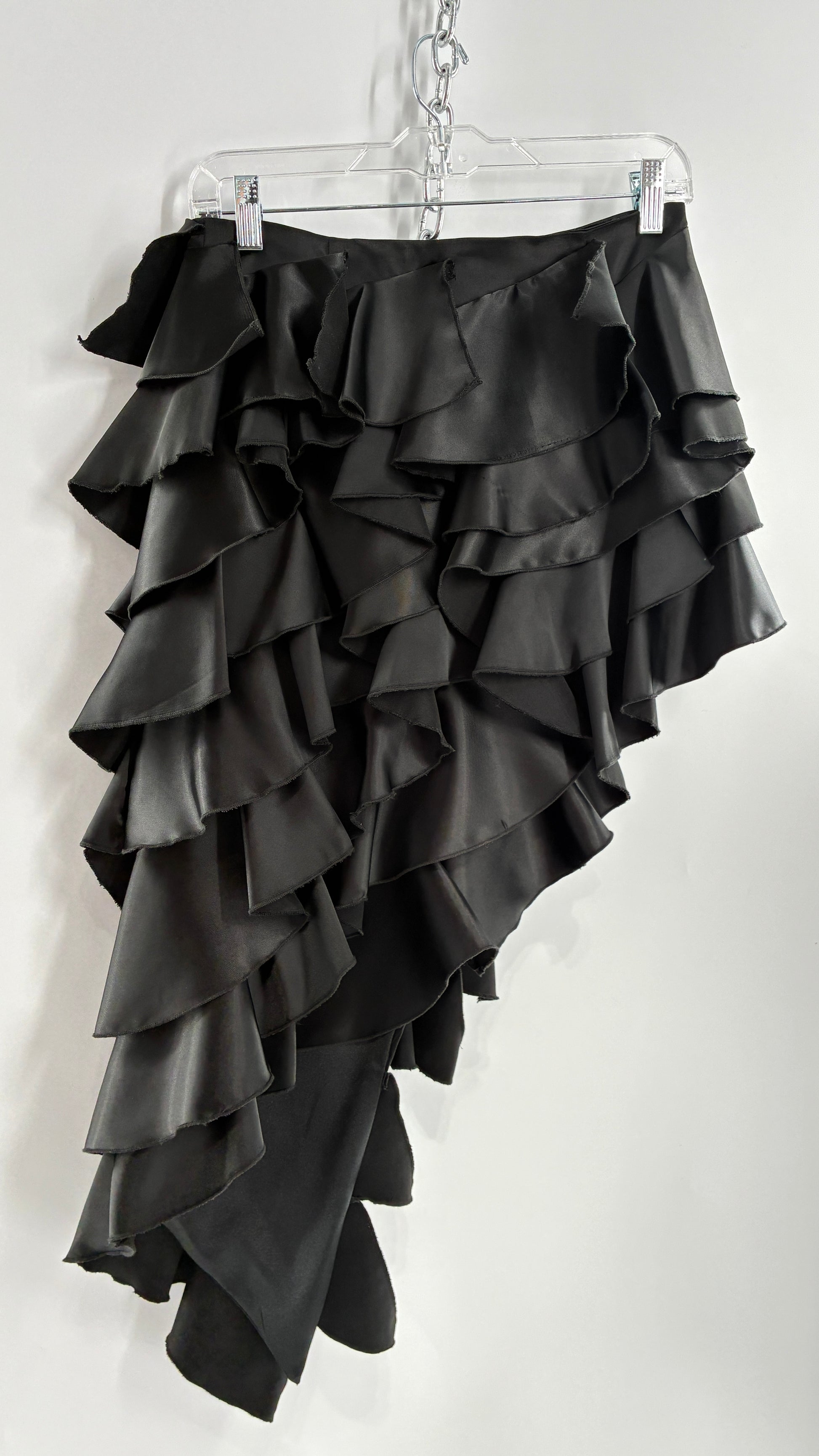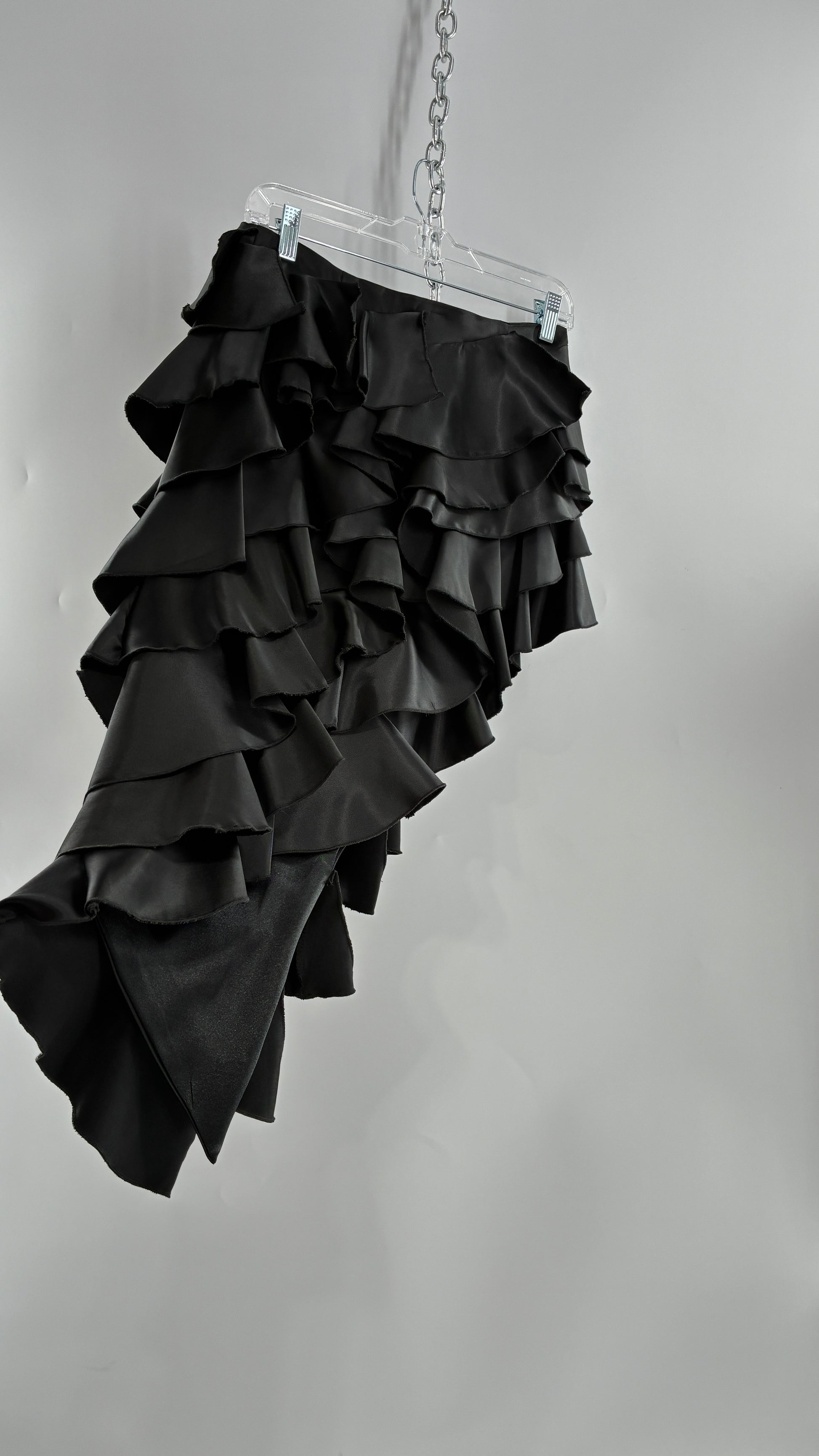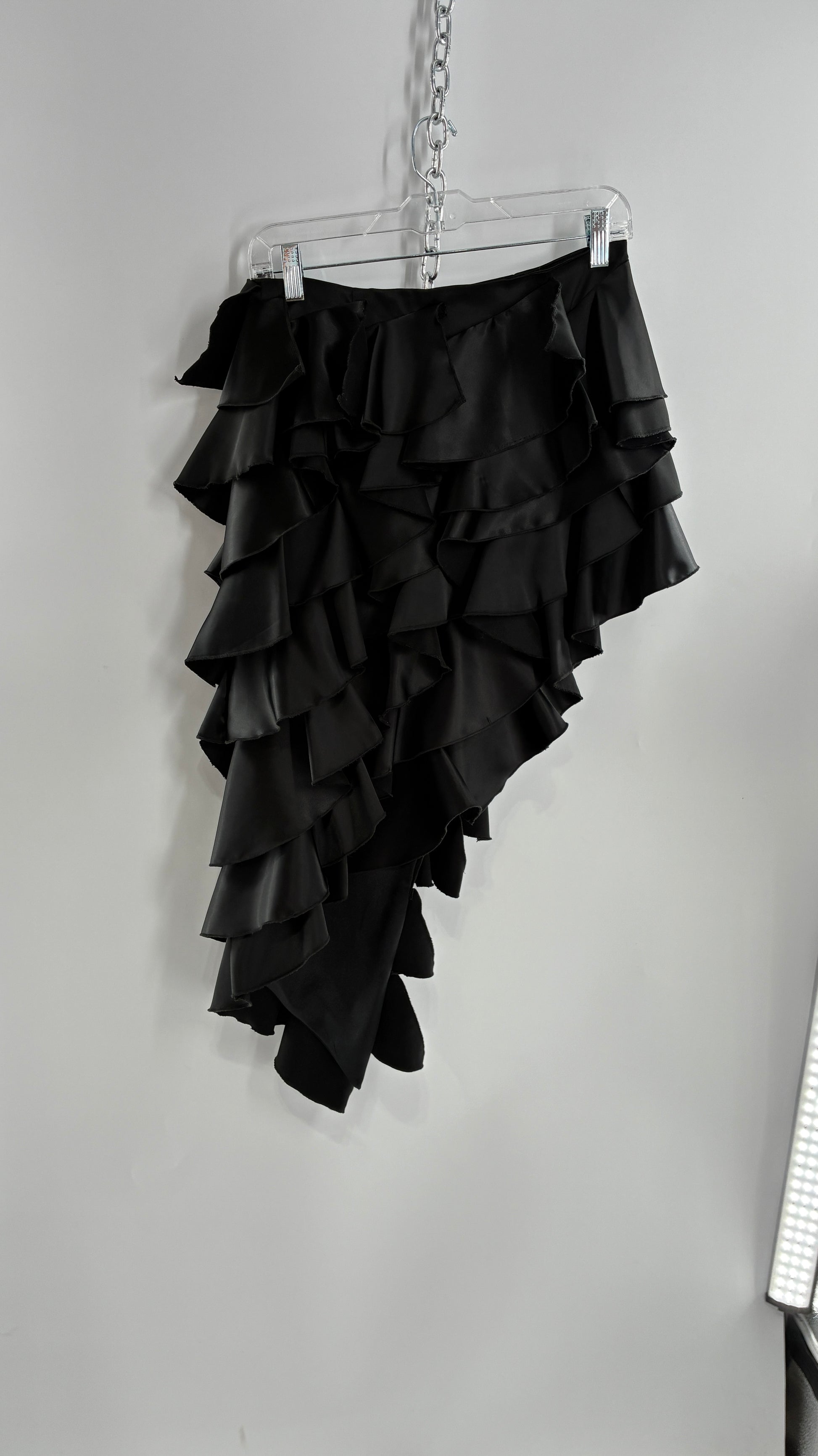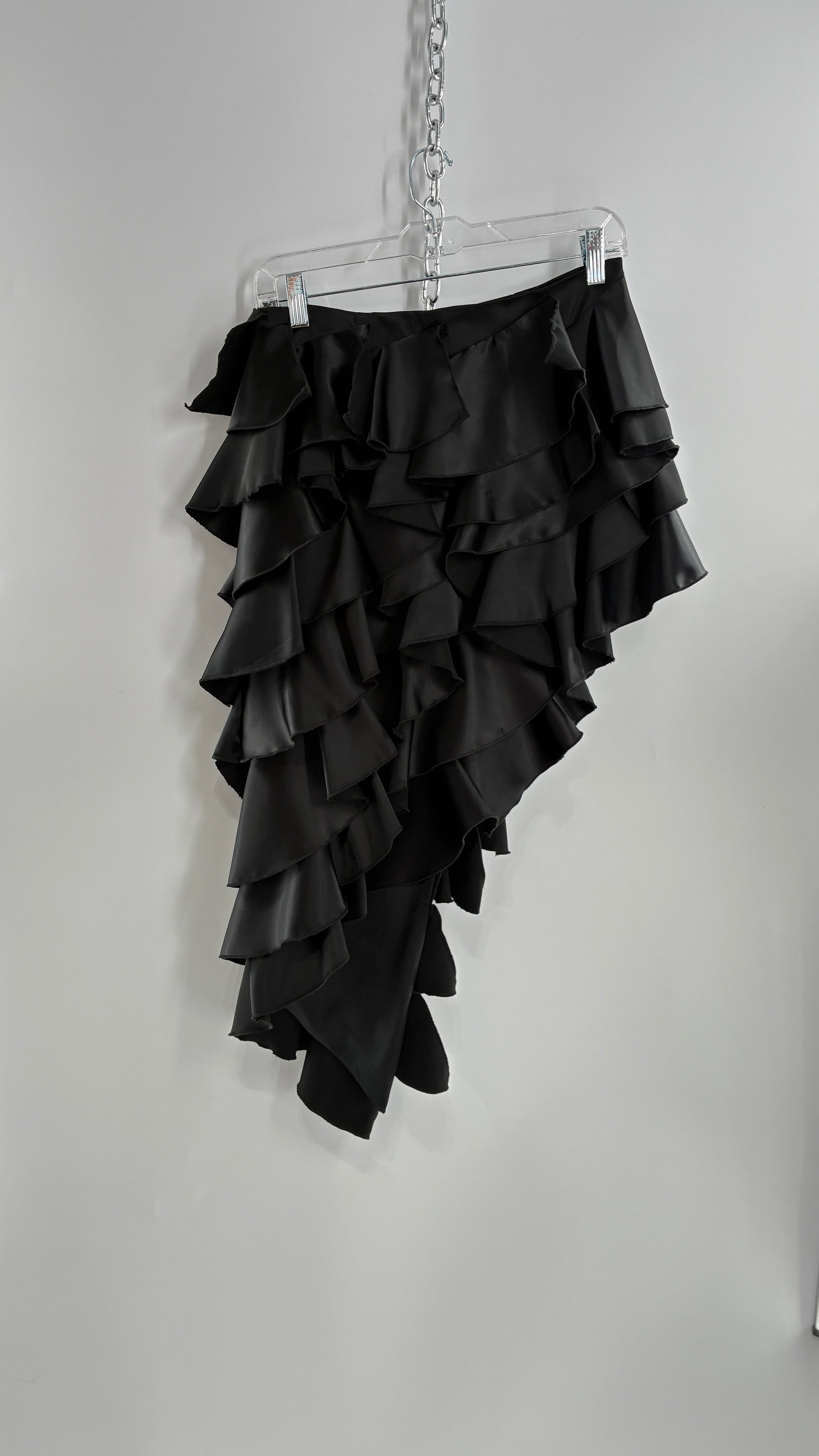 Deadstock Rare 1990s Vintage FRILLY LILLY Black Ruffled Asymmetric Skirt (8)