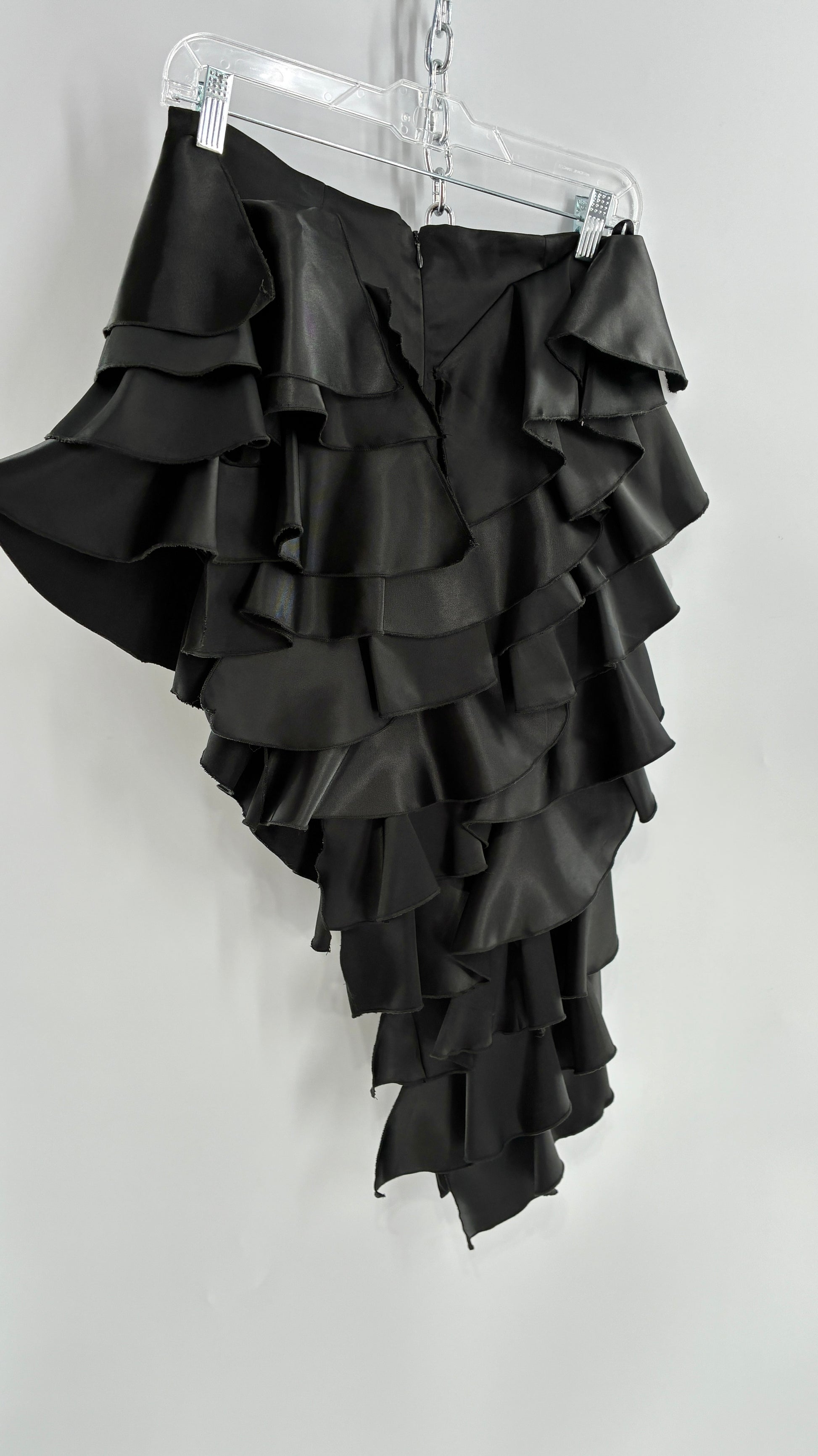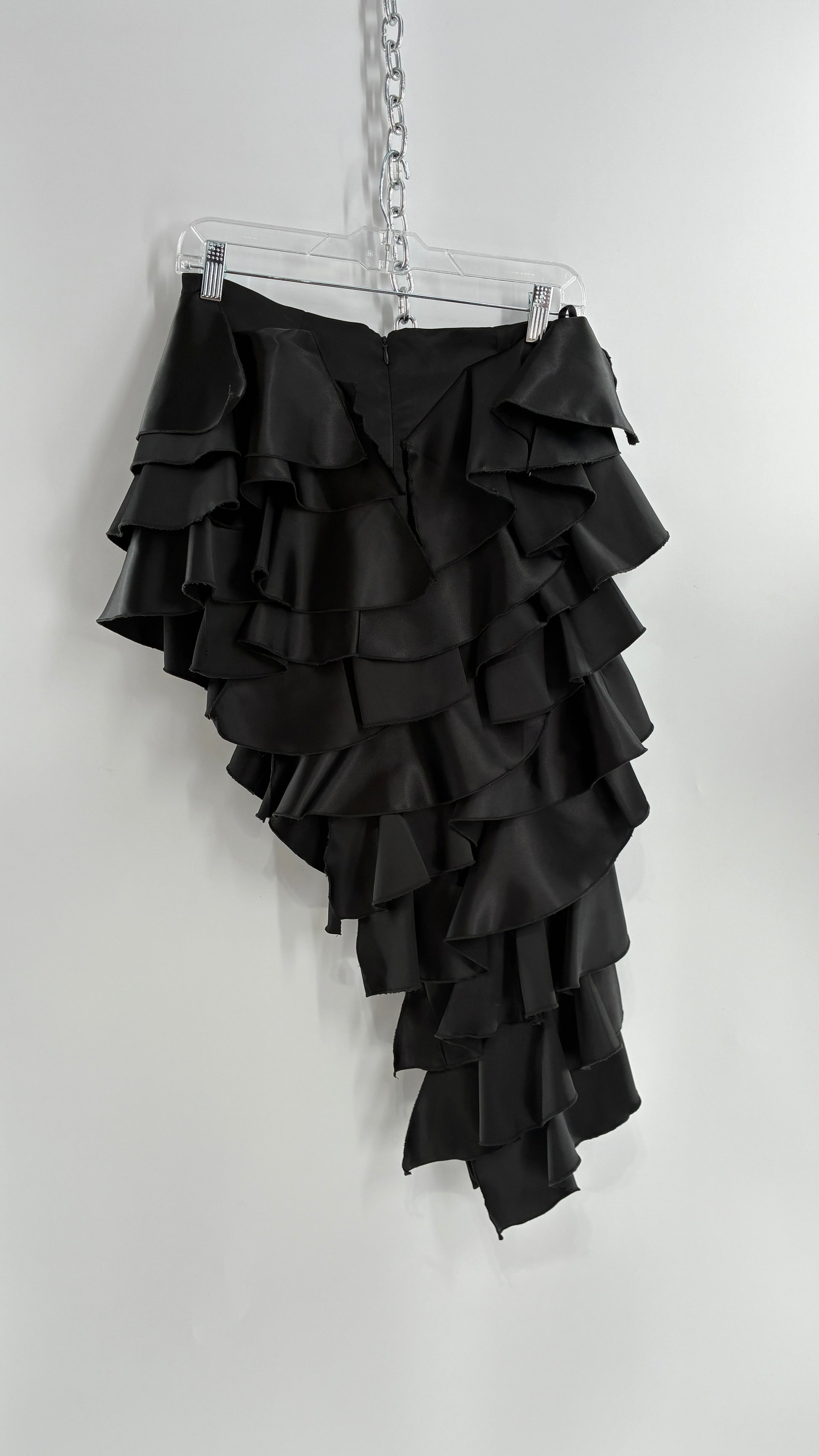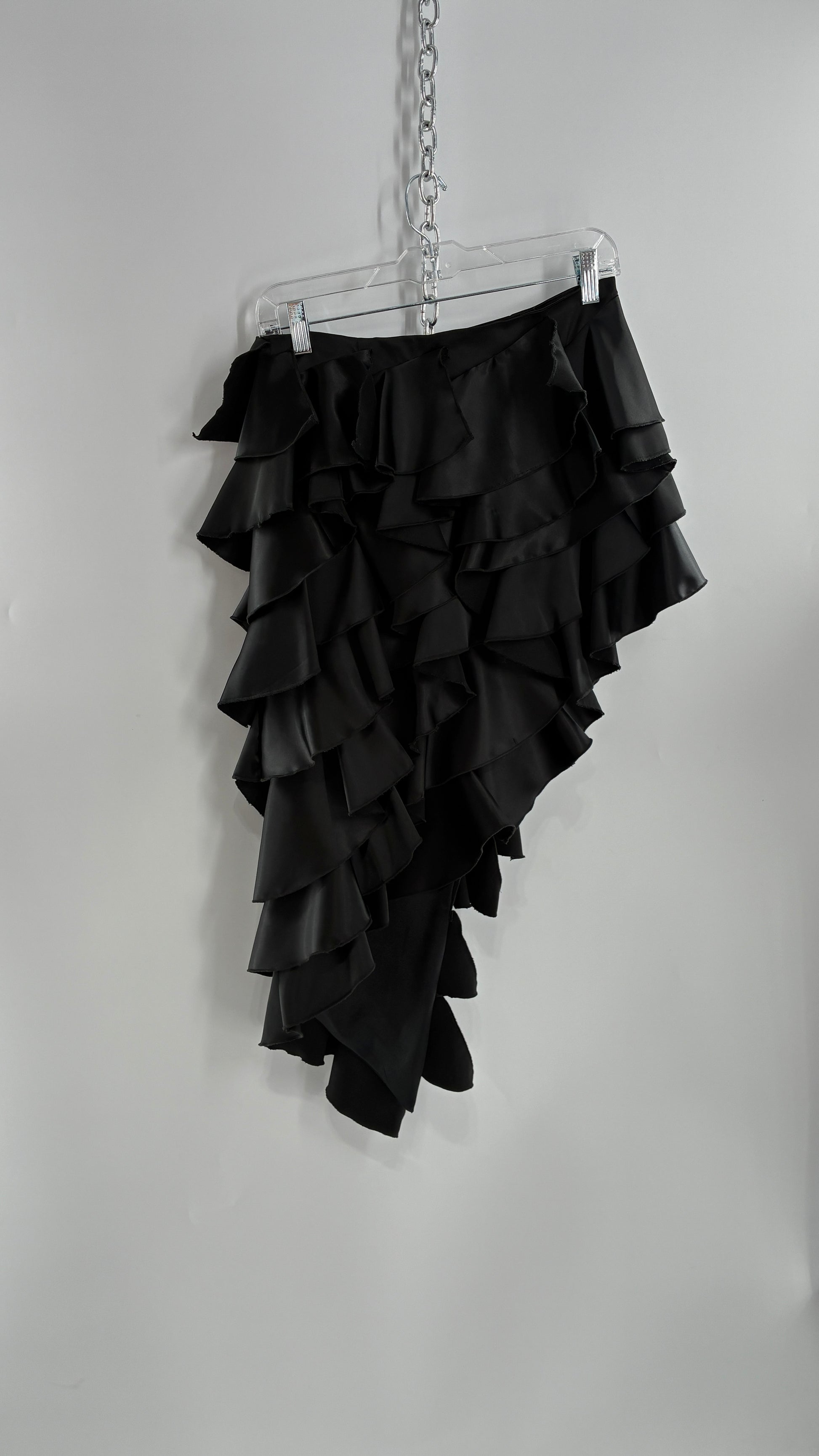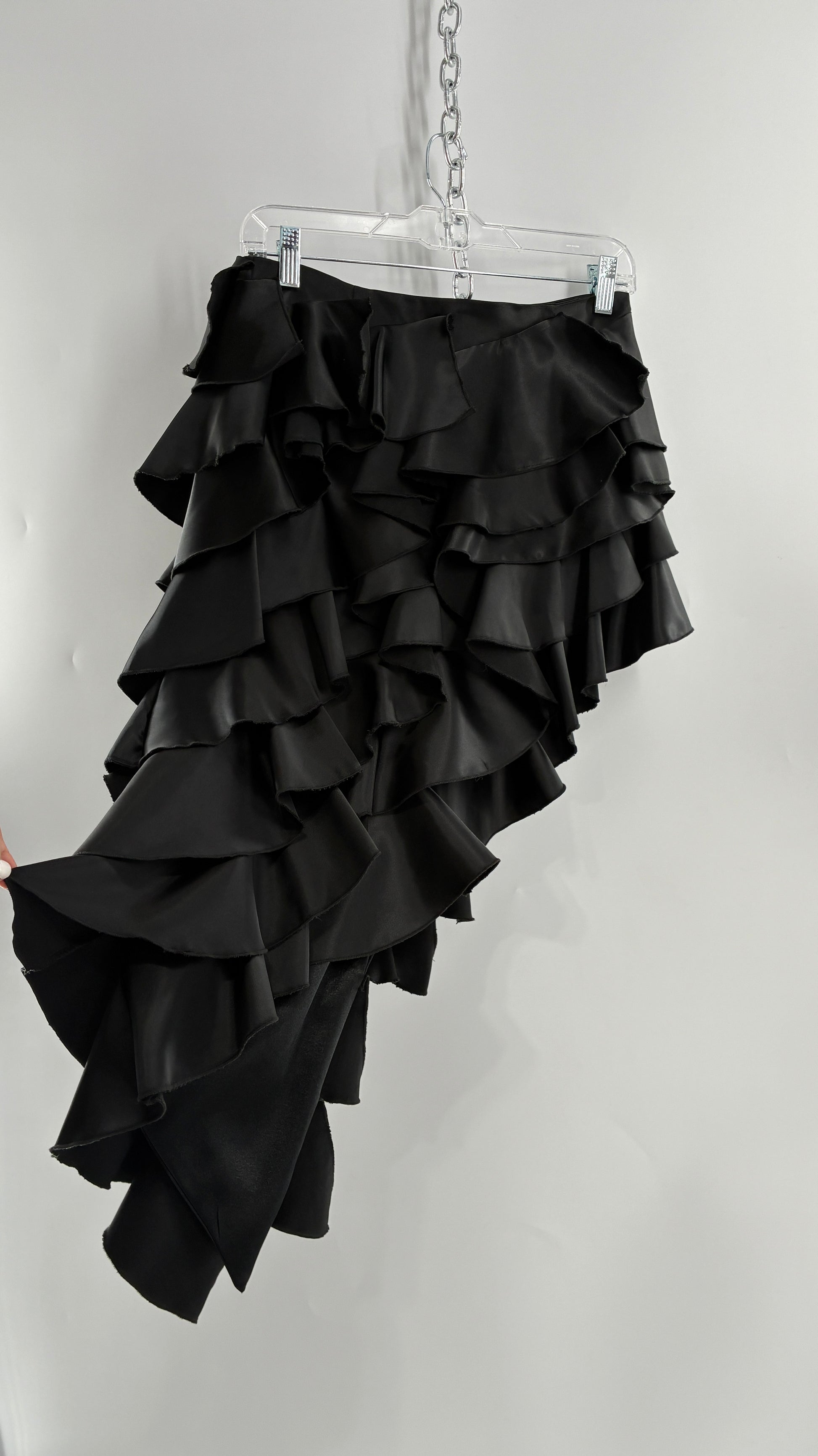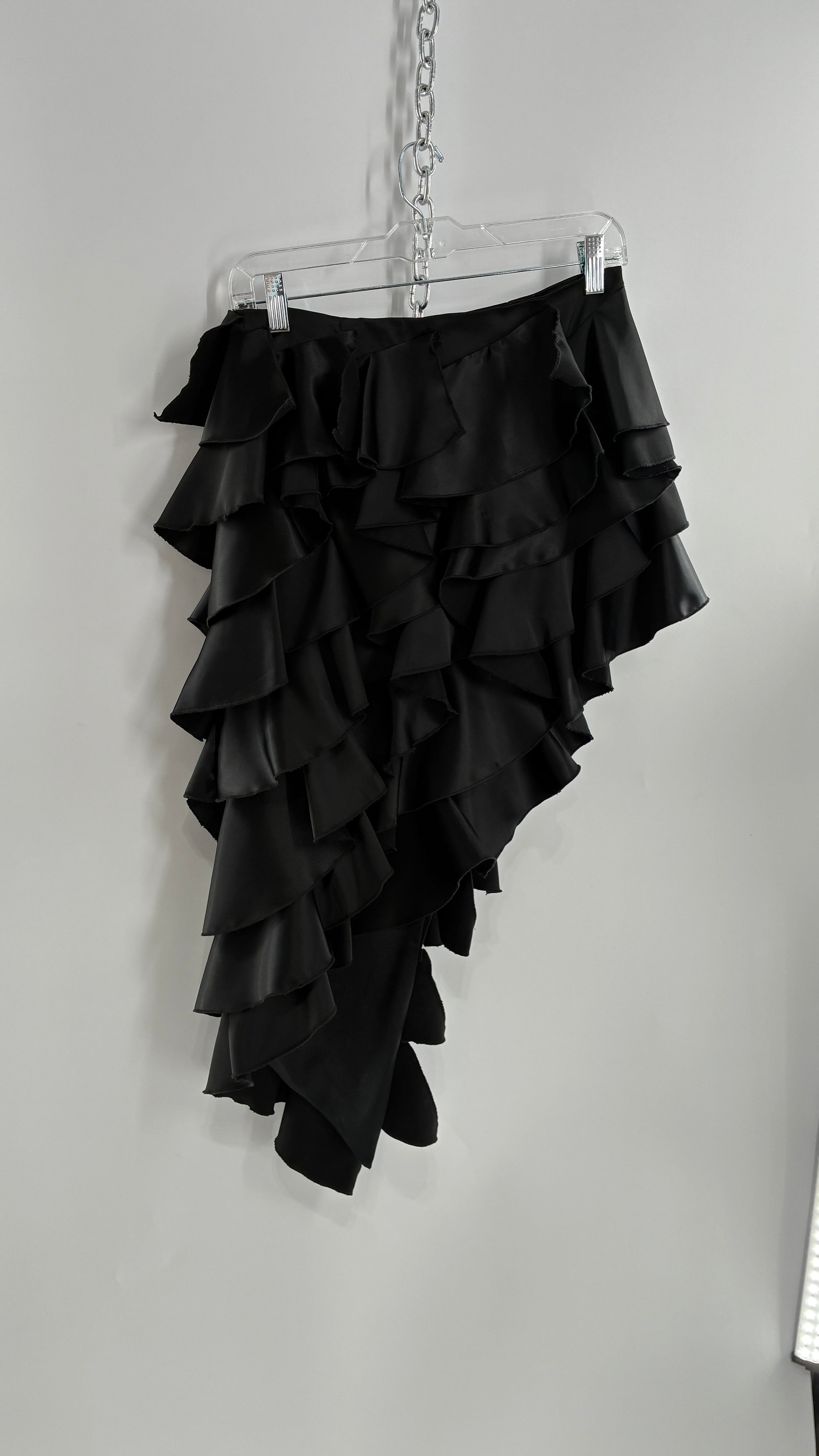 Deadstock Rare 1990s Vintage FRILLY LILLY Black Ruffled Asymmetric Skirt (8)