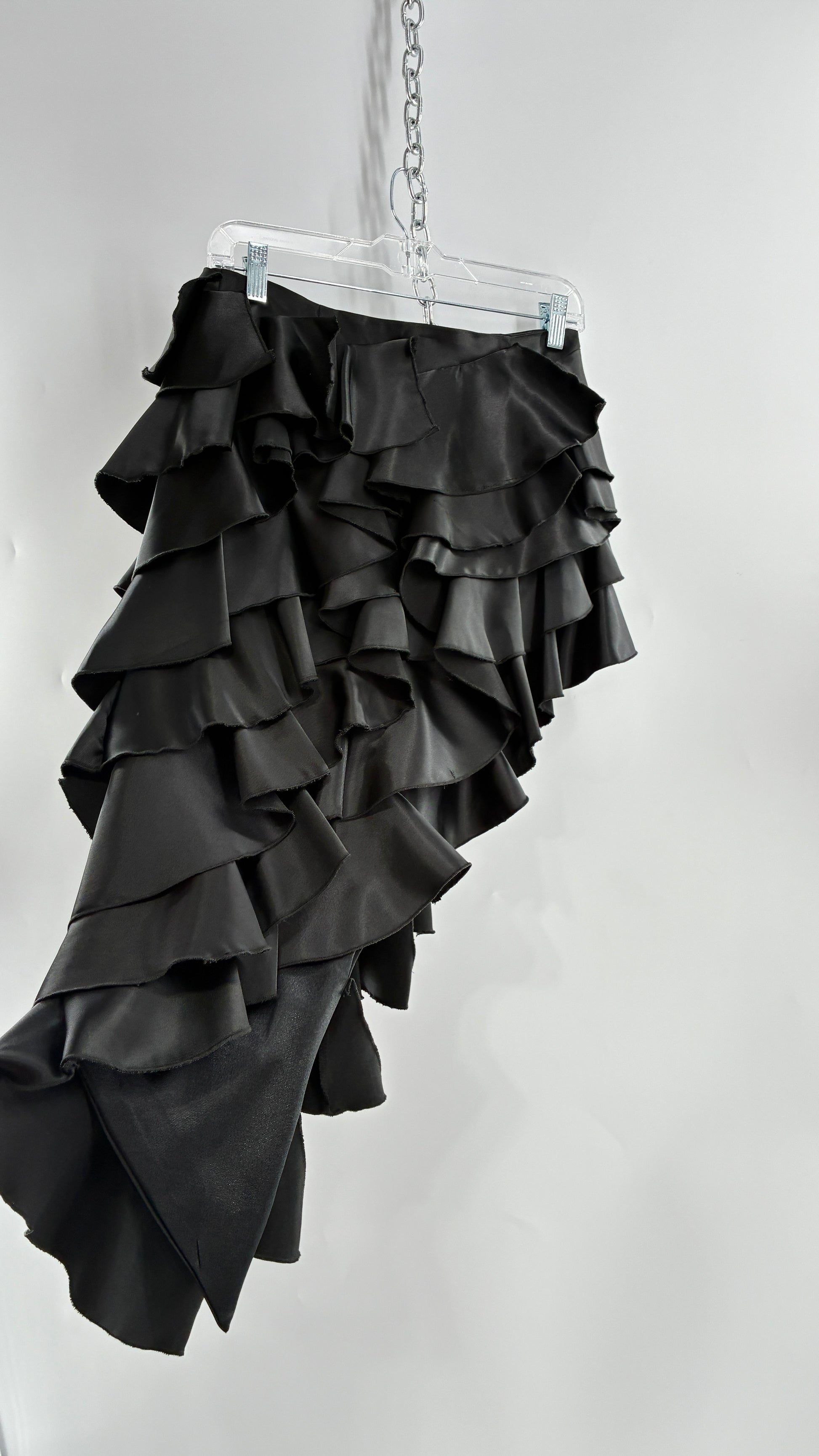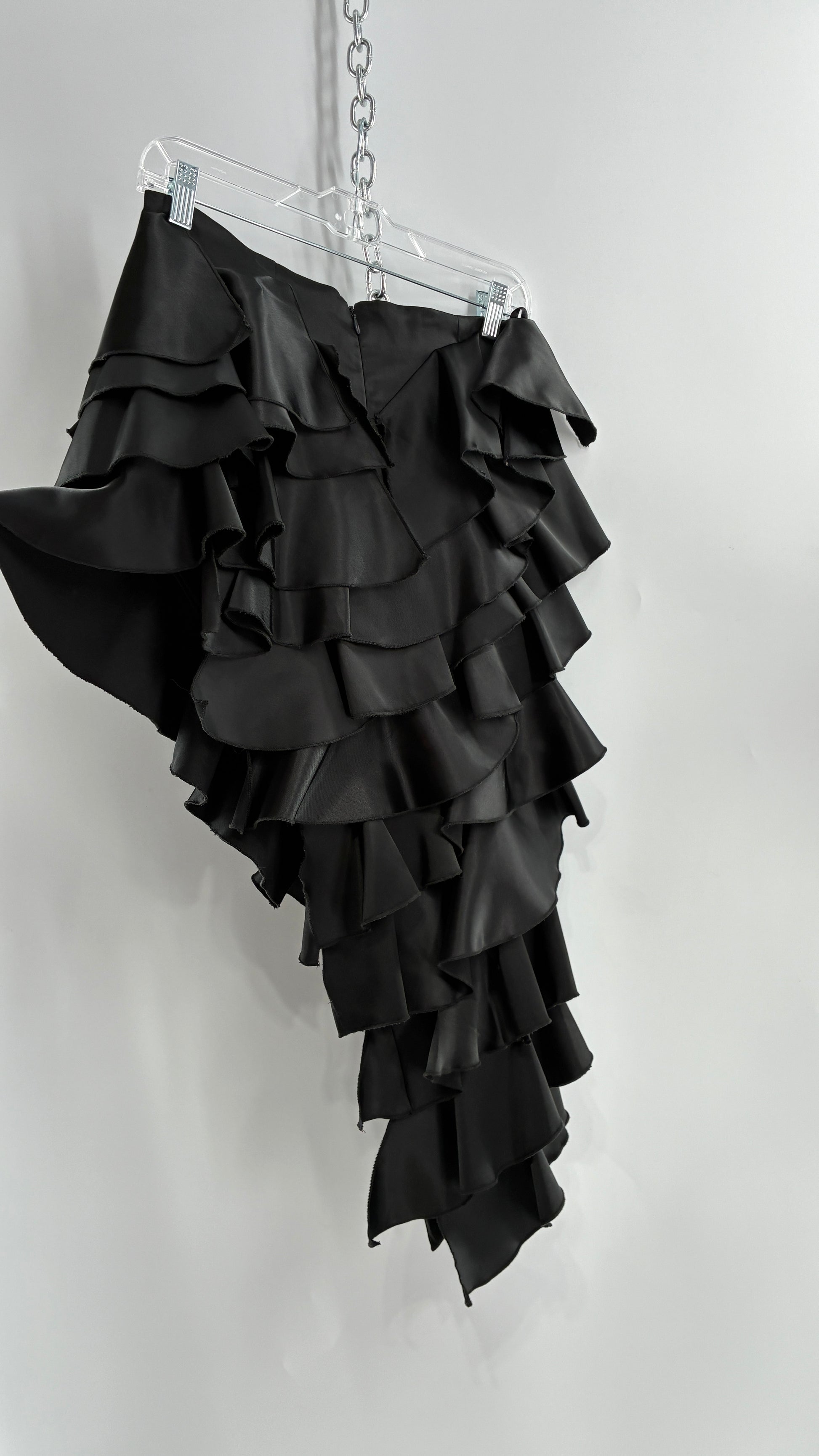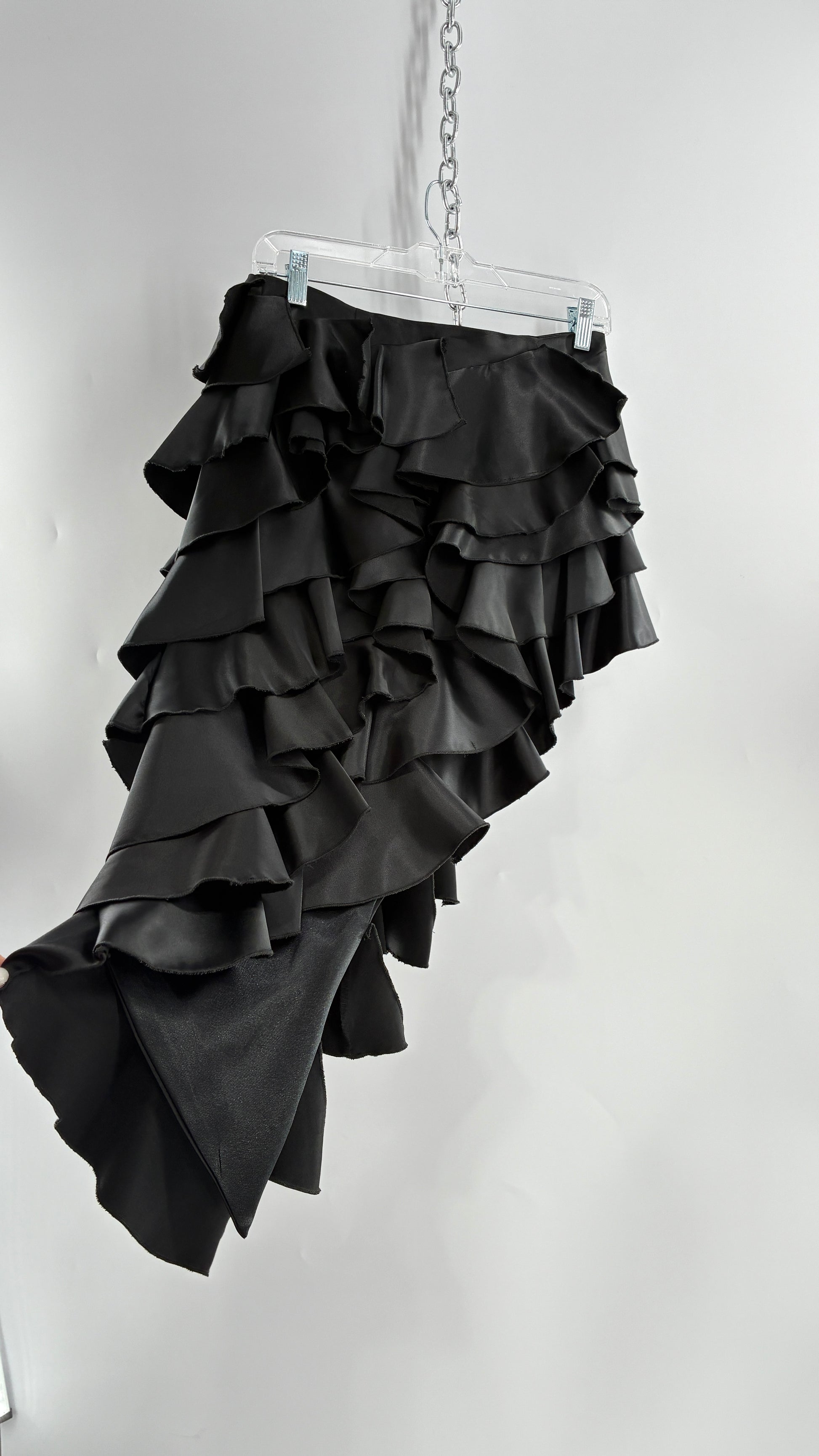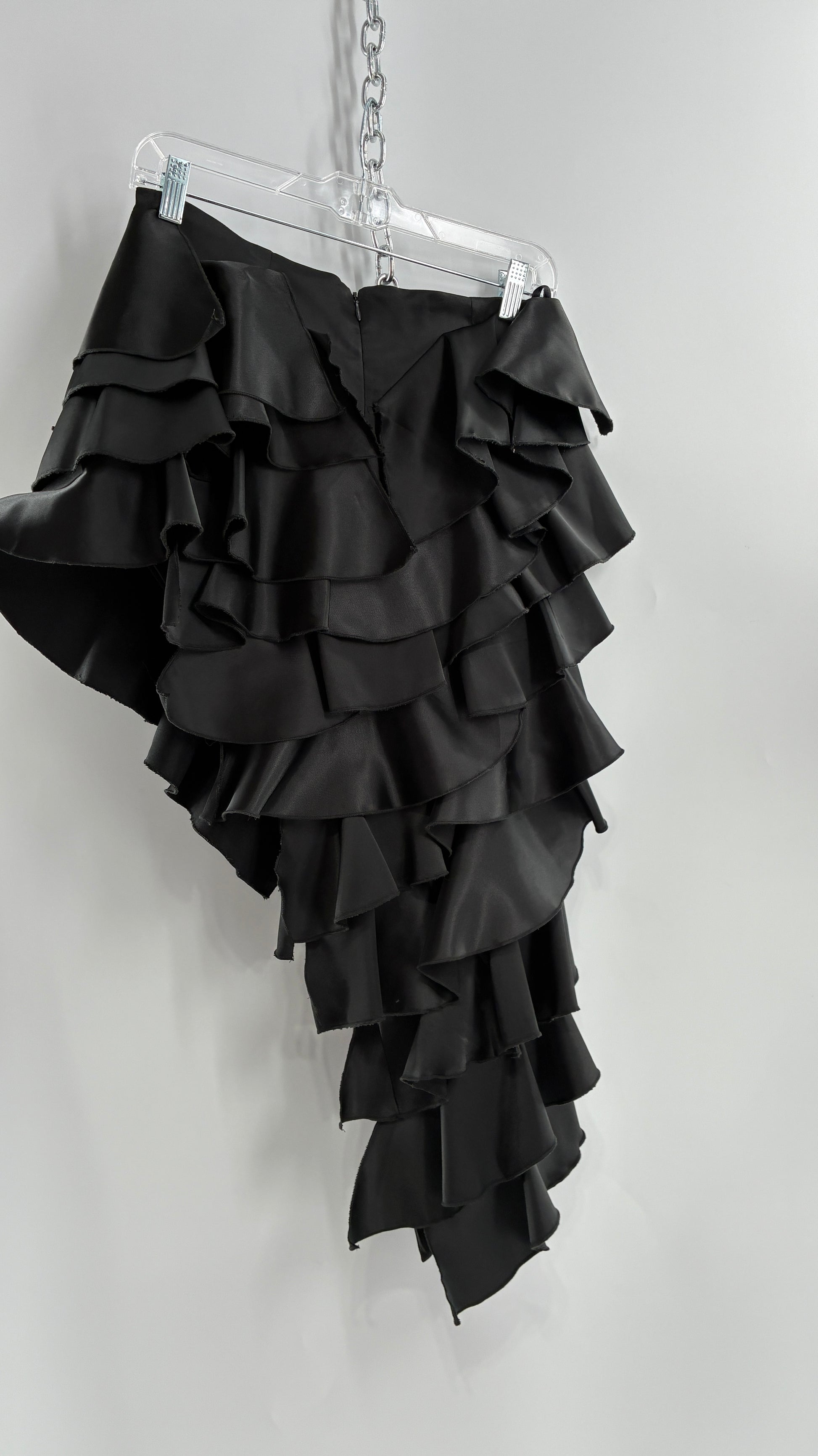 Deadstock Rare 1990s Vintage FRILLY LILLY Black Ruffled Asymmetric Skirt (8)