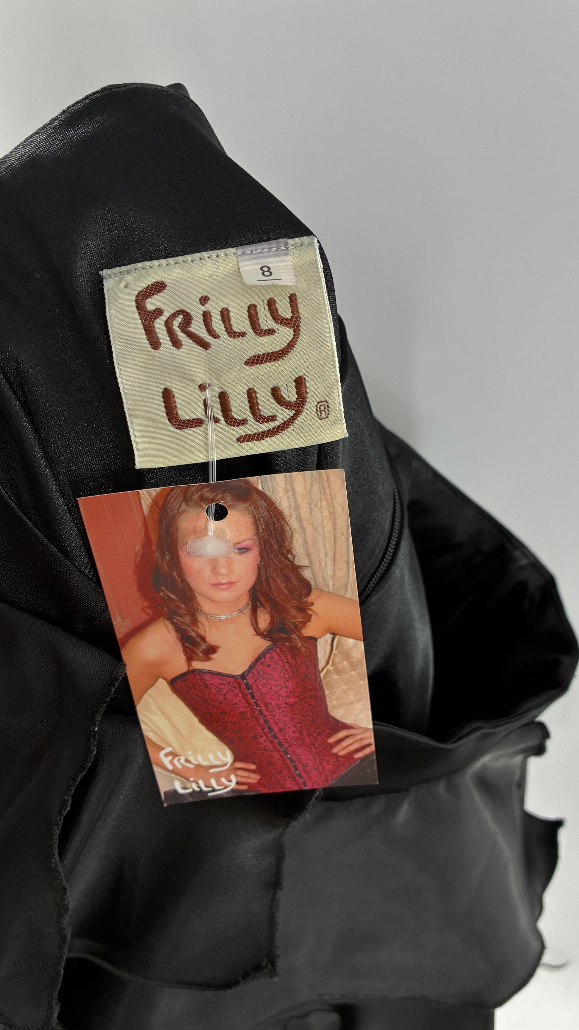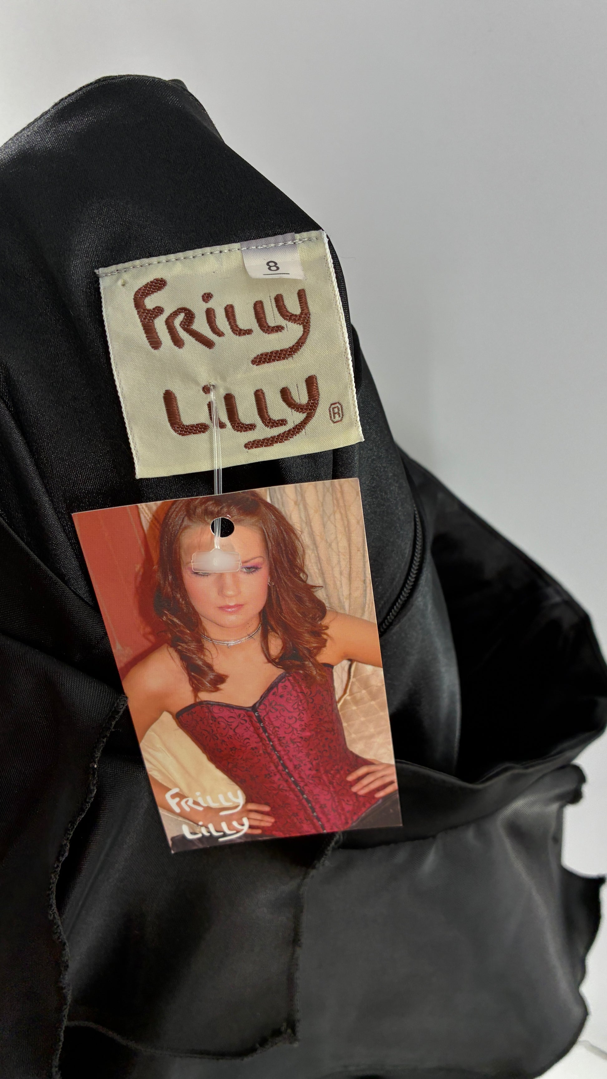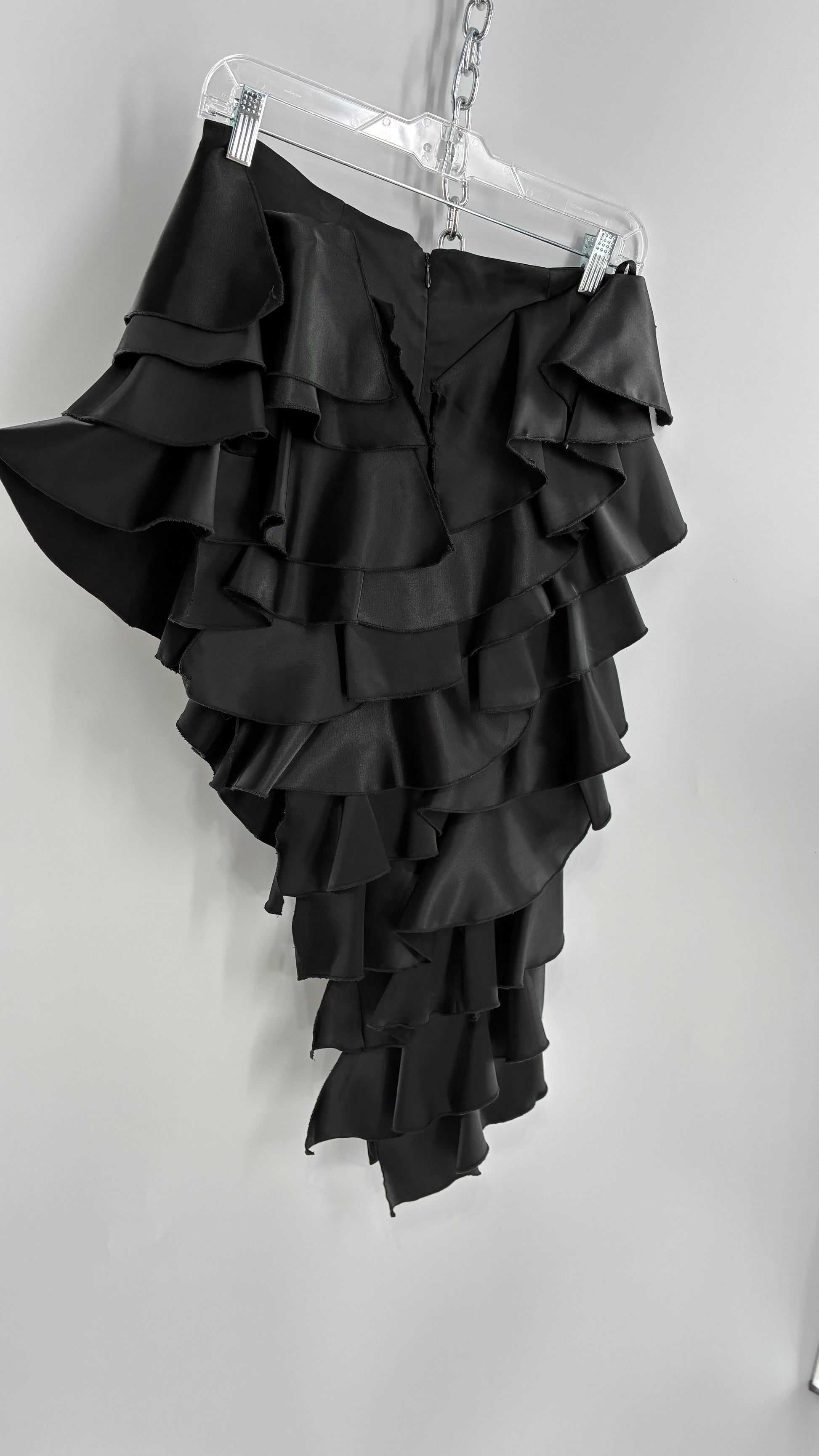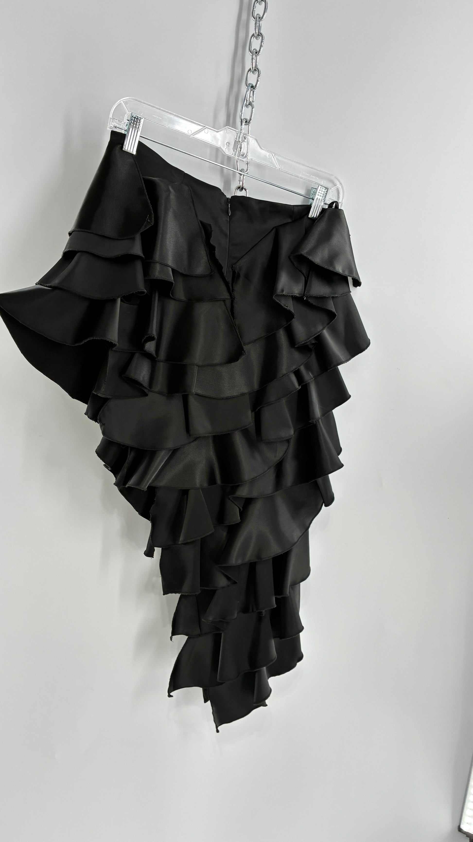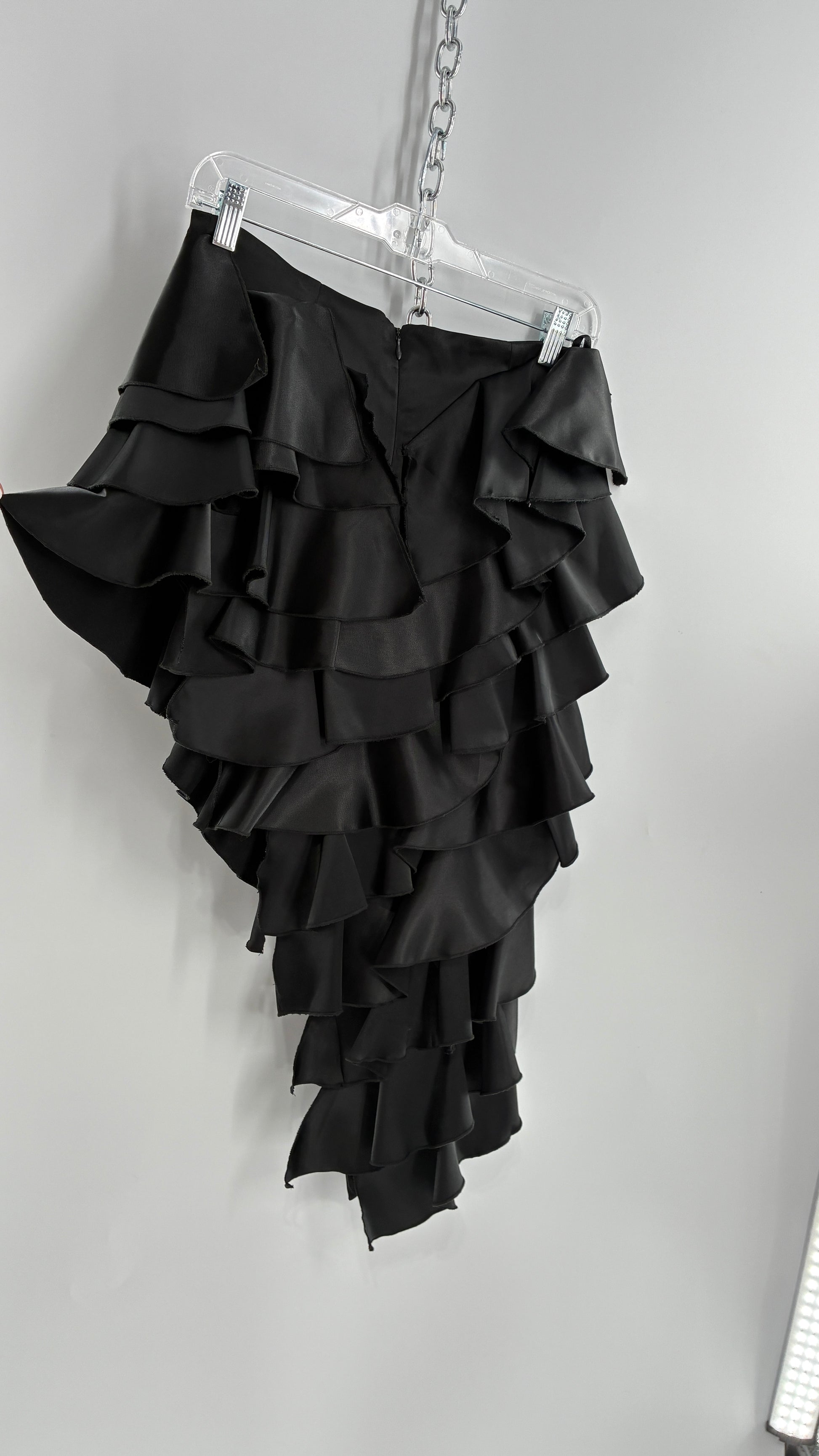 Deadstock Rare 1990s Vintage FRILLY LILLY Black Ruffled Asymmetric Skirt (8)