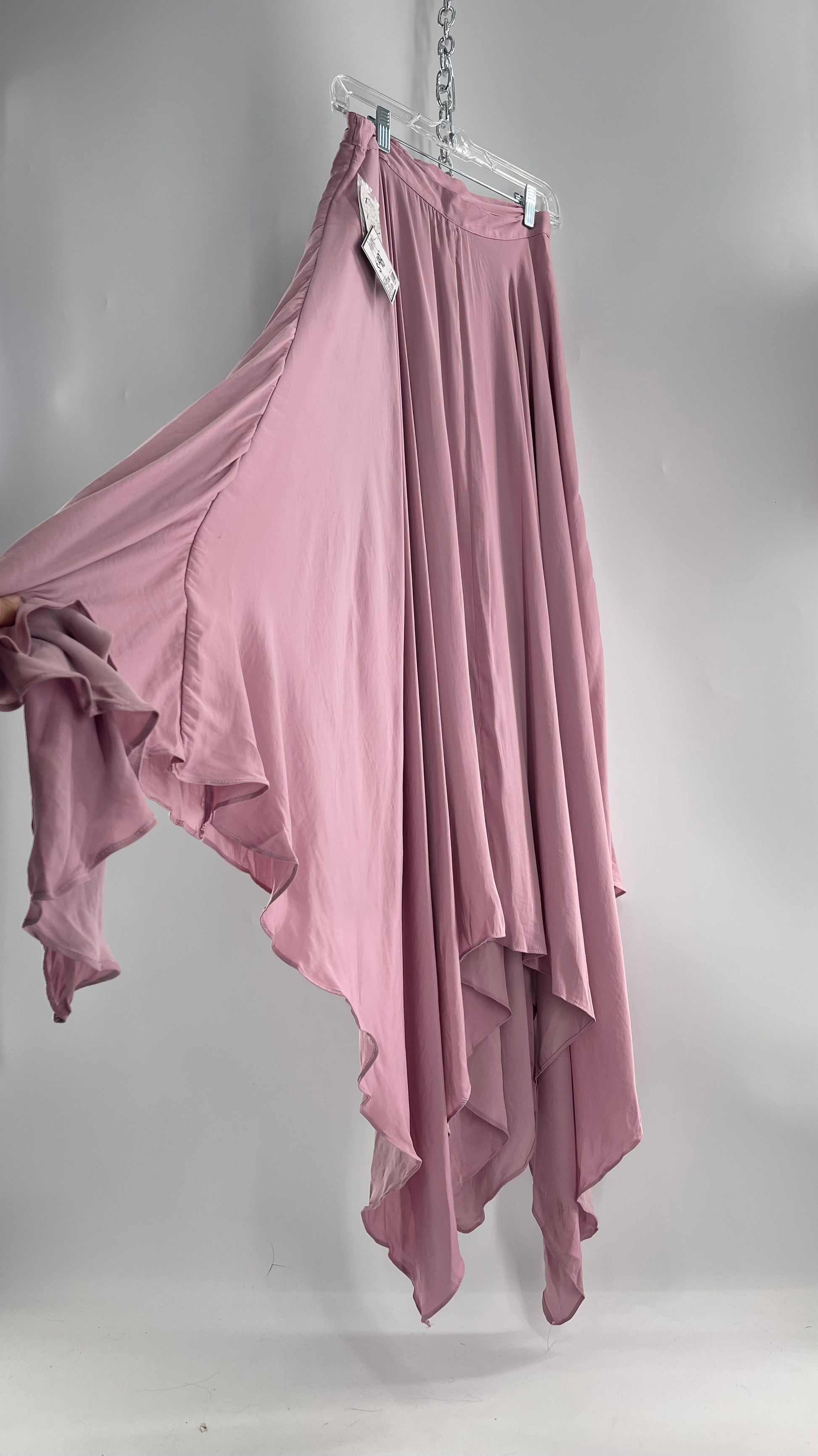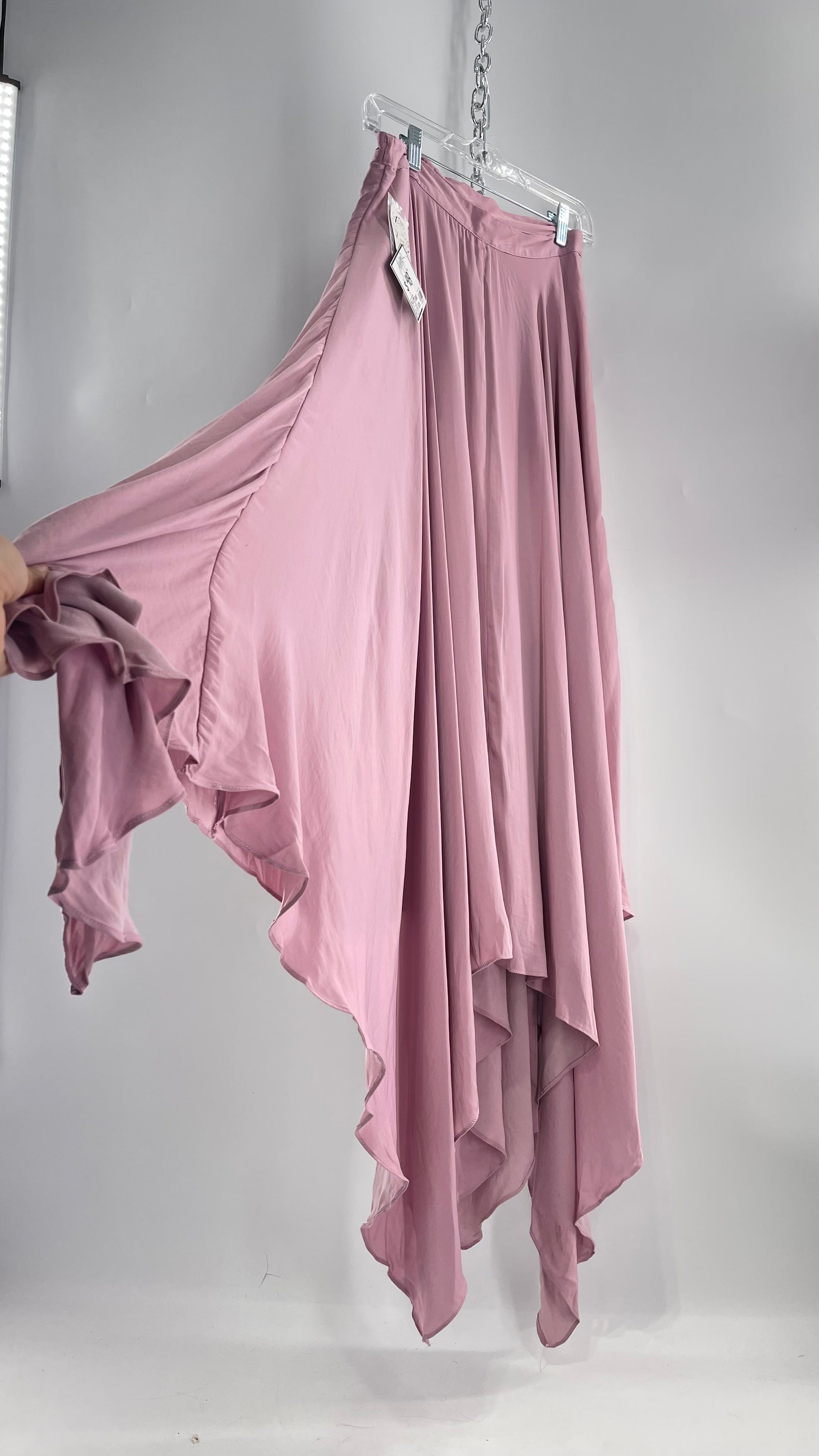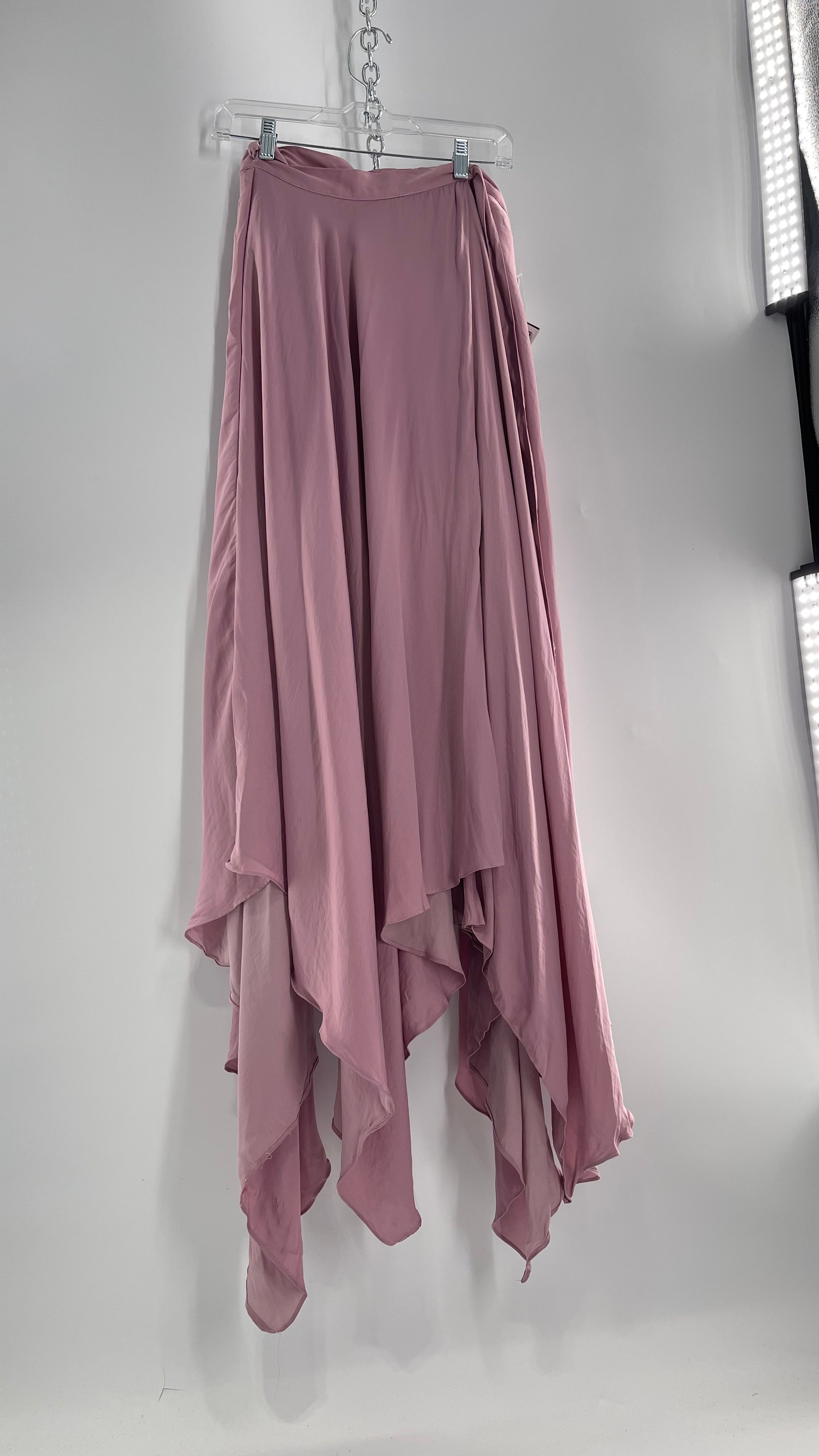 Free People satin lavender maxi skirt with handkerchief hem and tags attached