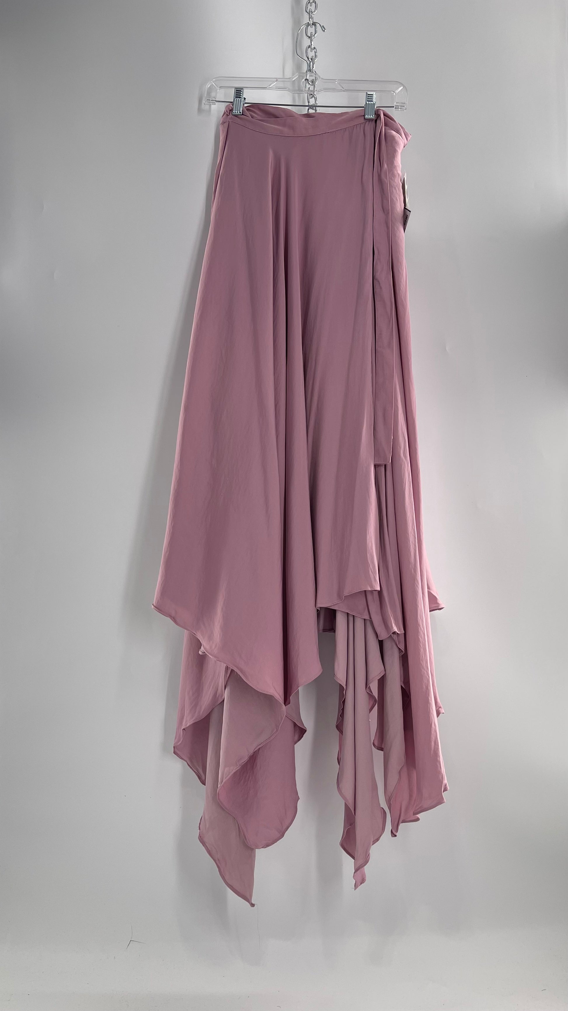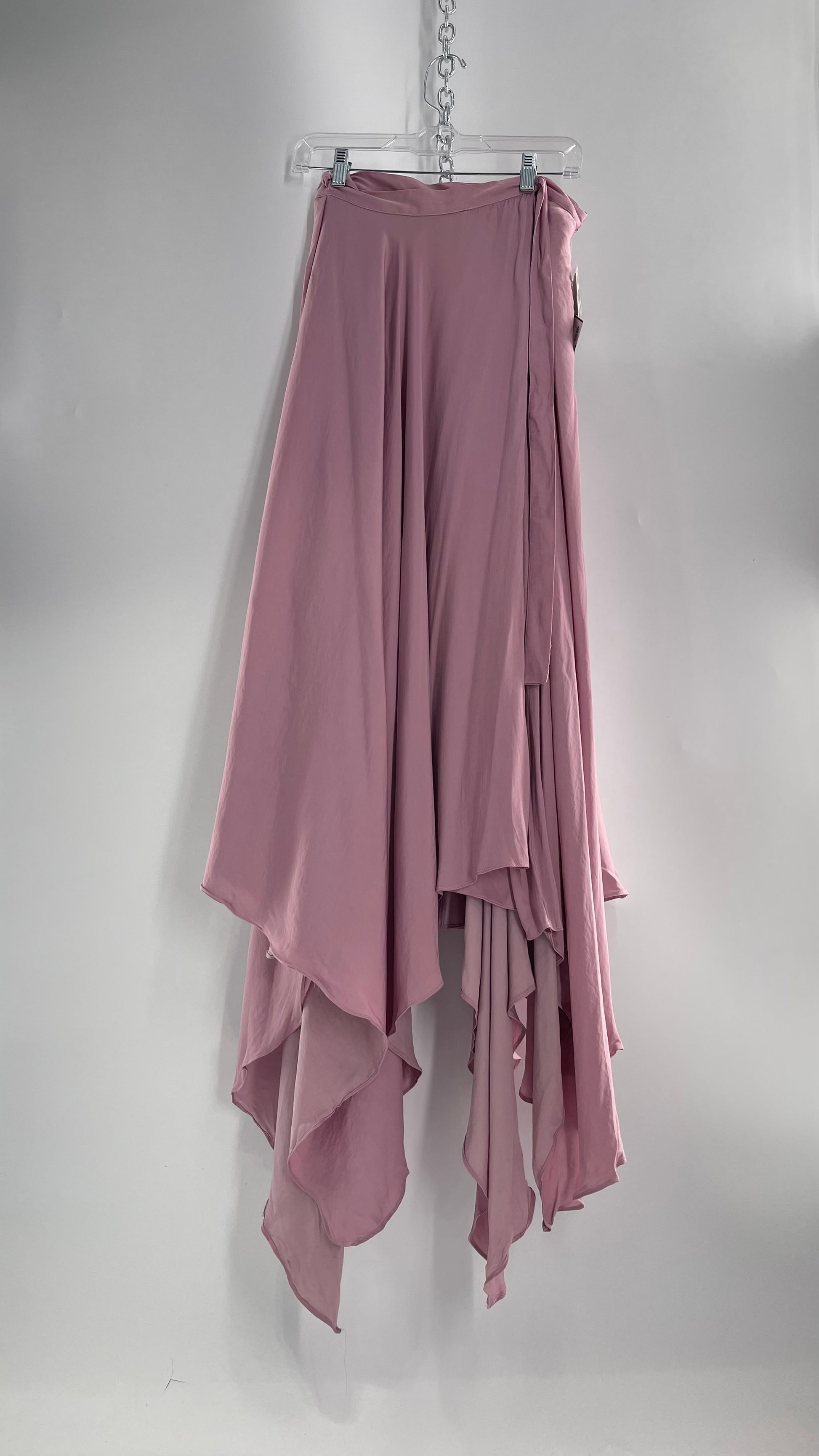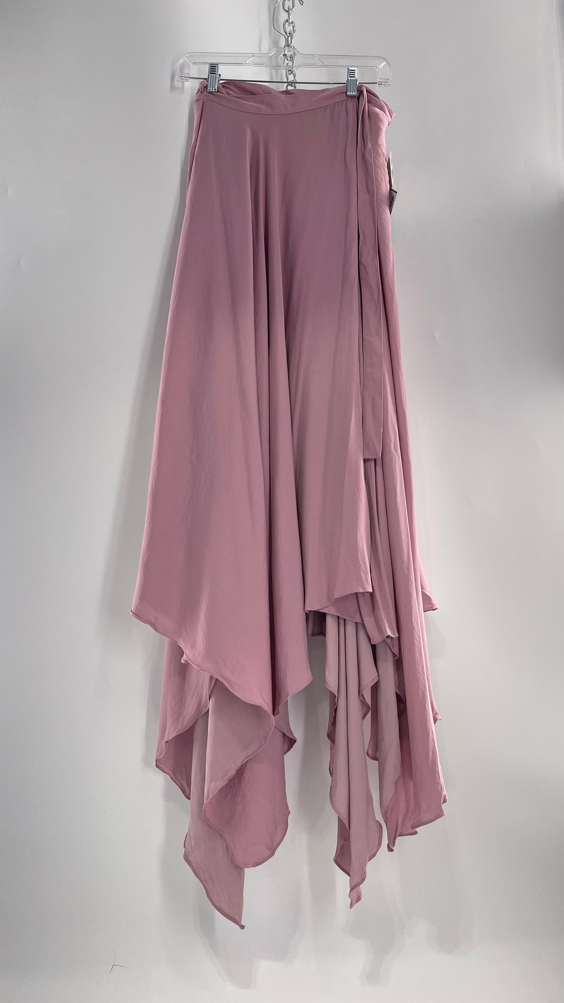 Free People satin lavender maxi skirt with handkerchief hem and tags attached