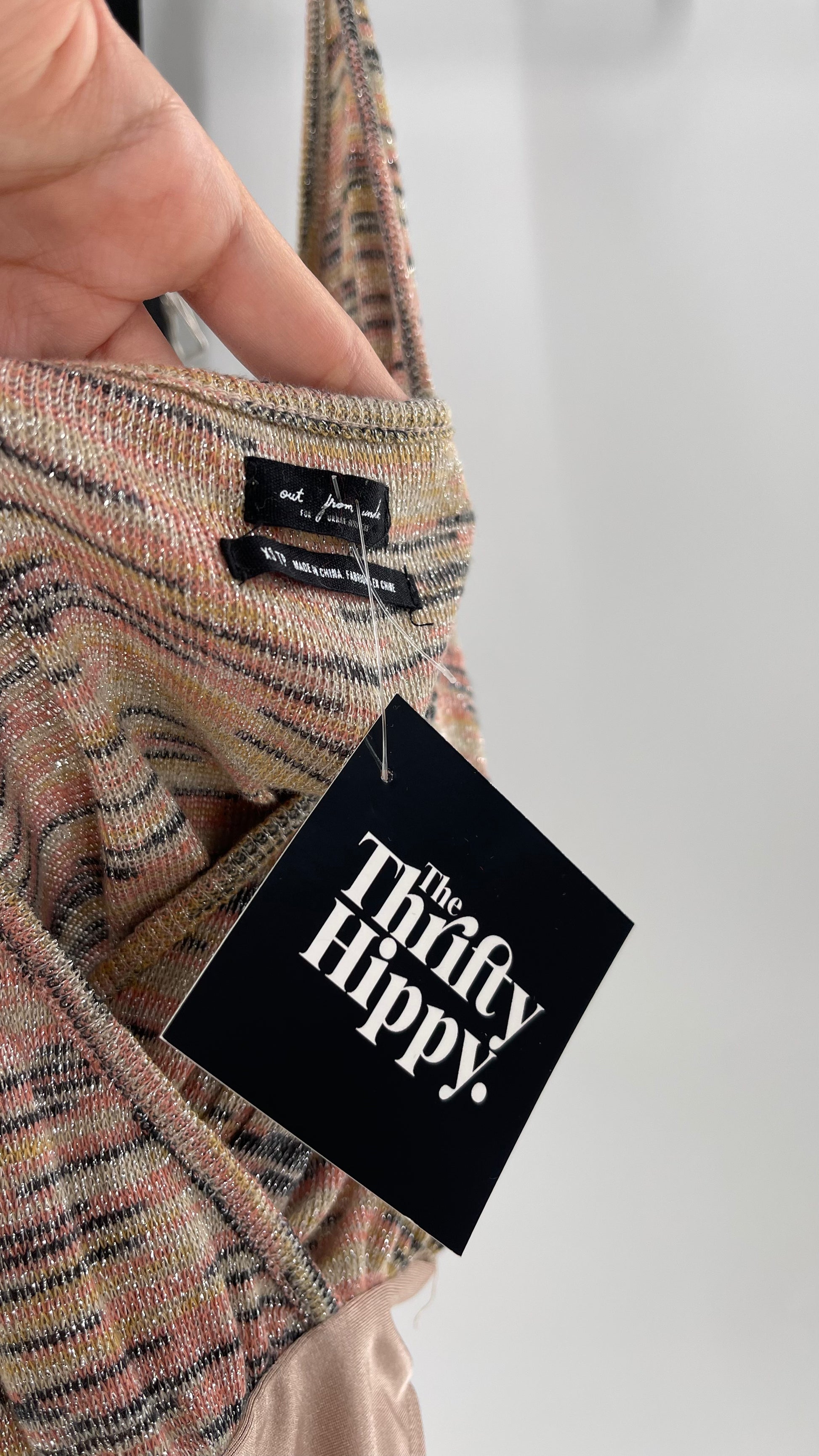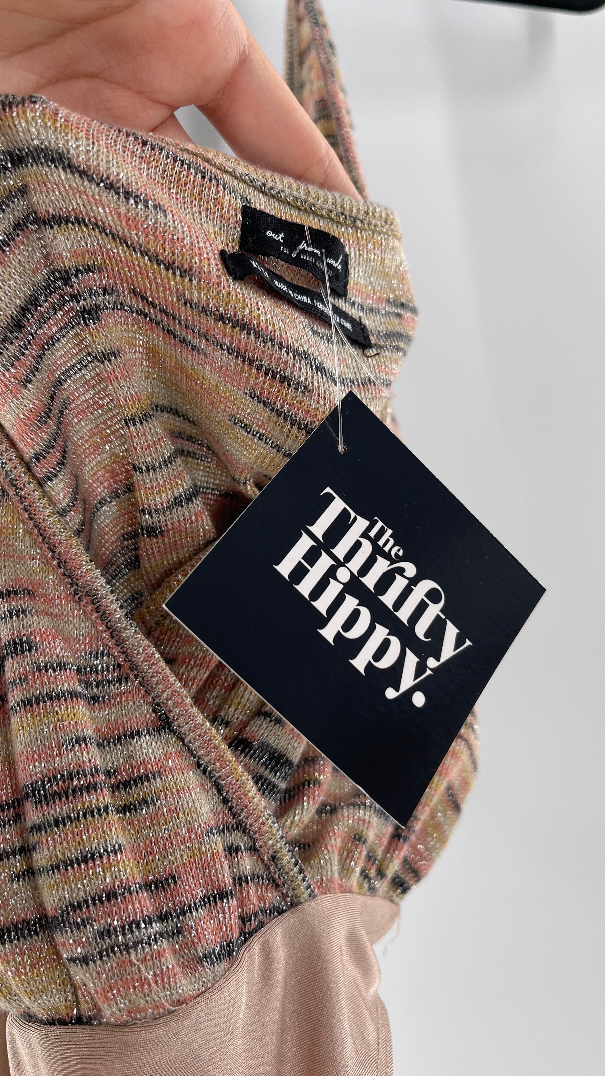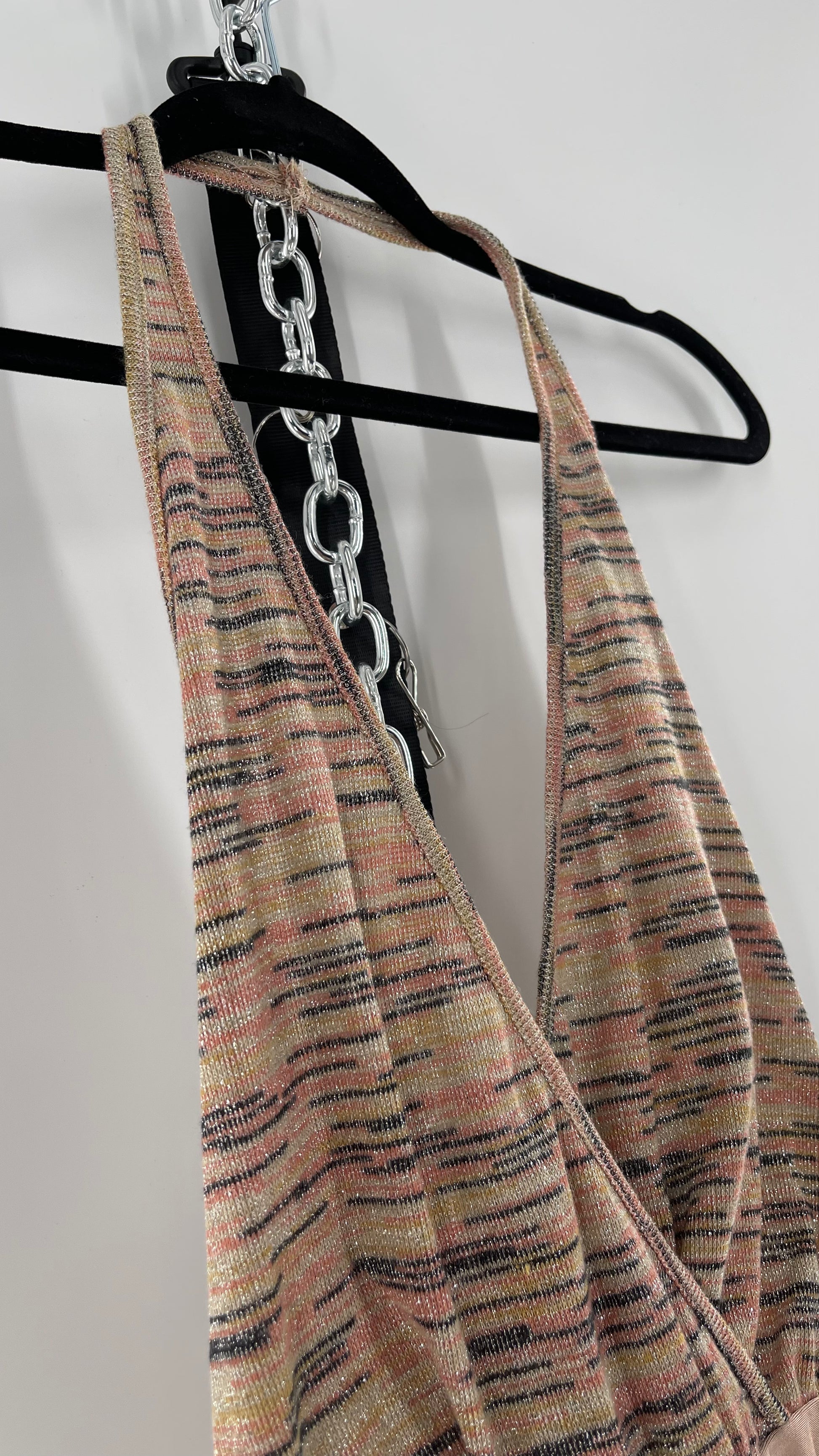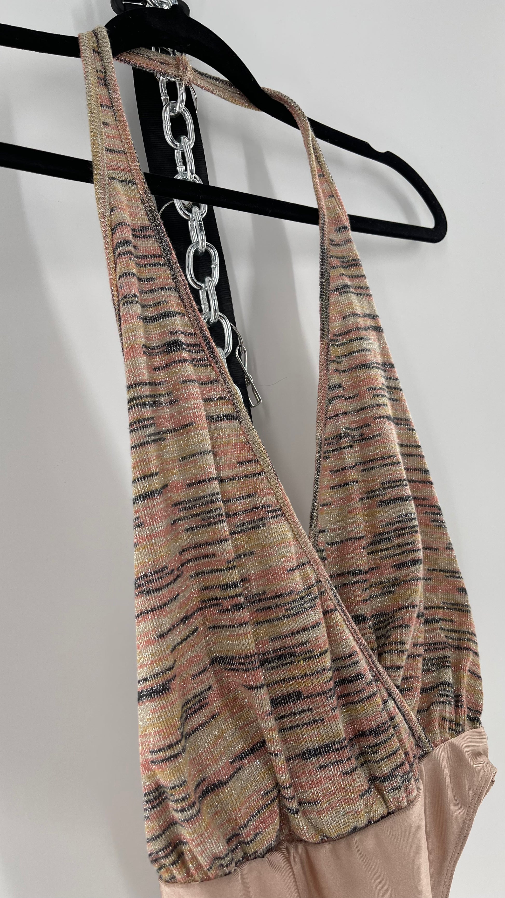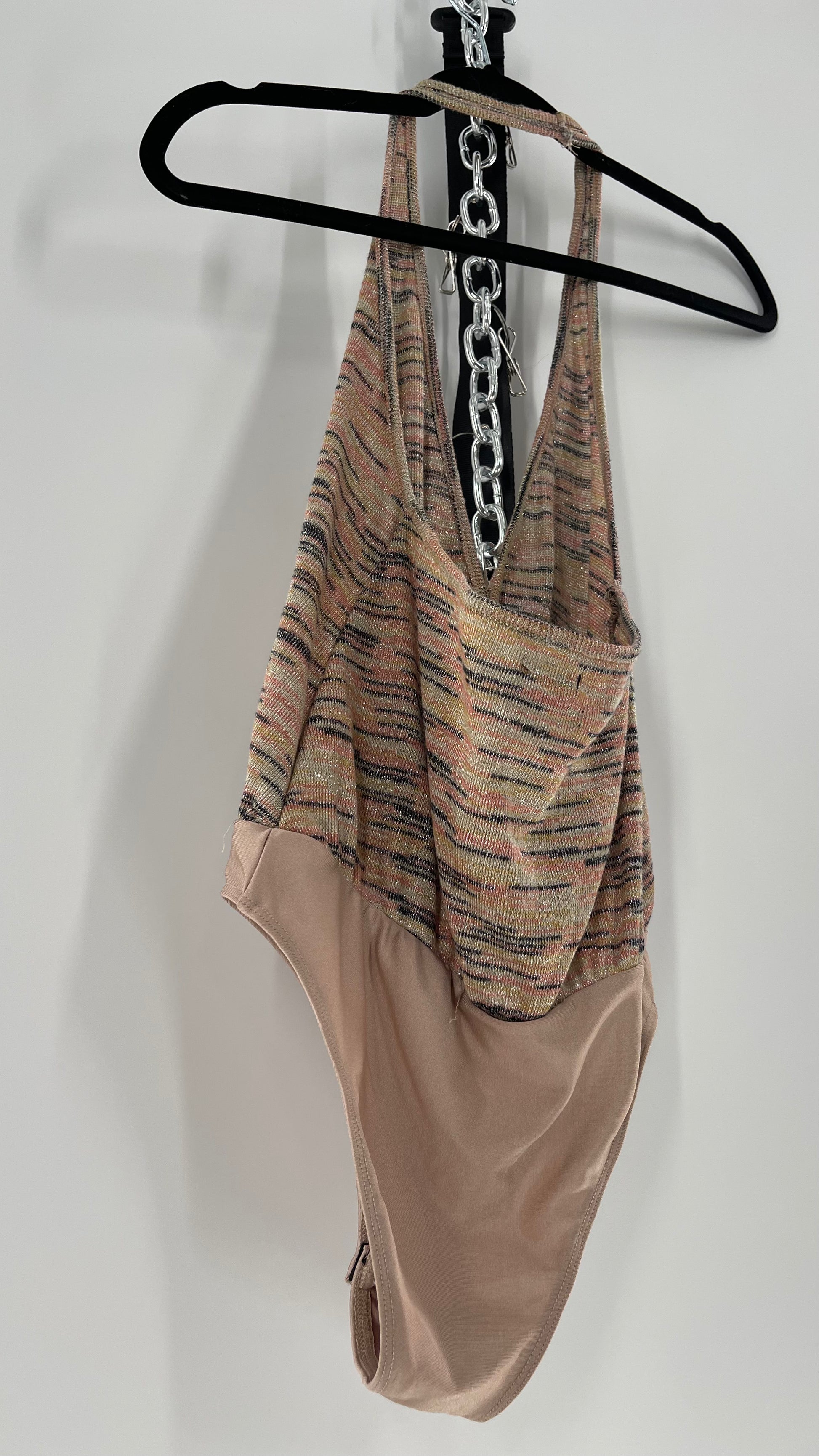 Urban Outfitters tan halter neck bodysuit with knit, silver threaded torso and tan spandex body