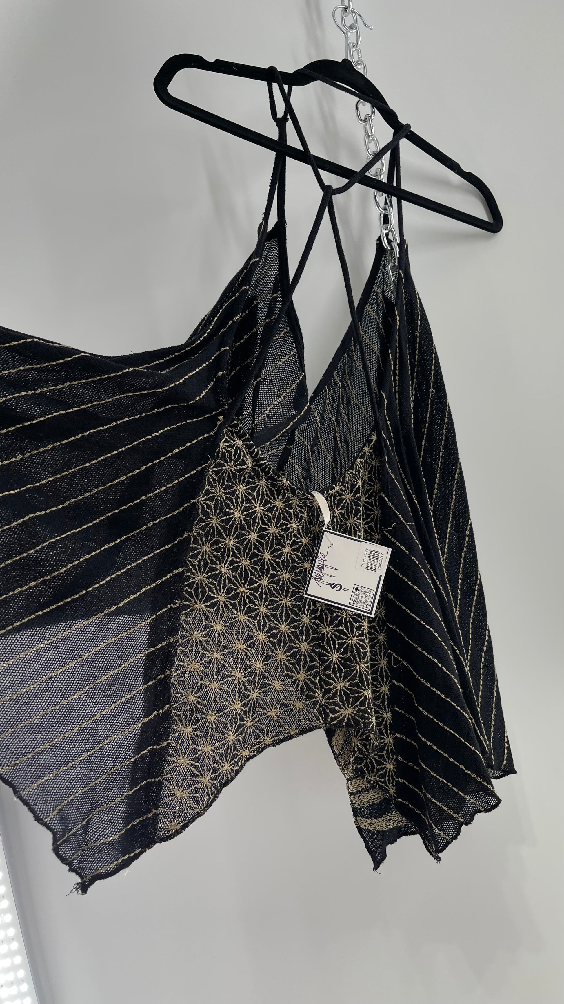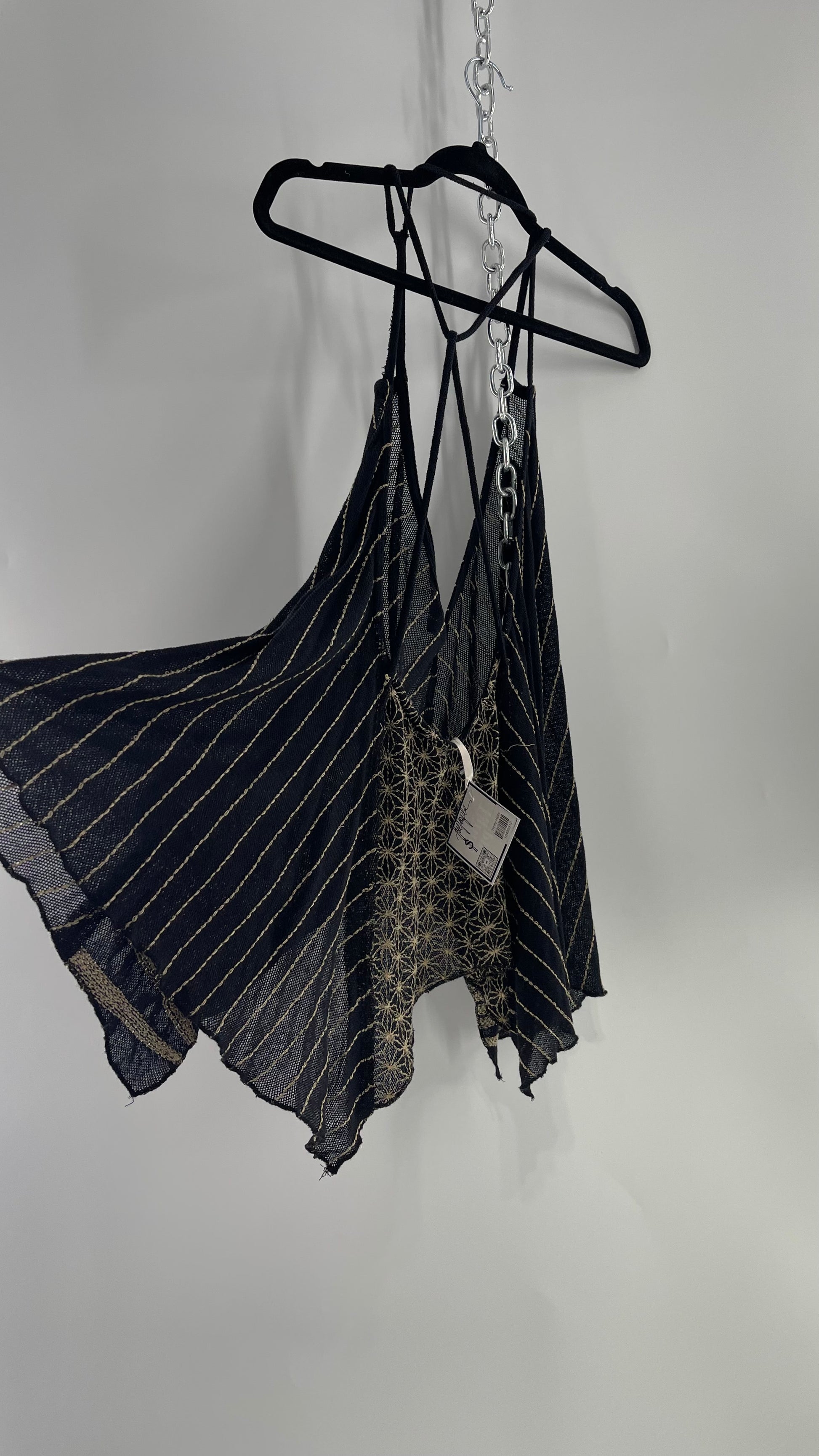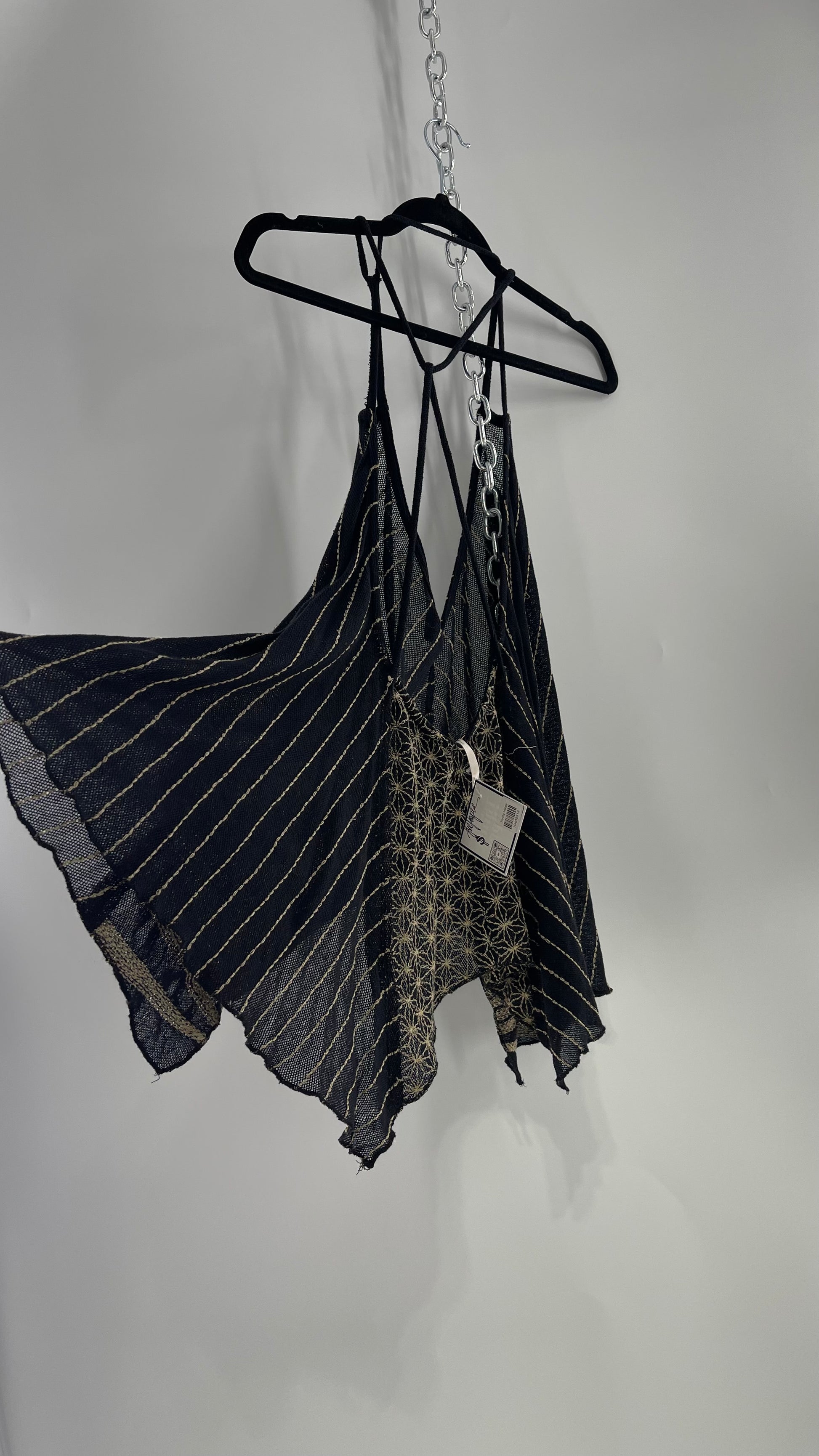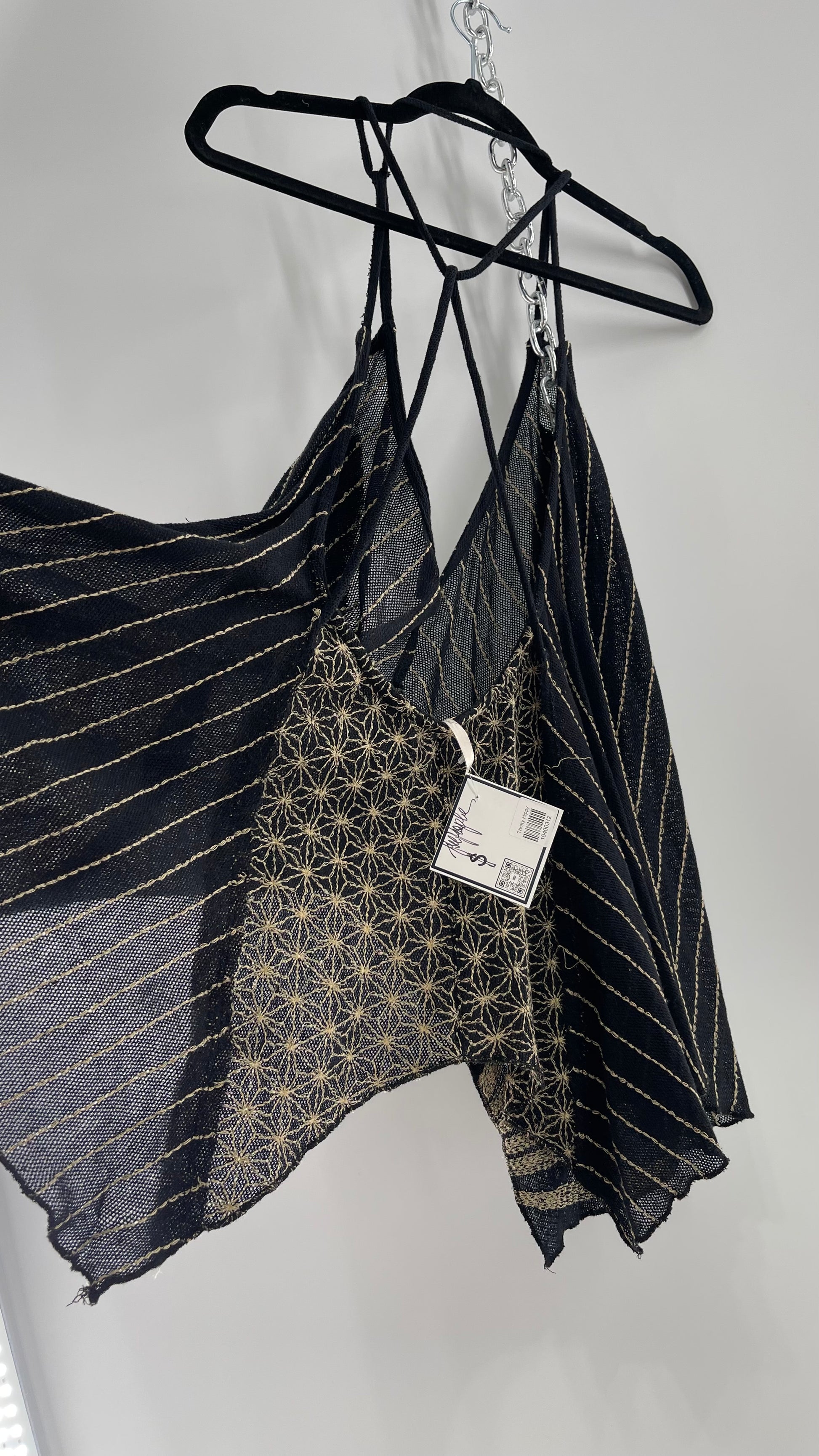 Free People Black Flowy Tank with Tan Embroidery Design (Small)