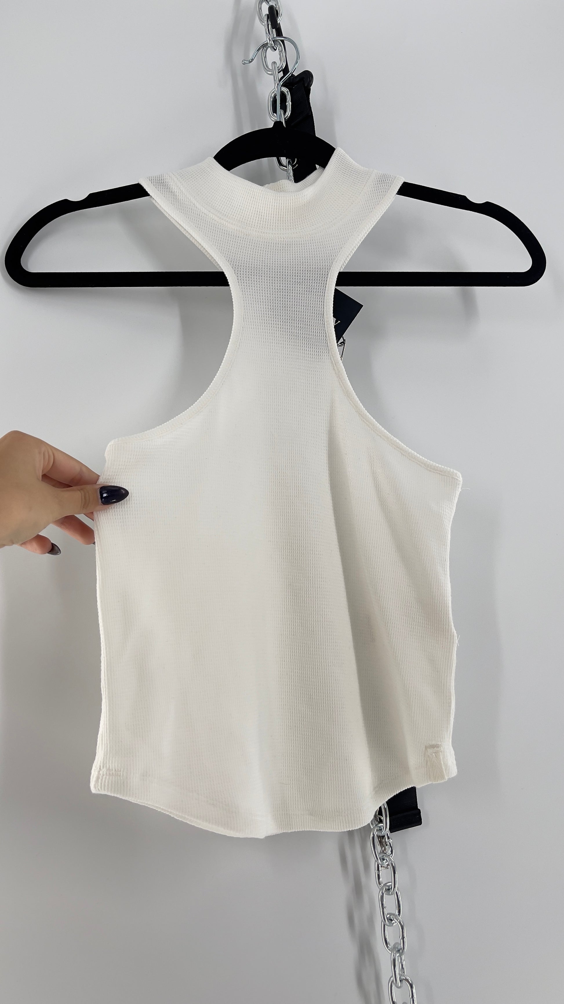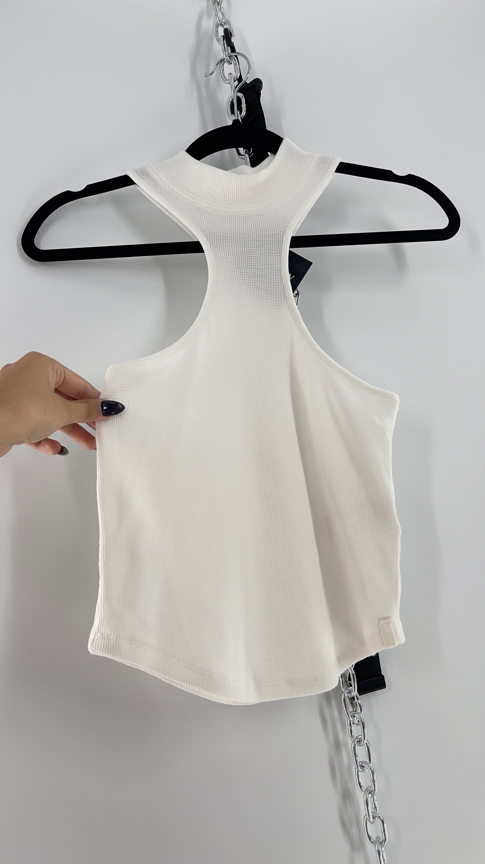 Free People High Neck White Waffle Knit Tank (Small) |
