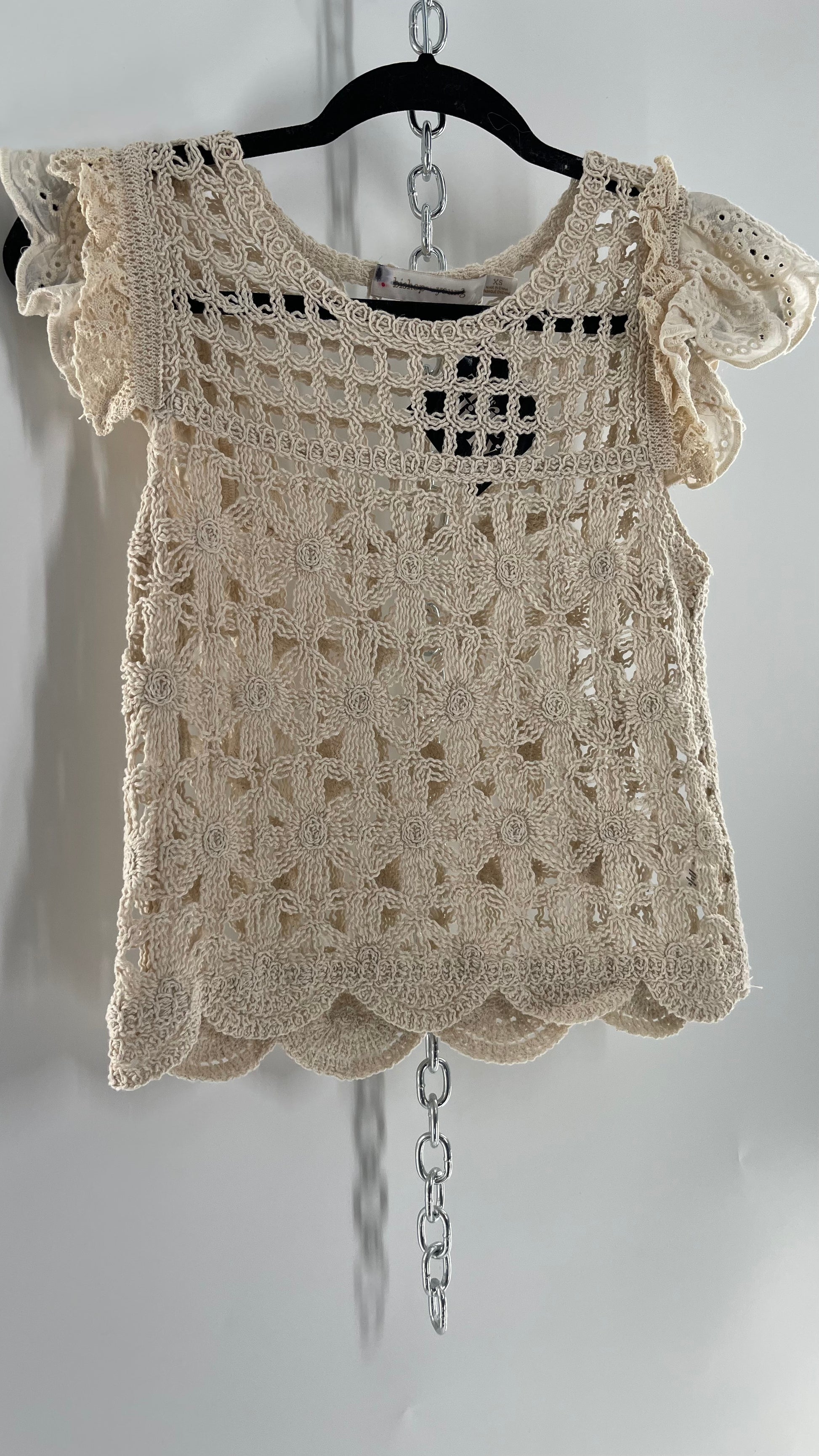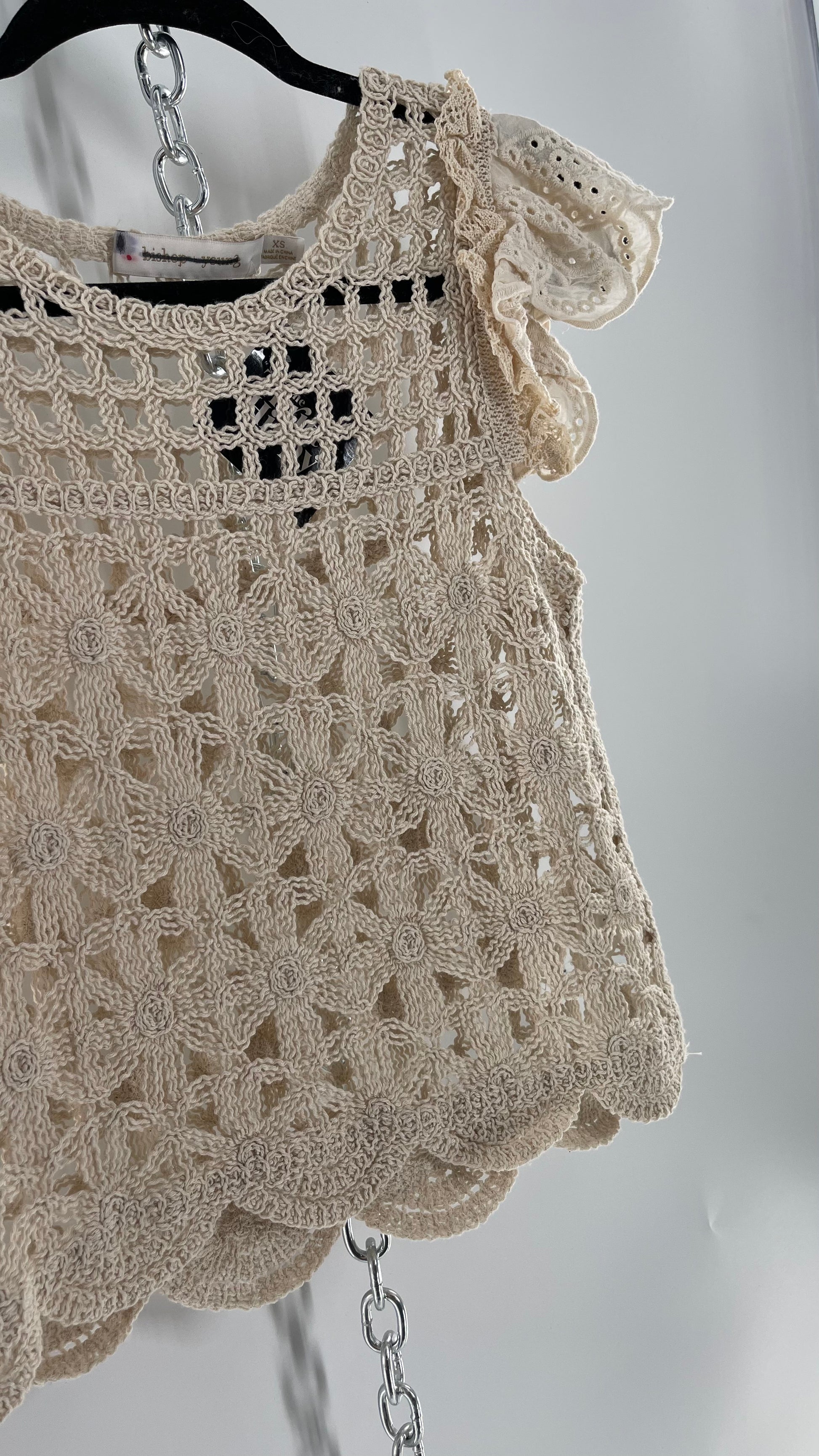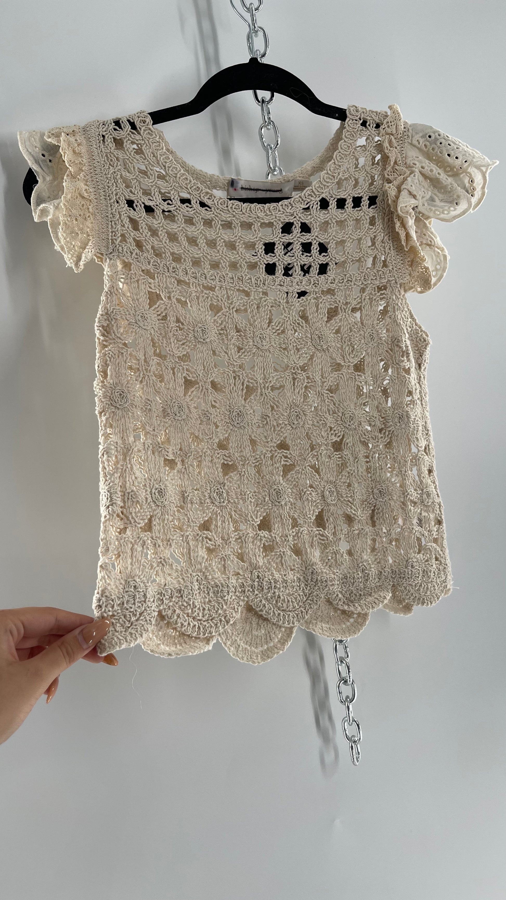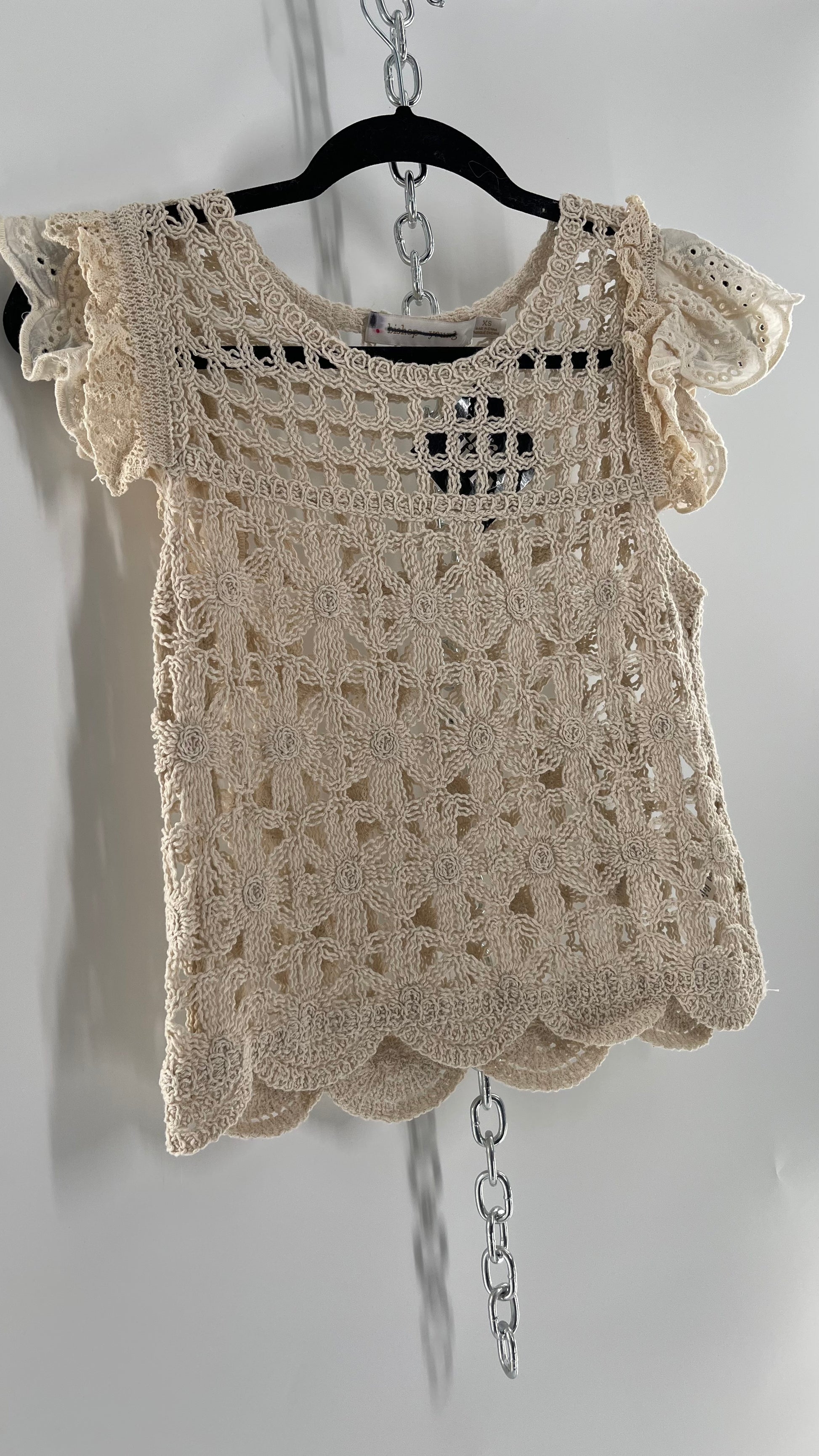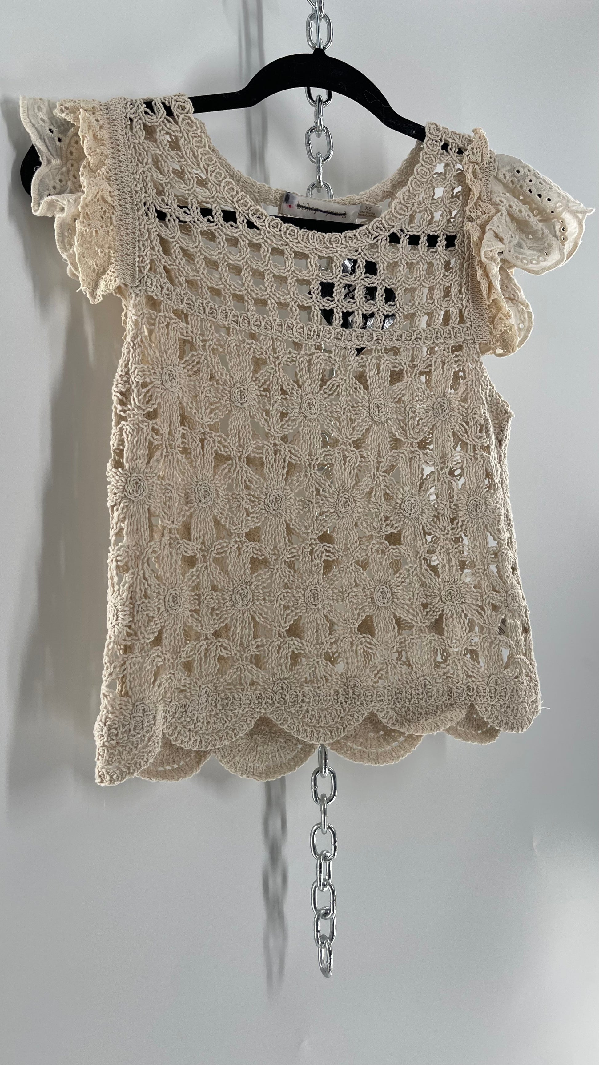 Bishop + Young Anthropologie Crochet Tank with Scalloped Hem and Lace Lined Sleeves (Small)