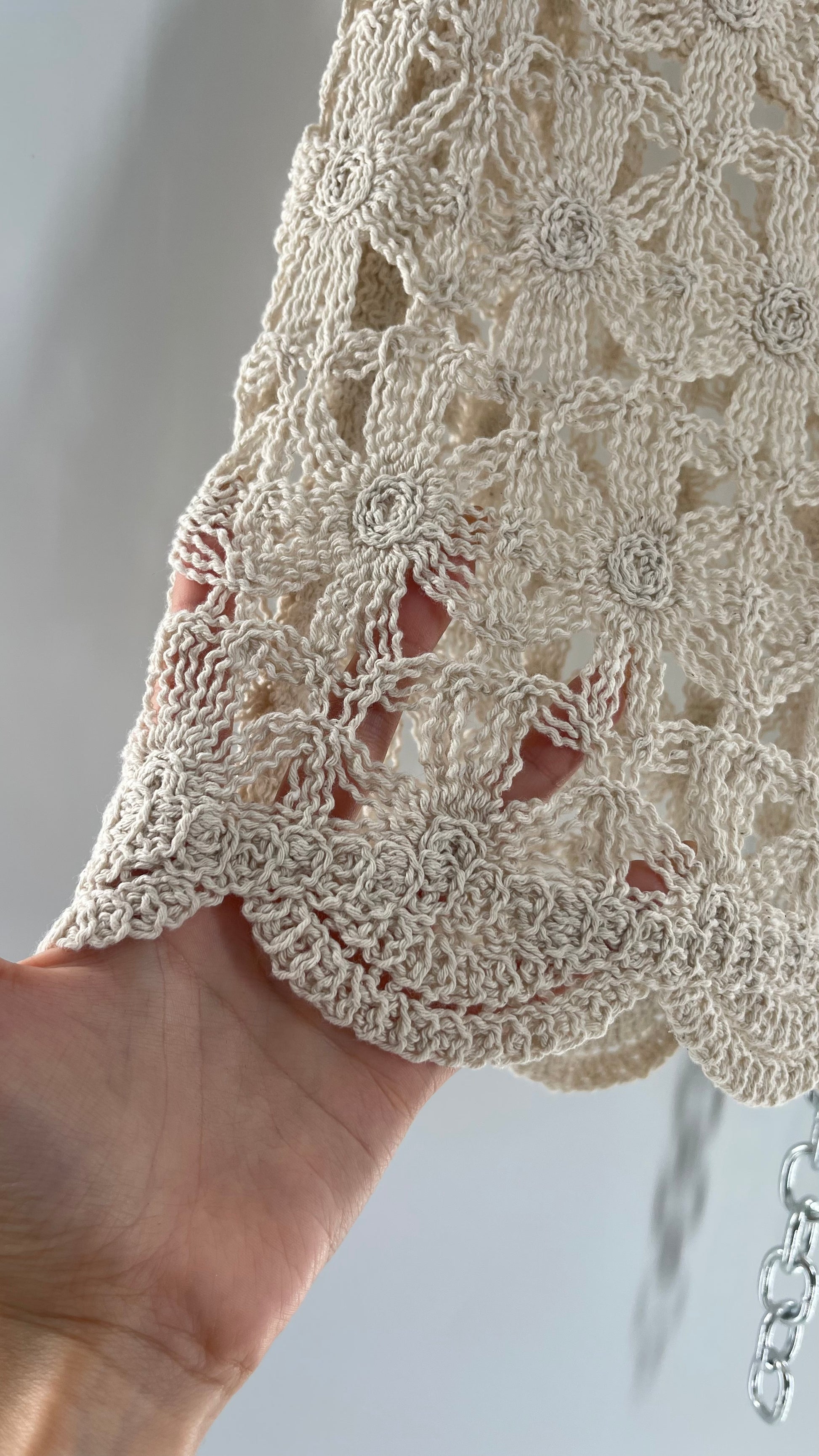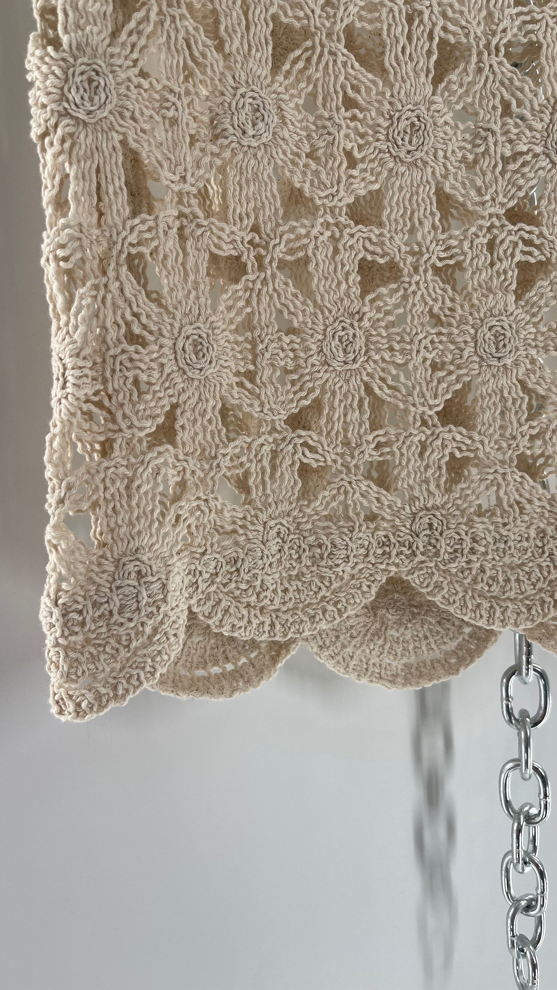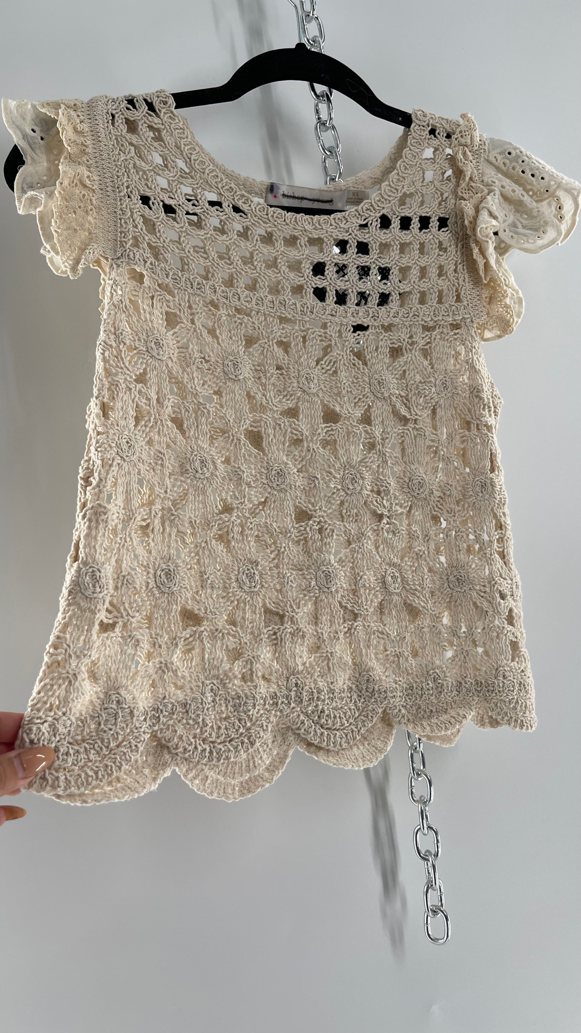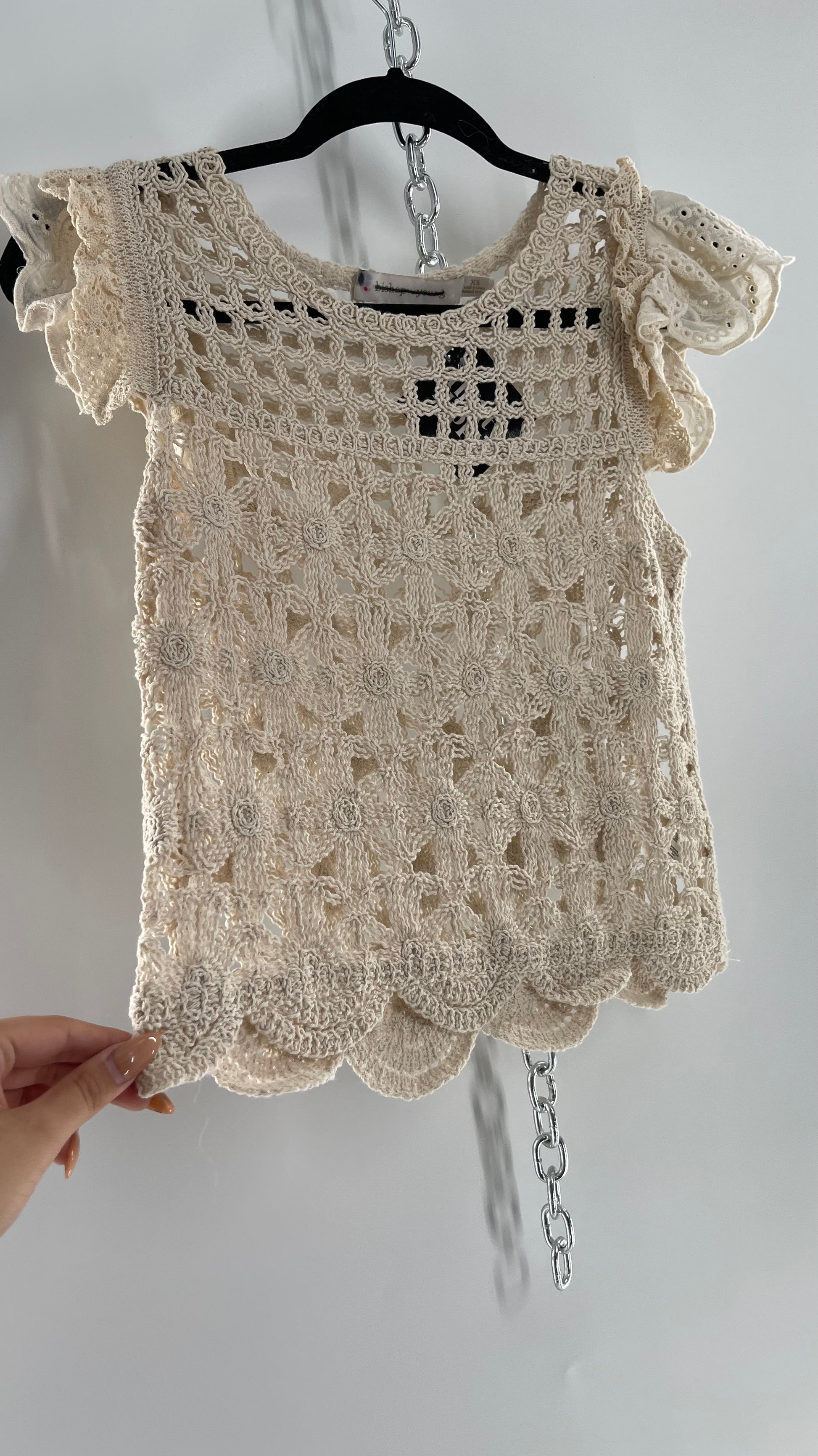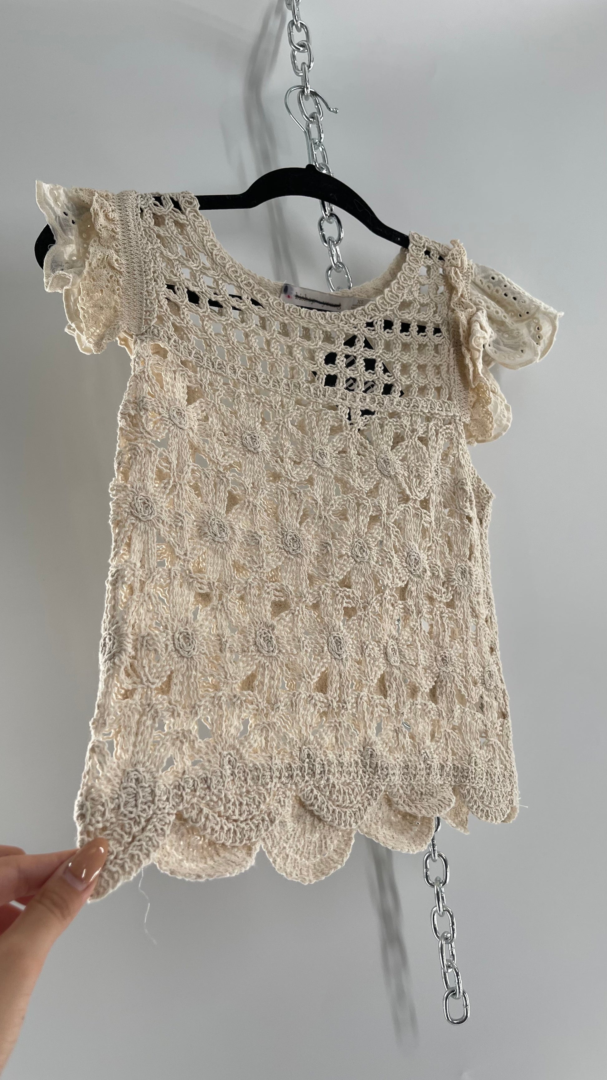 Bishop + Young Anthropologie Crochet Tank with Scalloped Hem and Lace Lined Sleeves (Small)