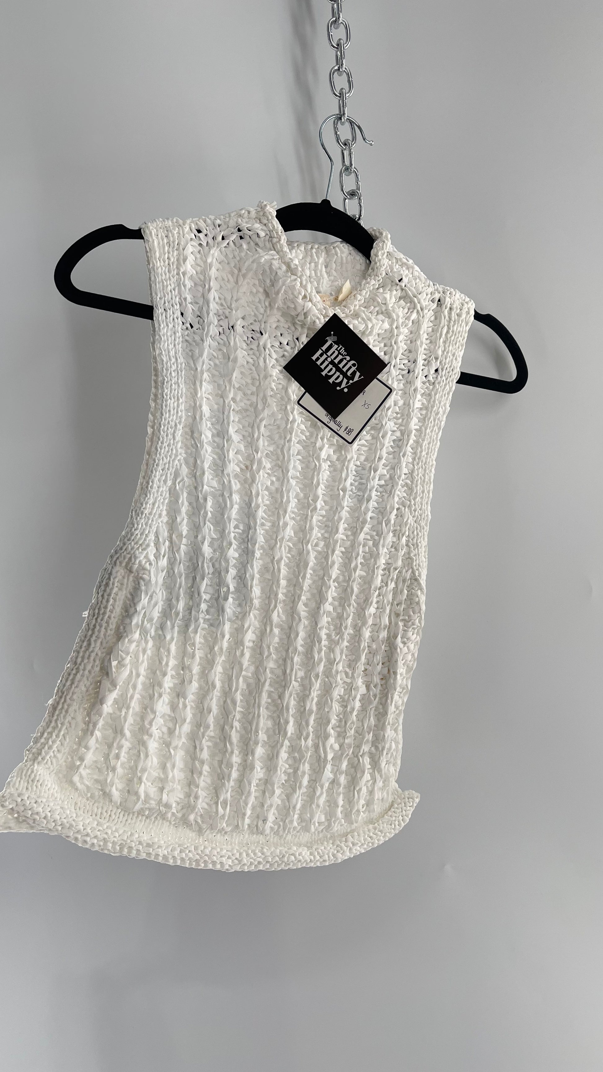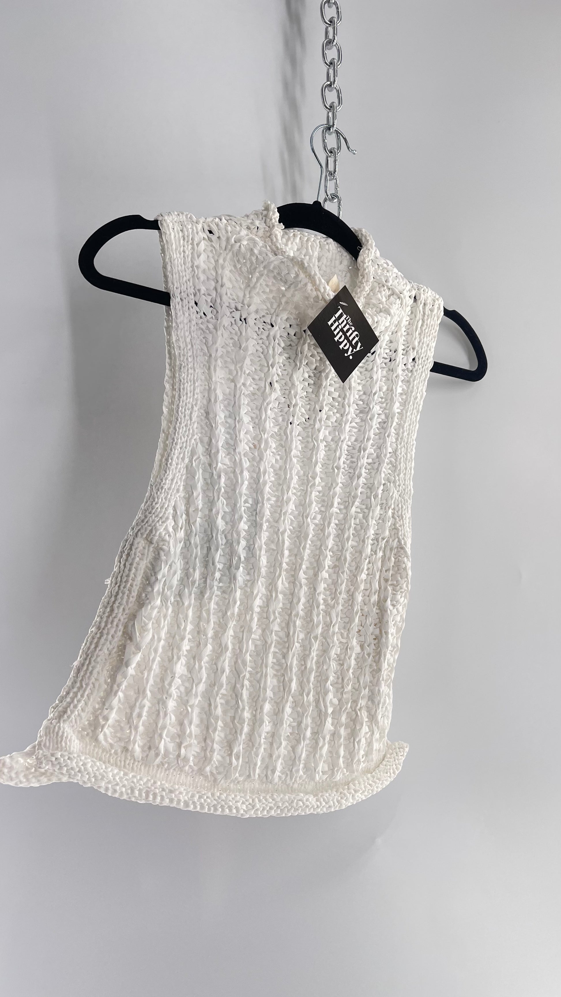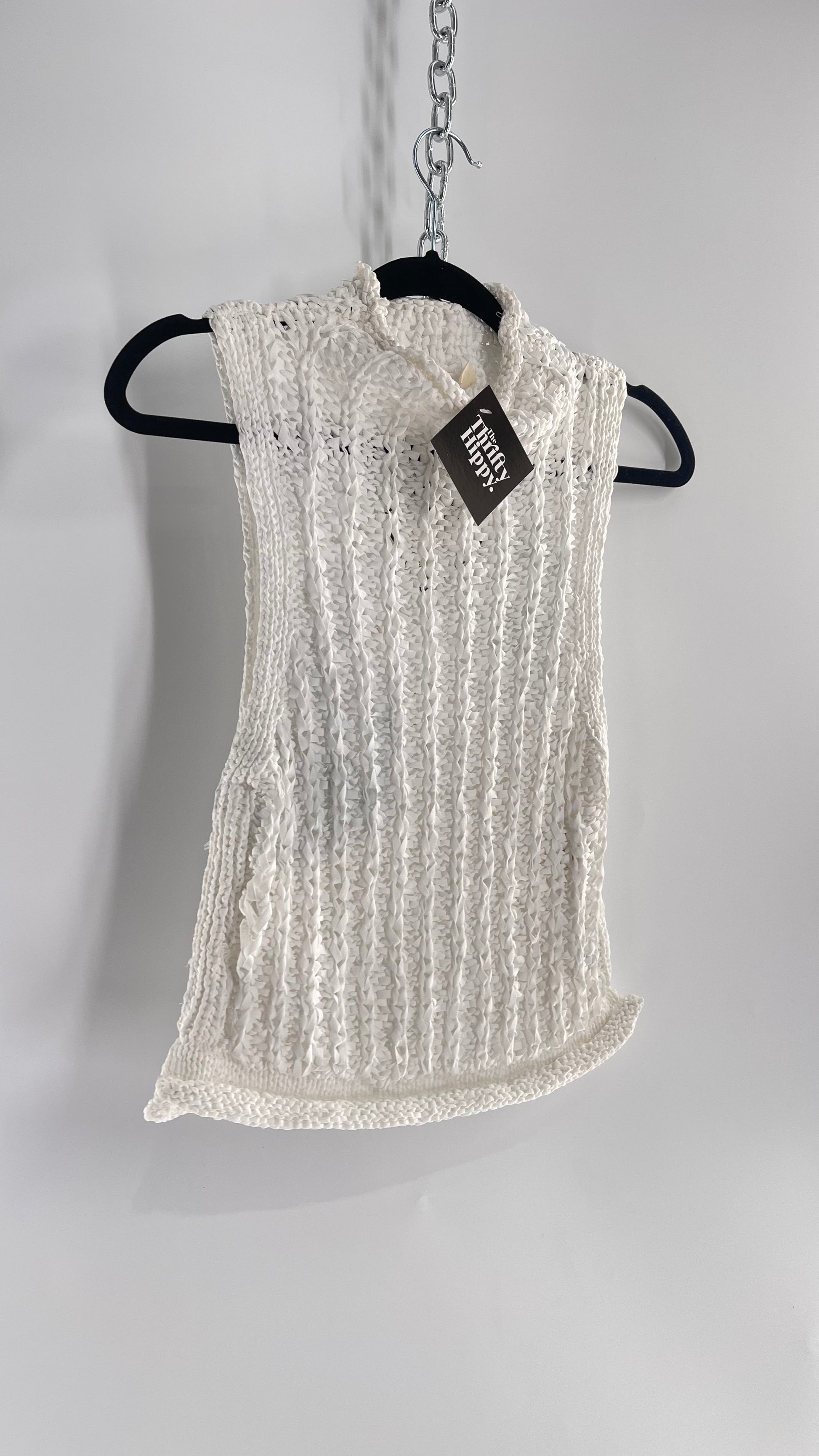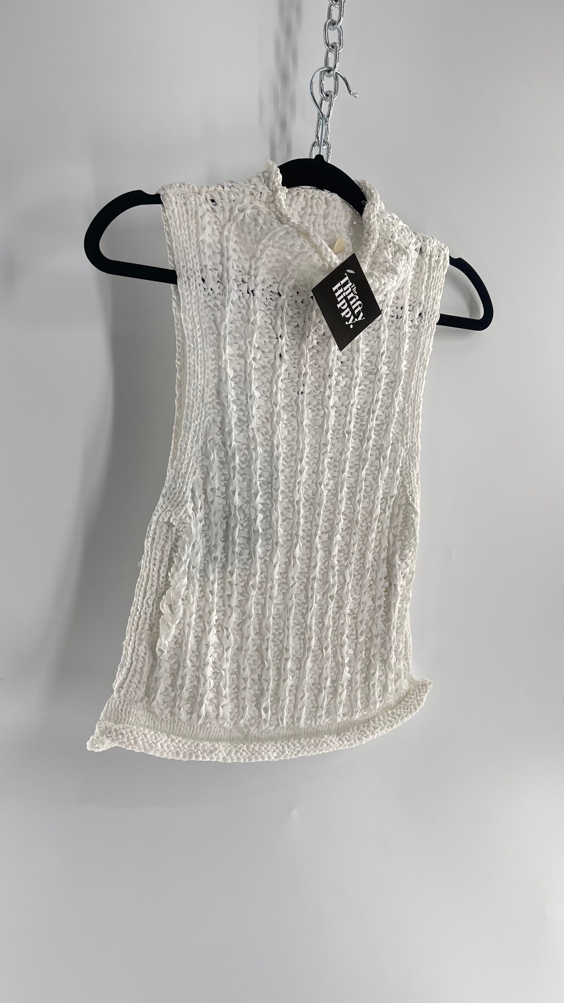 Anthropologie Moth White Crochet Open Knit Mock Neck Tank