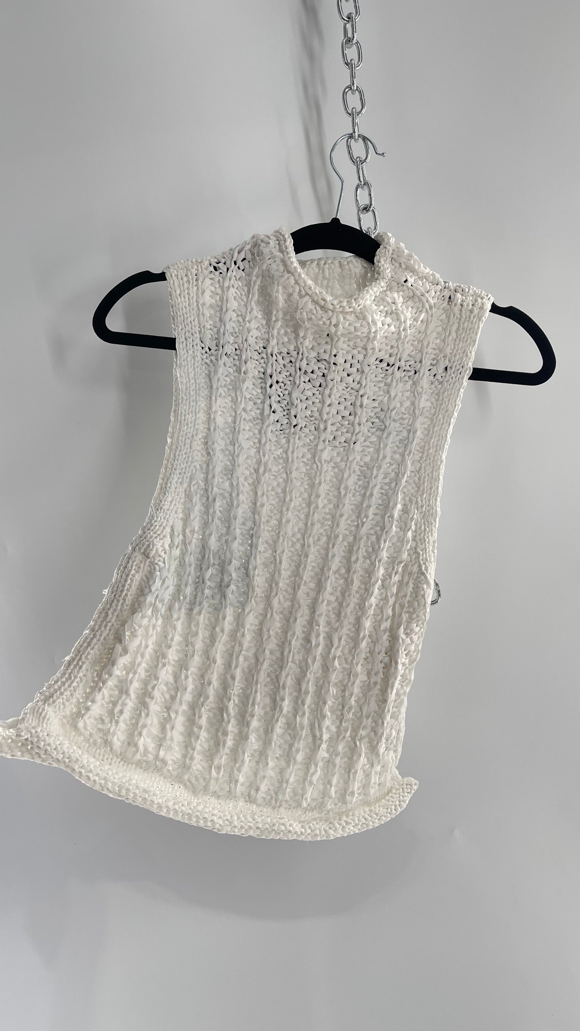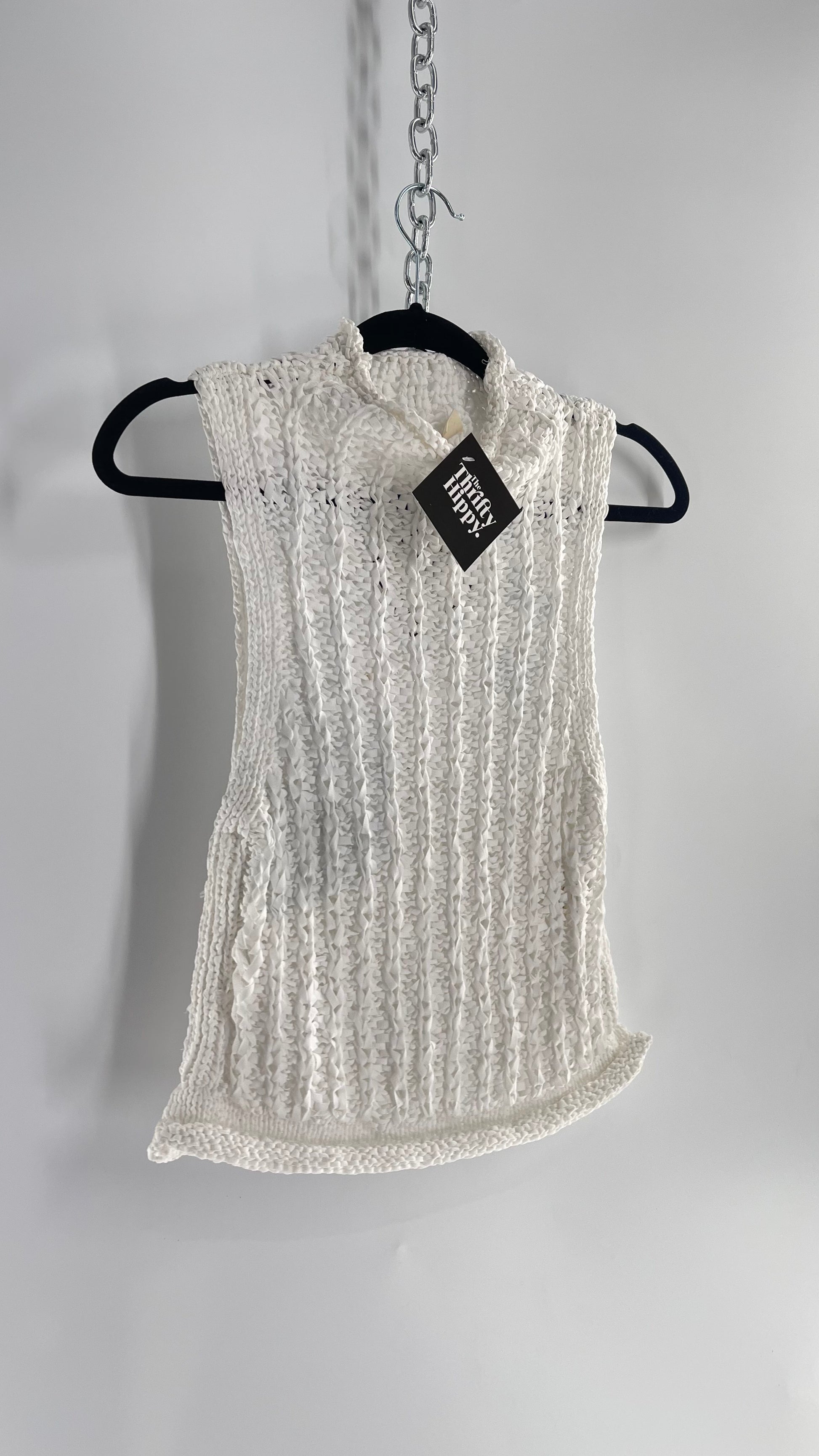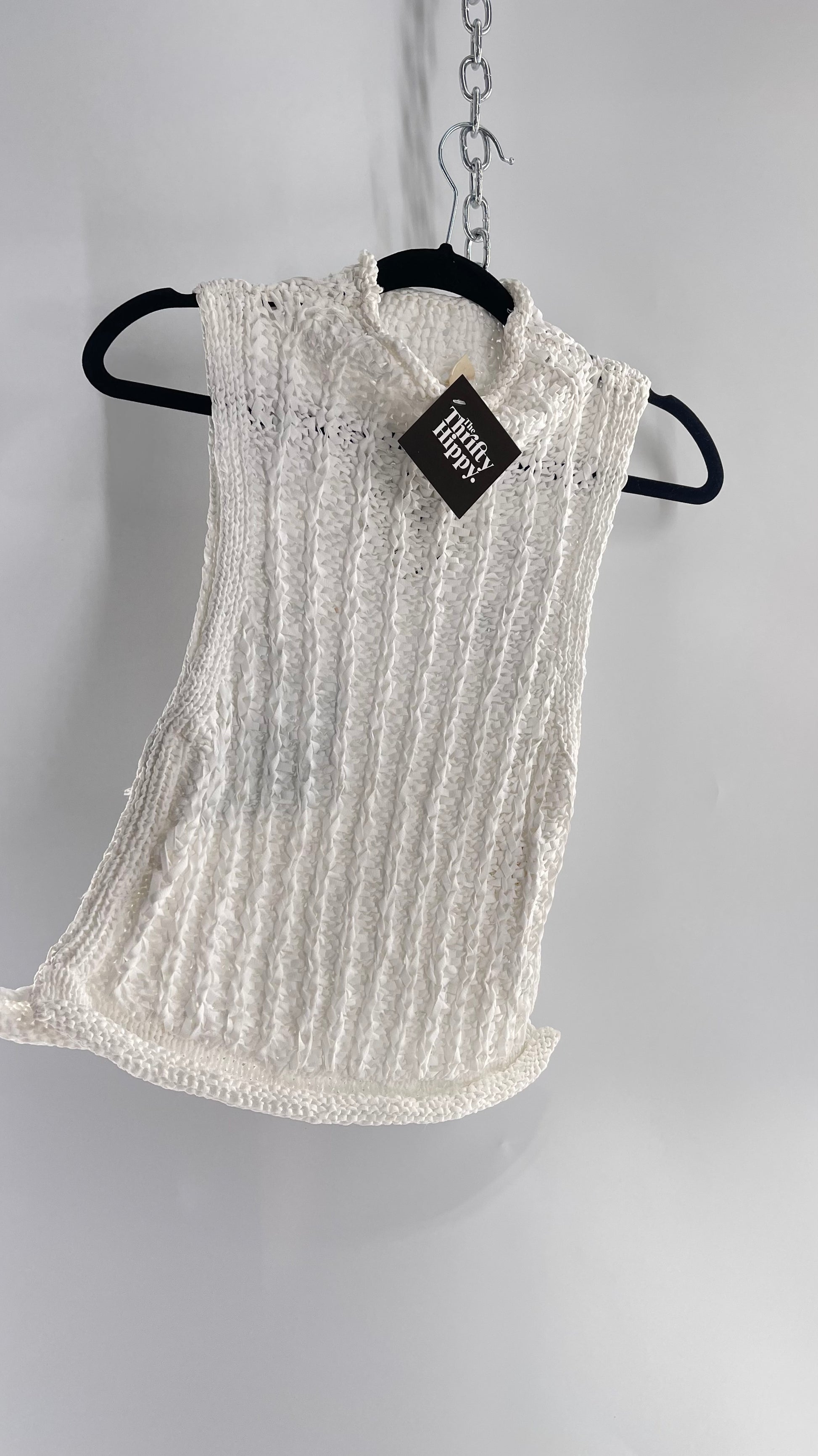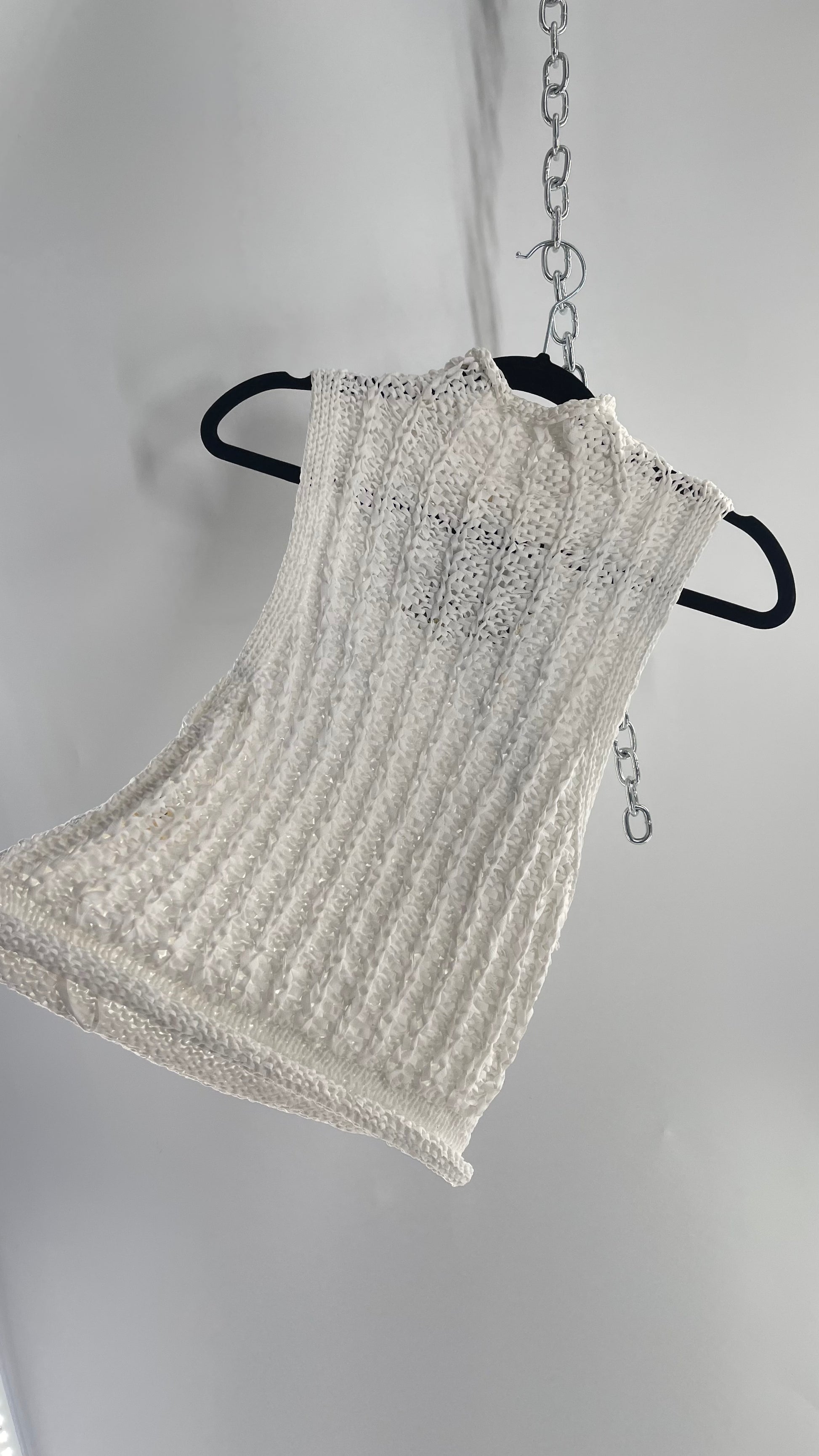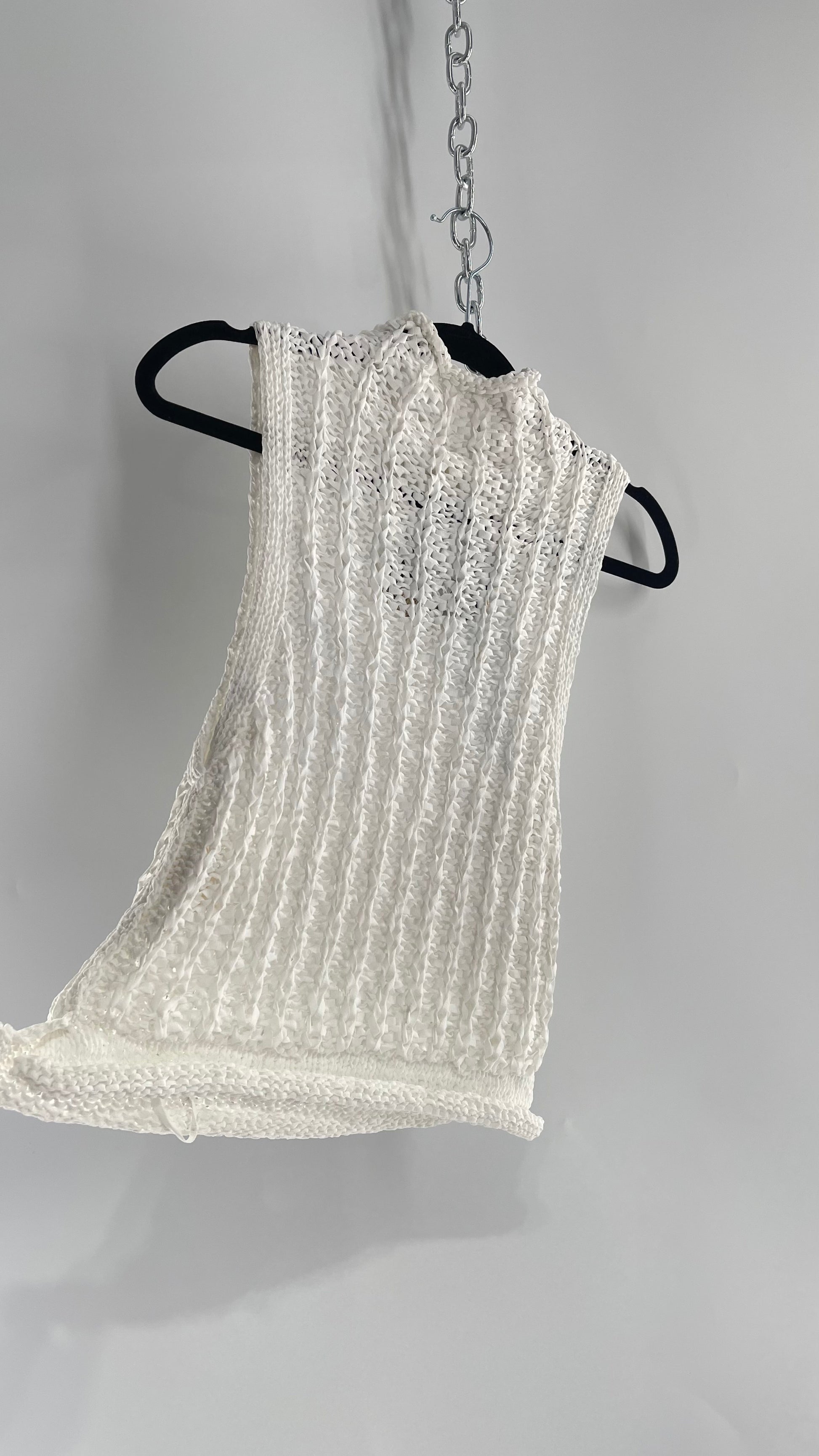Anthropologie Moth White Crochet Open Knit Mock Neck Tank