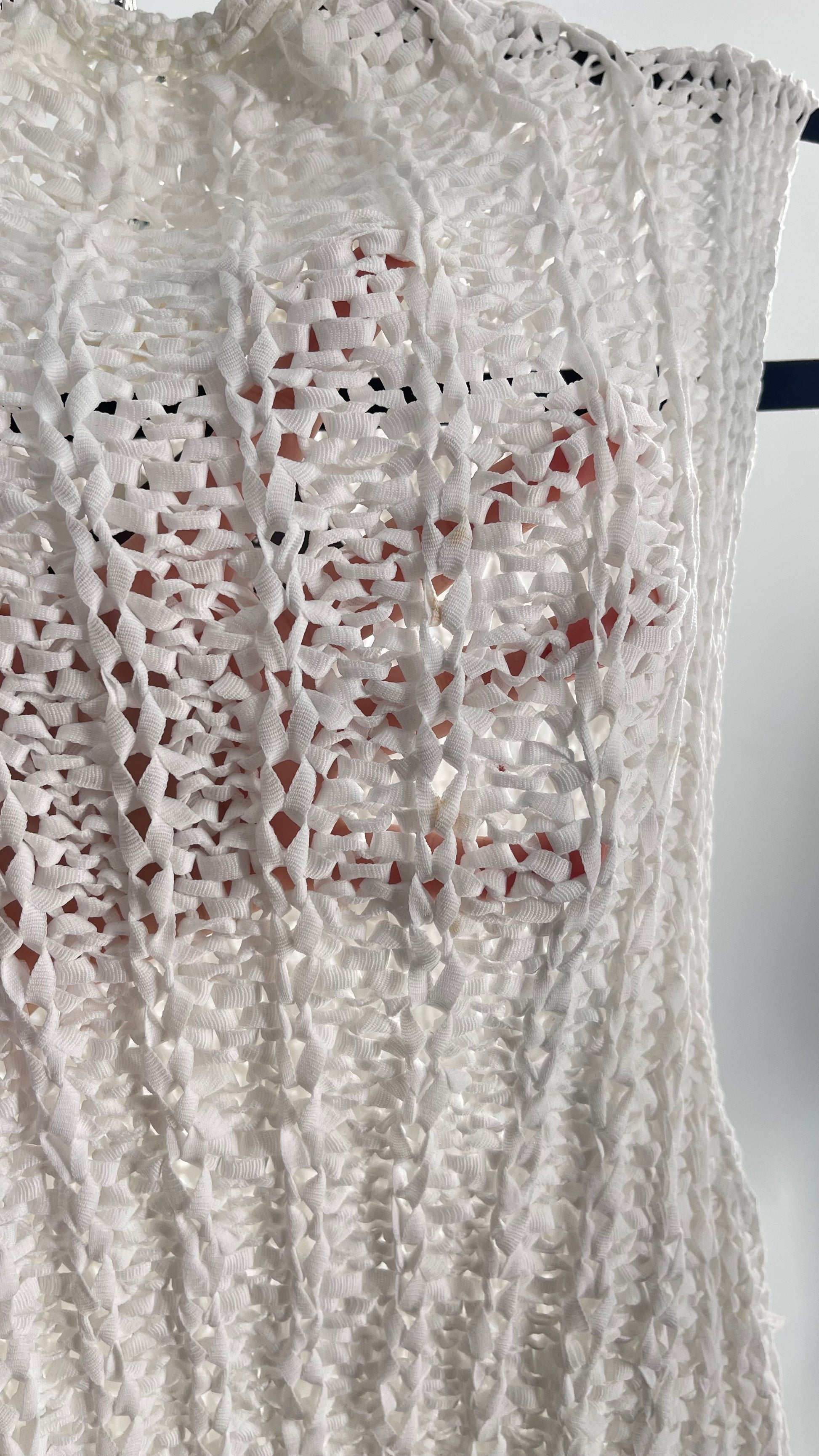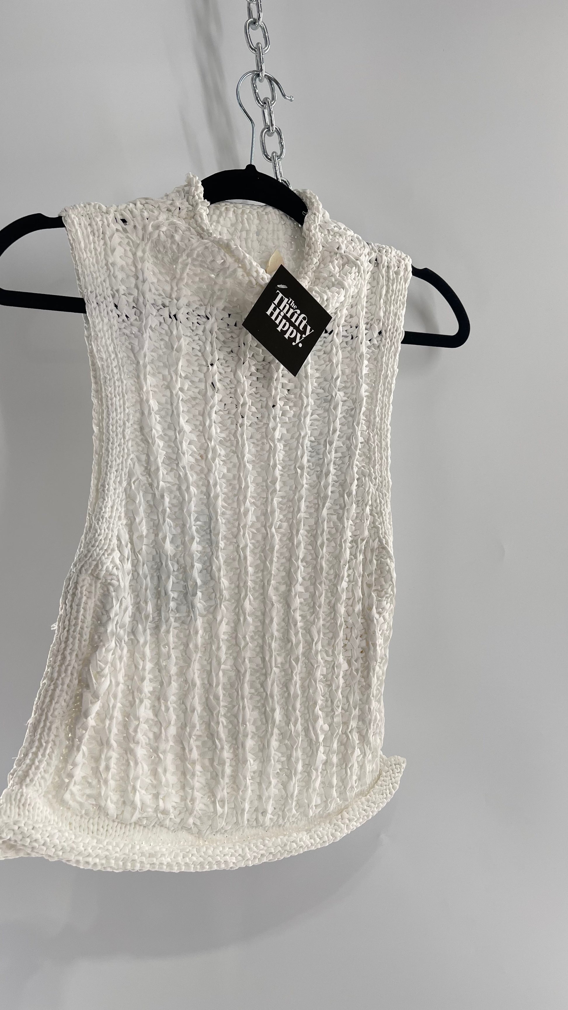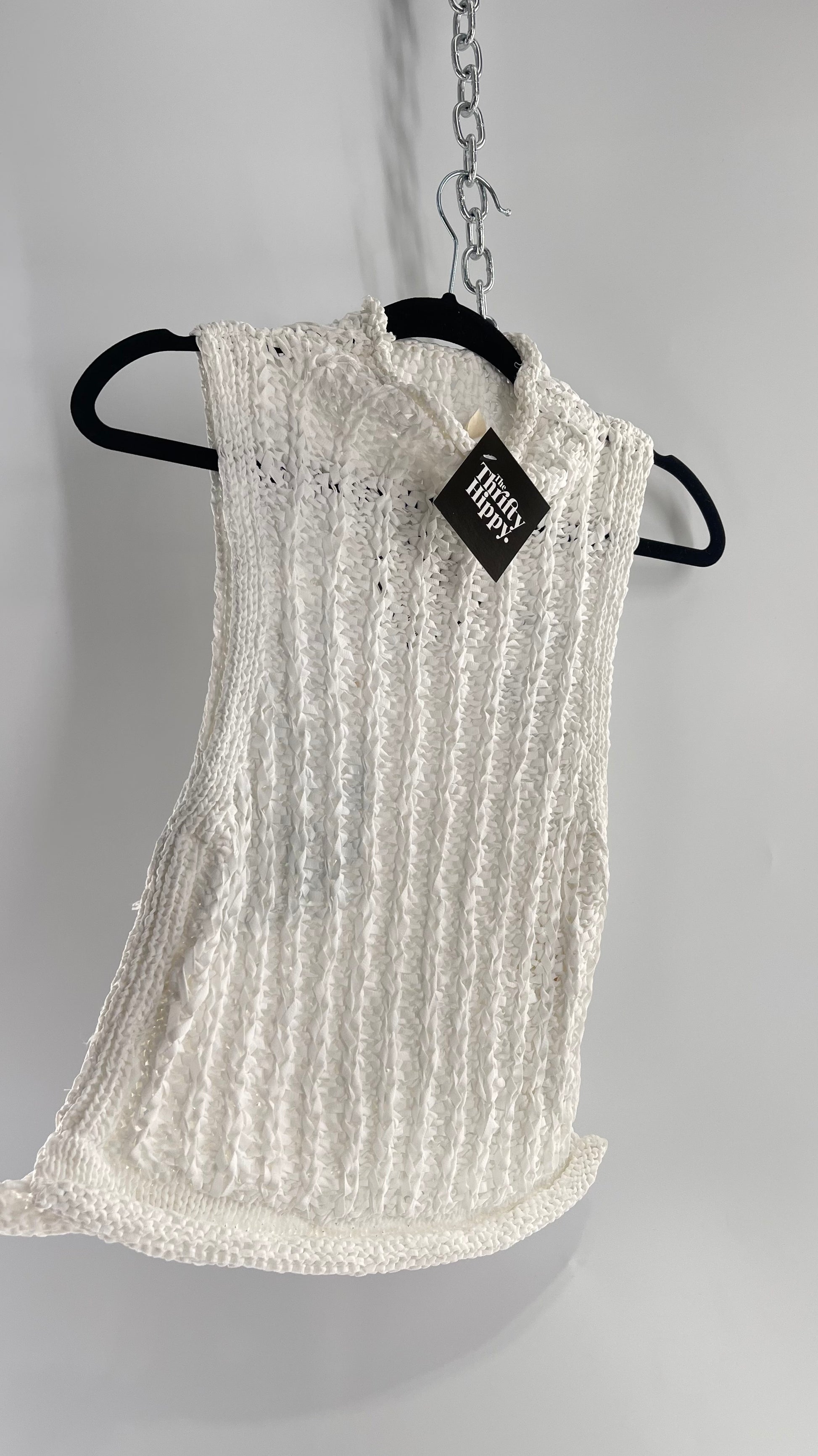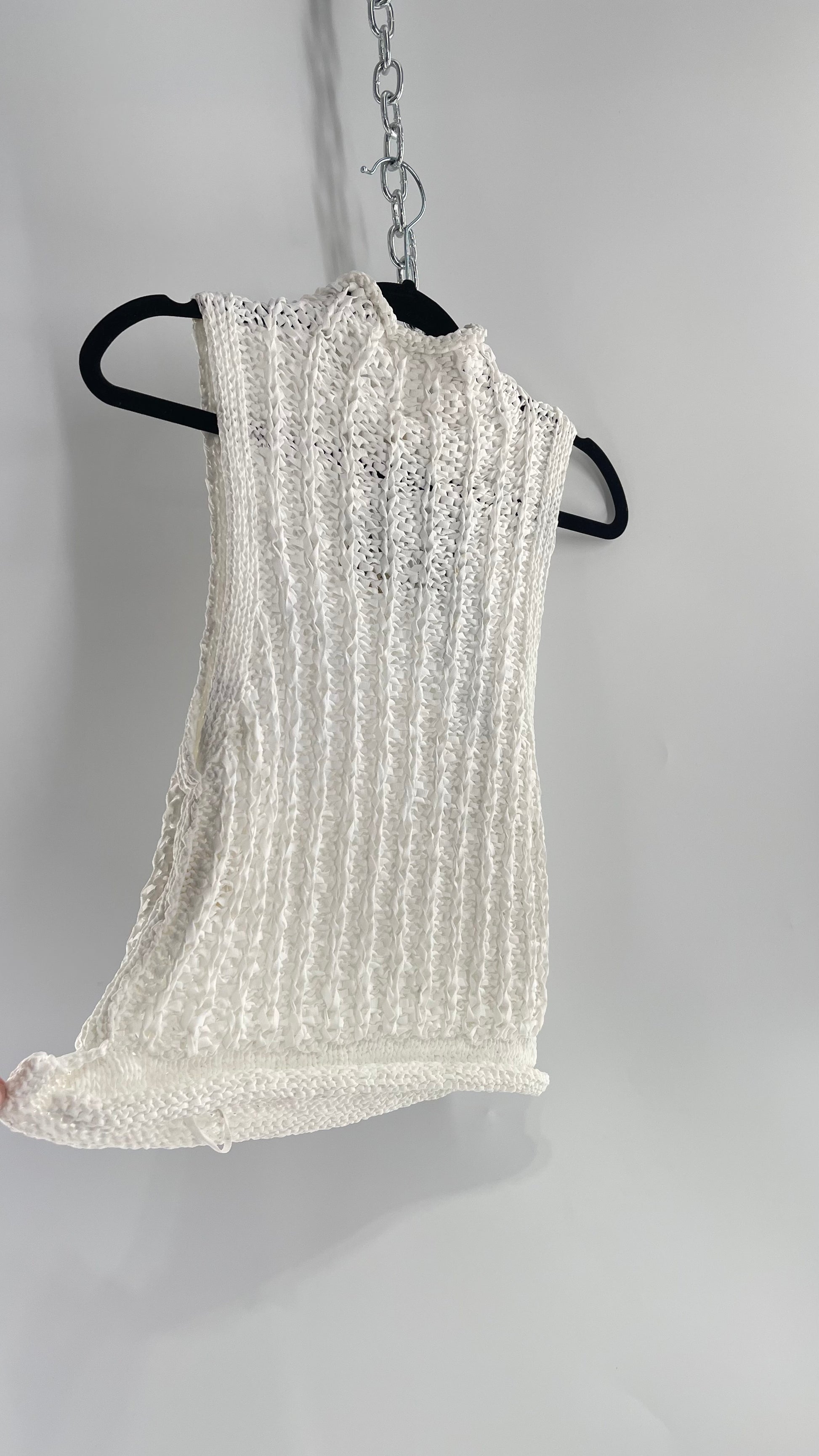 Anthropologie Moth White Crochet Open Knit Mock Neck Tank