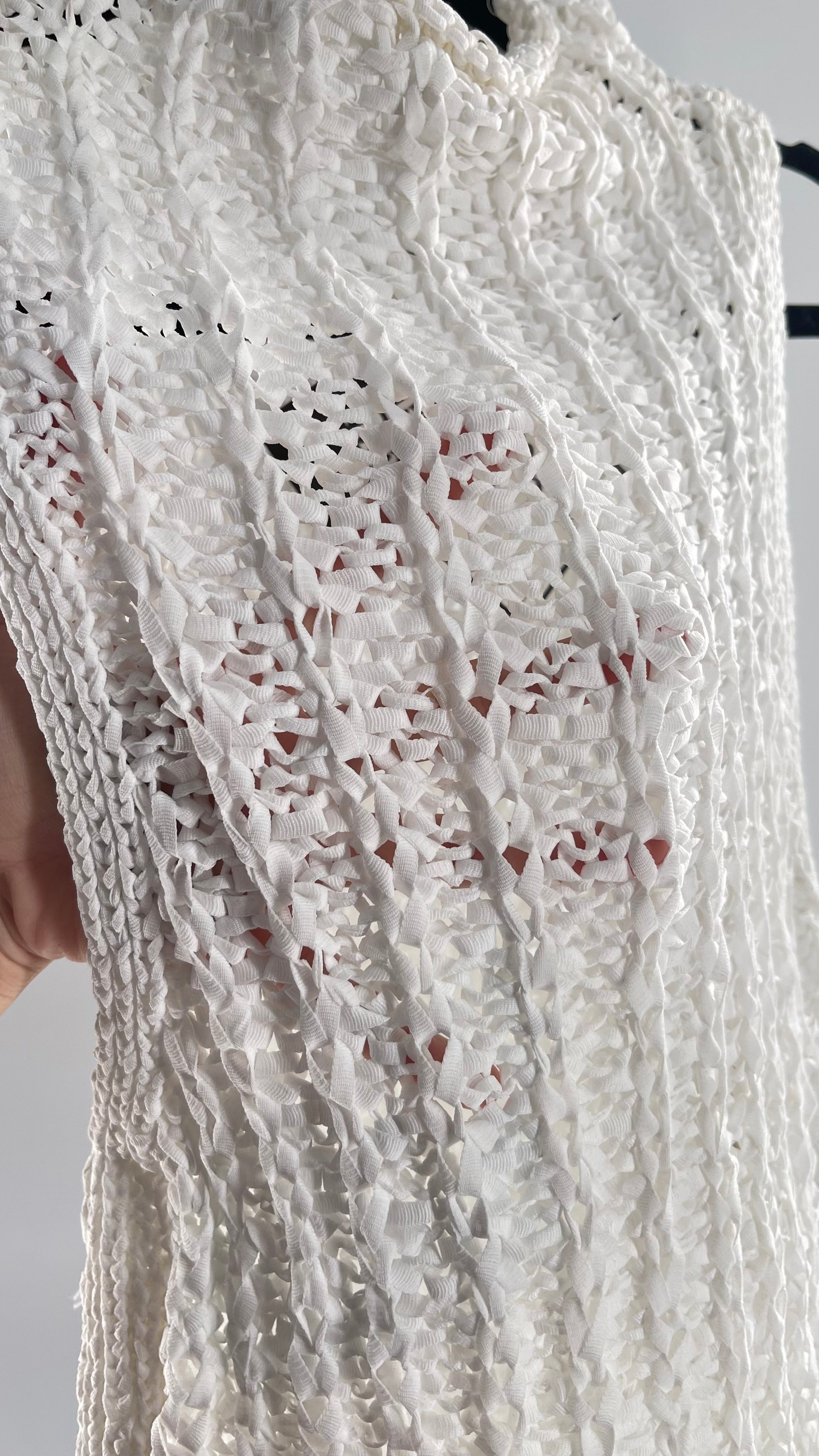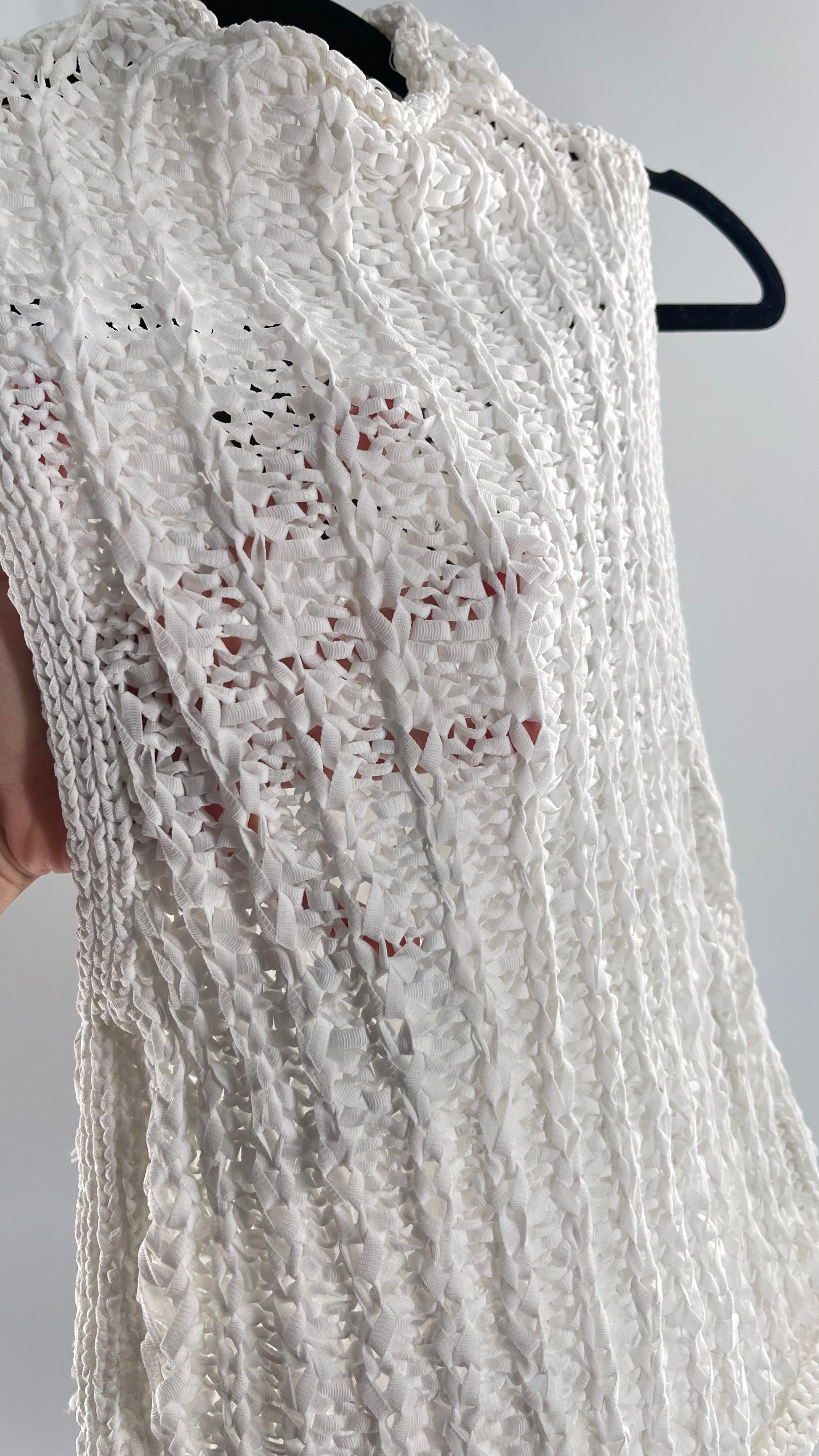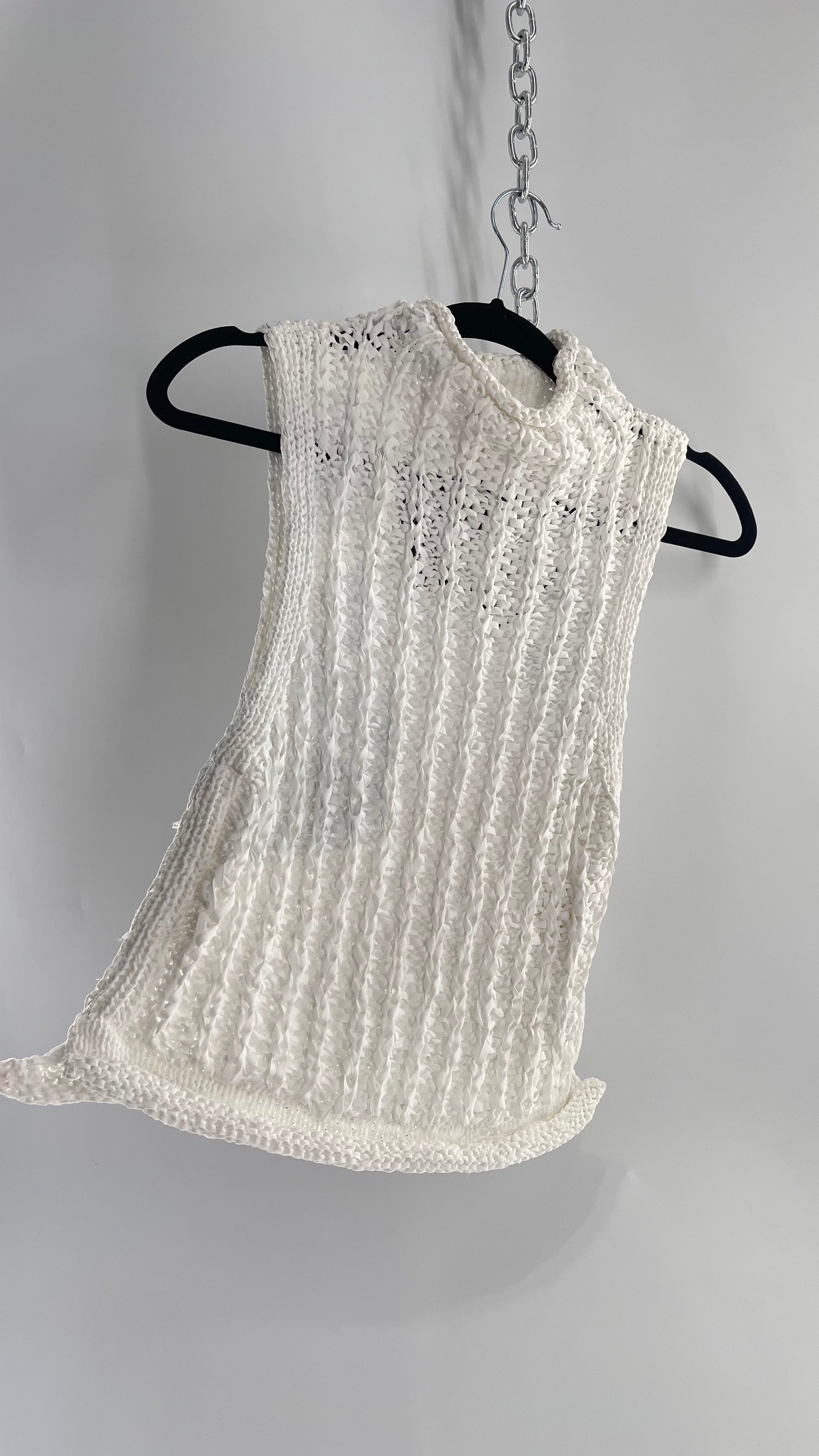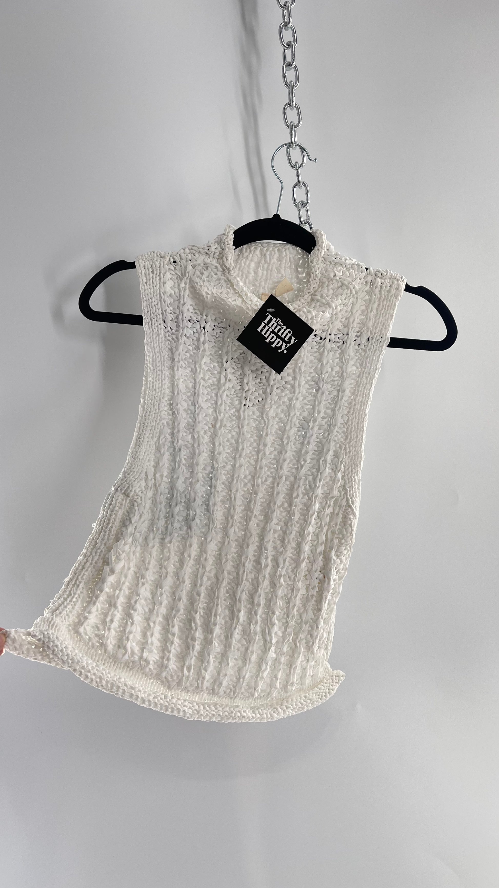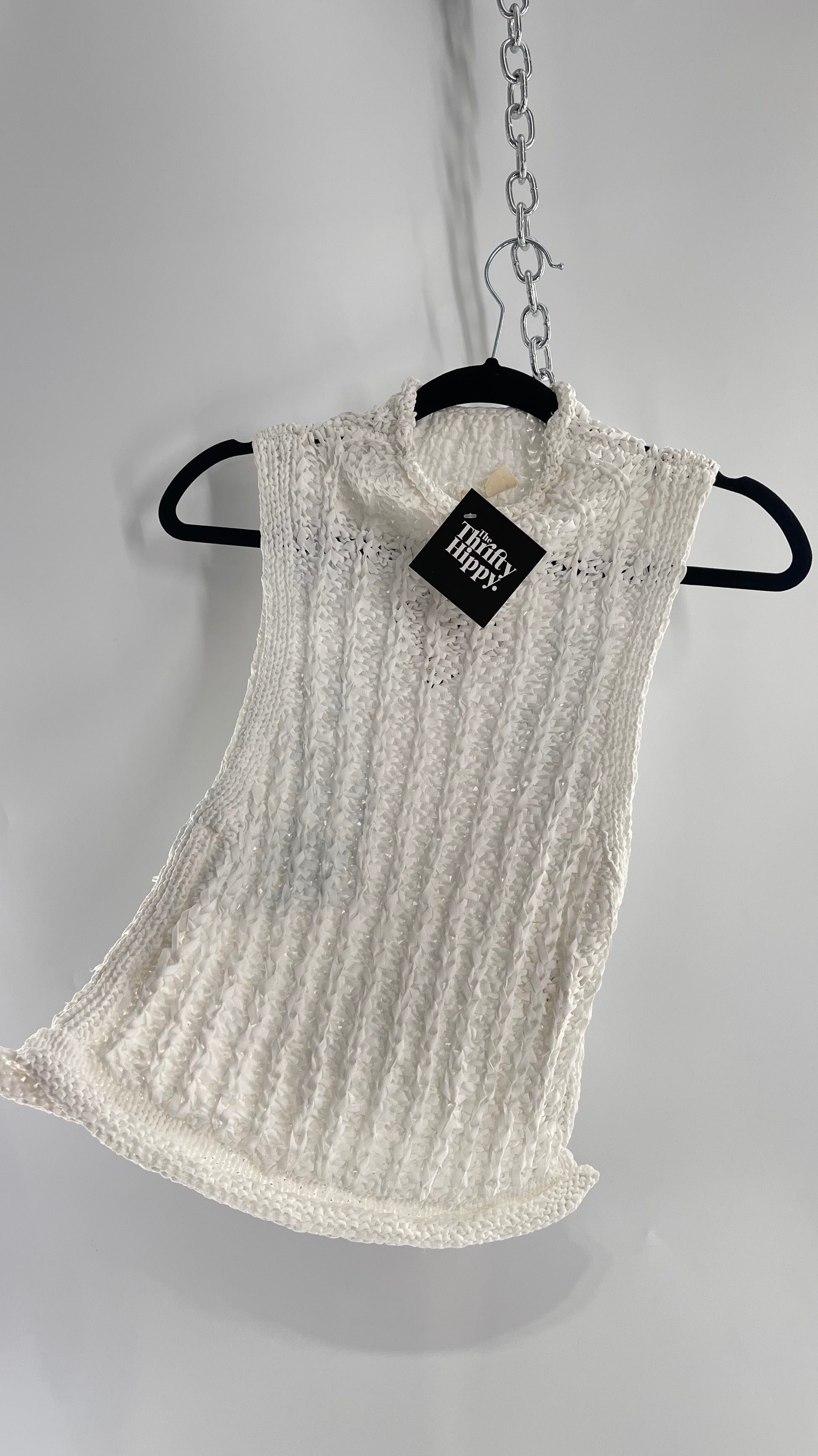 Anthropologie Moth White Crochet Open Knit Mock Neck Tank