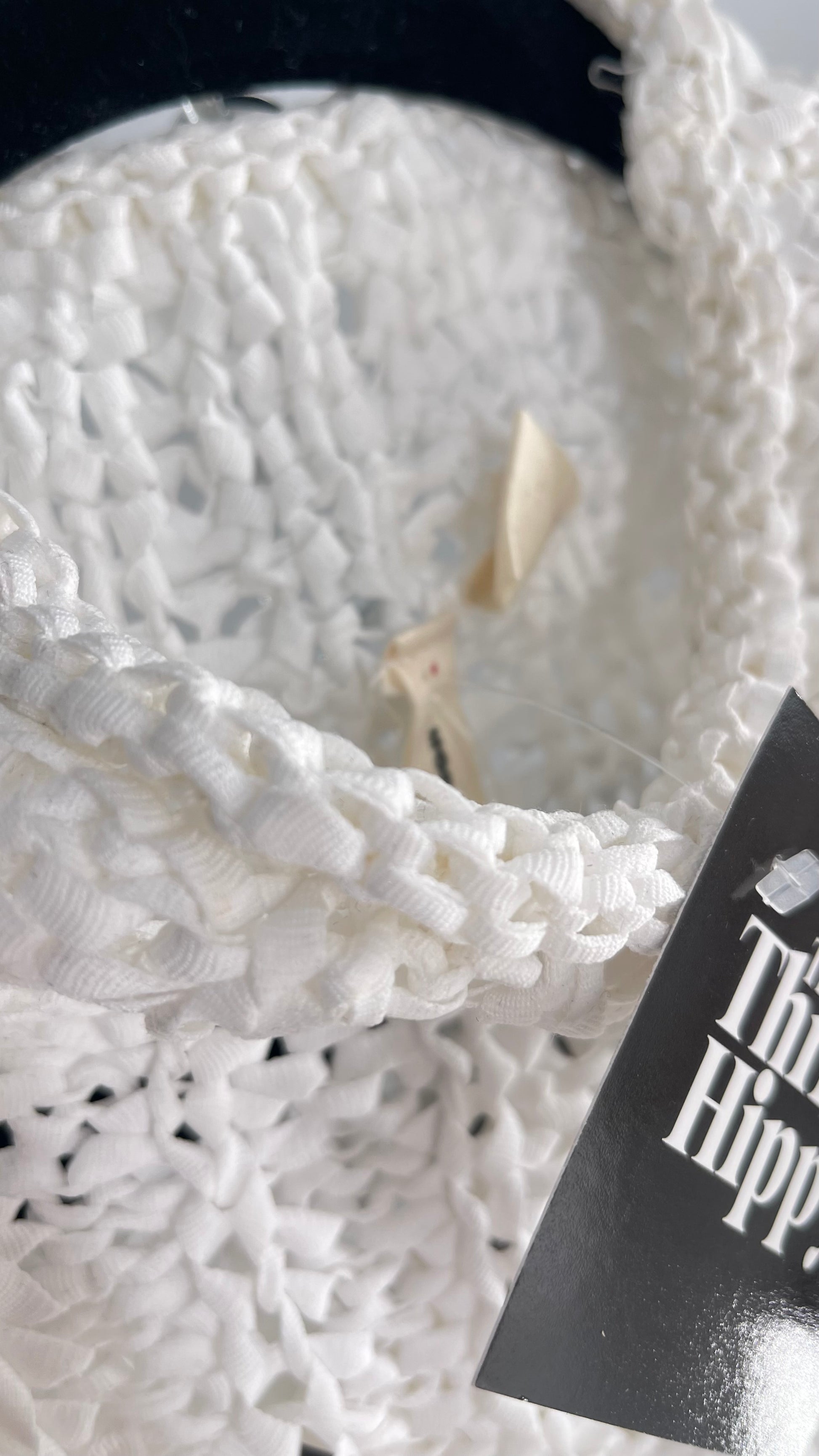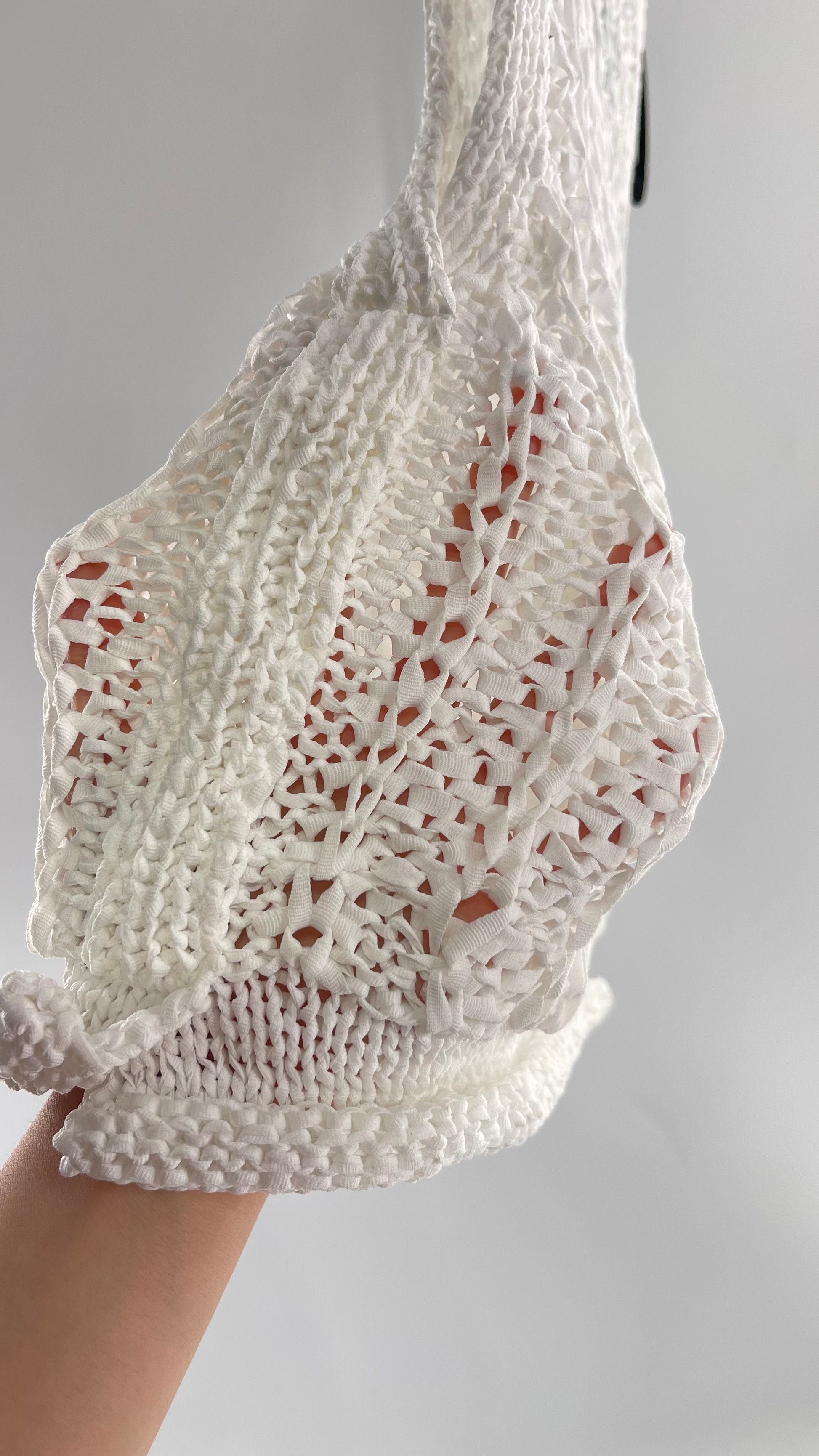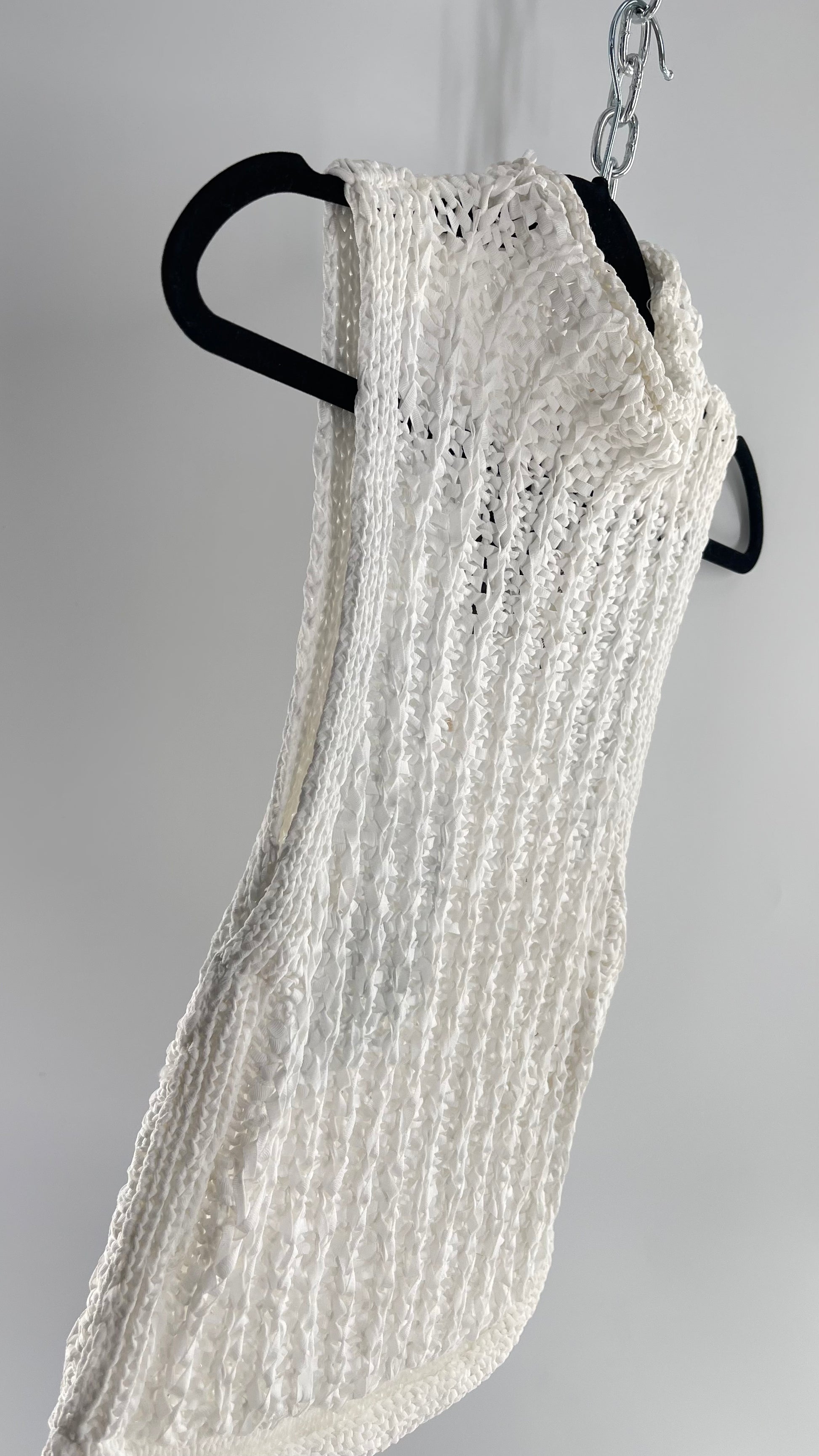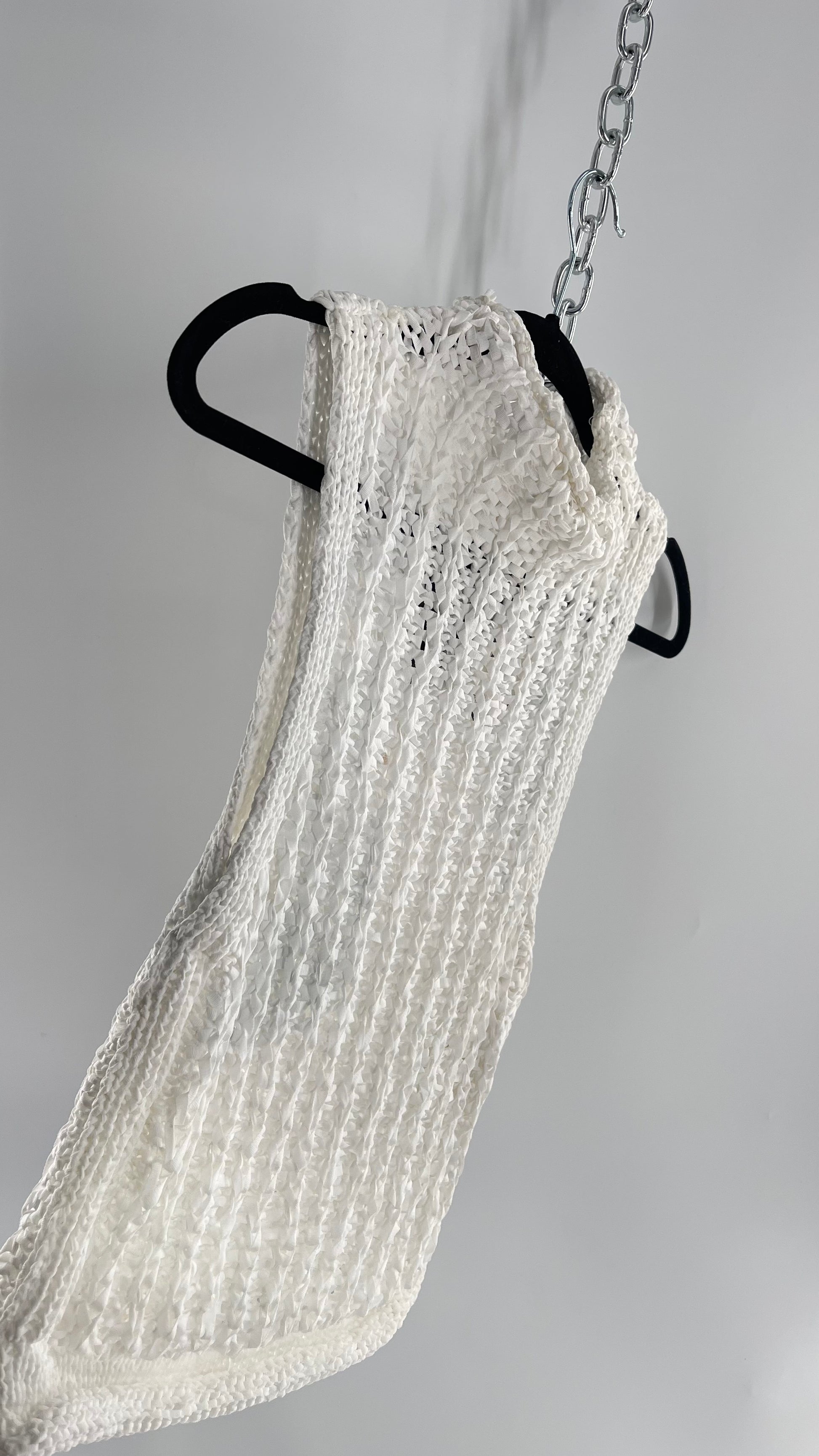 Anthropologie Moth White Crochet Open Knit Mock Neck Tank