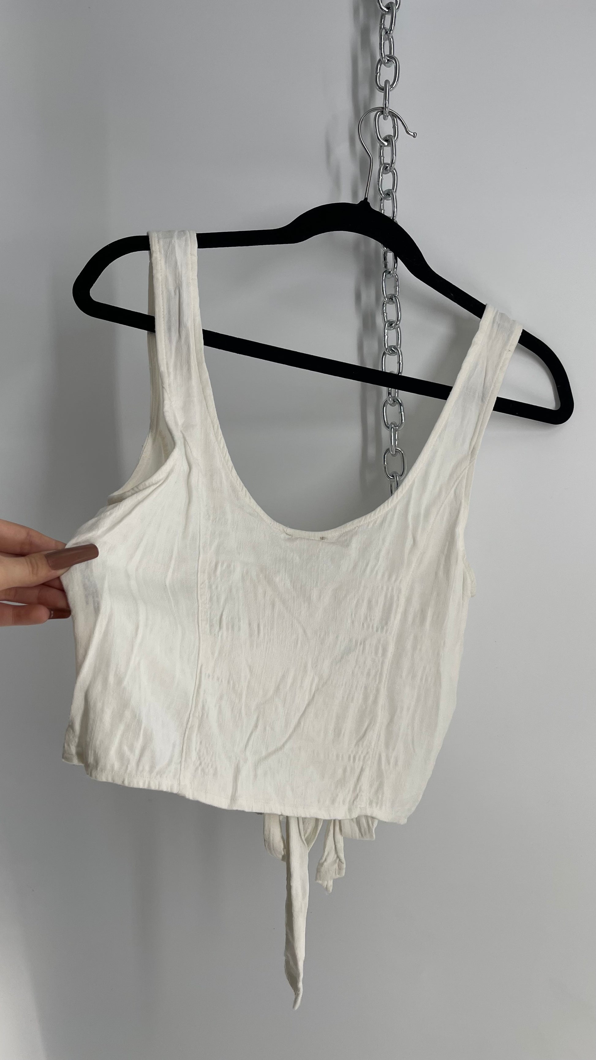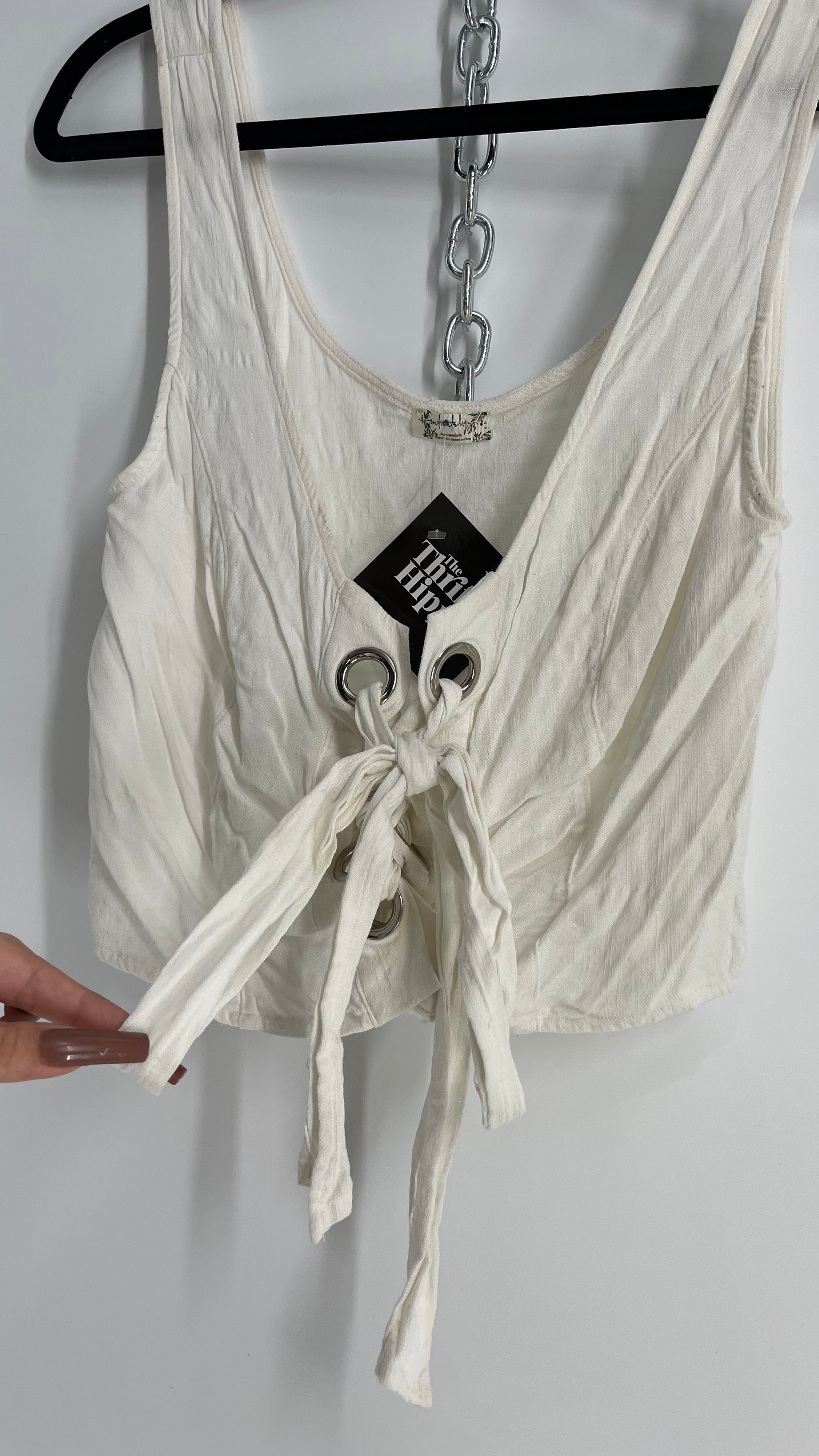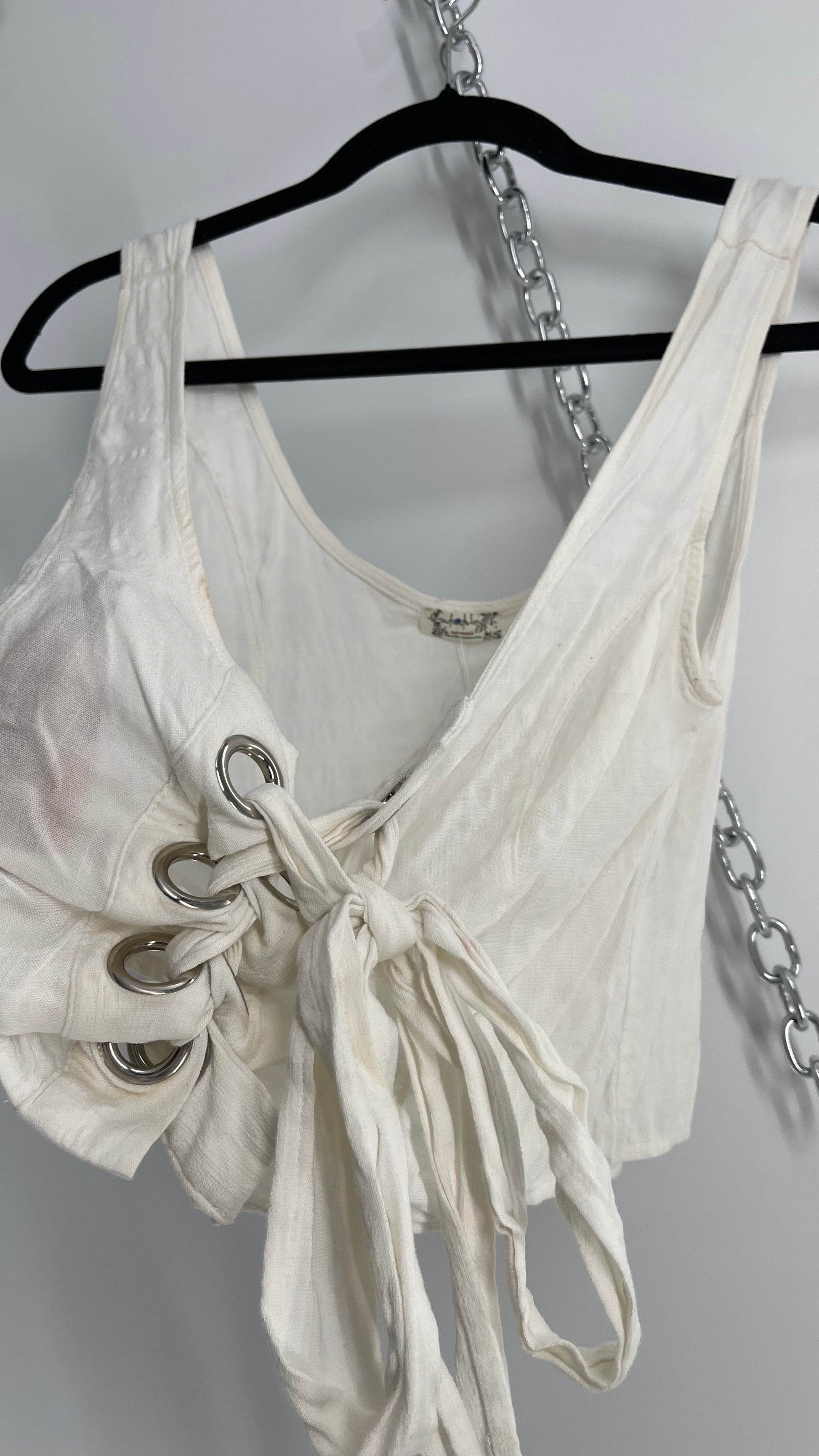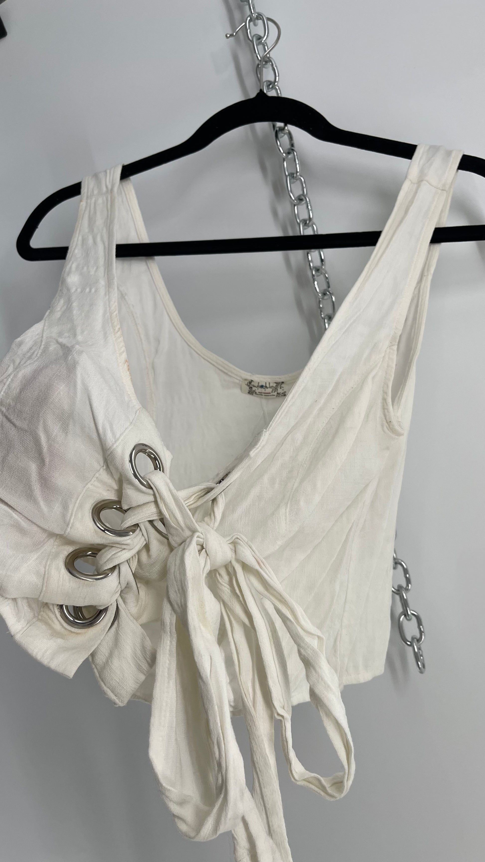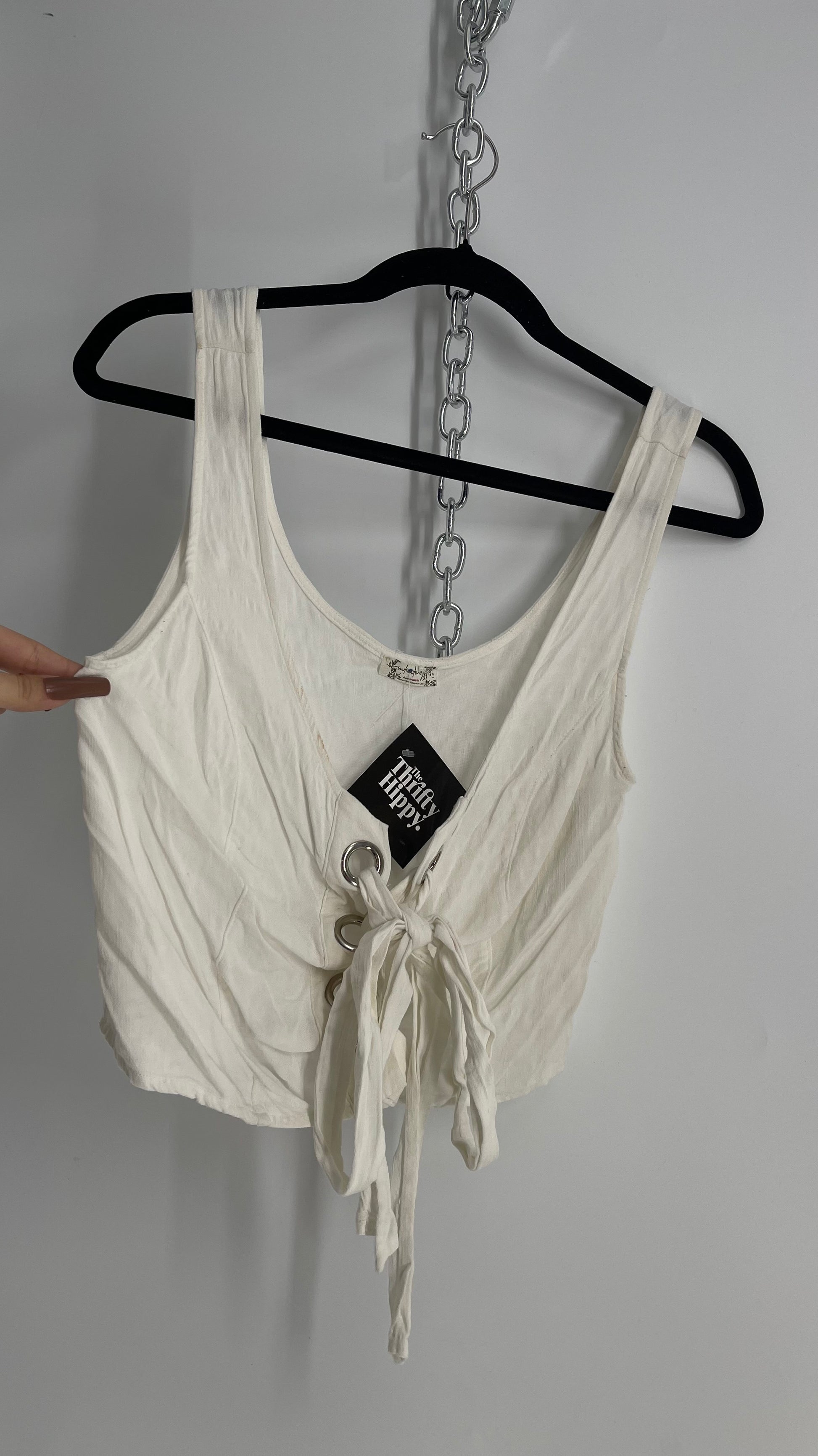 Intimately Free People White Crimped Metal Grommet Tie Front Tank (Small)