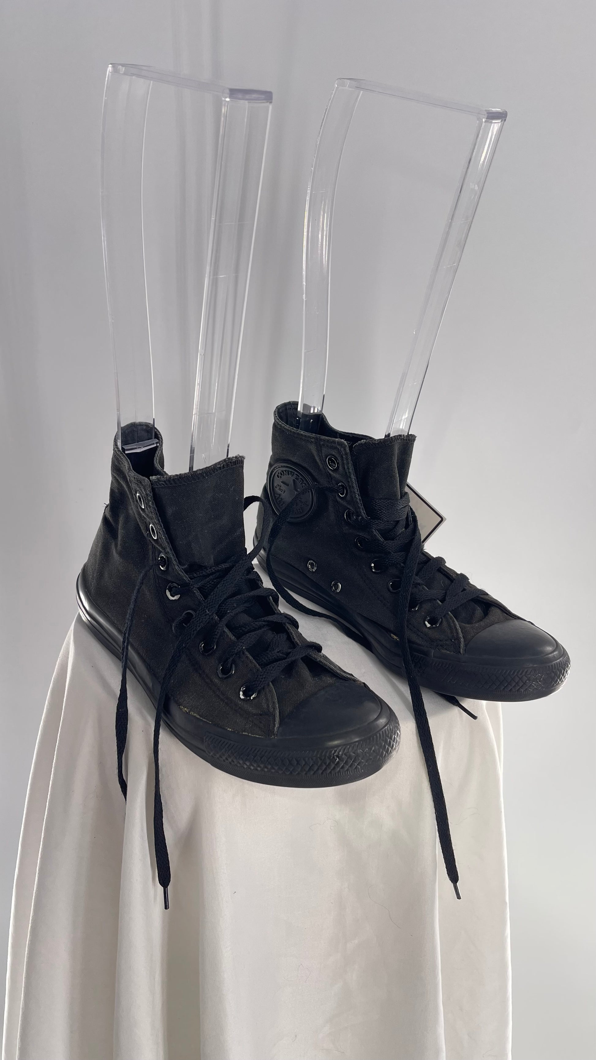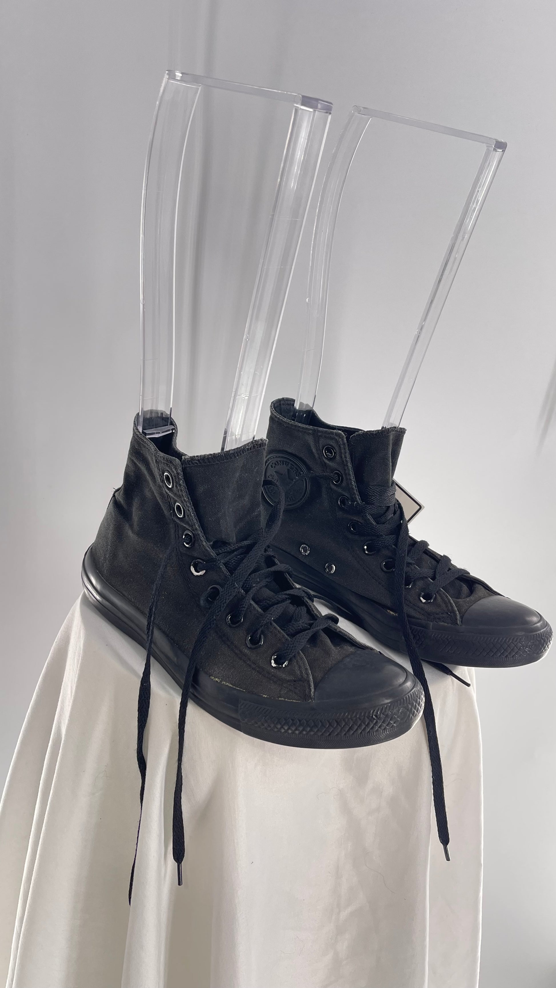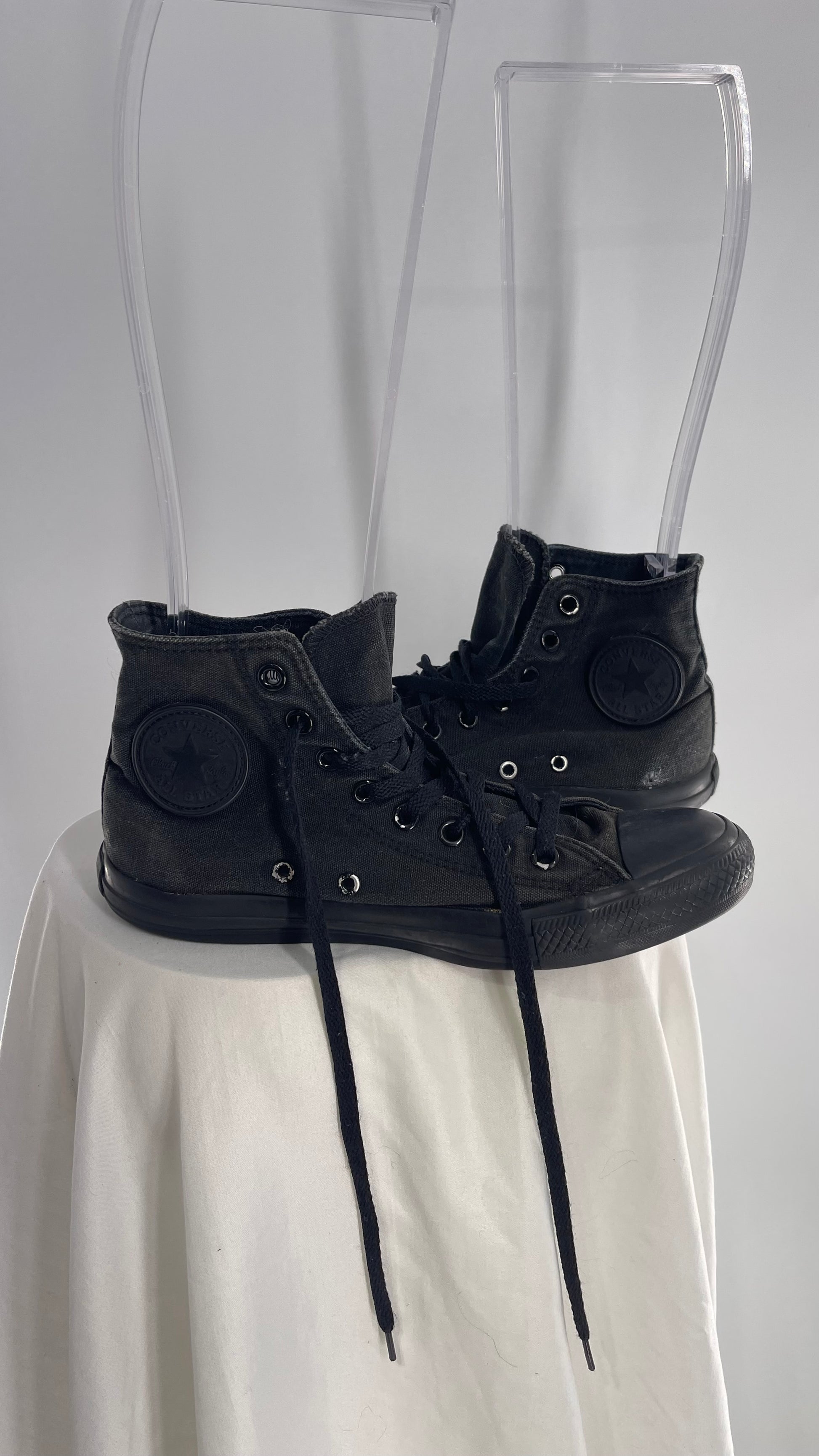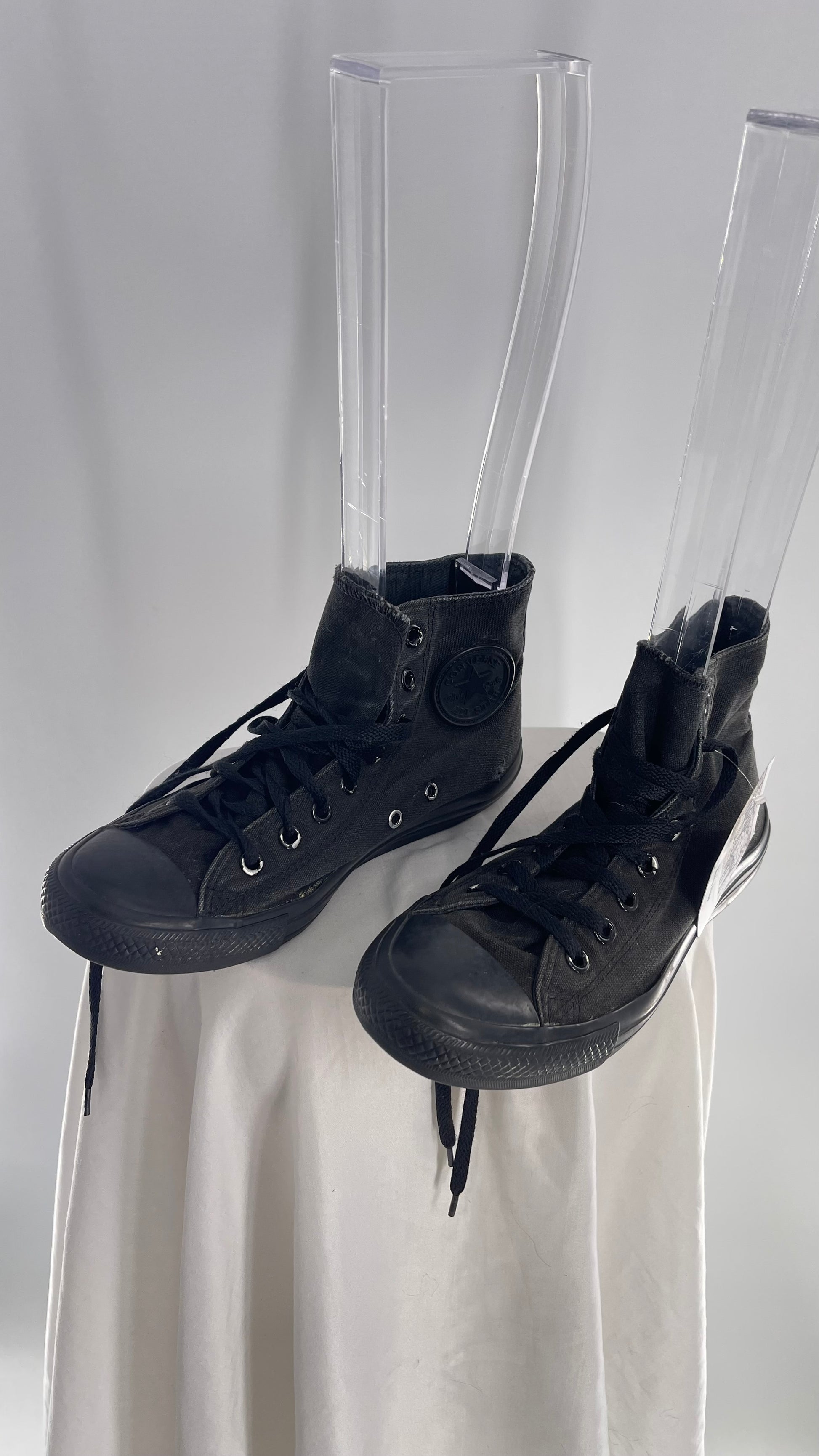 All Black Monochromatic Distressed Rugged Vintage Converse (Men’s 7 Women’s 9)