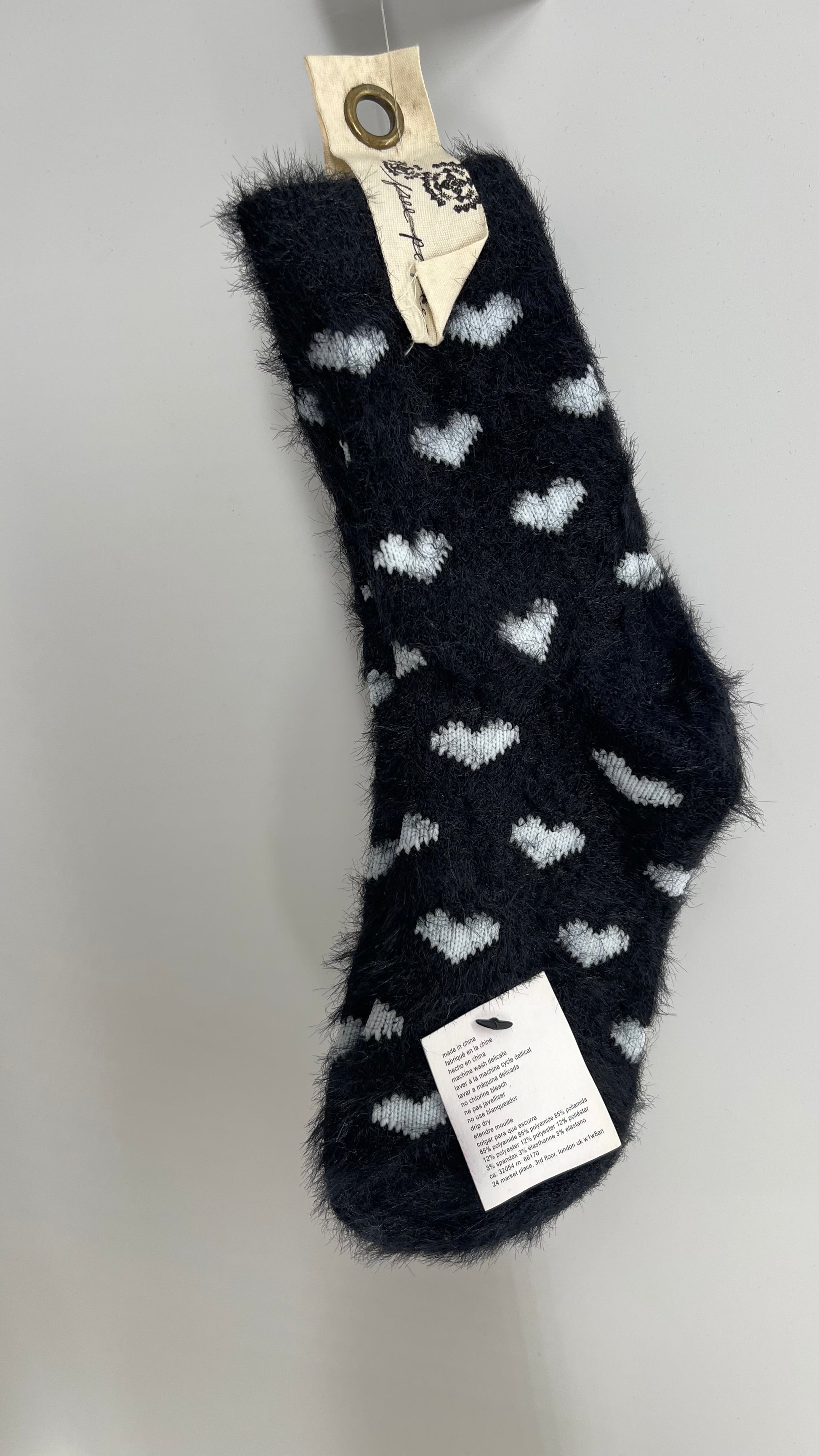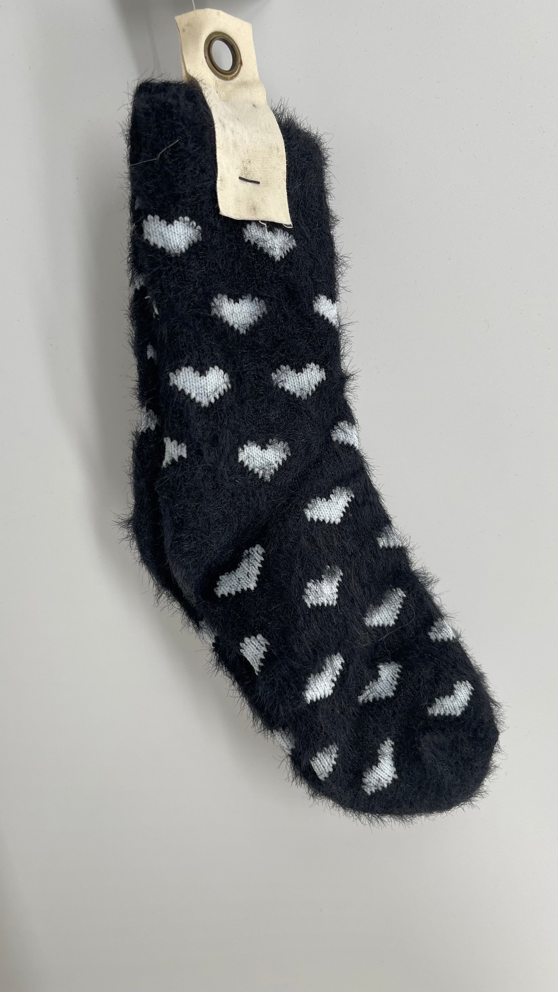 Free People Black White Fuzzy Heart Patterned Socks