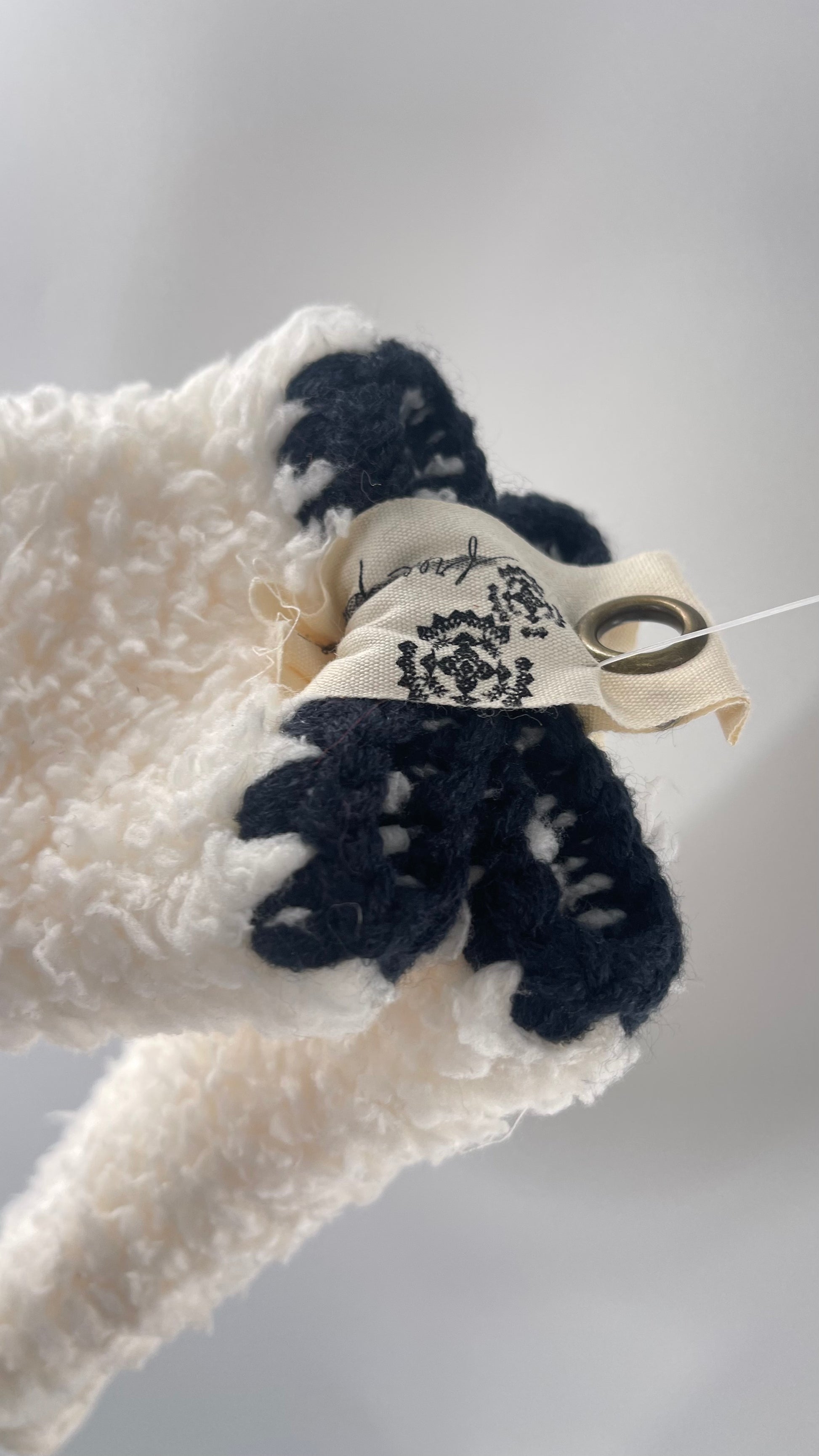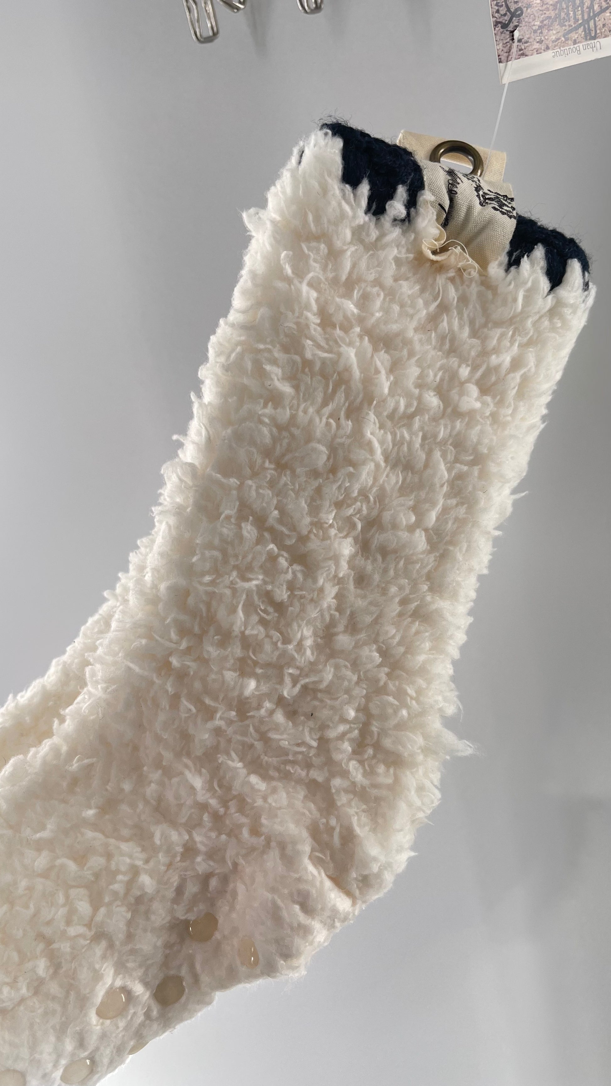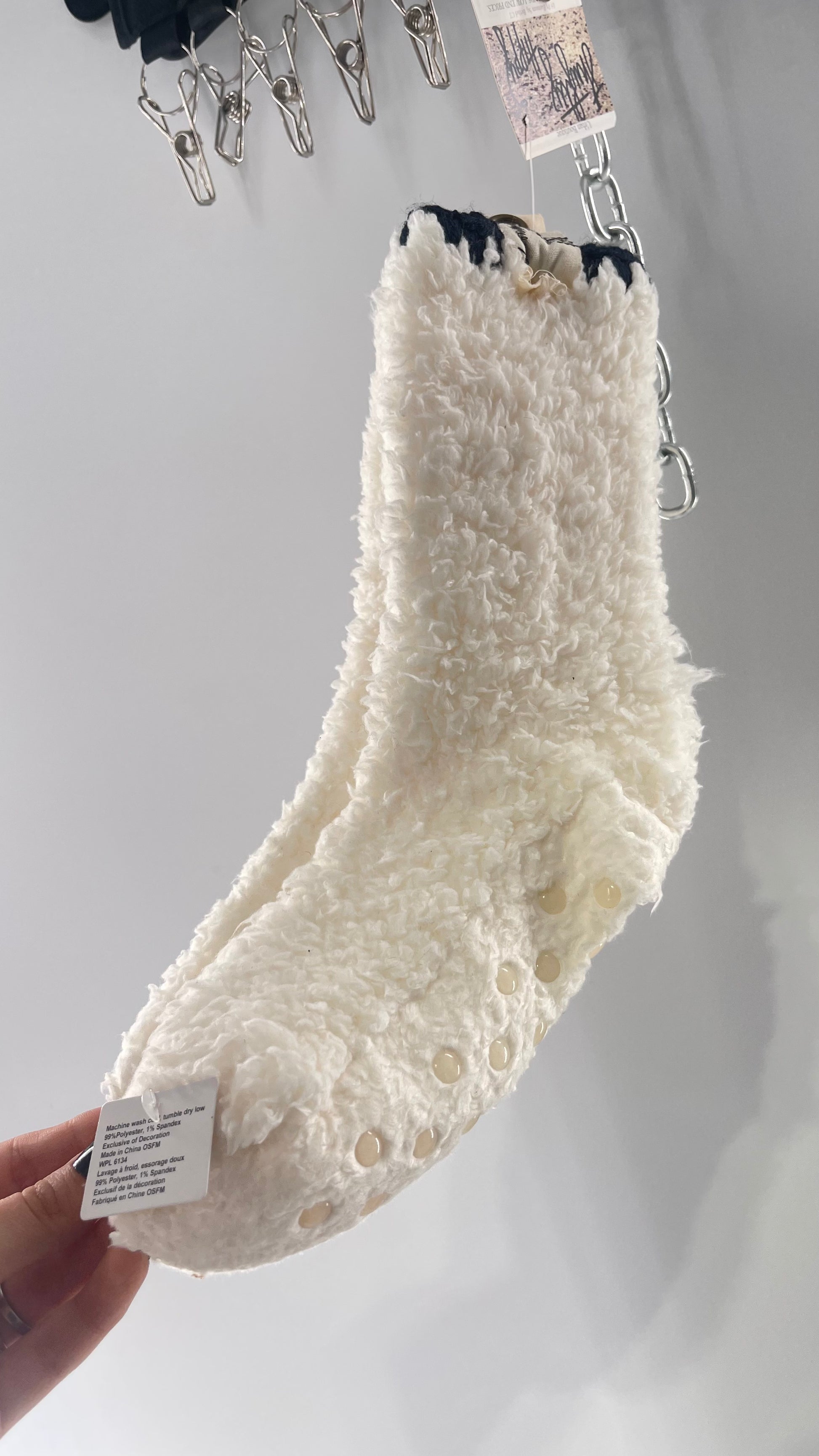 Free People White Fluffy Socks with Sole Grips with Black Stitched Detail on the Ankle