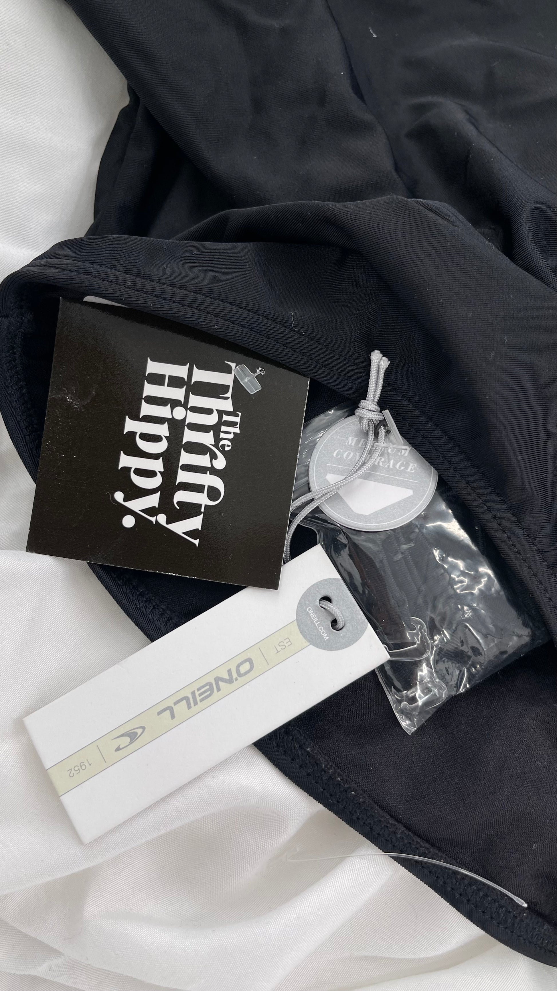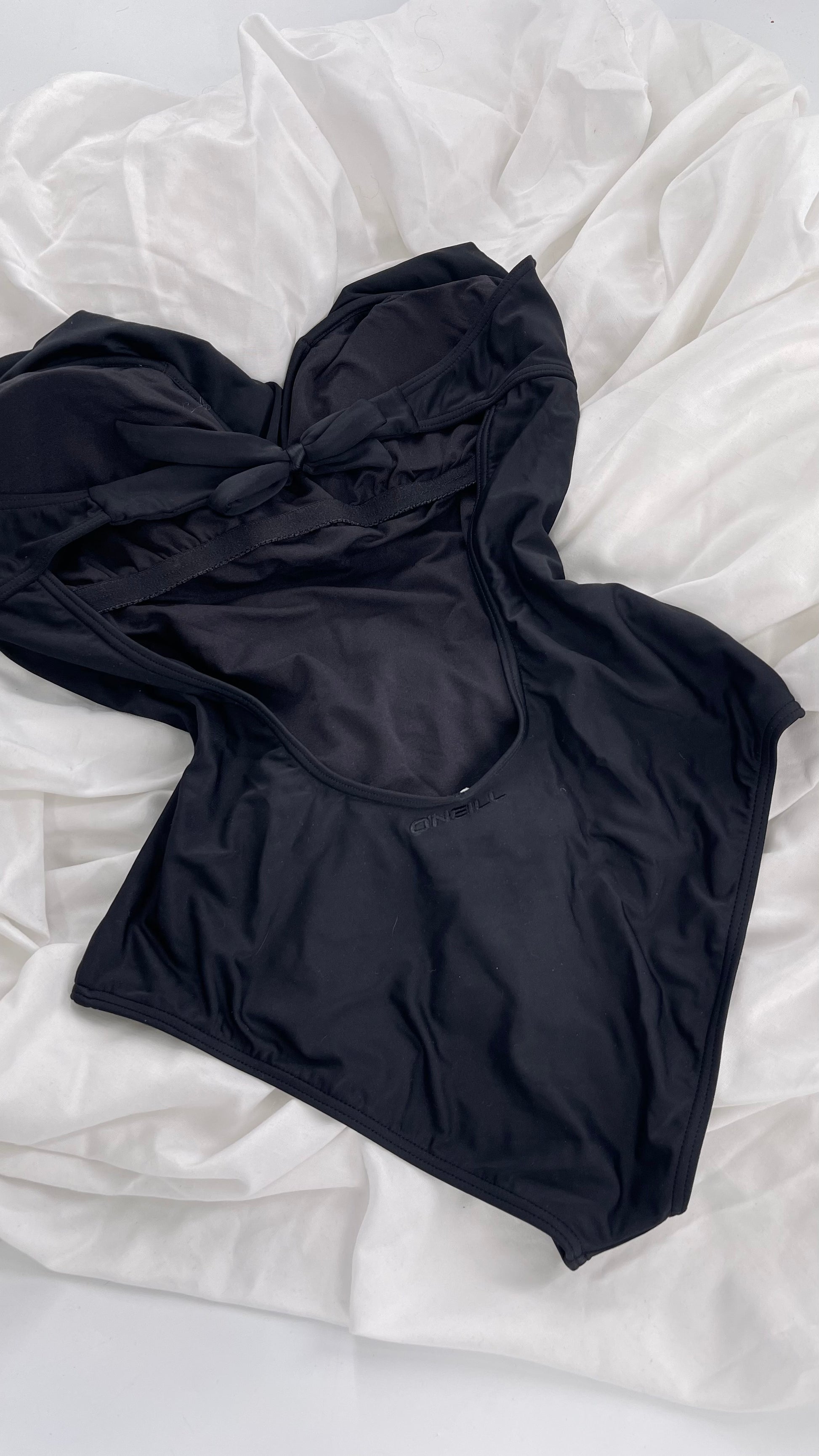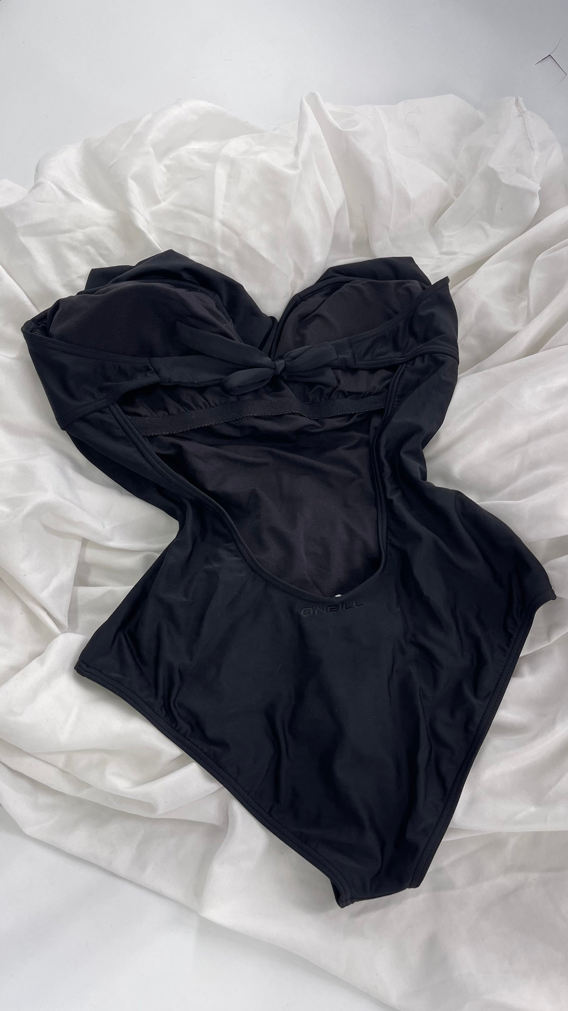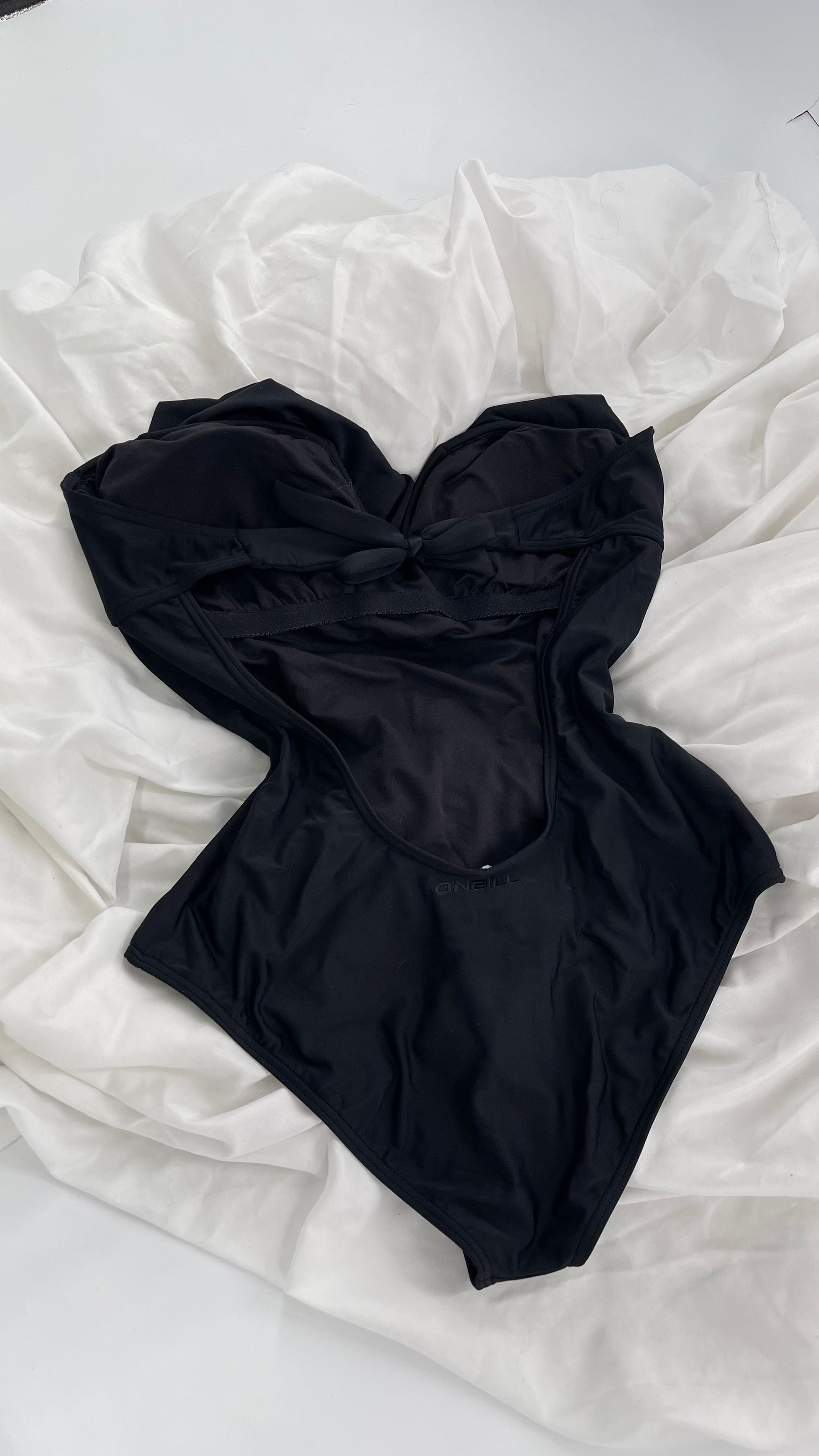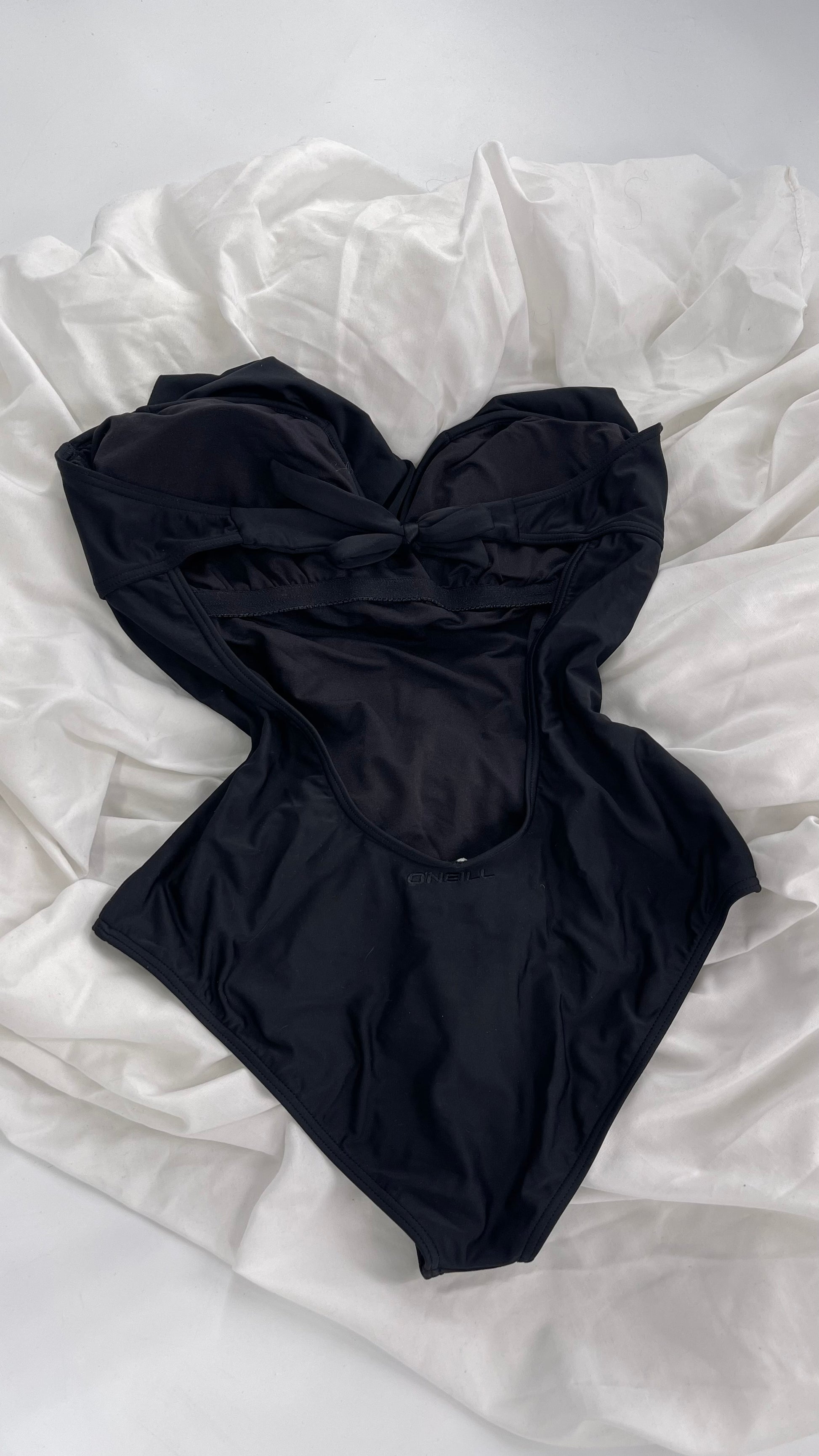 O’Neill Black Swimsuit with Built in Bra with Ruffled Bust, Open Back, Straps and Tags Attached (Large)