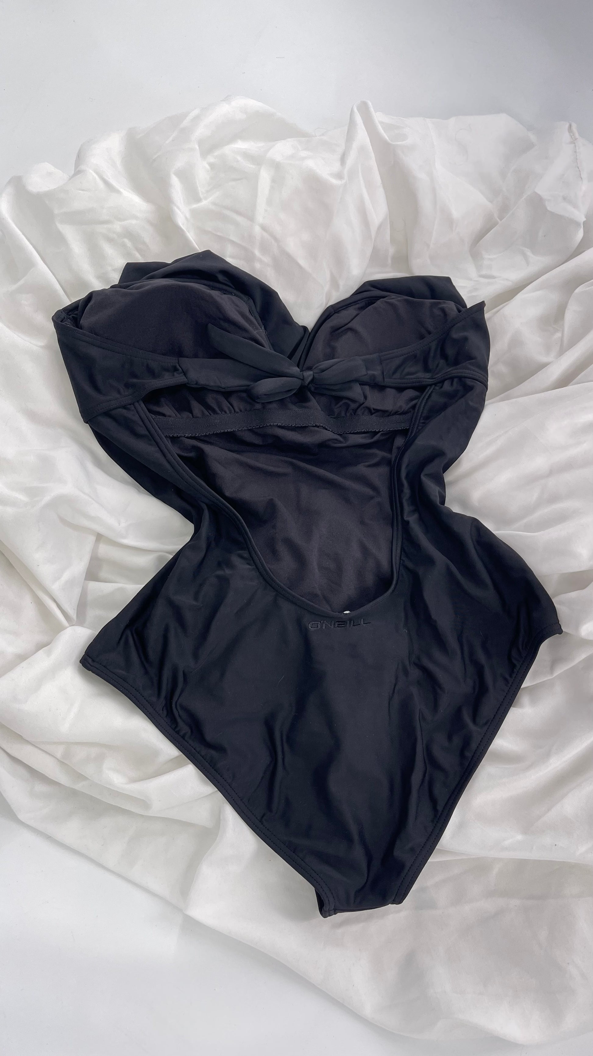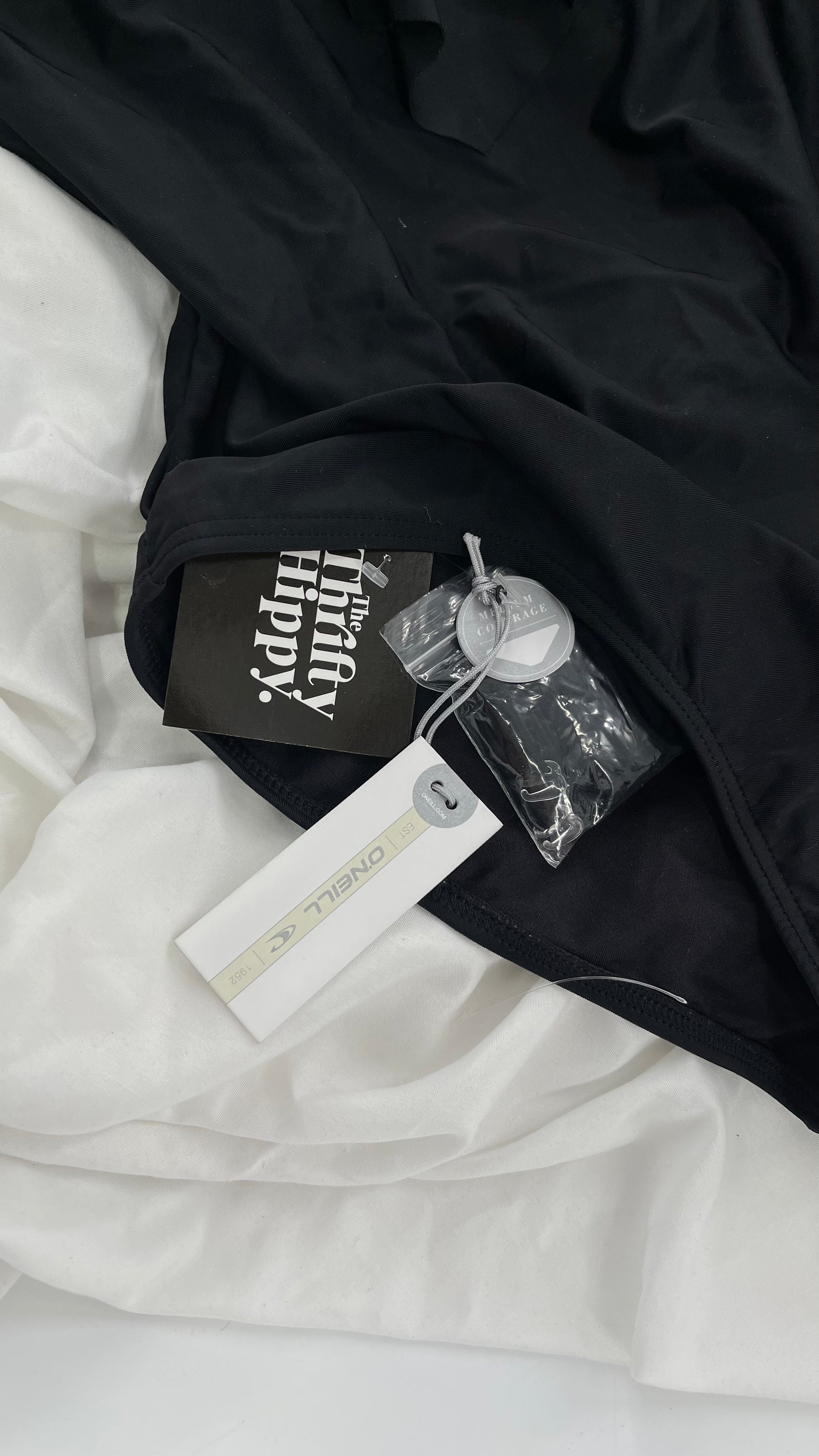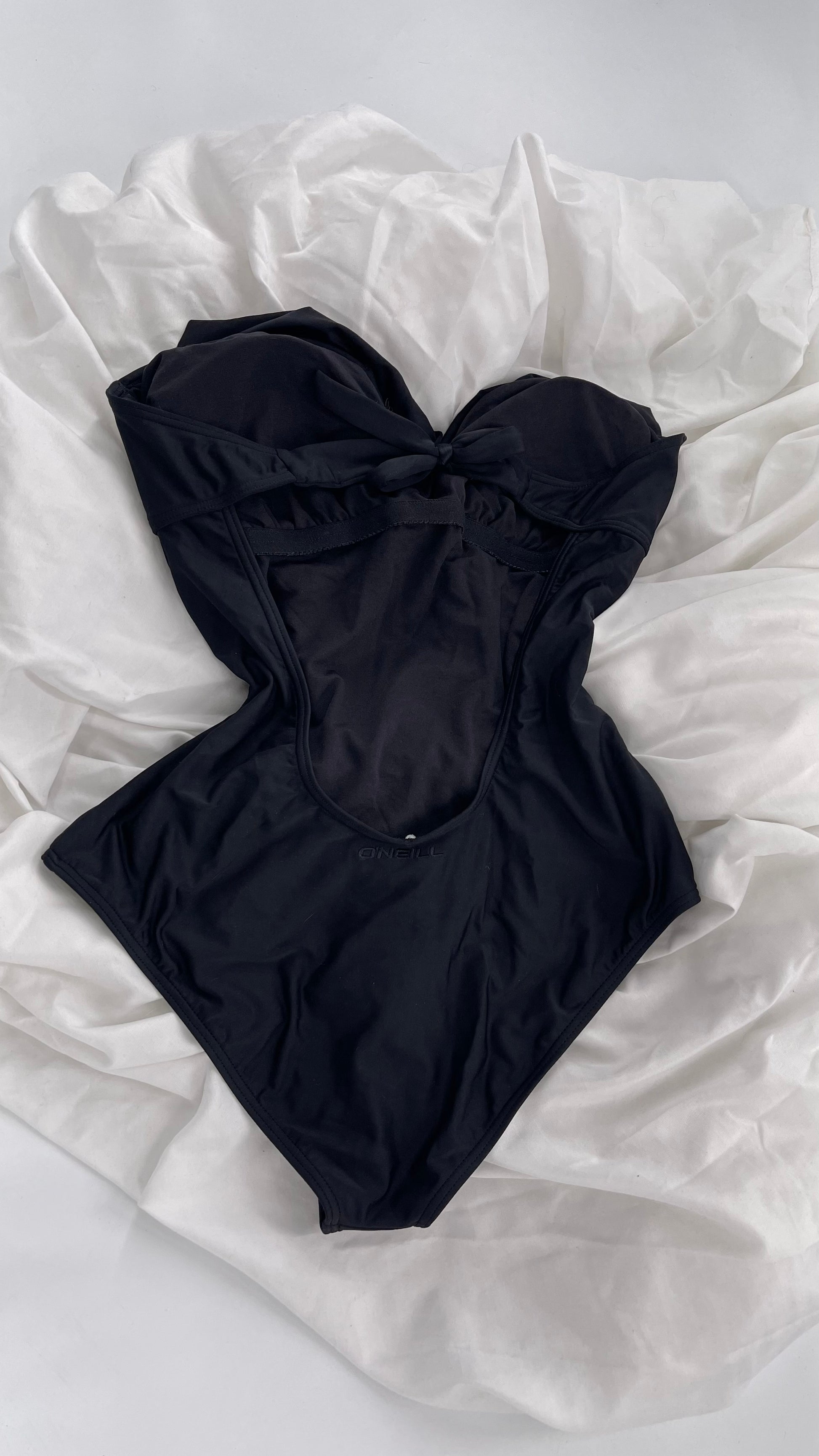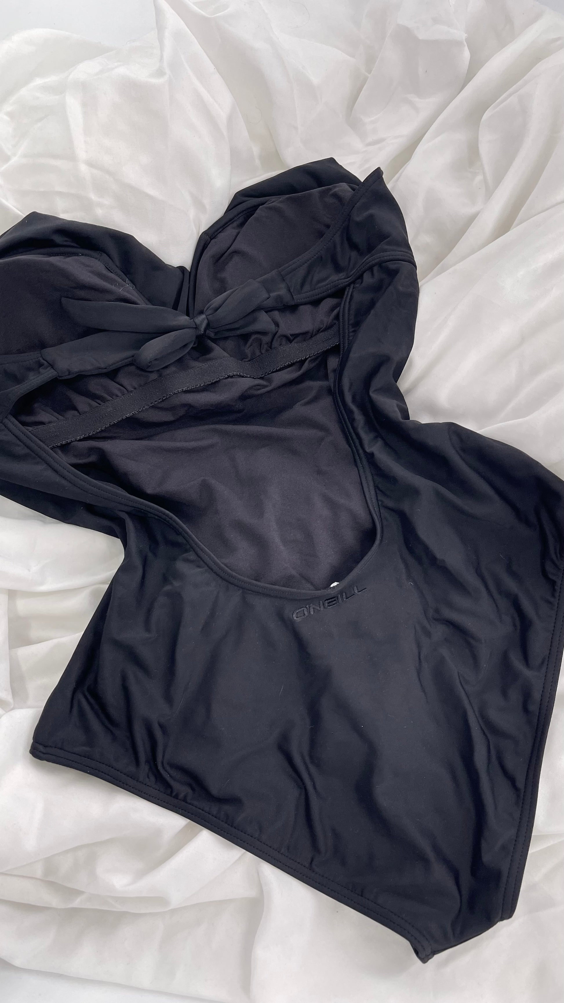 O’Neill Black Swimsuit with Built in Bra with Ruffled Bust, Open Back, Straps and Tags Attached (Large)
