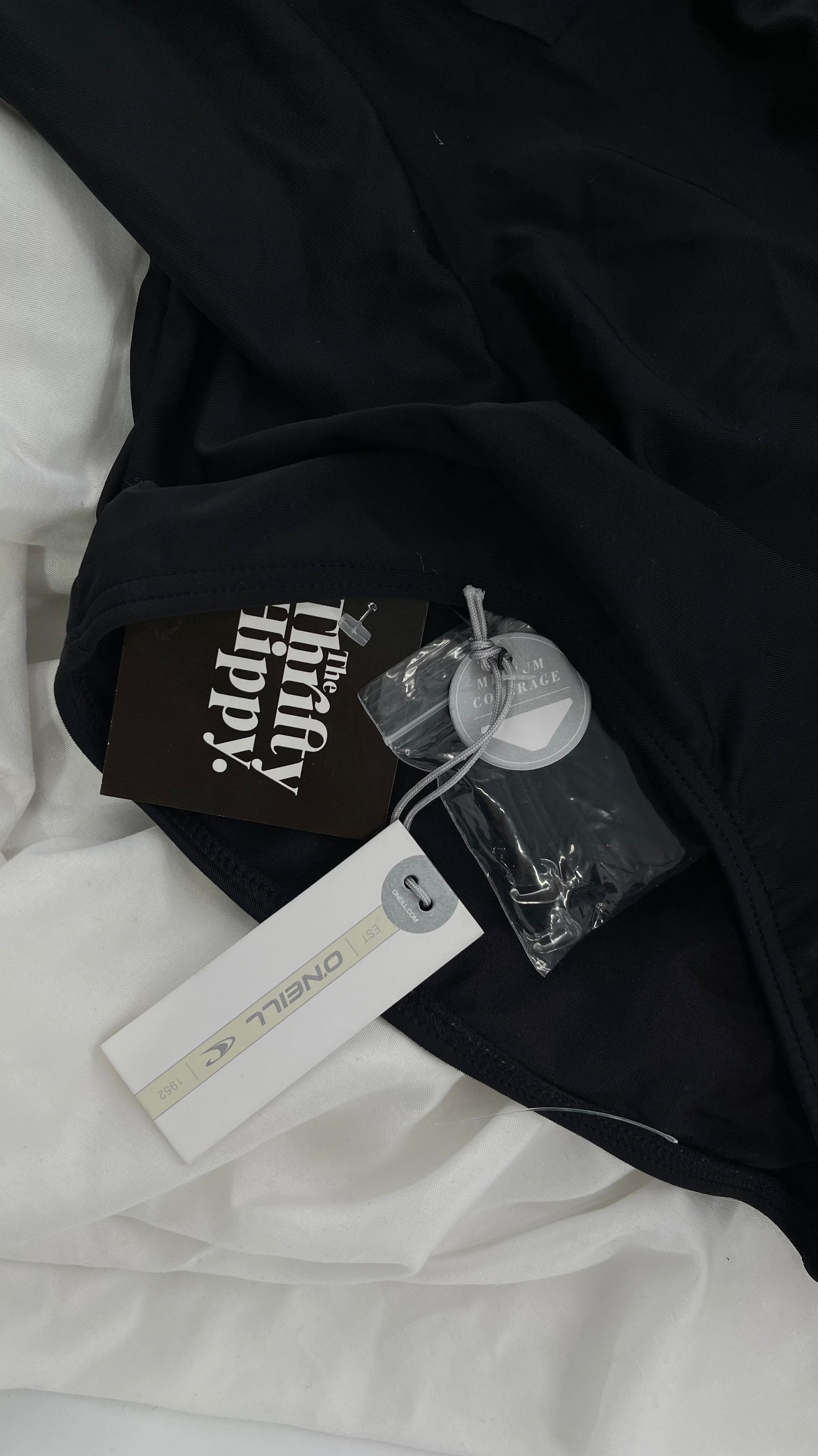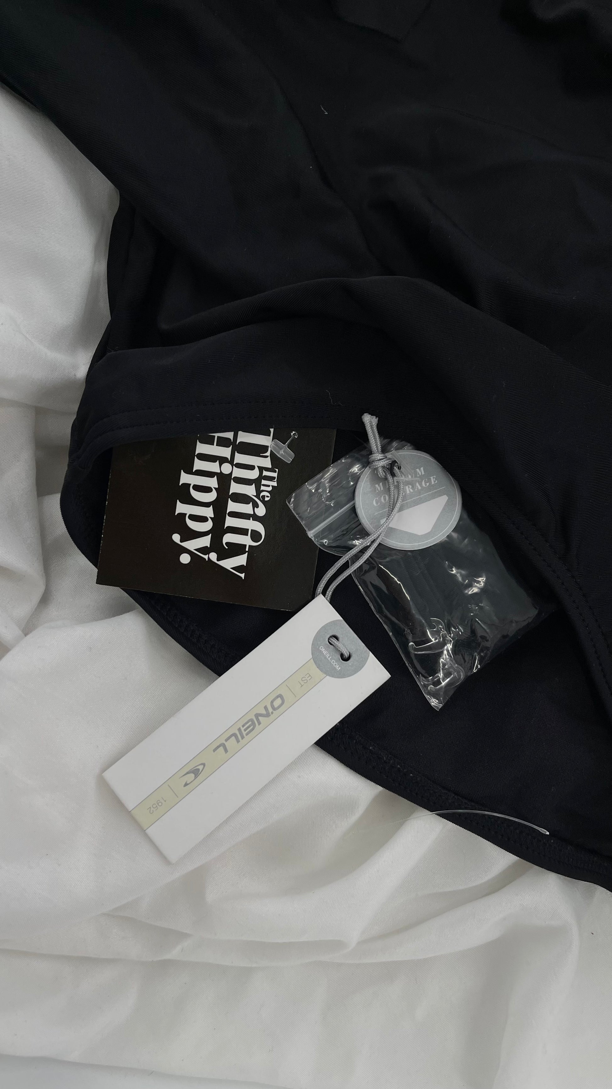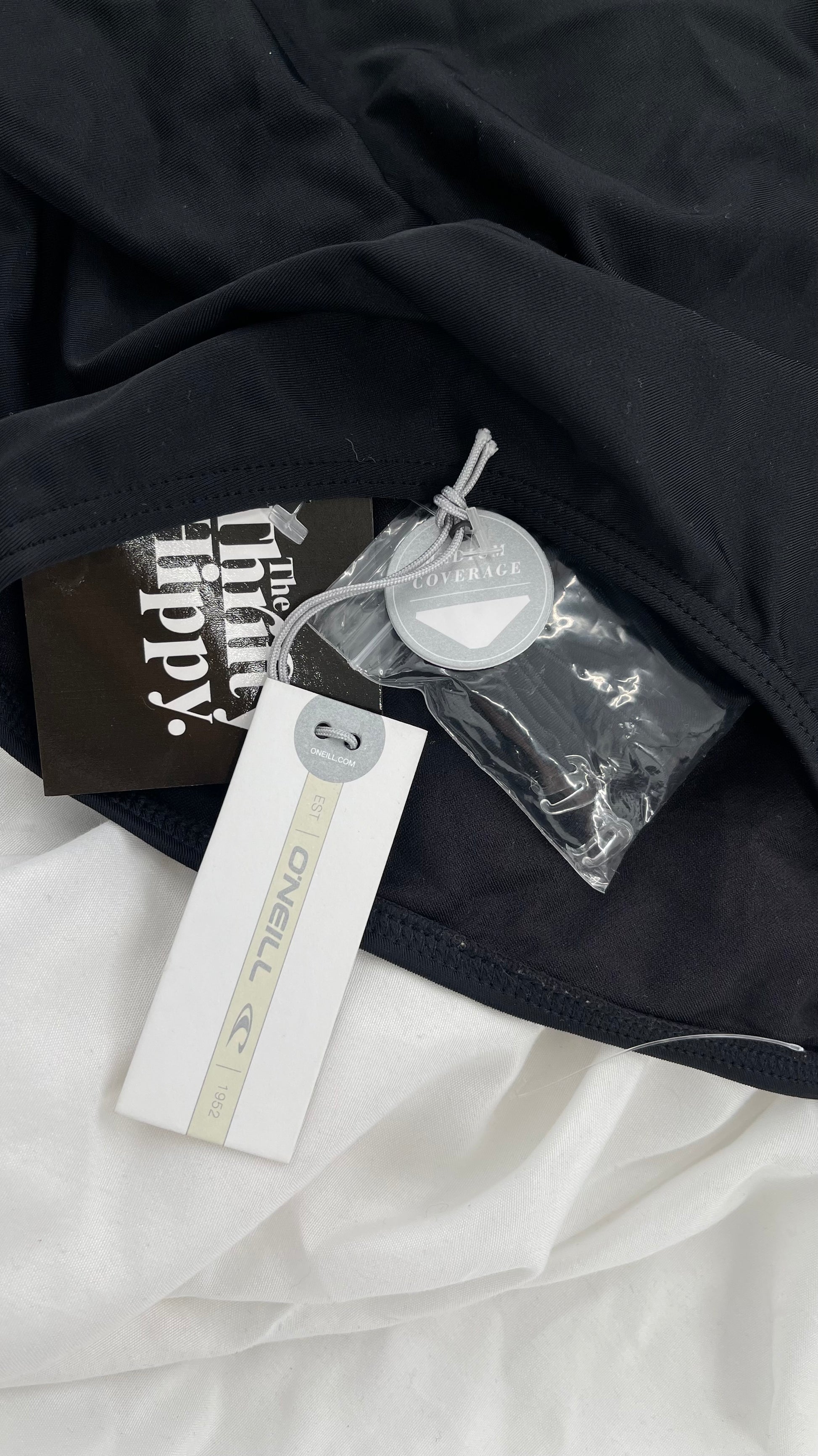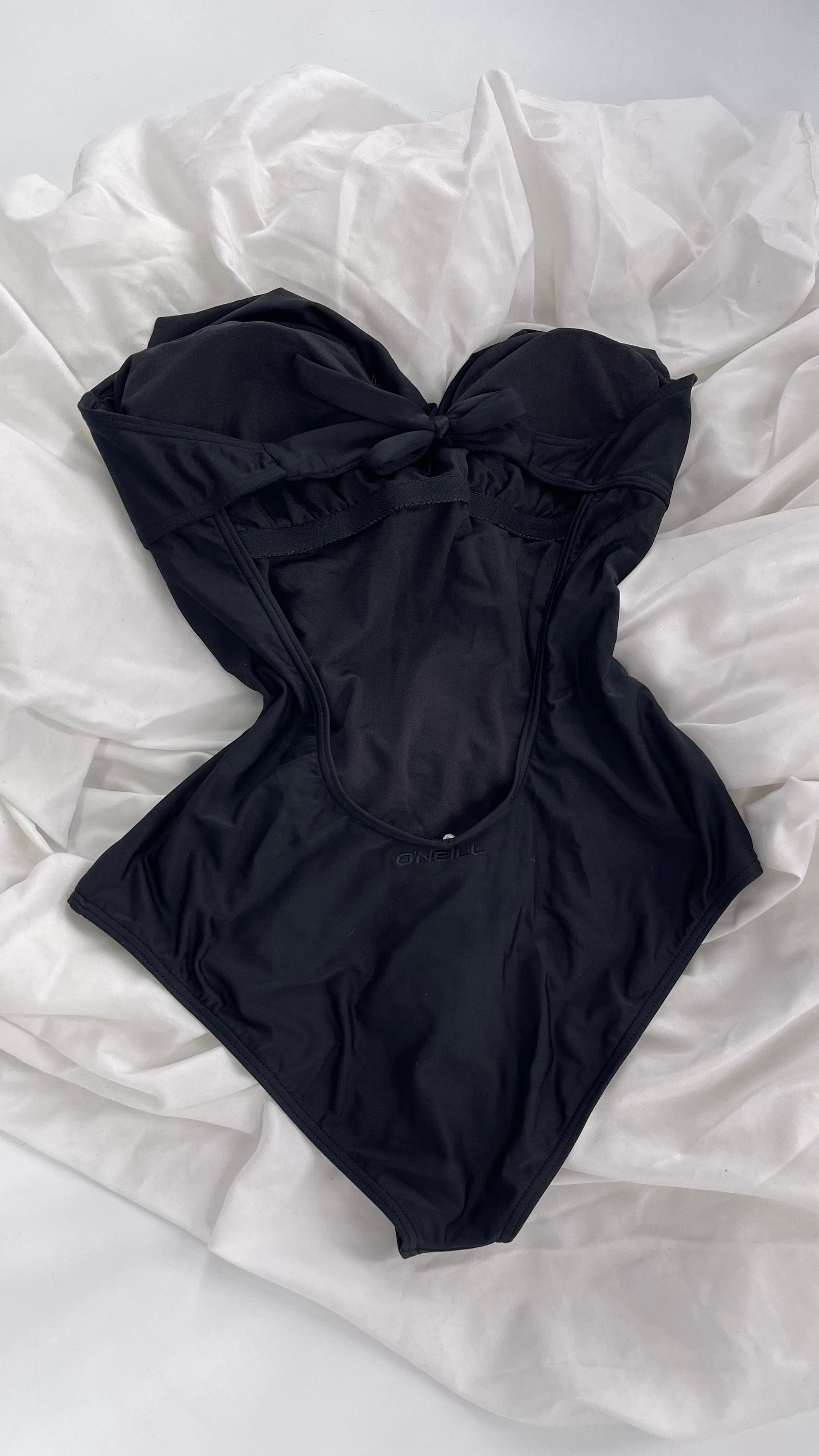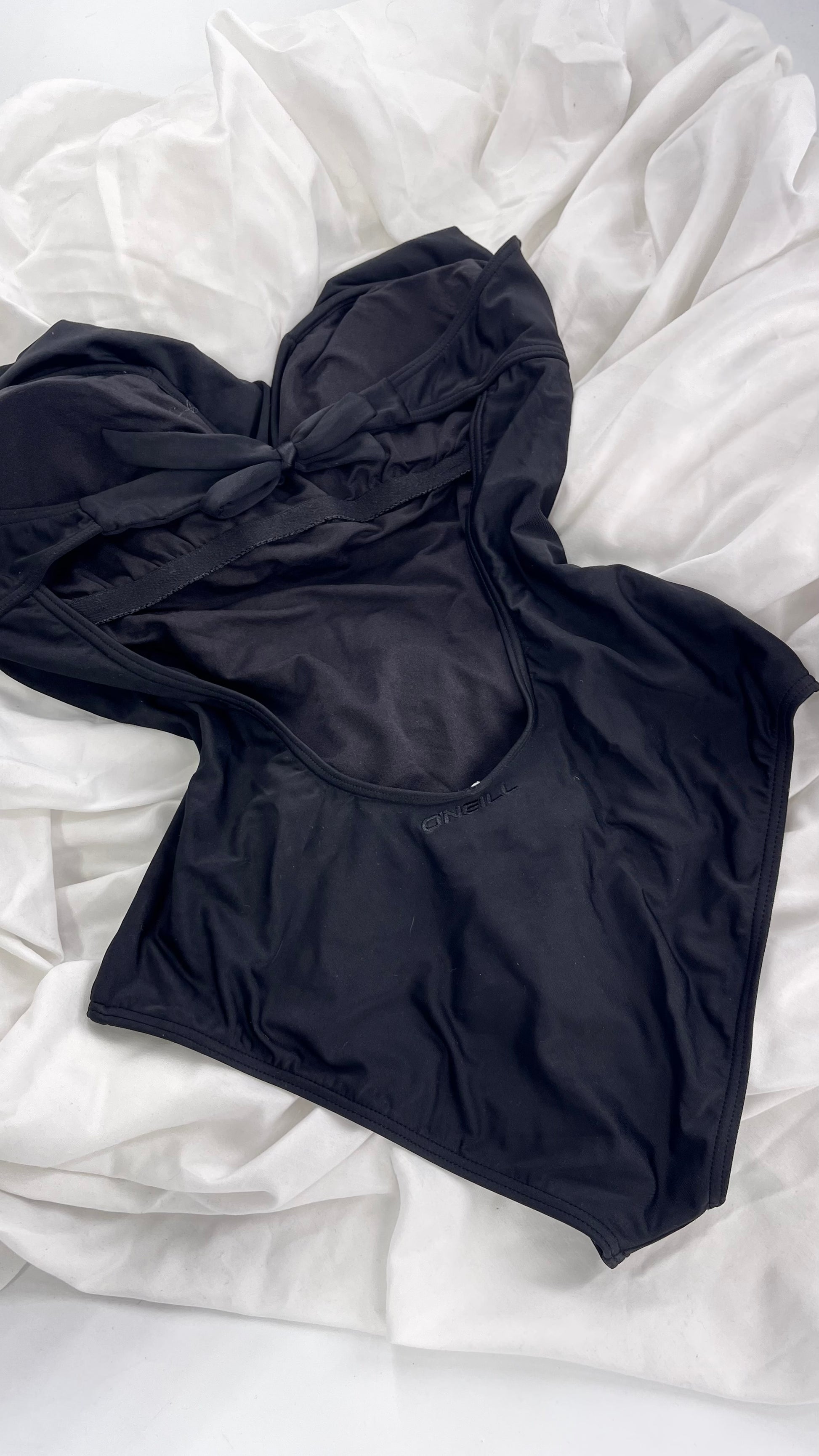 O’Neill Black Swimsuit with Built in Bra with Ruffled Bust, Open Back, Straps and Tags Attached (Large)
