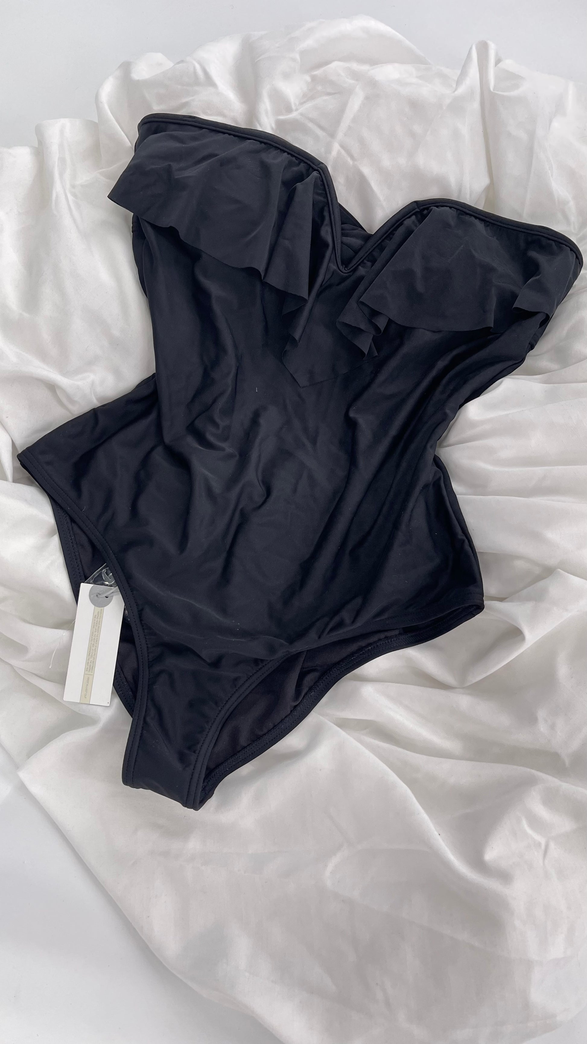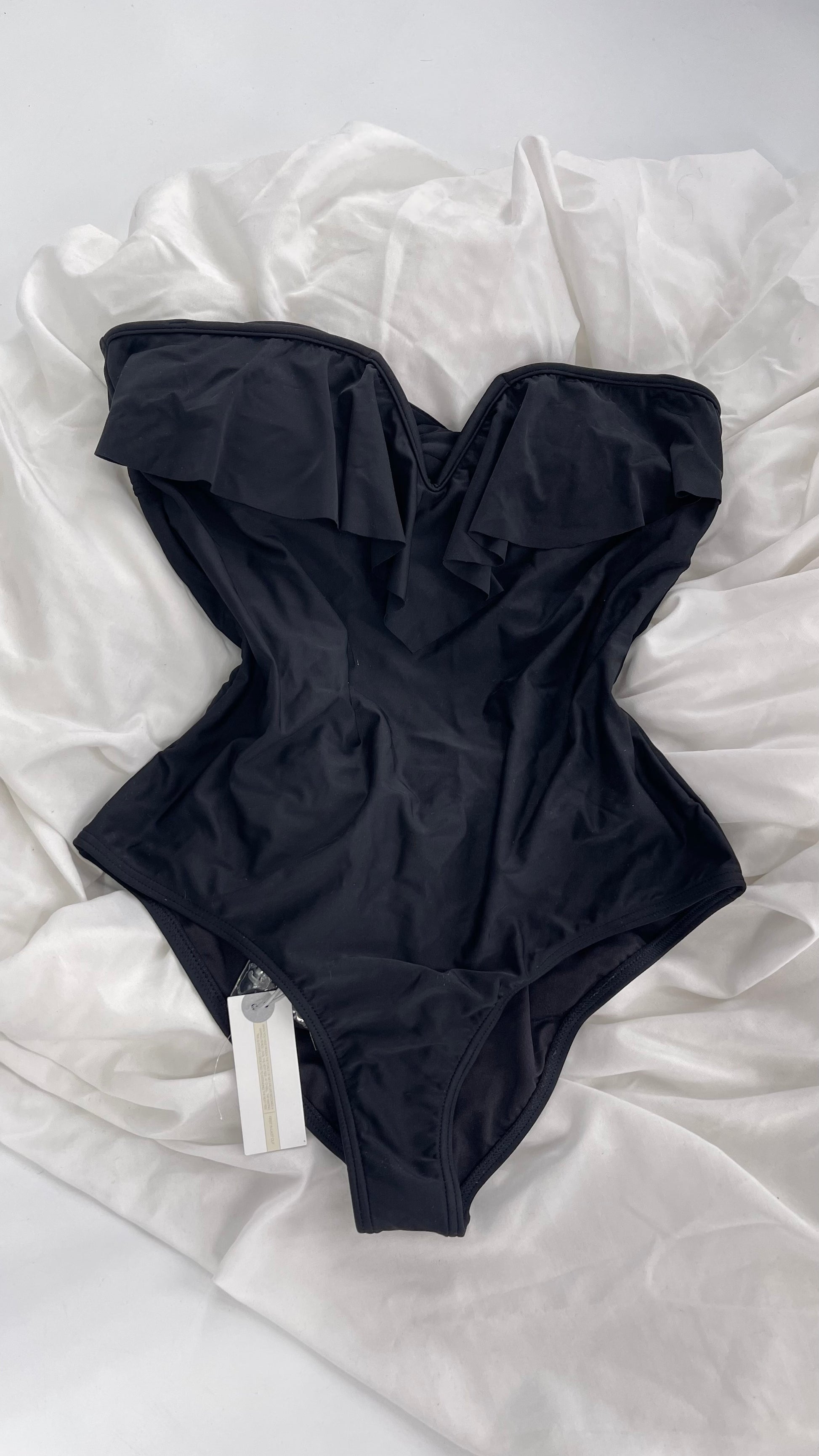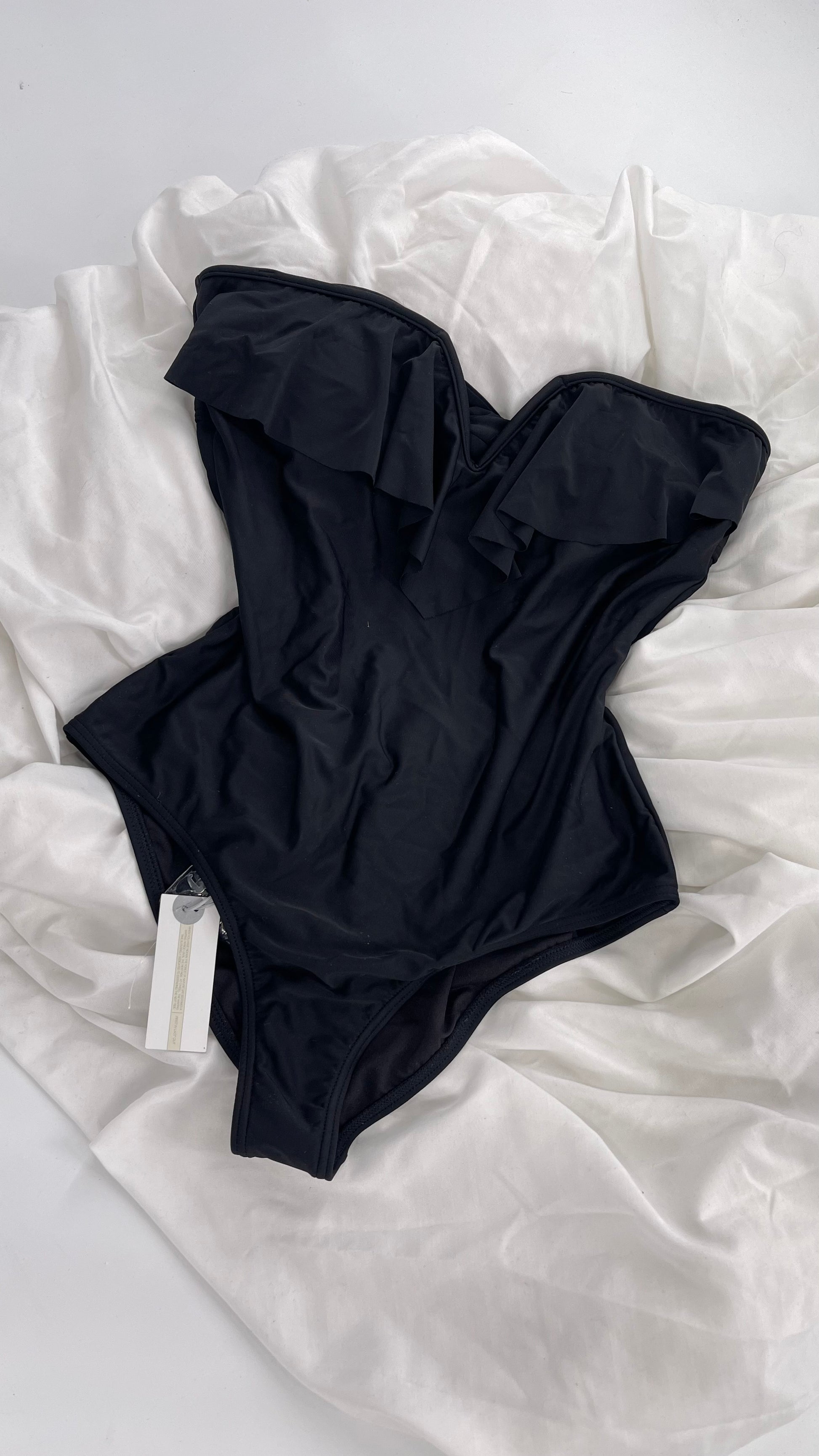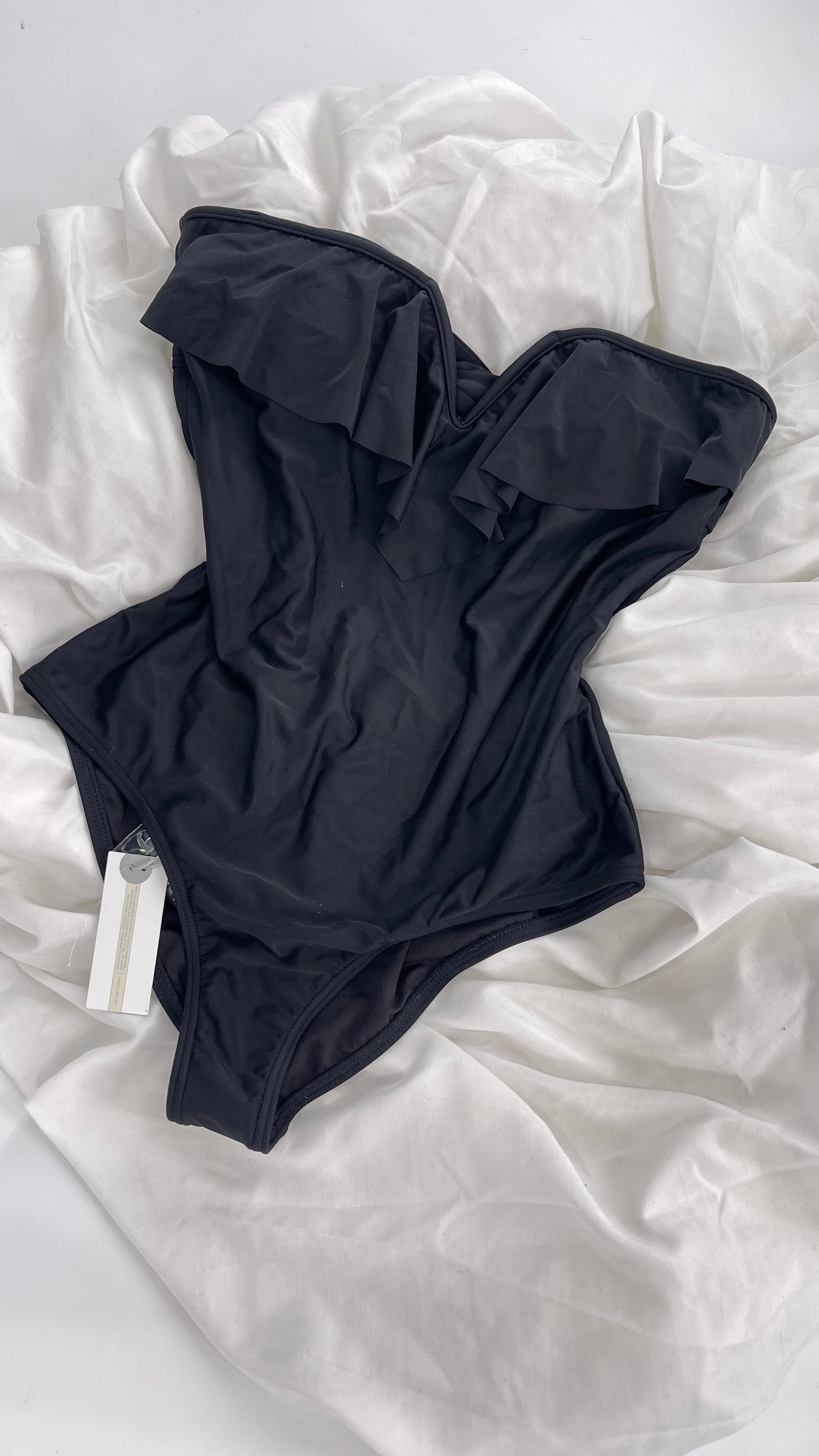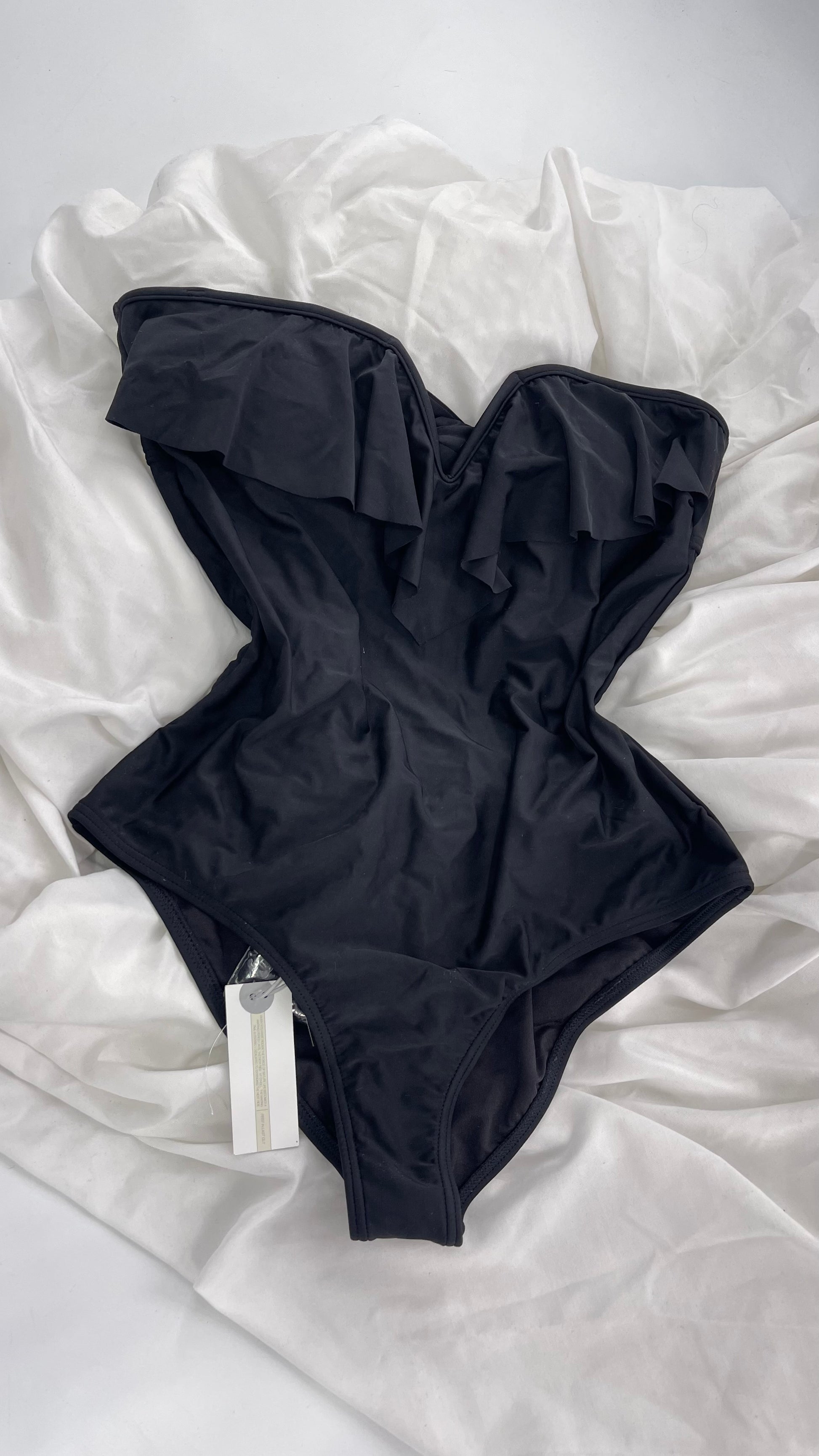 O’Neill Black Swimsuit with Built in Bra with Ruffled Bust, Open Back, Straps and Tags Attached (Large)