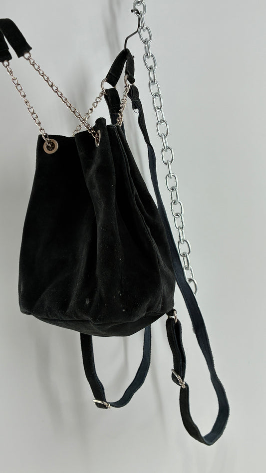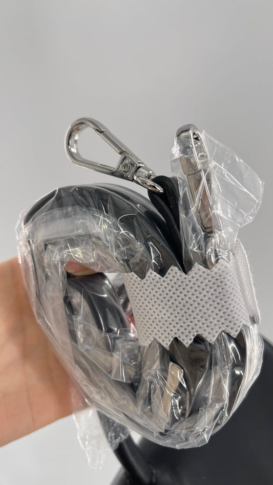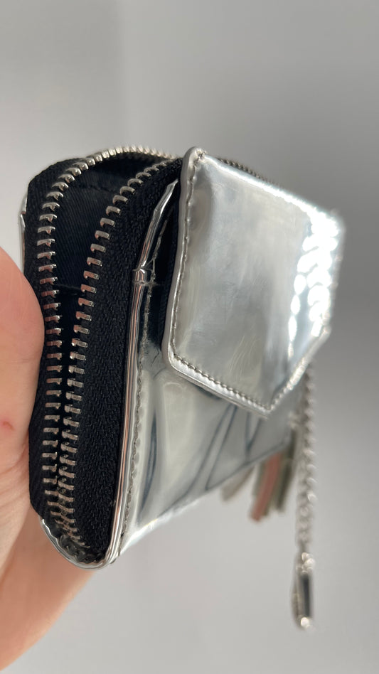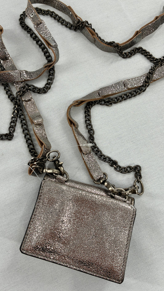 Free People Silver Gun Metal Metallic Goat Leather Wallet with Leather and Chain Straps