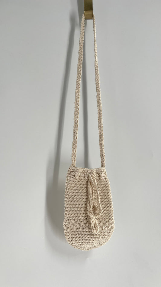 Beige Hand Knit Crochet Pouch Purse Water Bottle Bag