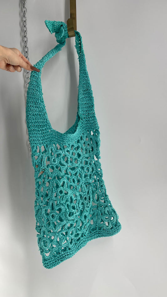 PromoçãoTurquoise Blue Straw Flower Tote Bag