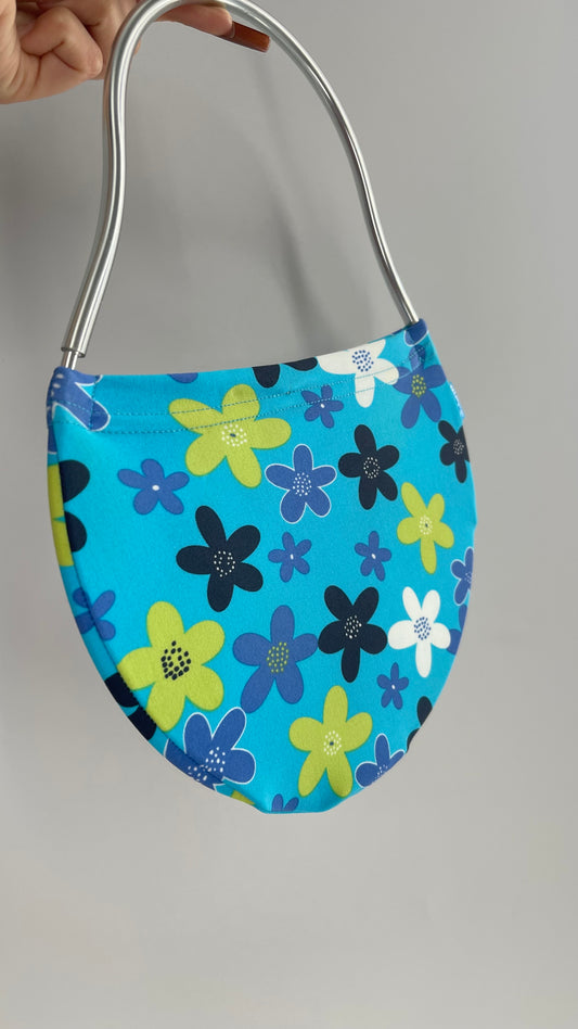 Vintage VALDESIGN Half Circle Blue Floral 2D Hand Bag with Metal Abstract Handbag