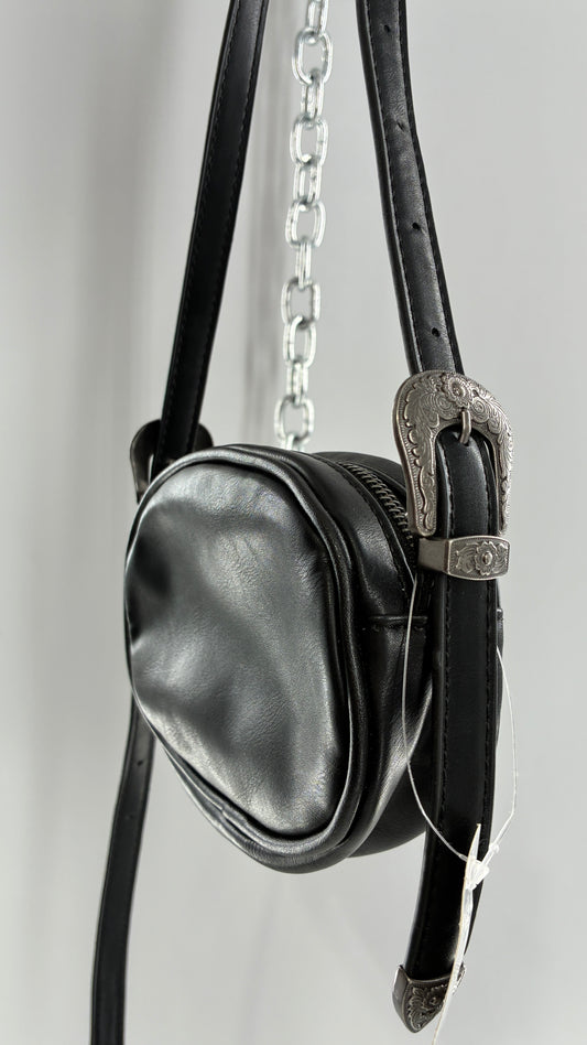Urban Outfitters Black Vegan Leather Western Buckle Bag