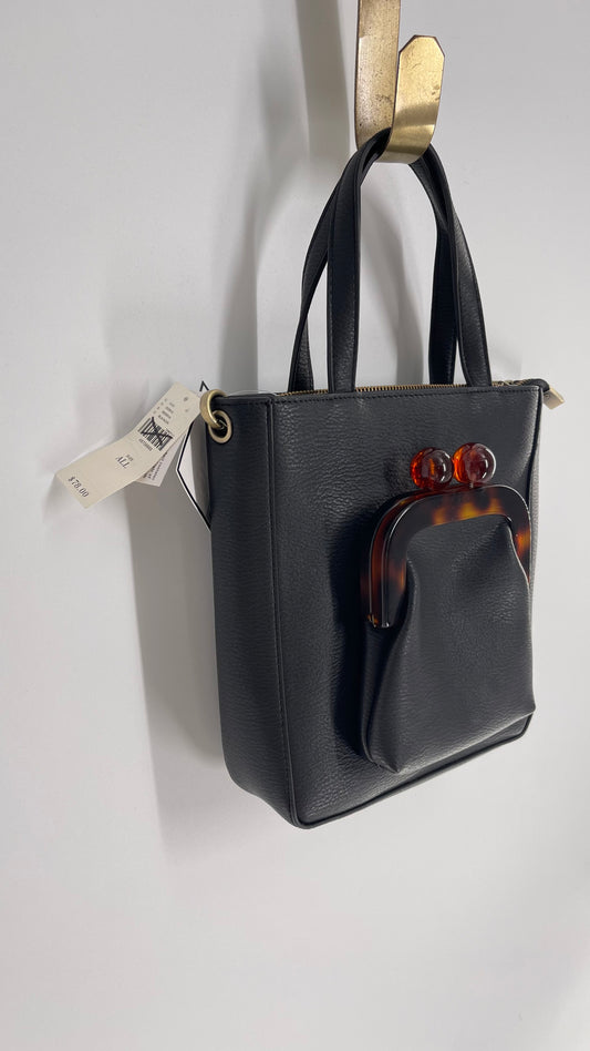 Anthropologie Black Vegan Leather Purse with Detachable Coin Purse and Strap