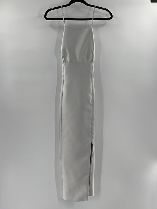 Keepsake - Anthropologie - Satin Silver Sleeveless Maxi Dress With Spaghetti Straps (Size L) - With Tag -
