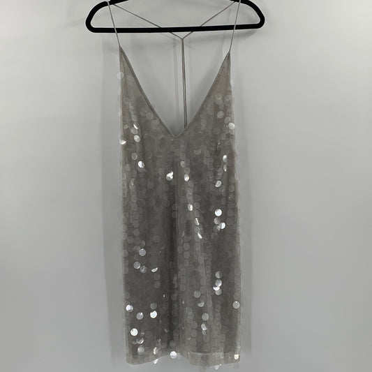 Motel Urban Outfitters - Grey Transparent Sequin Disk Midi Dress (Size Large)